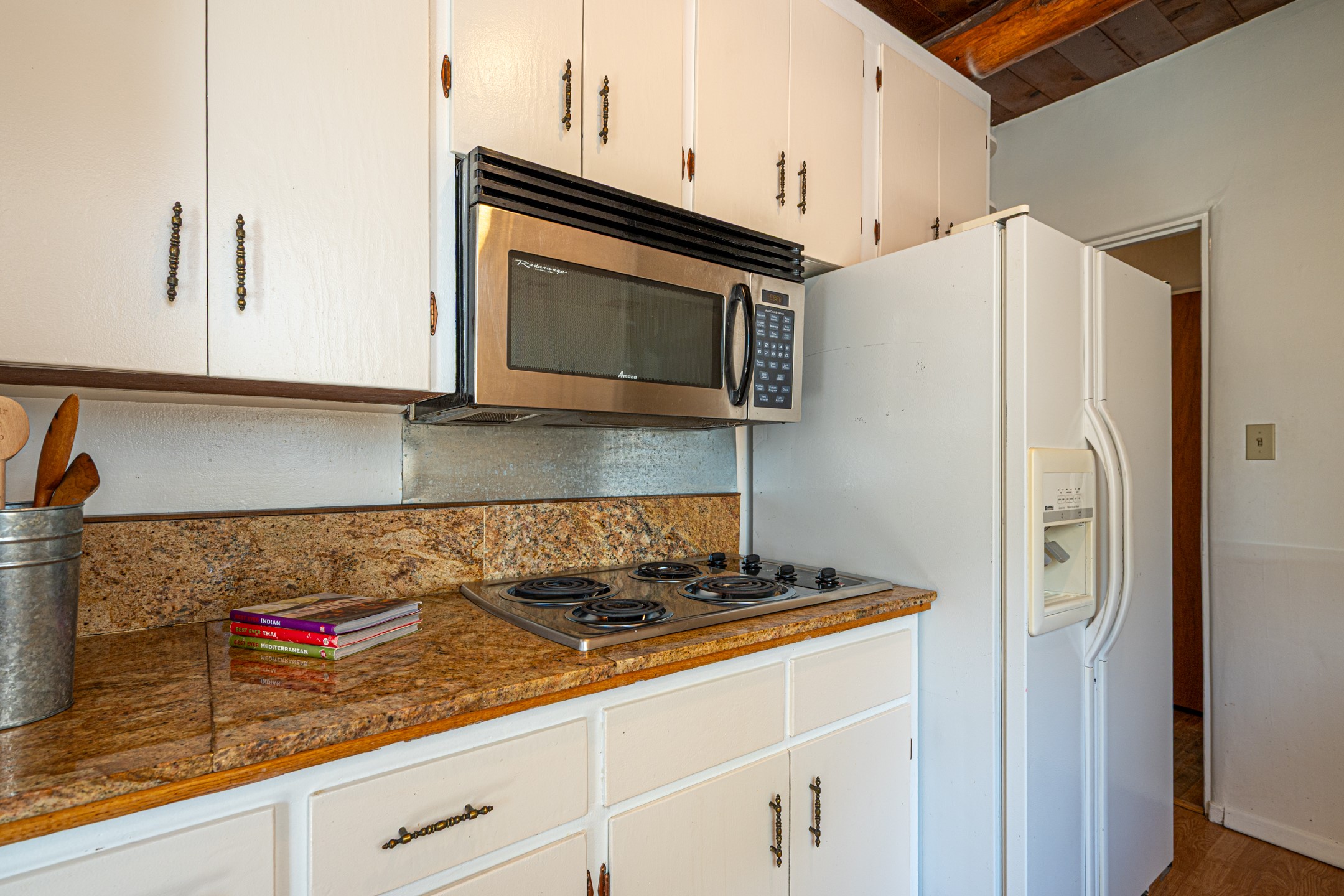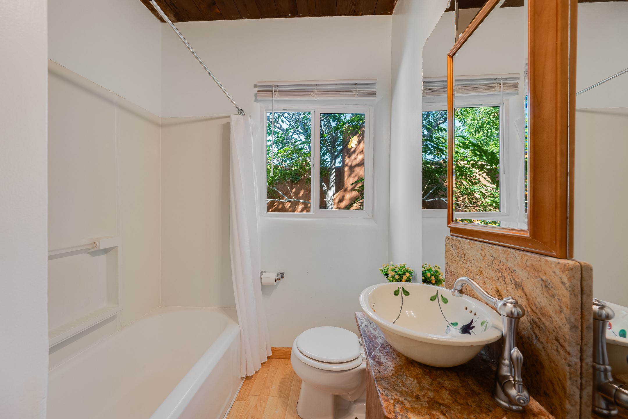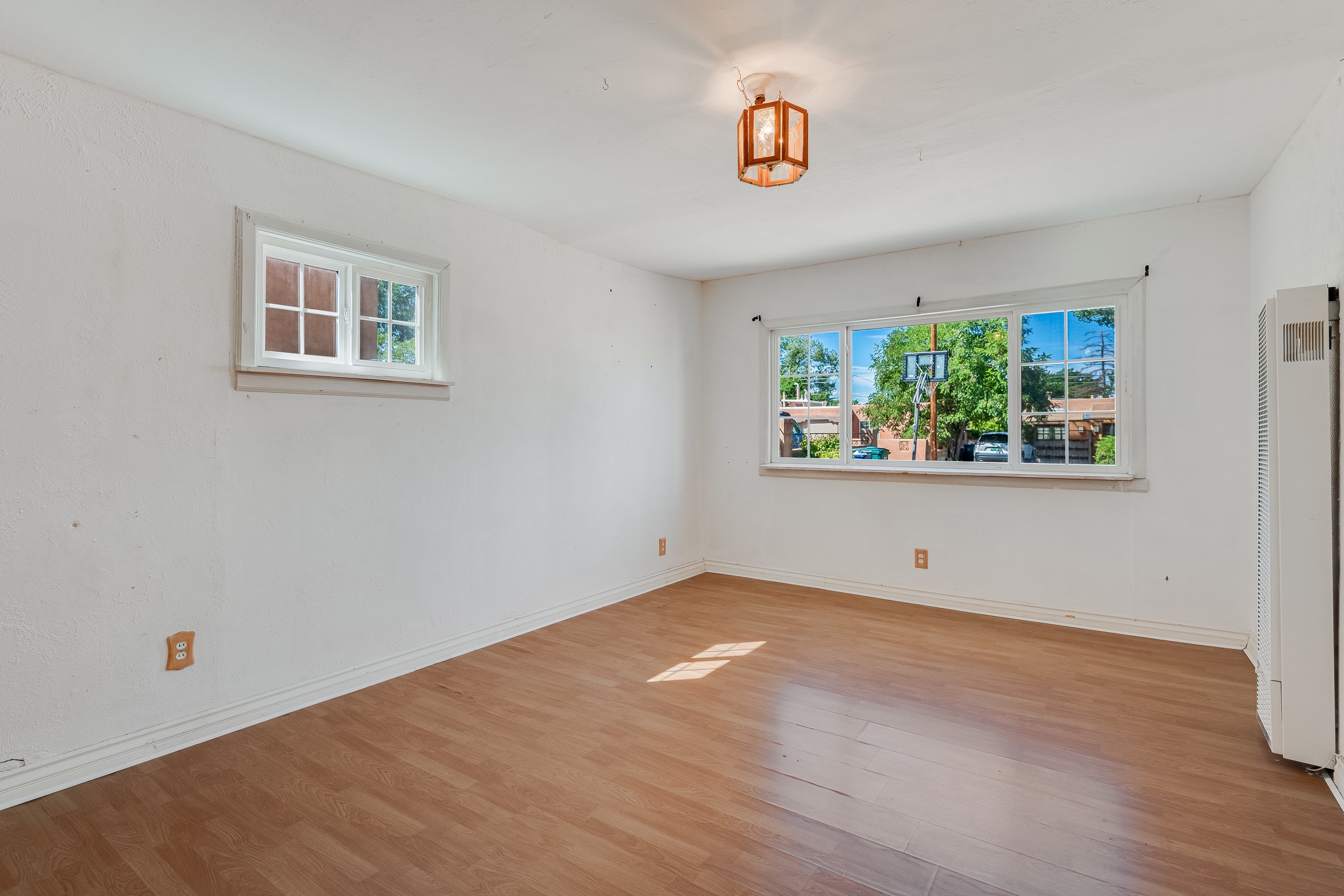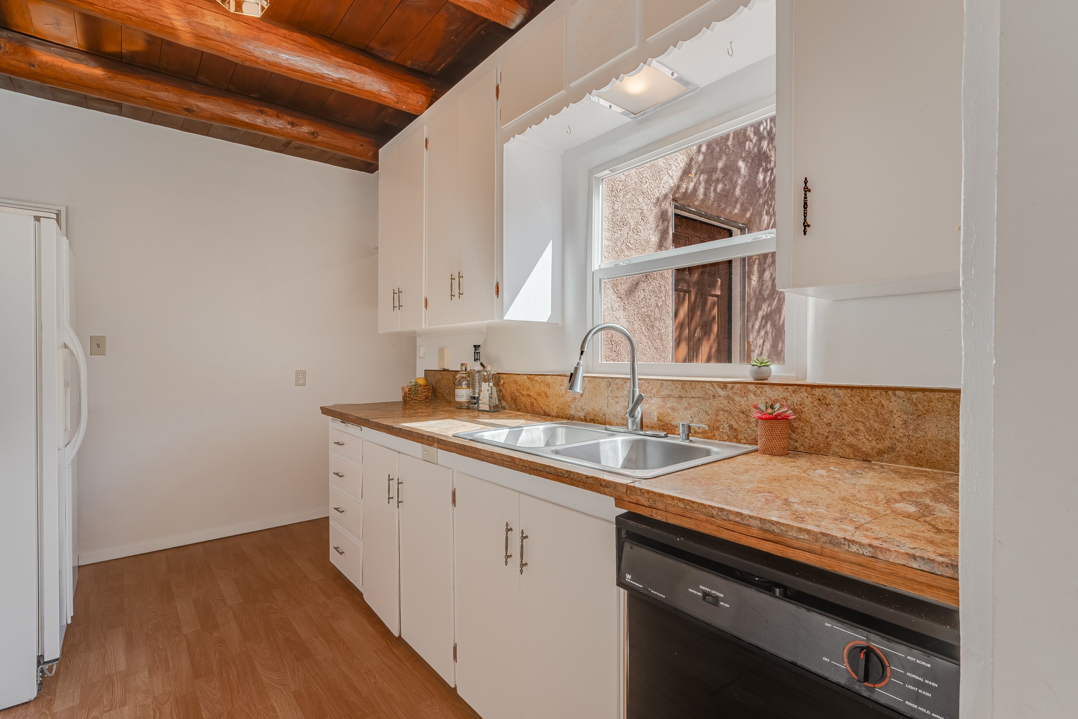 This charming three-bedroom single-level home is located a stone's throw from downtown Santa Fe. The original Stamm design features vigas, wood floors, a corner kiva fireplace, and a converted garage centered, on a generous 1/8 acre lot. The 1,334+/- square foot floor plan offers excellent bones to build upon. The primary bedroom and two additional rooms benefit from large newer windows for plenty of natural light. Some other updates include granite countertops, a partially renovated hallway bathroom, roof work in 2024 and stucco around 2022. Whether you're looking to build equity, generate passive income, or settle into a friendly area with character, this home's value, location, and potential combine for a compelling opportunity.