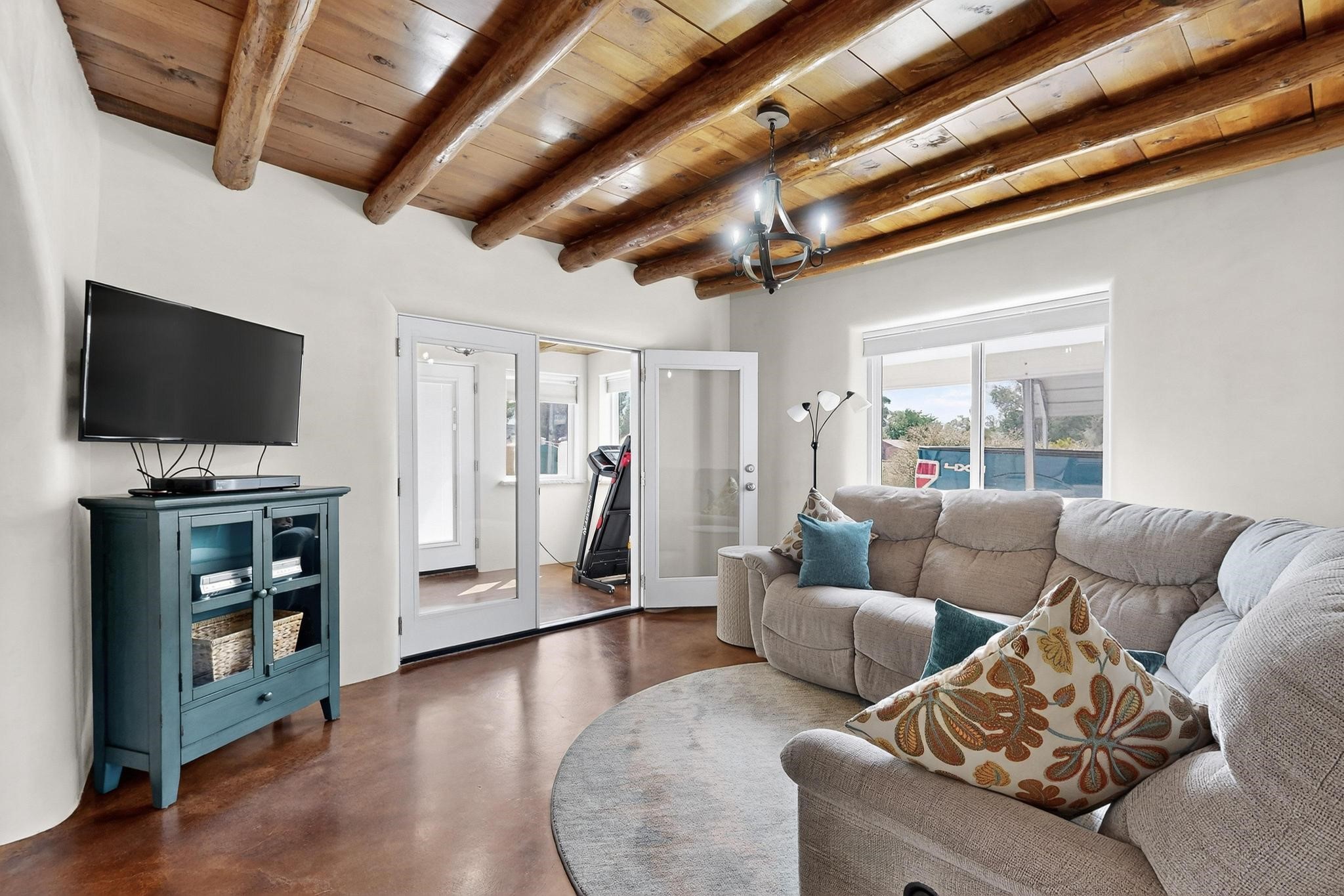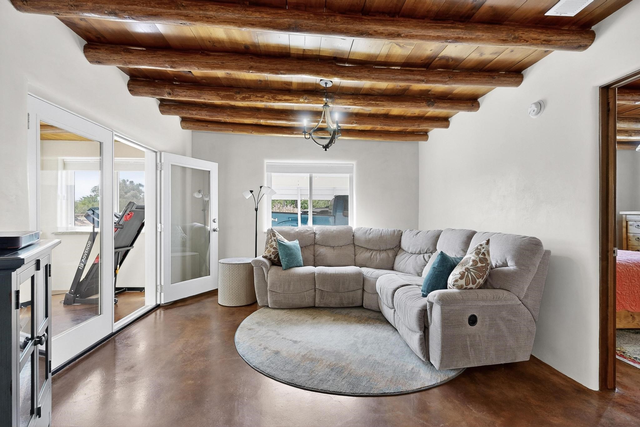 Beautiful home located in Pena Blanca. The home is located on .52 +/- acres. Outdoor areas include a walled courtyard with mature landscaping, fruit trees, and a small vineyard and 2 covered parking spaces. Adobe built home with stunning finishes such as viga ceilings, stained concrete floors, diamond finished walls and archways. The kitchen boasts granite countertops and an eat-in island with a separate large formal dining room. A 10X14 adobe storage building and a 10X12 Morgan Metal Storage is also located on the property. The property has community water plus a private well for irrigation. The private septic system is maintained by the community water and sanitation district. Newly replaced electrical and plumbing/heating/cooling systems. Easy commute via I-25 to Santa Fe and Albuquerque. Convenient access to Cochiti Lake.