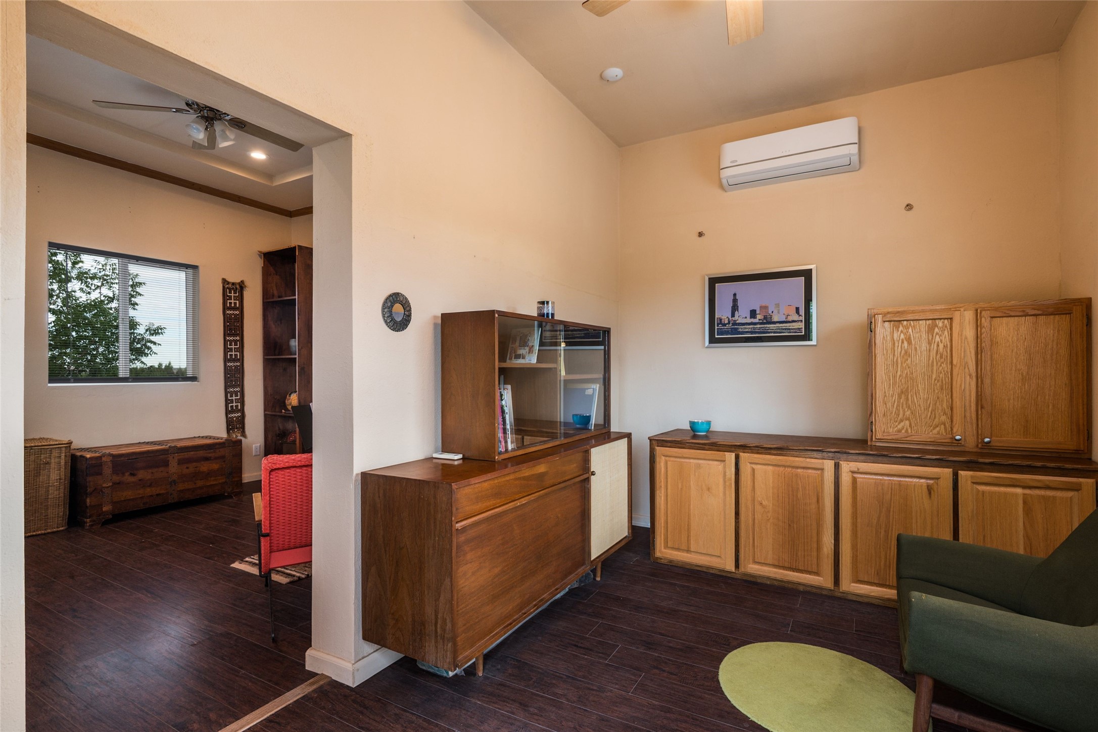 Discover the perfect Placitas home that offers peace, stunning views, charm, and an ideal location. This meticulously maintained single-level residence features 3 bedrooms and 2 bathrooms, with an updated kitchen including a Wolf cooktop. The spacious 3-car garage is ideal for parking or a workshop, and a separate 351 sq ft heated and cooled building provides versatile space as an office, studio, or craft room. Located at the end of a quiet road, it's just a 35-minute drive to Santa Fe, close to the RailRunner, grocery stores, golf, and amenities. The home boasts beautiful stone floors throughout, with brick flooring and a large walk-in closet in the primary suite. The landscaped front courtyard and covered patio offers breathtaking mountain views, perfect for relaxing and entertaining.