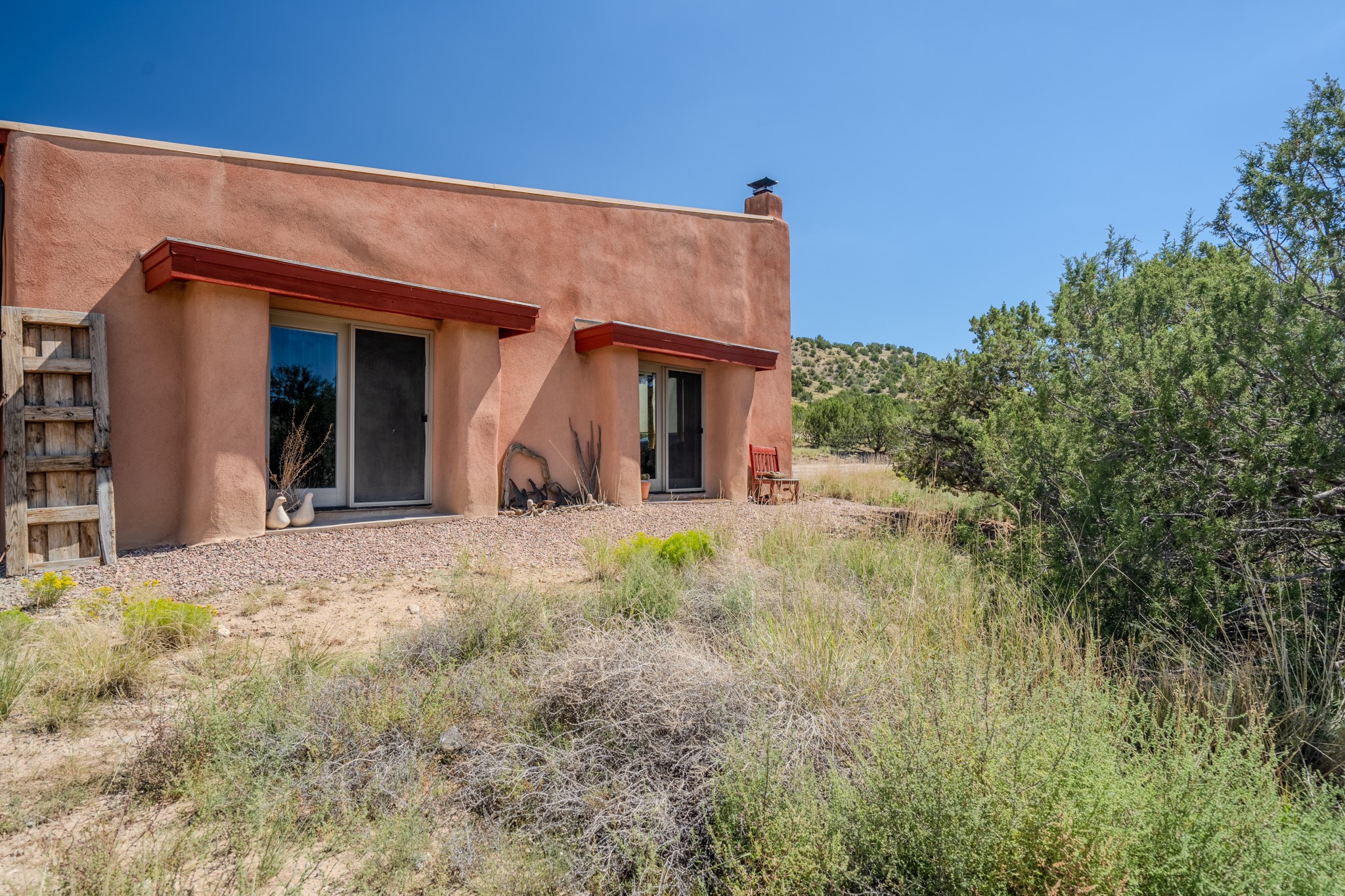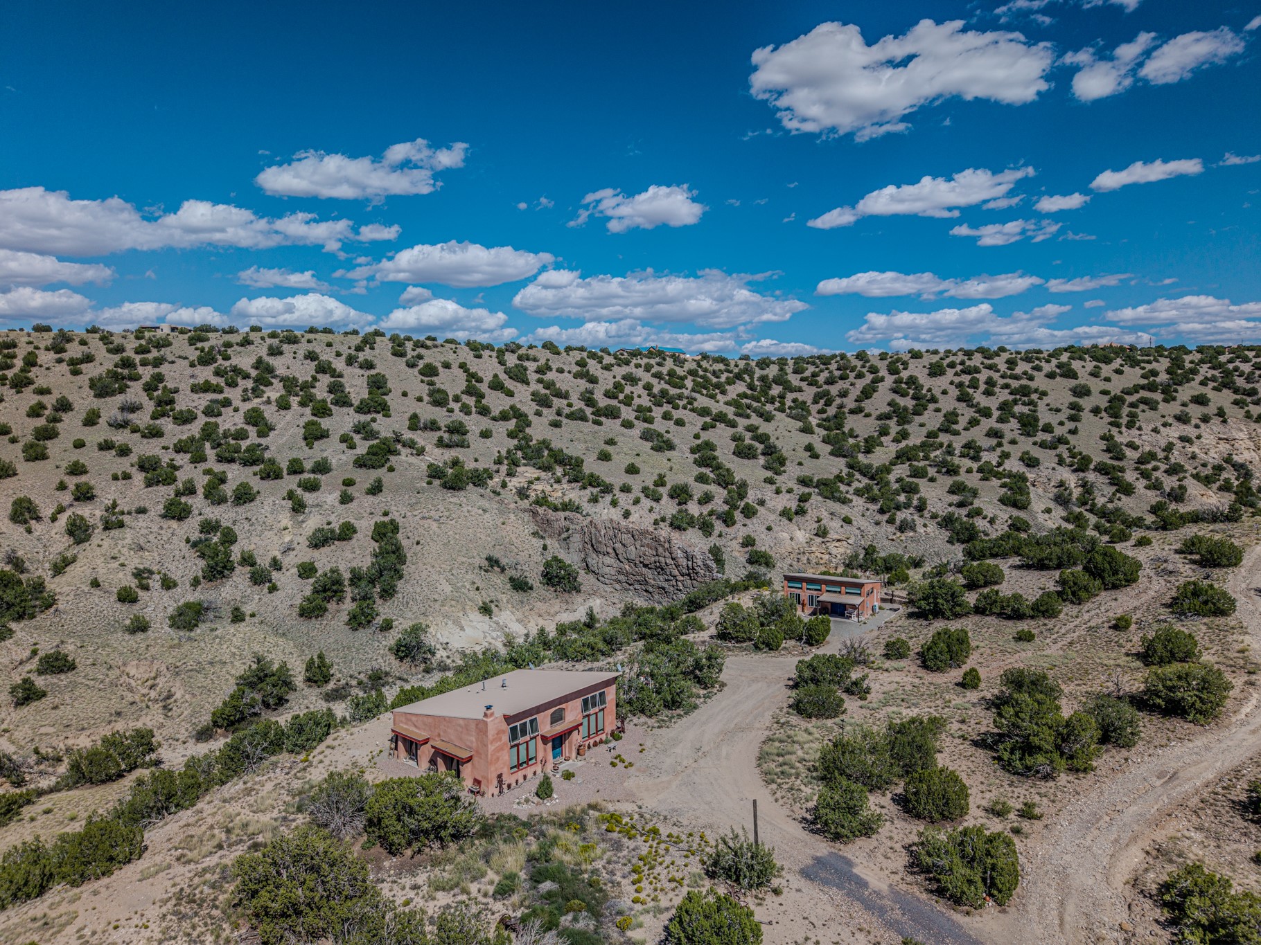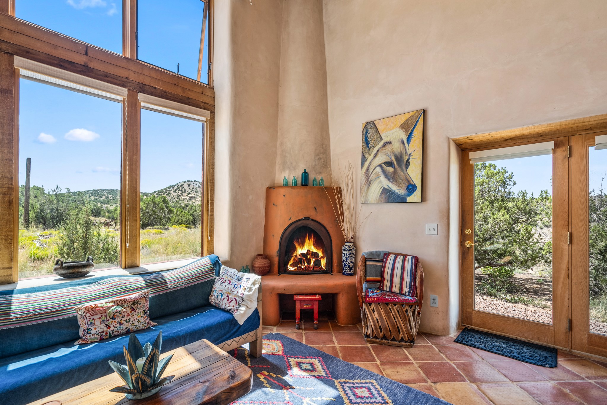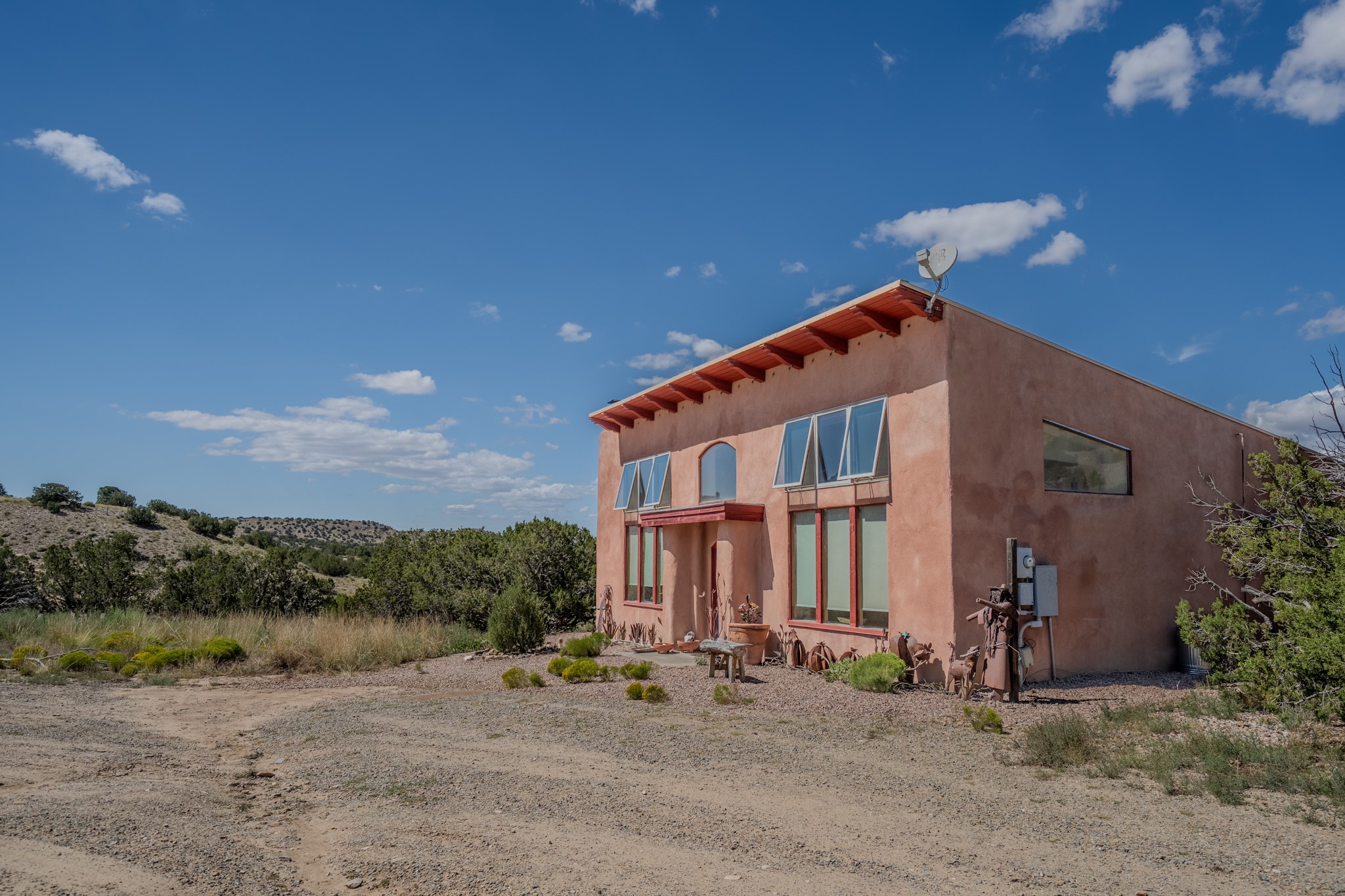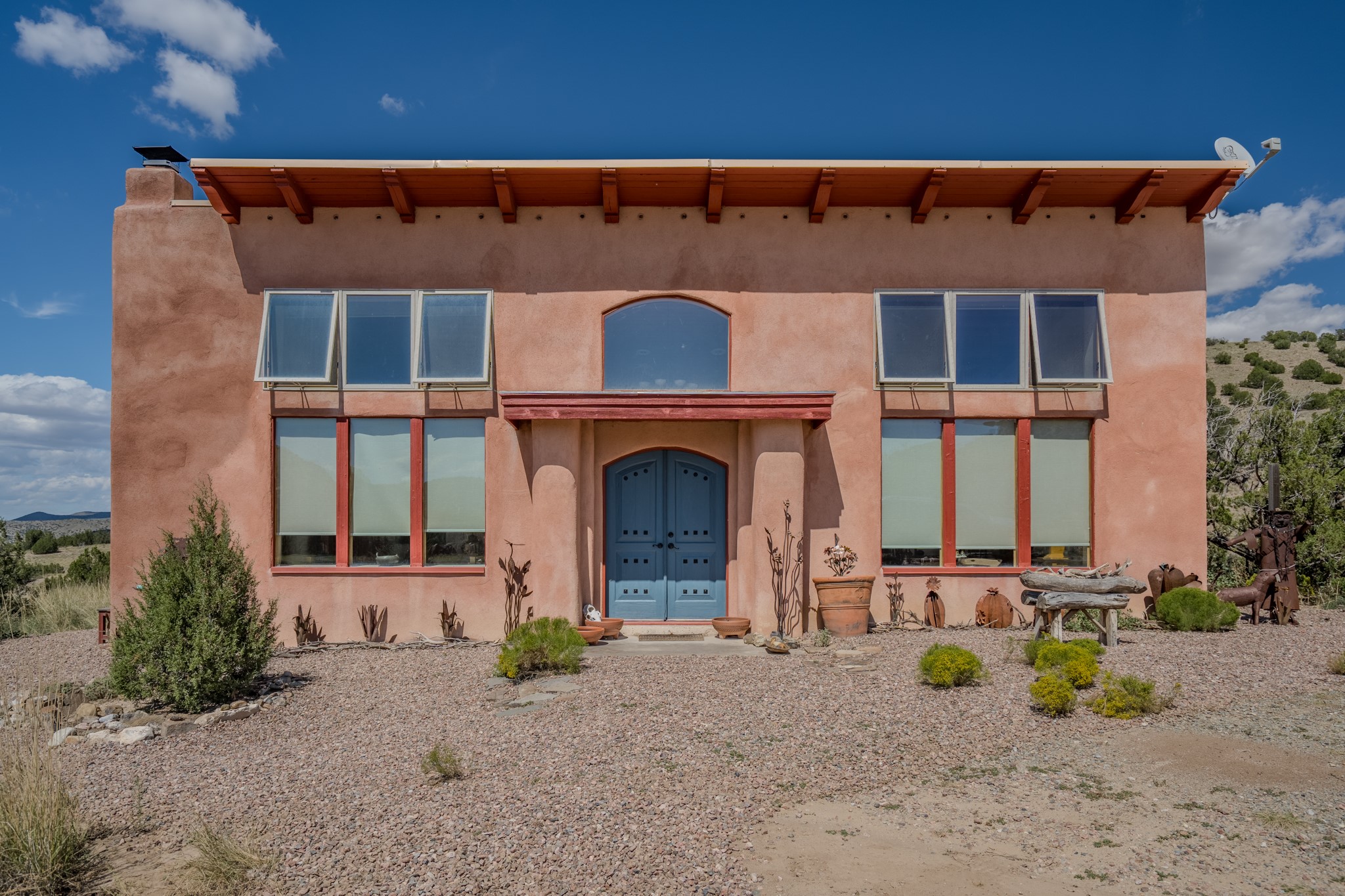 Welcome to this amazing straw-bale home and guest house / studio on 10.47 of the most serene acres with tremendous mountain and rolling hill views. Take morning and afternoon hikes on your own property and enjoy the tranquil sun rays while making new tracks on the well-preserved and undisturbed land that runs abound. The main home features an open floor plan with an ensuite primary bedroom and a large guest bedroom with fantastic views. The kitchen has been totally updated with a newer appliance package and gorgeous tile work. The main home has radiant in-floor heating. The detached 768 square foot casita has a 3/4 bath and full kitchen, a mini split system that heats and cools, and plenty of large windows which provide an abundance of interior natural light and stupendous, panoramic views-- perfect for family, friends or as a substantial income provider. Both buildings are positioned well as they face the surrounding mountains while taking in the afternoon, south-facing sun which provides optimum solar gain. New Septic installed 5 years ago and a new well installed 8 years ago. This property also includes a fantastic and unique rock outcropping feature that really makes it just a little more special than the rest. This is one of the most unique and beautiful properties in the Cerrillos area .... Please come and take a look!!