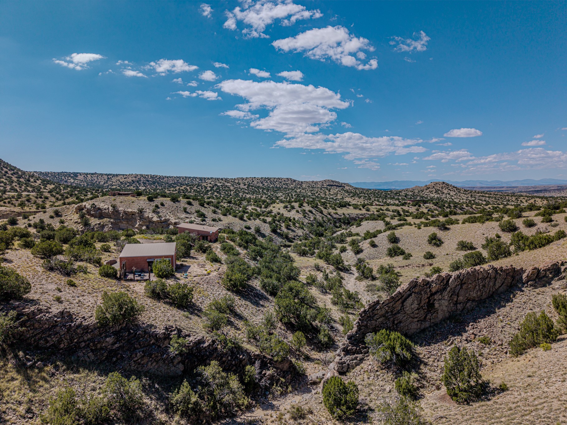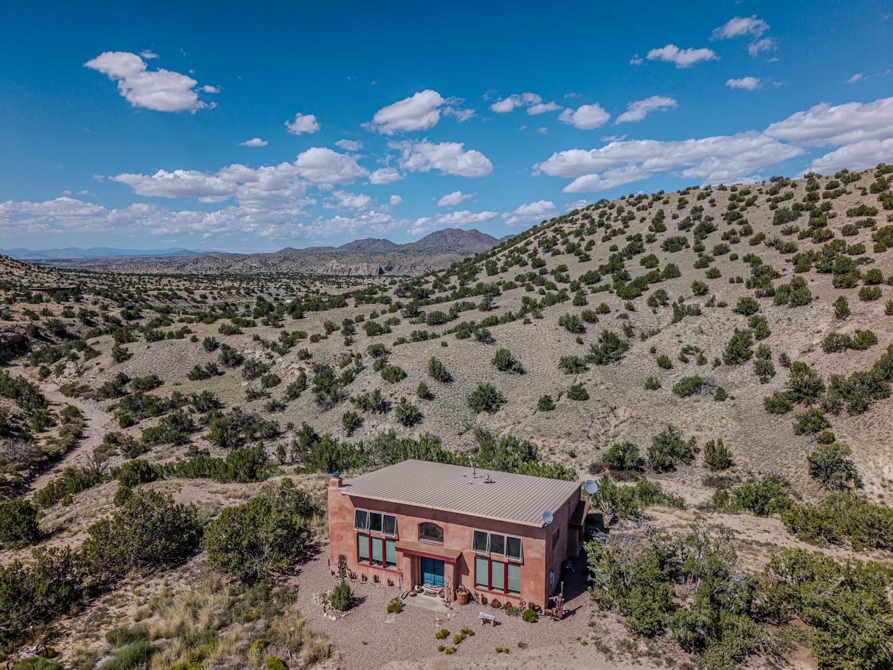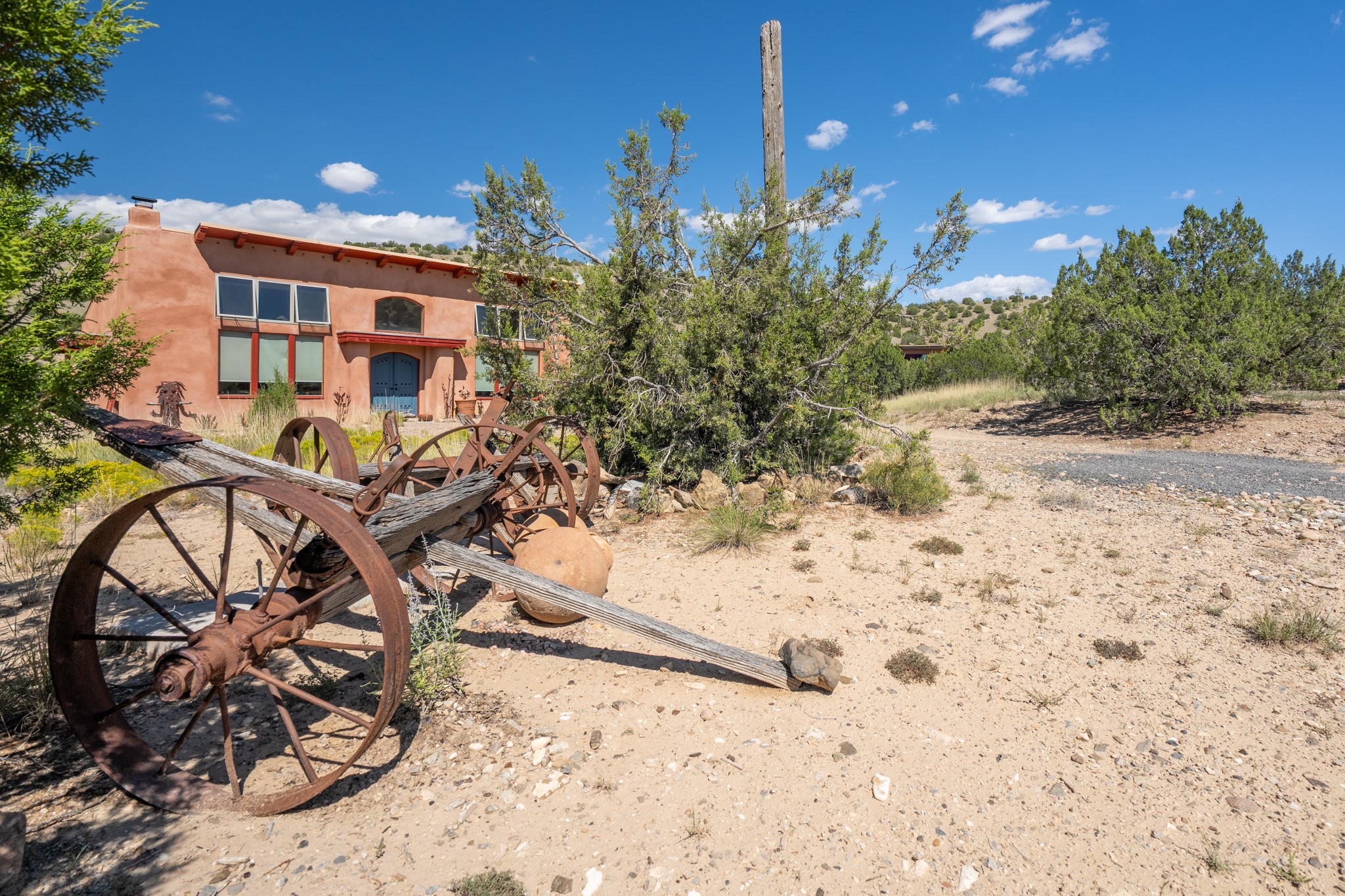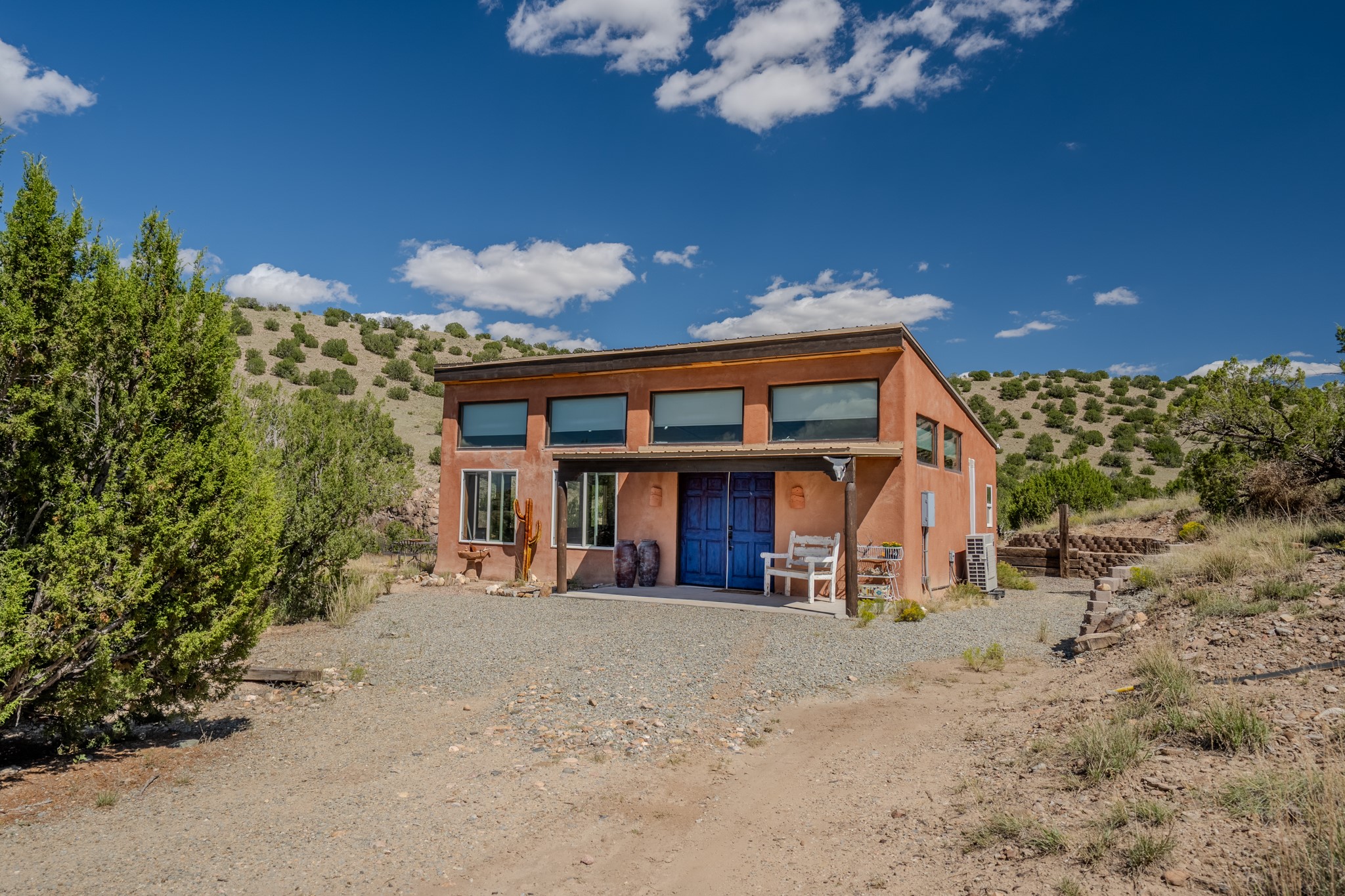 Welcome to this amazing straw-bale home and guest house / studio on 10.47 of the most serene acres with tremendous mountain and rolling hill views. Take morning and afternoon hikes on your own property and enjoy the tranquil sun rays while making new tracks on the well-preserved and undisturbed land that runs abound. The main home features an open floor plan with an ensuite primary bedroom and a large guest bedroom with fantastic views. The kitchen has been totally updated with a newer appliance package and gorgeous tile work. The main home has radiant in-floor heating. The detached 768 square foot casita has a 3/4 bath and full kitchen, a mini split system that heats and cools, and plenty of large windows which provide an abundance of interior natural light and stupendous, panoramic views-- perfect for family, friends or as a substantial income provider. Both buildings are positioned well as they face the surrounding mountains while taking in the afternoon, south-facing sun which provides optimum solar gain. New Septic installed 5 years ago and a new well installed 8 years ago. This property also includes a fantastic and unique rock outcropping feature that really makes it just a little more special than the rest. This is one of the most unique and beautiful properties in the Cerrillos area .... Please come and take a look!!