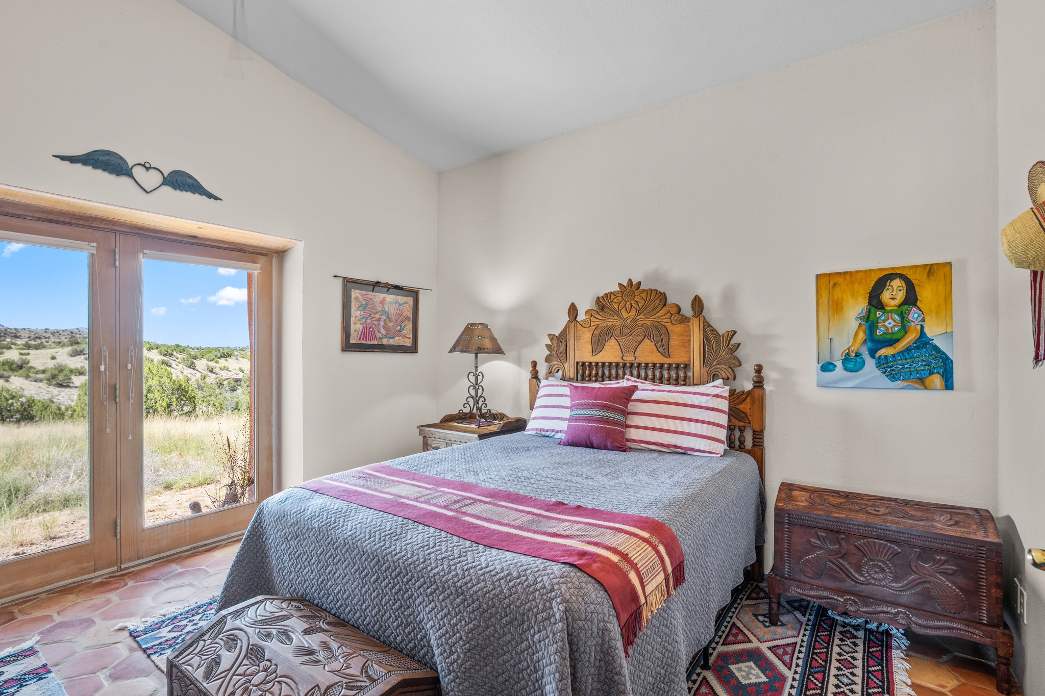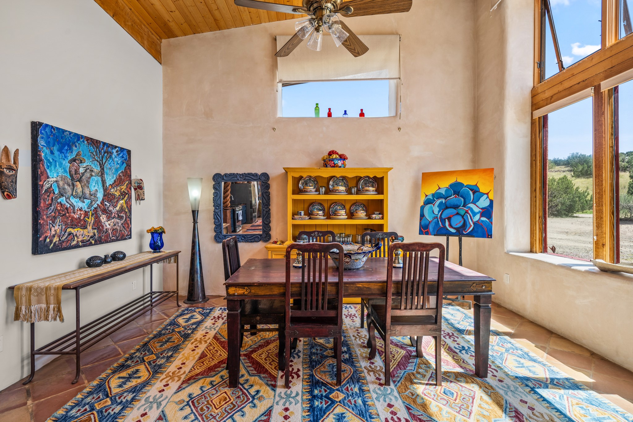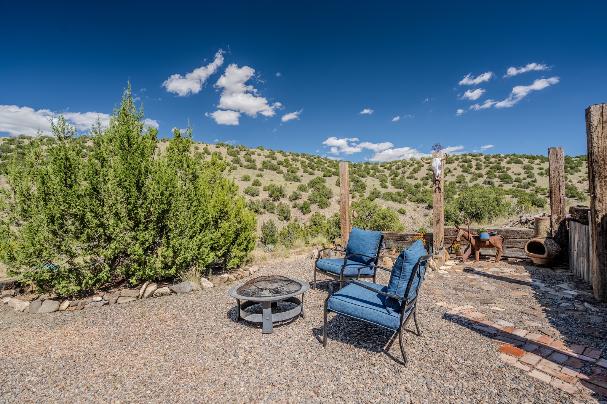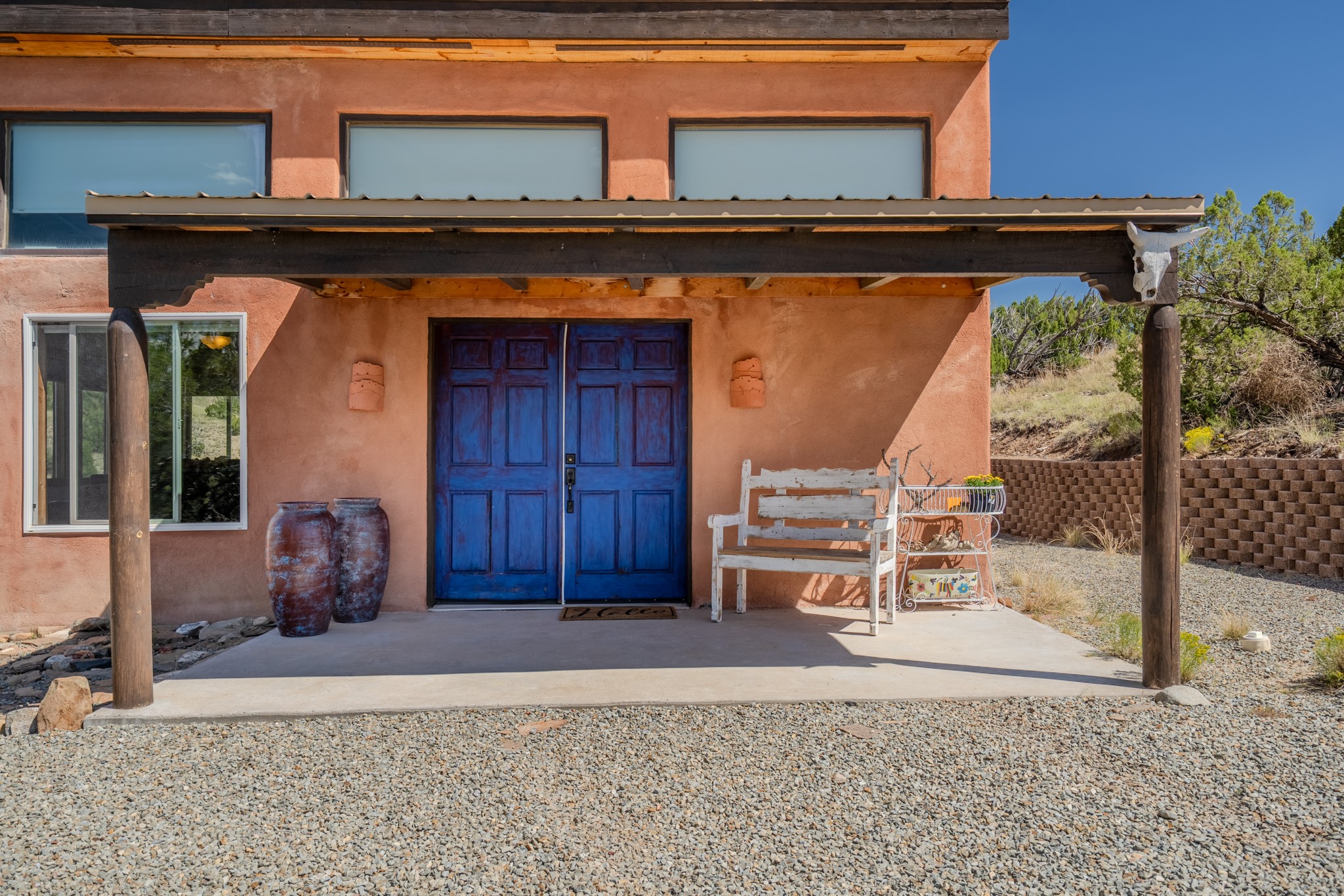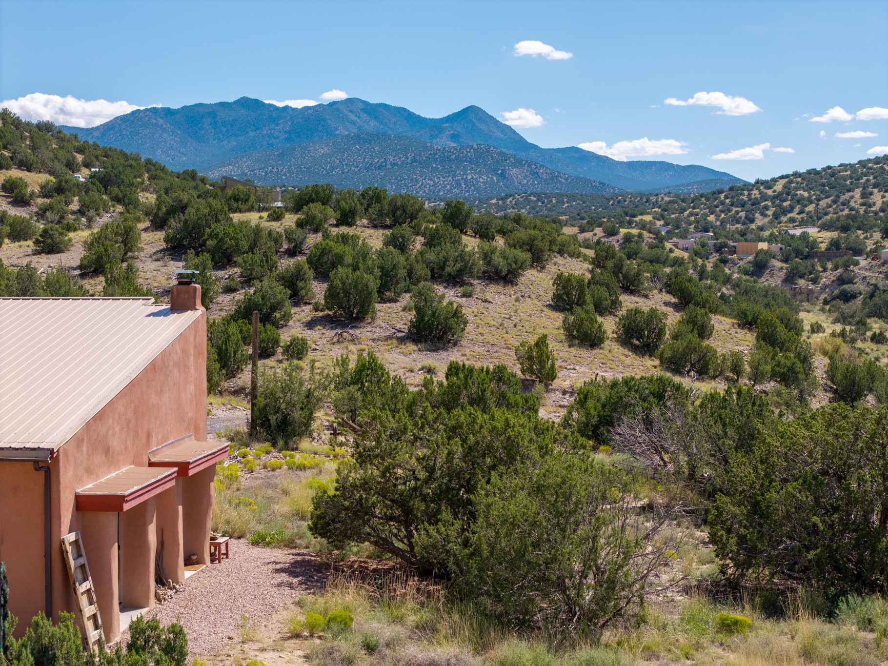 Welcome to this amazing straw-bale home and guest house / studio on 10.47 of the most serene acres with tremendous mountain and rolling hill views. Take morning and afternoon hikes on your own property and enjoy the tranquil sun rays while making new tracks on the well-preserved and undisturbed land that runs abound. The main home features an open floor plan with an ensuite primary bedroom and a large guest bedroom with fantastic views. The kitchen has been totally updated with a newer appliance package and gorgeous tile work. The main home has radiant in-floor heating. The detached 768 square foot casita has a 3/4 bath and full kitchen, a mini split system that heats and cools, and plenty of large windows which provide an abundance of interior natural light and stupendous, panoramic views-- perfect for family, friends or as a substantial income provider. Both buildings are positioned well as they face the surrounding mountains while taking in the afternoon, south-facing sun which provides optimum solar gain. New Septic installed 5 years ago and a new well installed 8 years ago. This property also includes a fantastic and unique rock outcropping feature that really makes it just a little more special than the rest. This is one of the most unique and beautiful properties in the Cerrillos area .... Please come and take a look!!