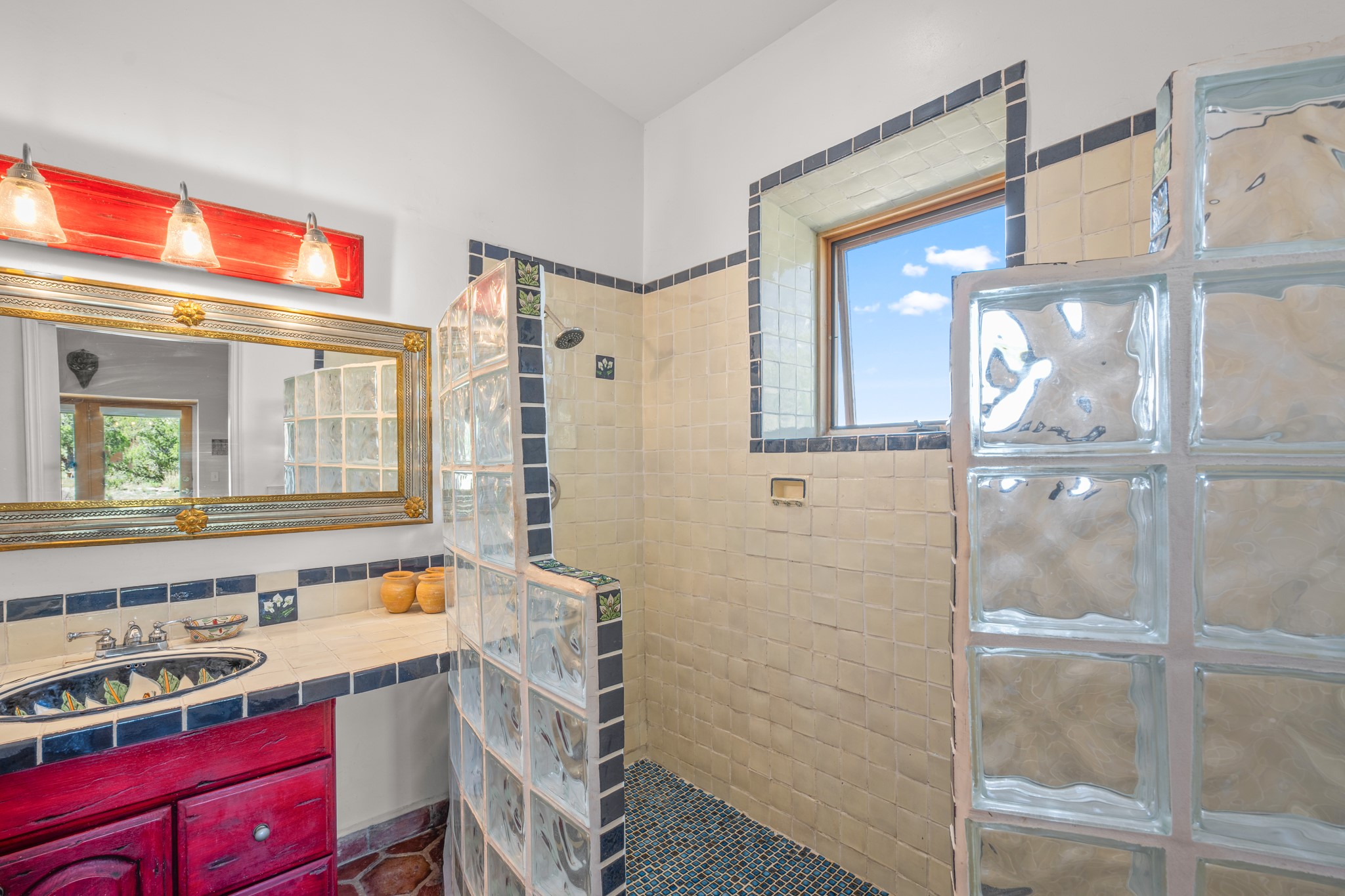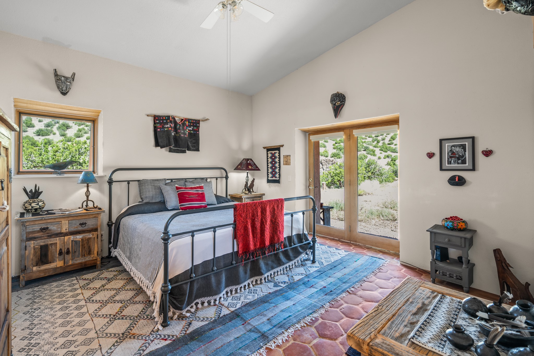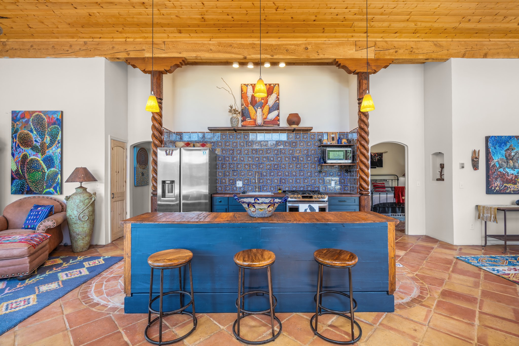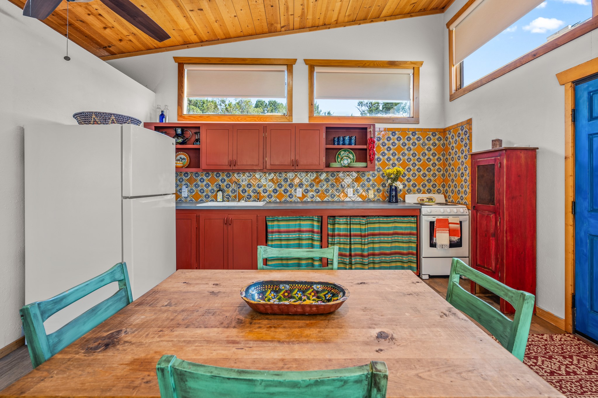 Welcome to this amazing straw-bale home and guest house / studio on 10.47 of the most serene acres with tremendous mountain and rolling hill views. Take morning and afternoon hikes on your own property and enjoy the tranquil sun rays while making new tracks on the well-preserved and undisturbed land that runs abound. The main home features an open floor plan with an ensuite primary bedroom and a large guest bedroom with fantastic views. The kitchen has been totally updated with a newer appliance package and gorgeous tile work. The main home has radiant in-floor heating. The detached 768 square foot casita has a 3/4 bath and full kitchen, a mini split system that heats and cools, and plenty of large windows which provide an abundance of interior natural light and stupendous, panoramic views-- perfect for family, friends or as a substantial income provider. Both buildings are positioned well as they face the surrounding mountains while taking in the afternoon, south-facing sun which provides optimum solar gain. New Septic installed 5 years ago and a new well installed 8 years ago. This property also includes a fantastic and unique rock outcropping feature that really makes it just a little more special than the rest. This is one of the most unique and beautiful properties in the Cerrillos area .... Please come and take a look!!