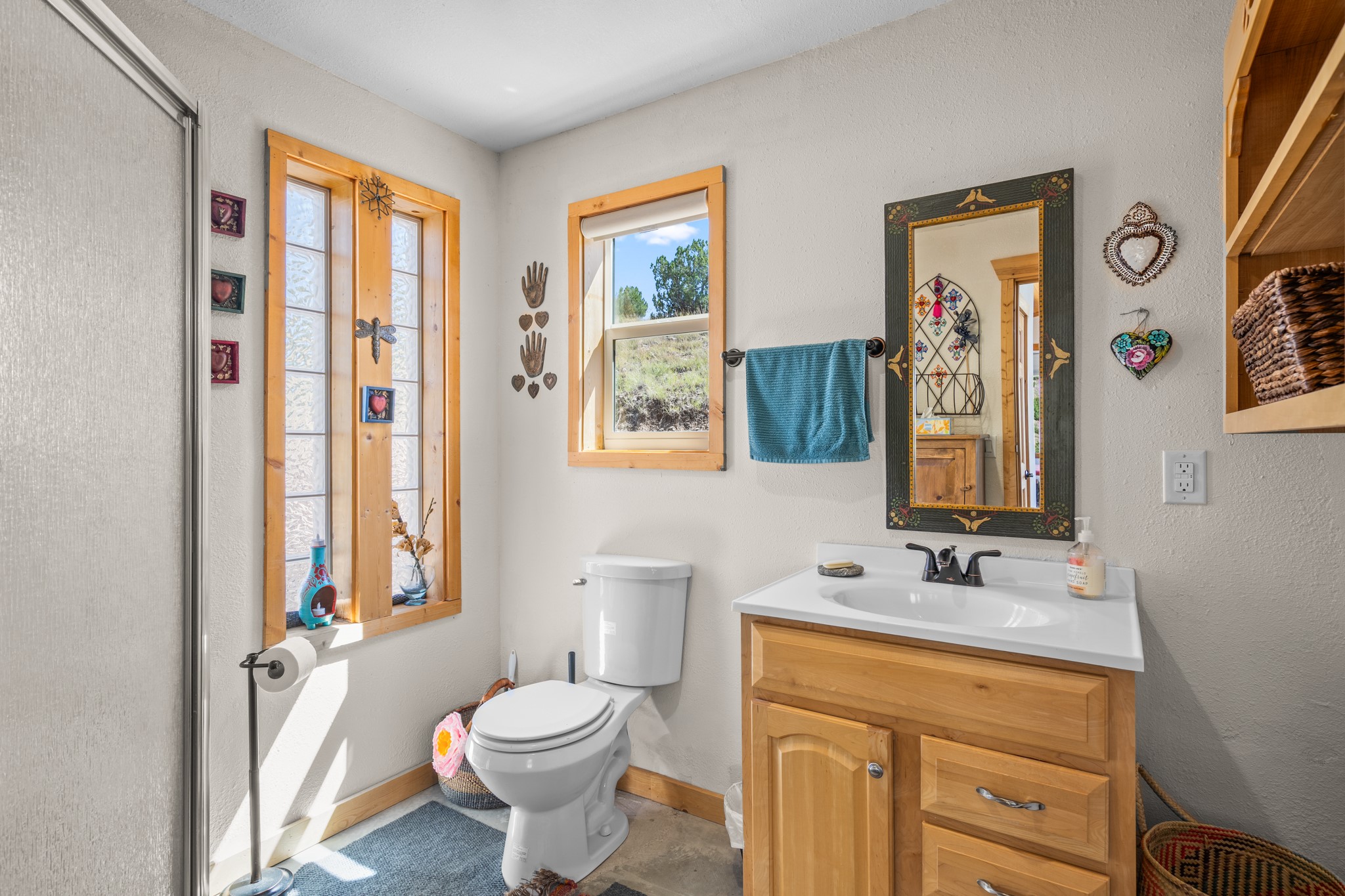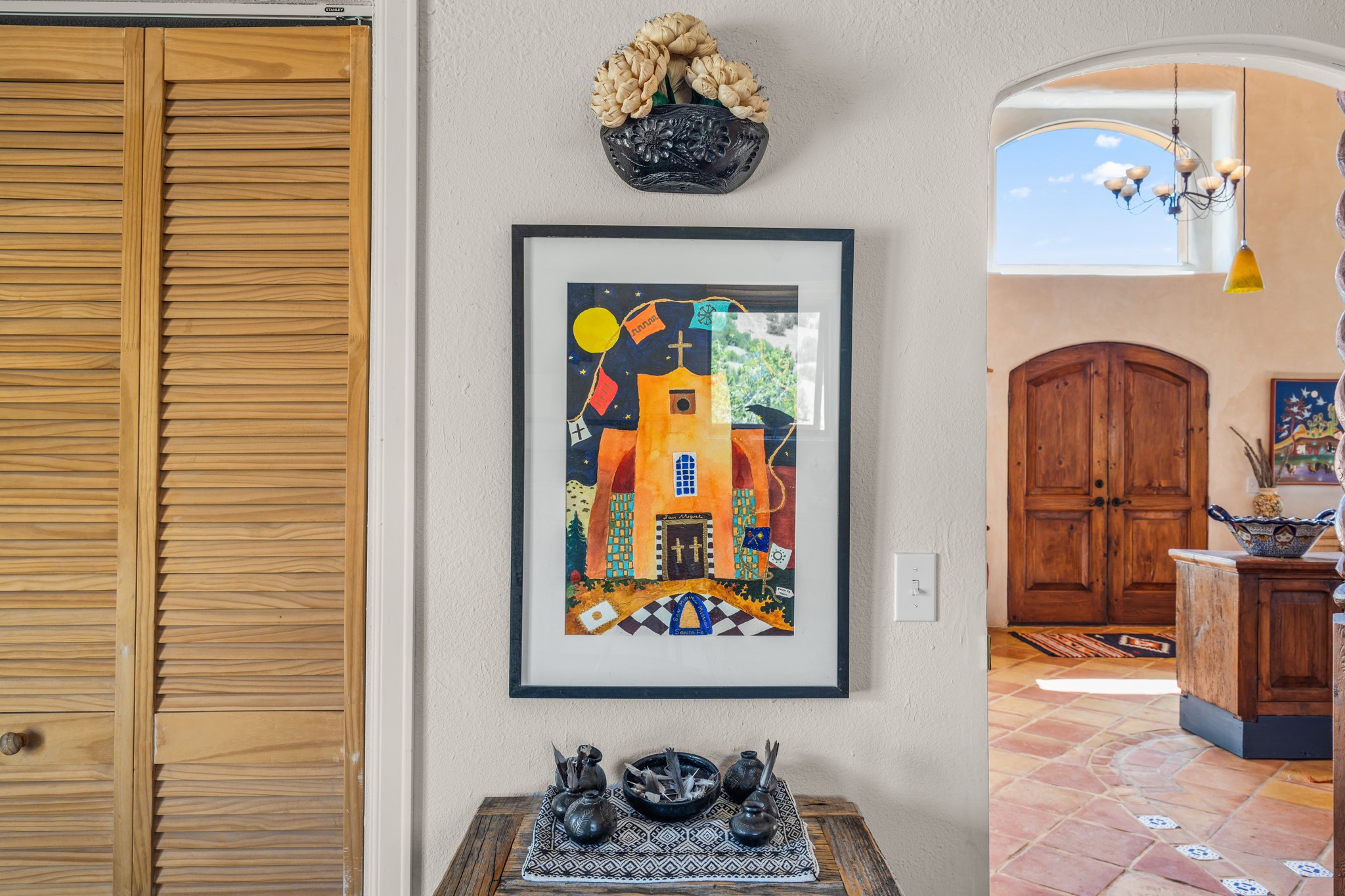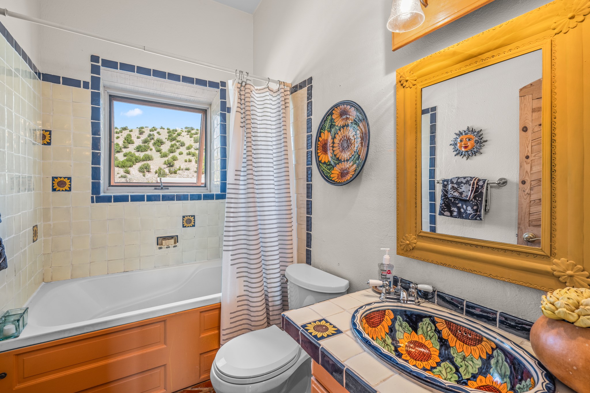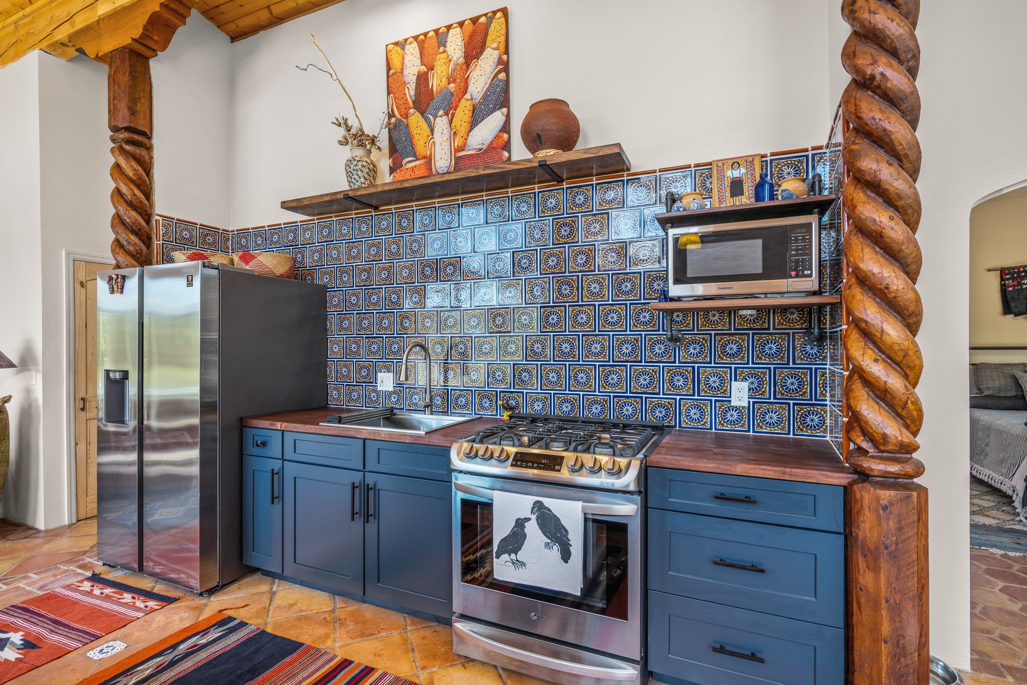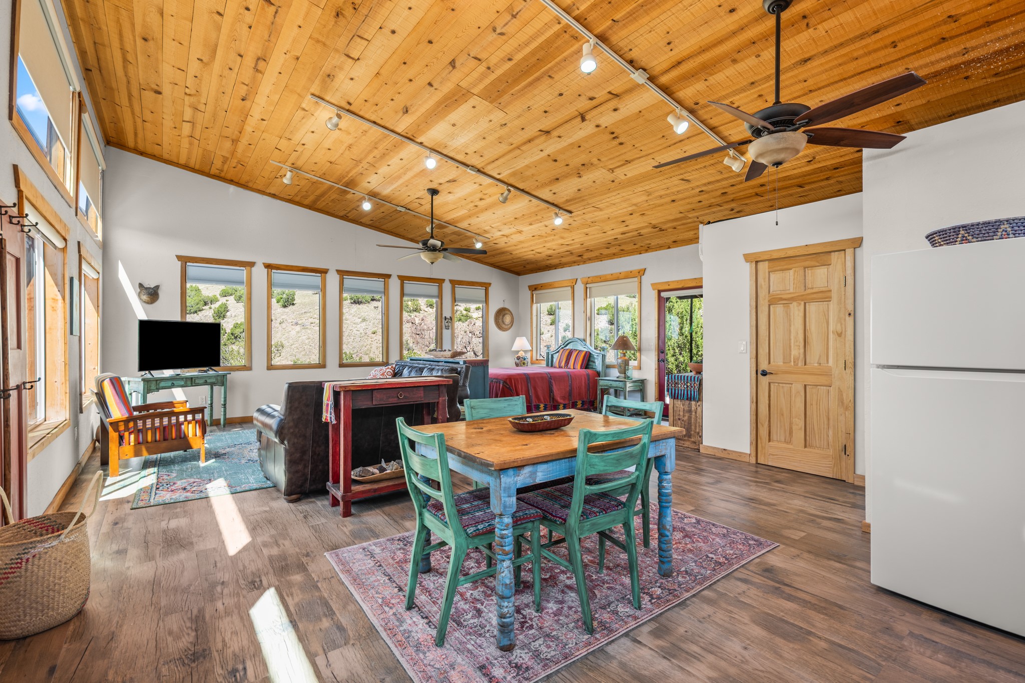 Welcome to this amazing straw-bale home and guest house / studio on 10.47 of the most serene acres with tremendous mountain and rolling hill views. Take morning and afternoon hikes on your own property and enjoy the tranquil sun rays while making new tracks on the well-preserved and undisturbed land that runs abound. The main home features an open floor plan with an ensuite primary bedroom and a large guest bedroom with fantastic views. The kitchen has been totally updated with a newer appliance package and gorgeous tile work. The main home has radiant in-floor heating. The detached 768 square foot casita has a 3/4 bath and full kitchen, a mini split system that heats and cools, and plenty of large windows which provide an abundance of interior natural light and stupendous, panoramic views-- perfect for family, friends or as a substantial income provider. Both buildings are positioned well as they face the surrounding mountains while taking in the afternoon, south-facing sun which provides optimum solar gain. New Septic installed 5 years ago and a new well installed 8 years ago. This property also includes a fantastic and unique rock outcropping feature that really makes it just a little more special than the rest. This is one of the most unique and beautiful properties in the Cerrillos area .... Please come and take a look!!