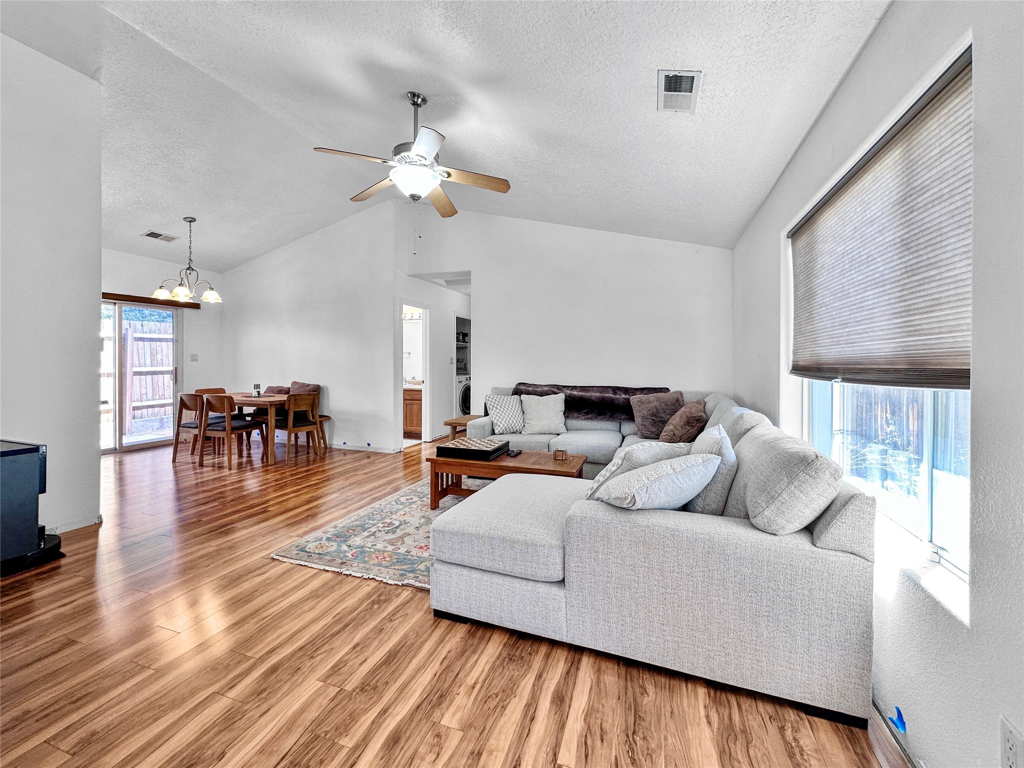 Come view this cozy three bedroom, two bathroom, two-car garage home. Nestled in a centrally located neighborhood, this home offers convenient access to multiple main roads, shopping, and bike trails. Inside, the home offers and comfortable and functional layout that creates a comfortable living space for all. The design balances privacy and openness, with bedrooms in the back and common areas in the front of the home. The backyard is the perfect size for relaxing and entertaining without needing a lot of maintenance.