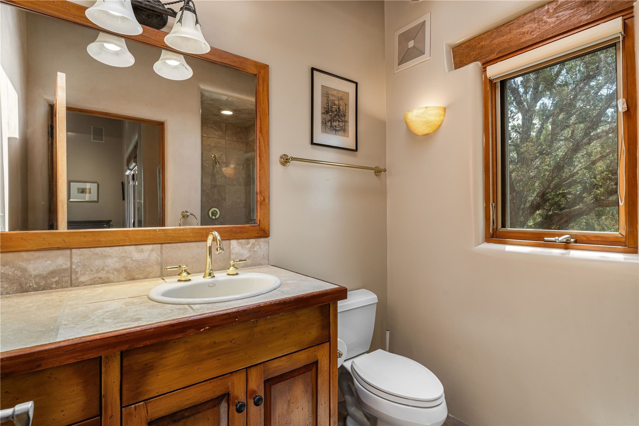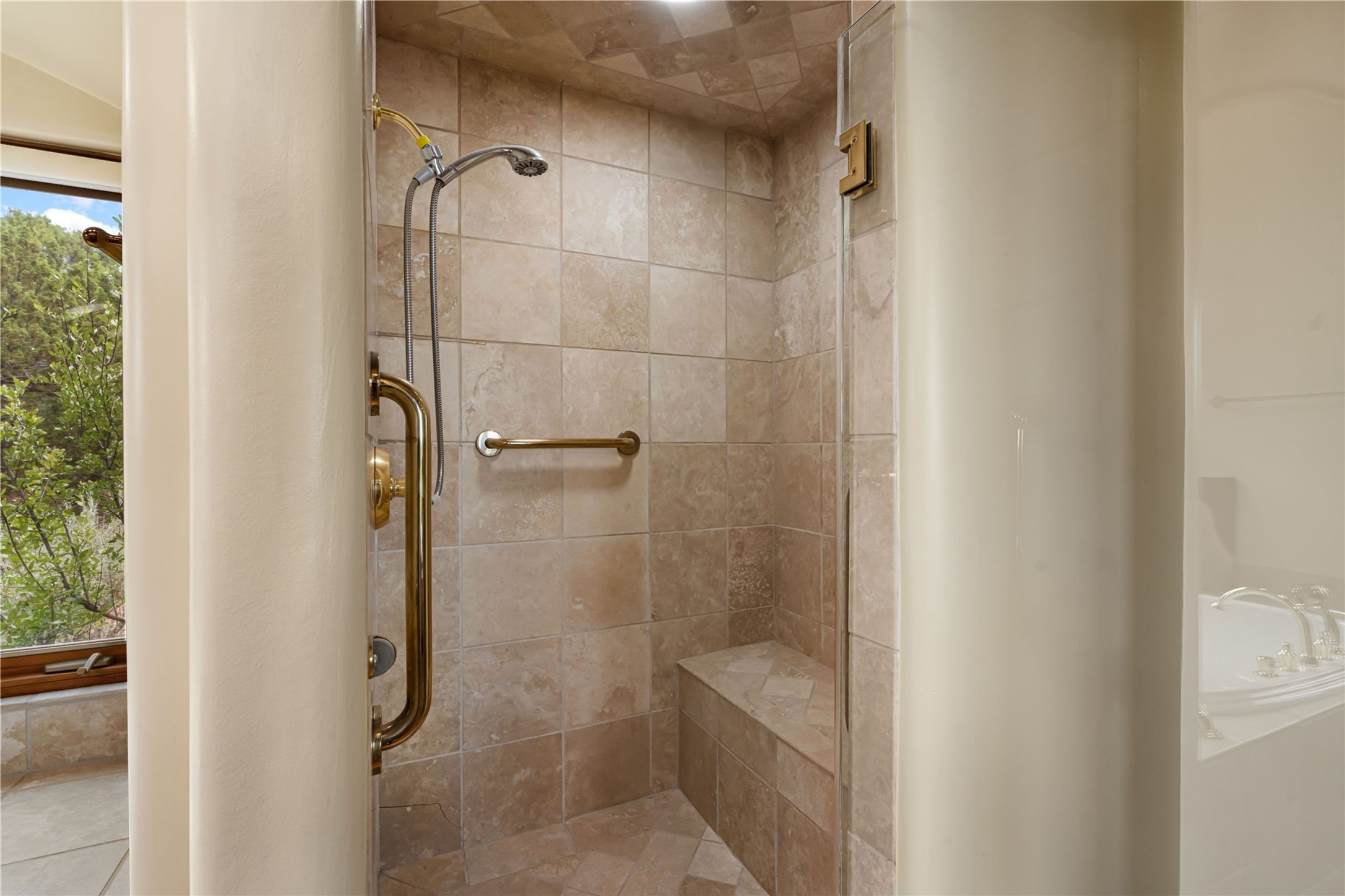 Tucked high up in Las Campanas on a generous 2.4-acre lot, this gorgeous Kim Dressel pueblo-style home is all about views, vibes, and space to breathe. From the moment you stroll through the professionally landscaped courtyard, you'll feel the magic--unobstructed vistas of the Jemez Mountains and sunsets that'll make you stop mid-sentence just to stare. Inside, it's a custom masterpiece. Think flagstone floors, hand-hewn beams, and those classic vigas that give it that warm, earthy soul. The ceilings and walls? Absolutely stunning, with textures and treatments that make every room feel like a work of art. Natural light pours in through expansive skylights, bouncing off the hand-troweled plaster walls and stone floors, creating that signature New Mexican glow. The chef's kitchen is a showstopper--top-tier appliances, loads of granite counter space, and a butler's pantry that's ready for your next dinner party or midnight snack run. And if you've got guests (or just want a little extra privacy), the attached casita is a sweet bonus: separate entrance, kitchenette, and all the cozy charm. You'll find two primary suites plus two additional bedroom suites--one even has its own mini kitchen and sitting room, perfect for long-term guests or multi-gen living. Whether you're hosting a formal gathering or kicking back in the informal living spaces, this home flows effortlessly. Over 1,000 square feet of private outdoor space to soak in the views, sip your morning coffee, or toast the sunset. With its perch on one of the highest lots in the area, you'll enjoy peace, privacy, and those jaw-dropping Northwest views over untouched land. This isn't just a house--it's a lifestyle. Come see it, feel it, fall in love.