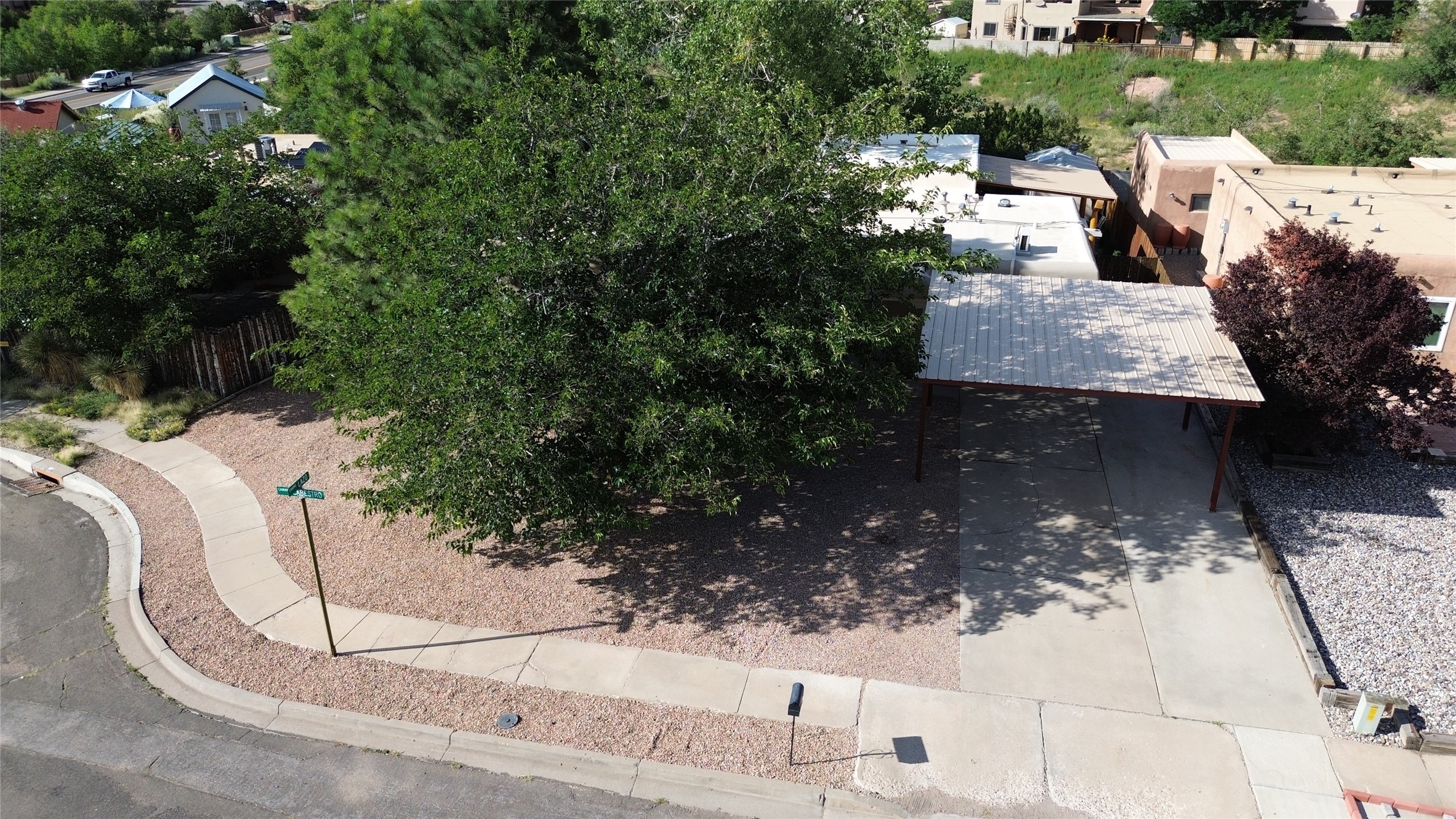 Tucked away in a quiet neighborhood, this home offers a perfect blend of classic Southwestern character and thoughtful modern upgrades. This 3-bedroom home, with a flexible den that can serve as a 4th bedroom or office, is move-in ready and full of possibilities. A recent addition brings warmth and wow-factor with tongue-and-groove ceilings, exposed vigas, a cultured stone accent wall, and a sleek electric fireplace. Dual sliding glass doors open the space to both a lush garden area and a covered patio--ideal for entertaining or enjoying peaceful mornings outdoors.Stay comfortable year-round with a brand-new mini-split system in the living room for efficient heating and cooling. Additional improvements include a newly built carport, providing covered parking and protection from the elements.Inside, you'll find a classic kiva fireplace in the den, and loads of natural light throughout. The front and backyard are beautifully landscaped with mature trees and a charming storage or garden shed that stays with the property.Located minutes from parks, schools, and shopping, this home is a rare blend of charm, comfort, and convenience in the heart of Santa Fe.