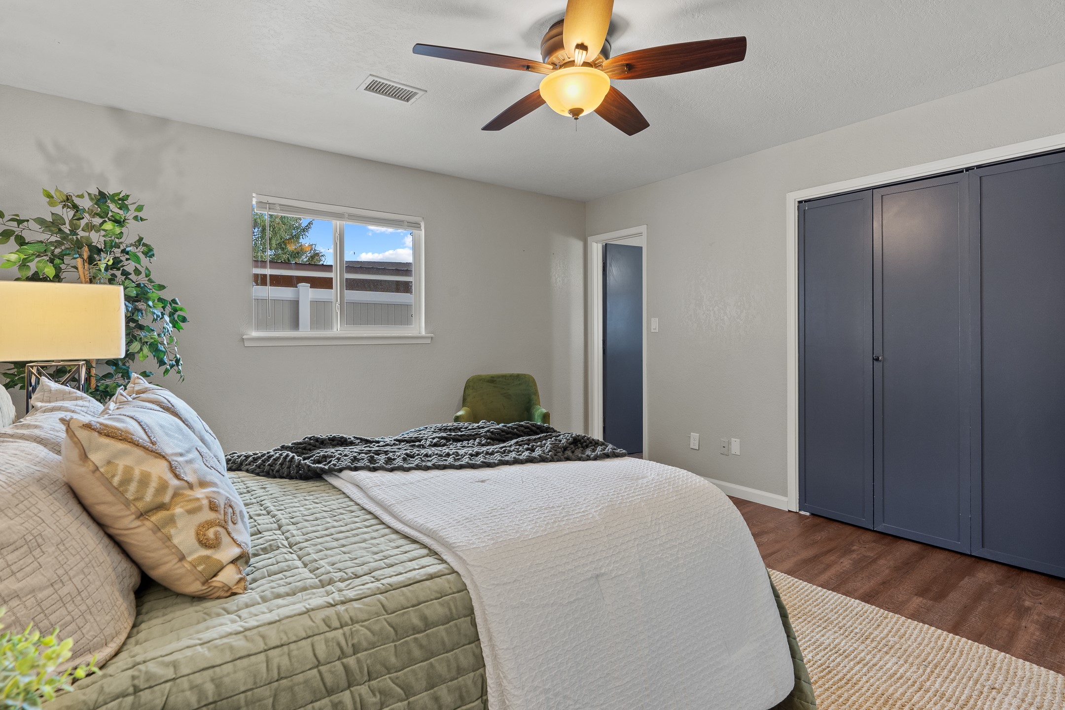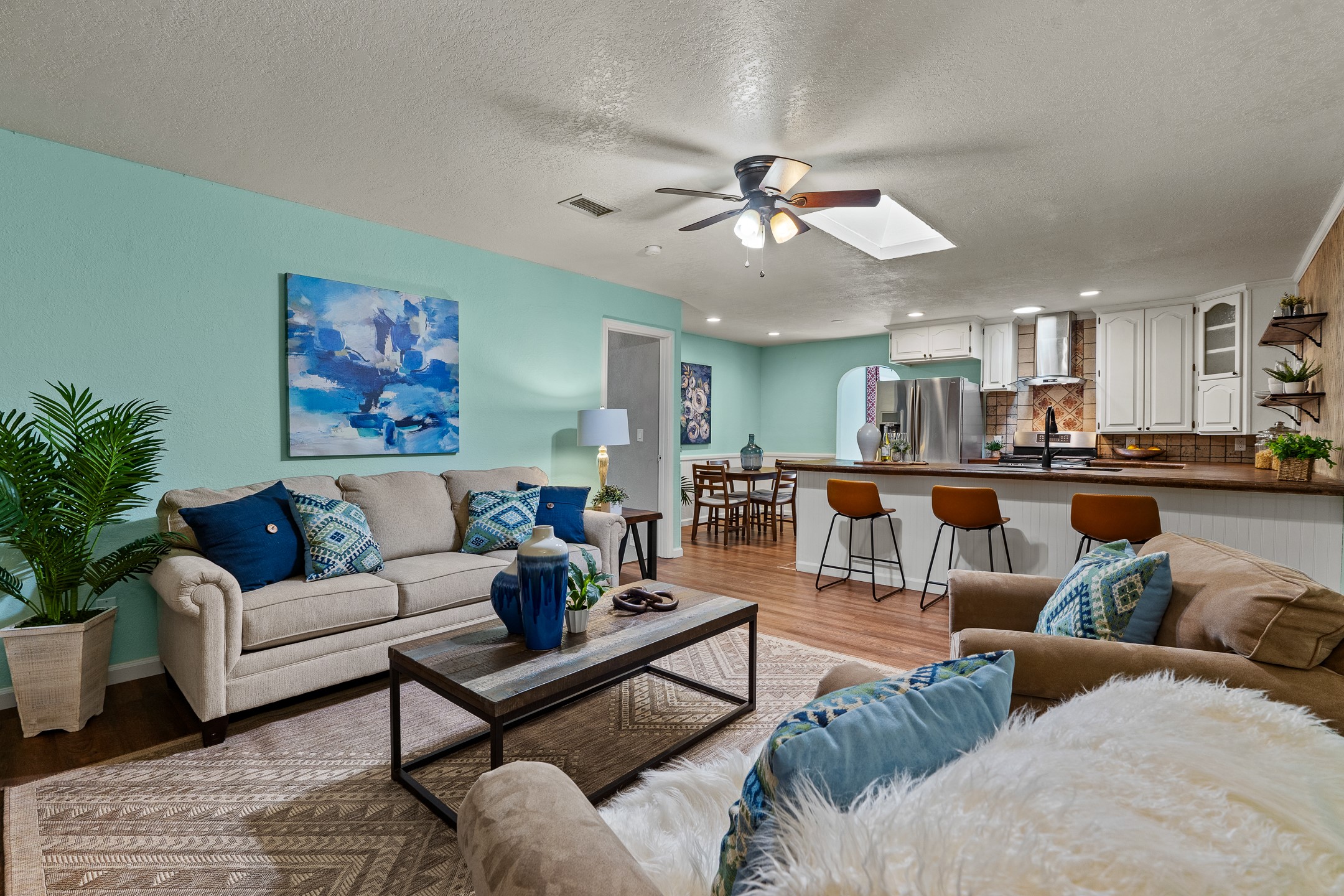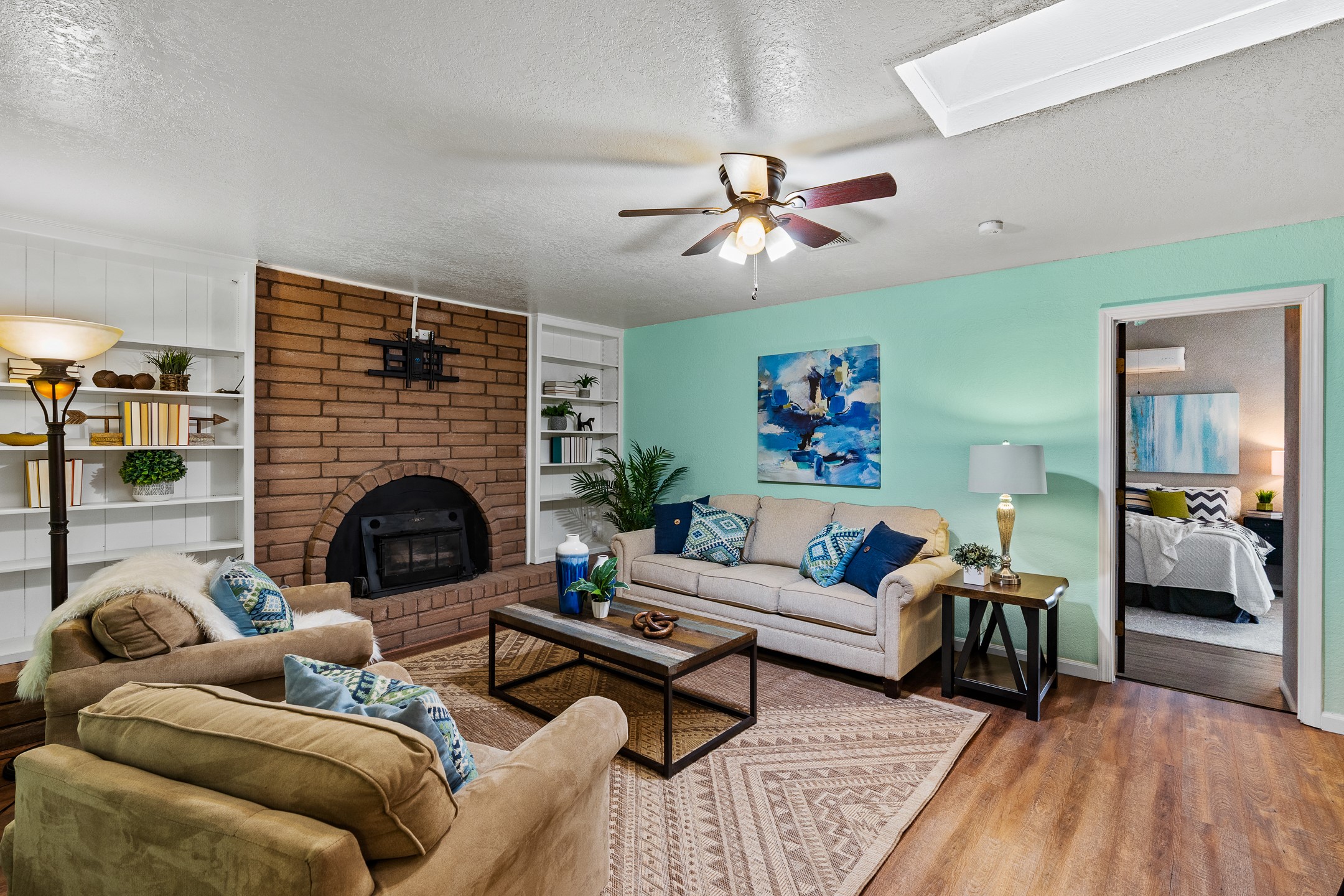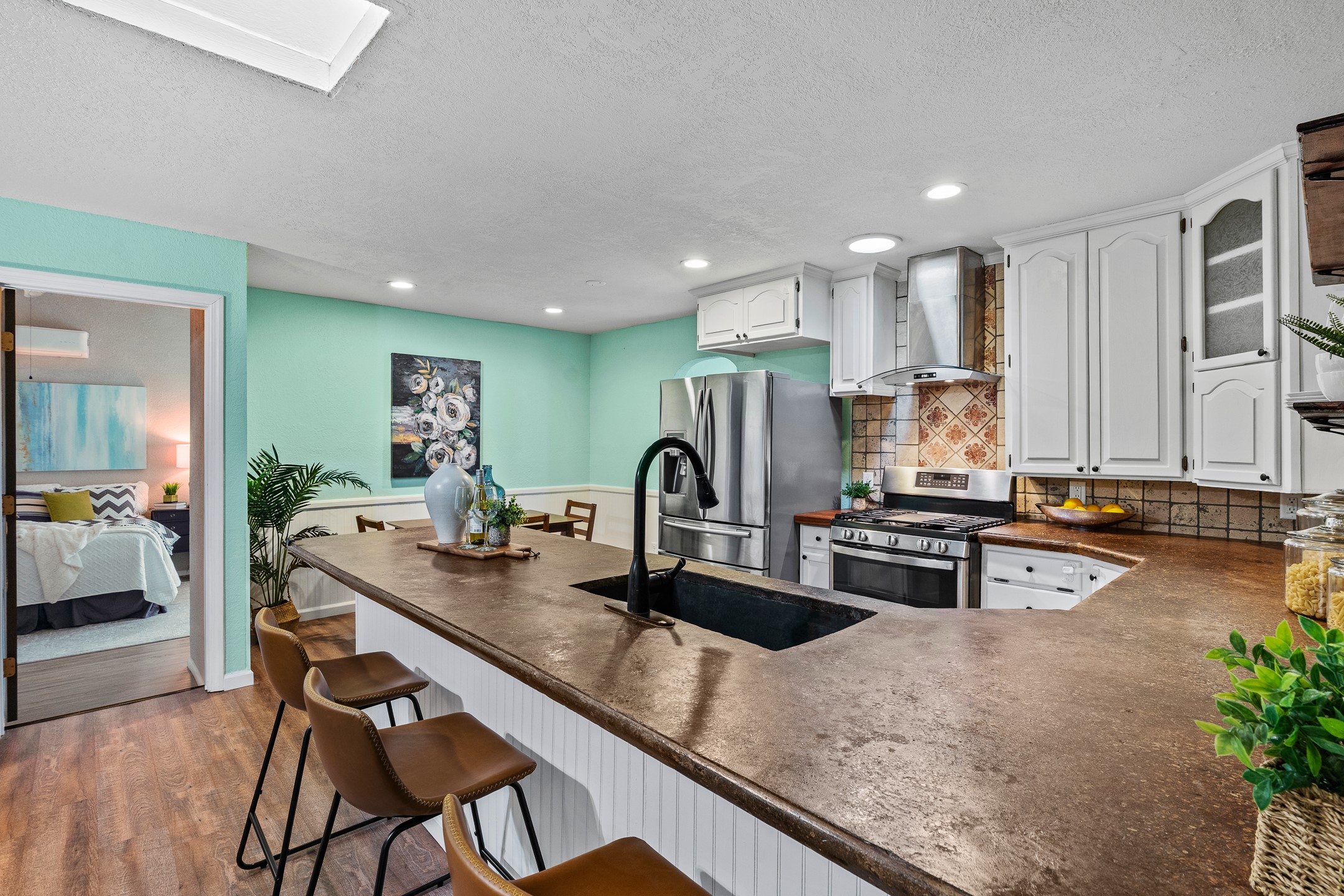 Welcome to this beautiful single story home on a quarter acre in White Rock. The low-maintenance front yard offers a warm and inviting curb appeal. Step inside to the front entrance where you will find a great living space filled with natural light peaking in through patio doors. To the right, you will have access to the 2 car garage. Laminate flooring throughout the home with Spanish tile in the kitchen, bathrooms, laundry room and entry way. Just off to the left you will see the open kitchen with white beautiful cabinets and concrete counter-tops. Picture yourself in the kitchen cooking, as your loved ones are in the cozy family room enjoying the fireplace. Just to the right you will have a large Mother-in-Law suite featuring their own living space, an equipped kitchen with a beautiful barn door access to the walk in closet and bathroom. Down the hall to the left of living room, you will find the laundry room with natural lighting from the skylight above a full bathroom. Down the hallway you will find a nice office area and a bedroom which features a nice walk in closet. At the end of the hall to the right, you will find the primary en-suite offers comfort, featuring a walk-in closet with beautiful bathroom with a single sink vanity and walk-in shower. The enclosed backyard features an outdoor firepit which would be great for relaxing, entertaining and having bbqs. Located just moments from Rover Park and nearby trails, come check out this gorgeous, move-in-ready home!