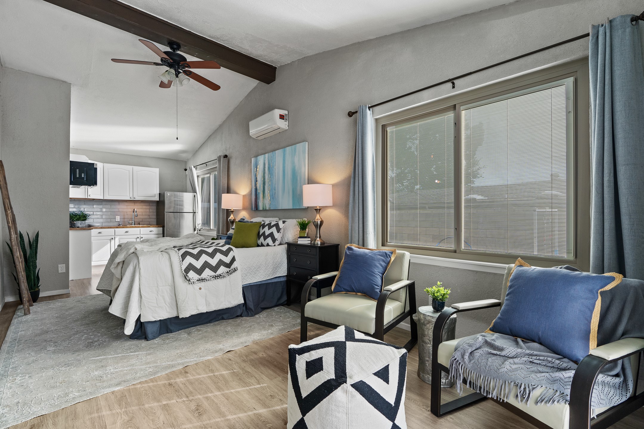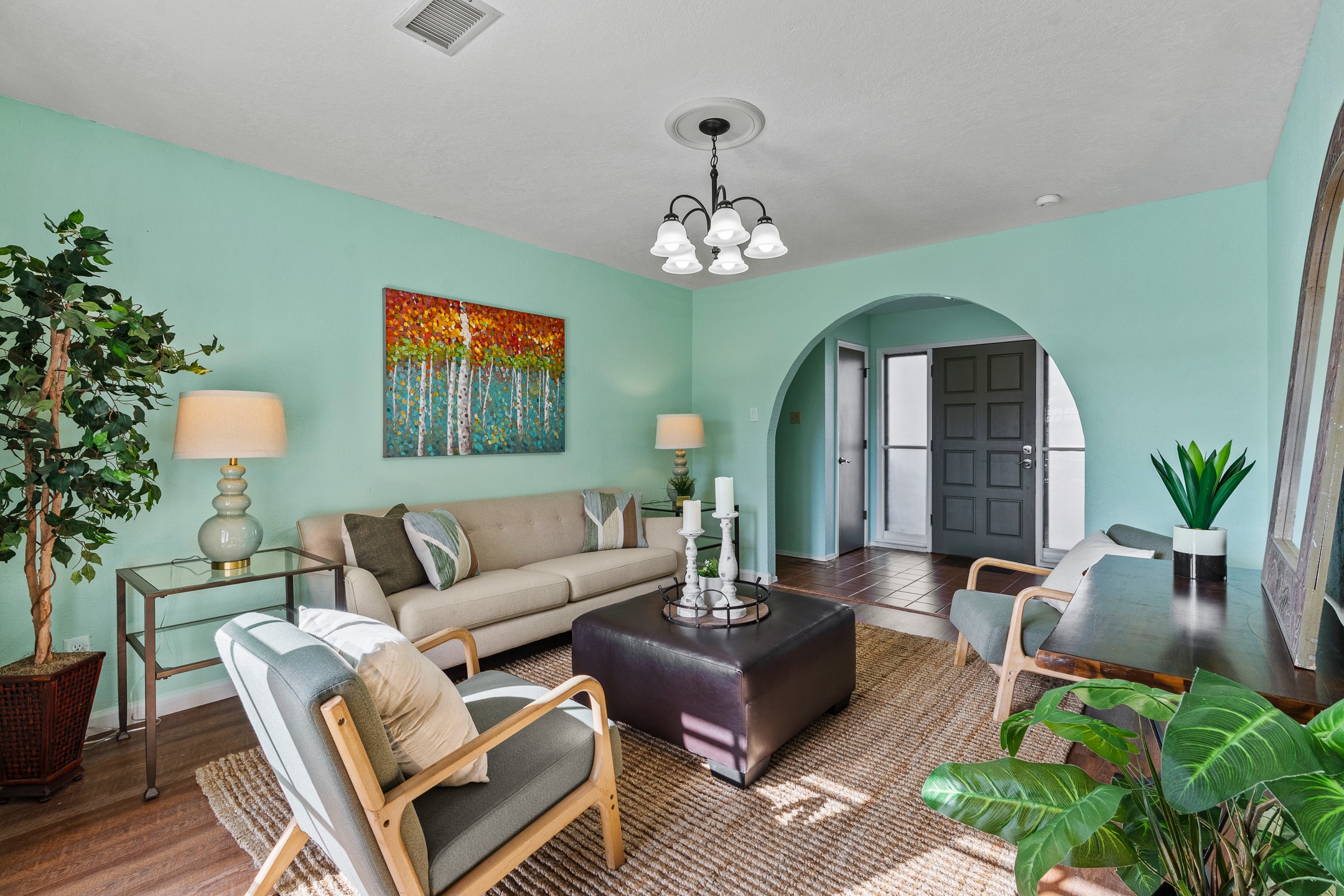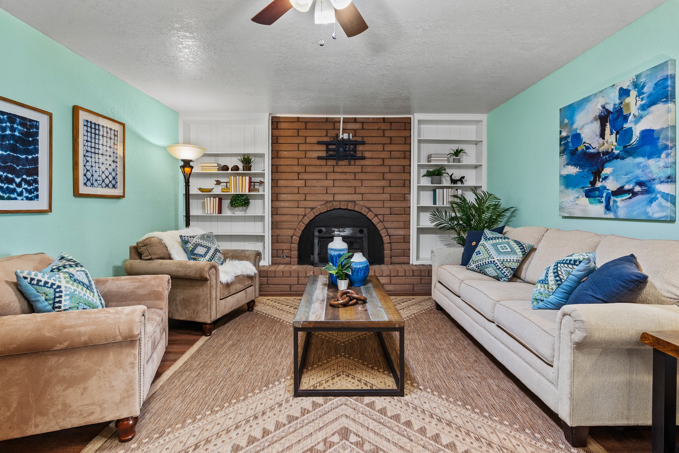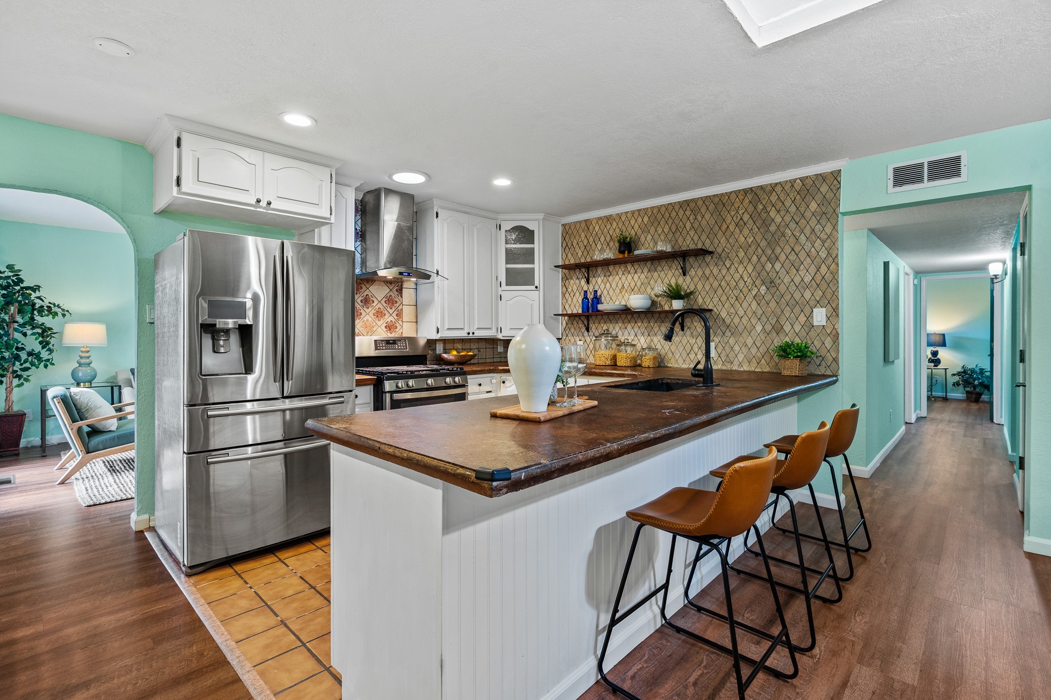 Welcome to this beautiful single story home on a quarter acre in White Rock. The low-maintenance front yard offers a warm and inviting curb appeal. Step inside to the front entrance where you will find a great living space filled with natural light peaking in through patio doors. To the right, you will have access to the 2 car garage. Laminate flooring throughout the home with Spanish tile in the kitchen, bathrooms, laundry room and entry way. Just off to the left you will see the open kitchen with white beautiful cabinets and concrete counter-tops. Picture yourself in the kitchen cooking, as your loved ones are in the cozy family room enjoying the fireplace. Just to the right you will have a large Mother-in-Law suite featuring their own living space, an equipped kitchen with a beautiful barn door access to the walk in closet and bathroom. Down the hall to the left of living room, you will find the laundry room with natural lighting from the skylight above a full bathroom. Down the hallway you will find a nice office area and a bedroom which features a nice walk in closet. At the end of the hall to the right, you will find the primary en-suite offers comfort, featuring a walk-in closet with beautiful bathroom with a single sink vanity and walk-in shower. The enclosed backyard features an outdoor firepit which would be great for relaxing, entertaining and having bbqs. Located just moments from Rover Park and nearby trails, come check out this gorgeous, move-in-ready home!
