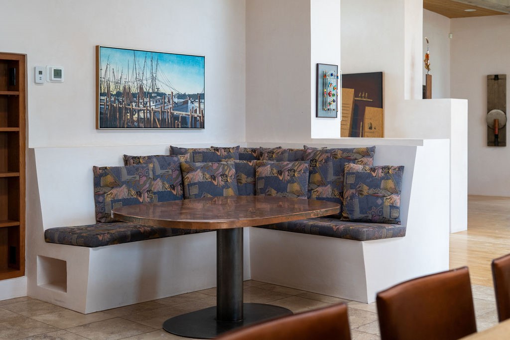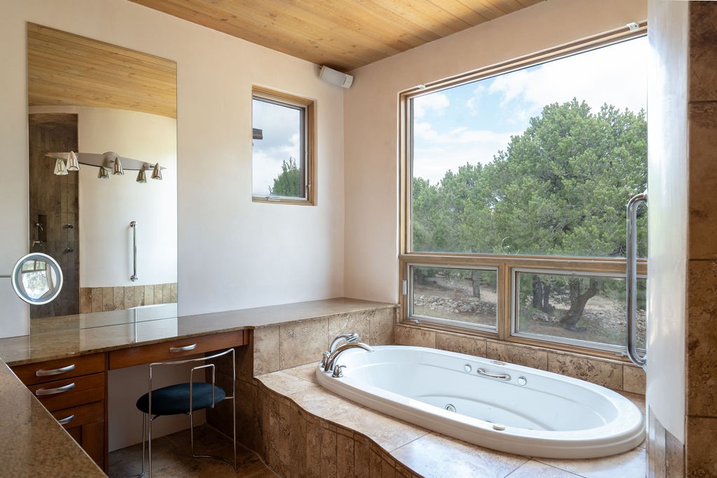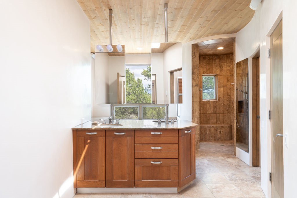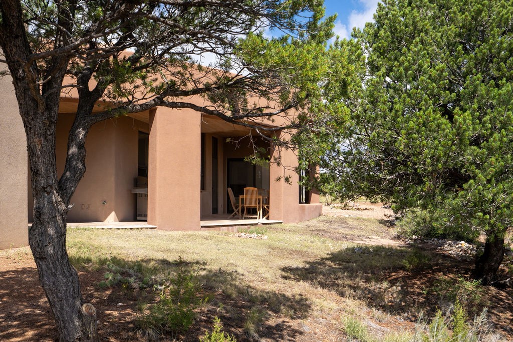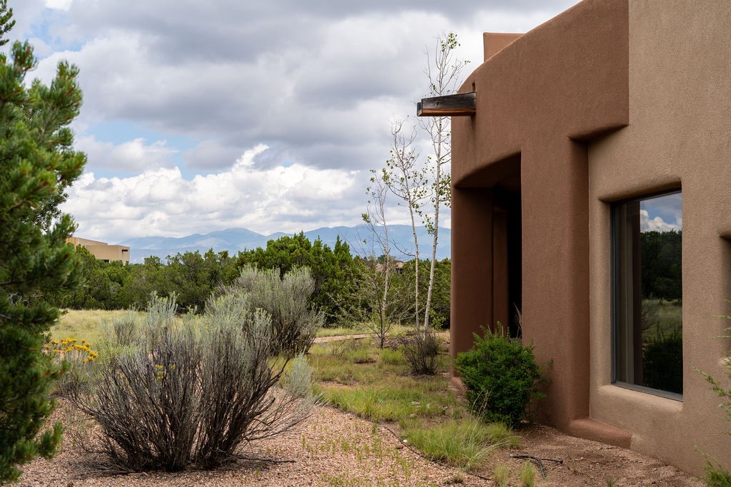 In the tree-studded rolling hills northwest of town are Las Campanas and a host of other developments and neighborhoods of larger, private lots and newer homes, most with city services and utilities. The land here sits between the city and the arroyos that carry rainwater to the Rio Grande, just a few miles west, creating a landscape almost like ocean waves rolling into shore. The community of