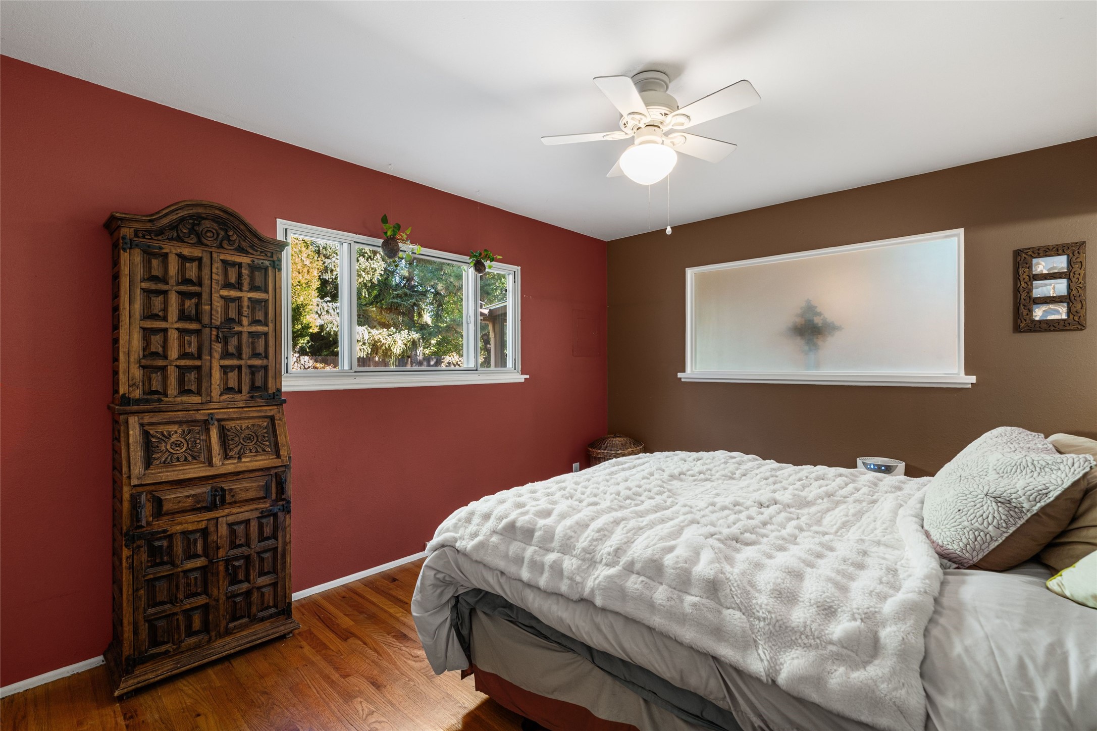 Beautifully cared for Stamm home blending mid-century charm with thoughtful updates. This inviting 3-bedroom, 2-bath residence features original wood cabinetry and oak floors, skylights throughout, and a spacious great room with French doors leading to a private backyard. The primary suite includes a Japanese warm-water bidet and an updated bath. An insulated studio with power is ideal for art or office use. Recent improvements include a new roof, HVAC with UV filtration, a kitchen remodel with a gas range, updated baths, and fresh stucco and paint. Mature evergreens, drip-irrigated landscaping, and a quiet central location near Herb Martinez Park and the Arroyo Chamiso trails make this a truly special property.