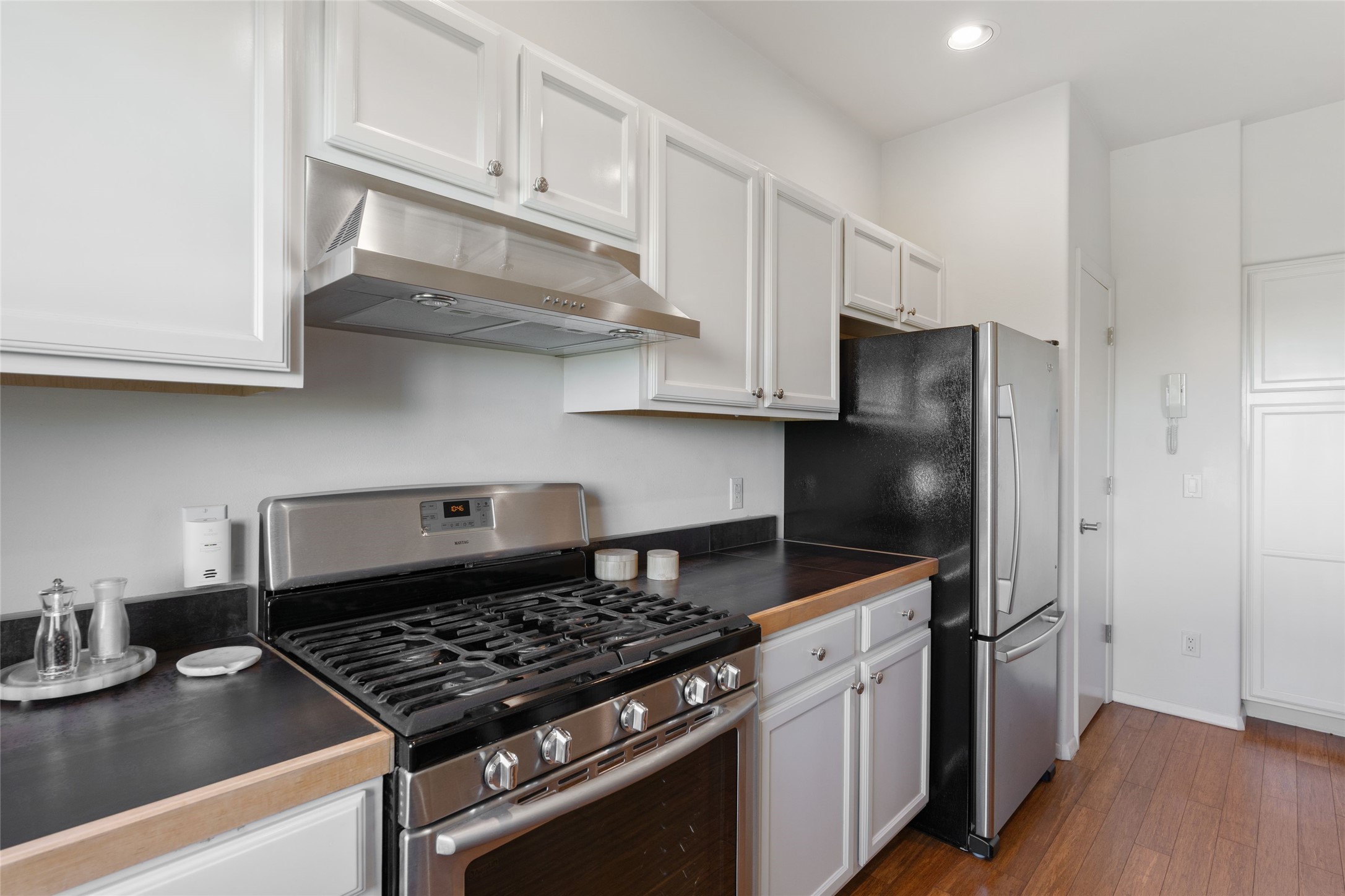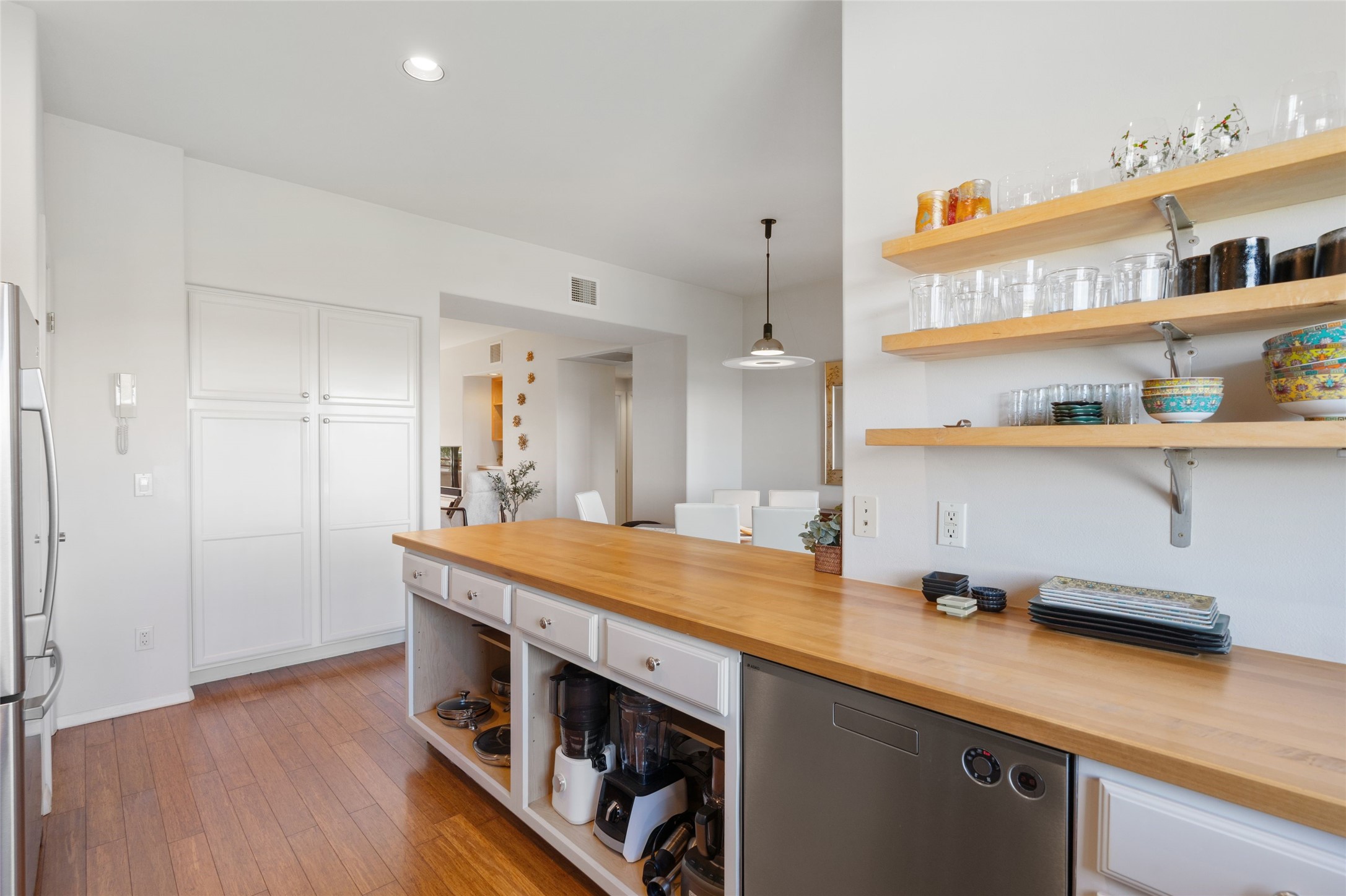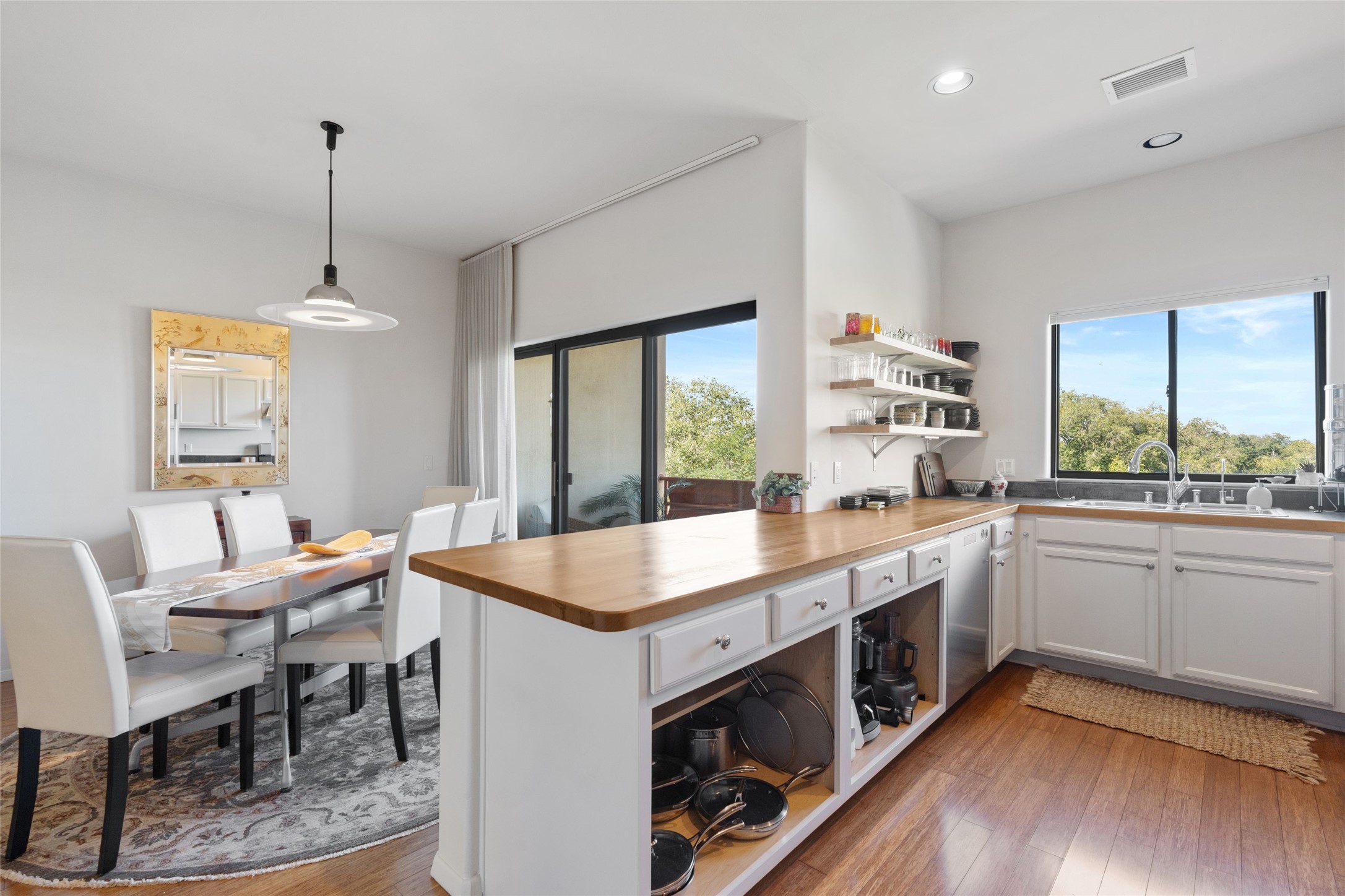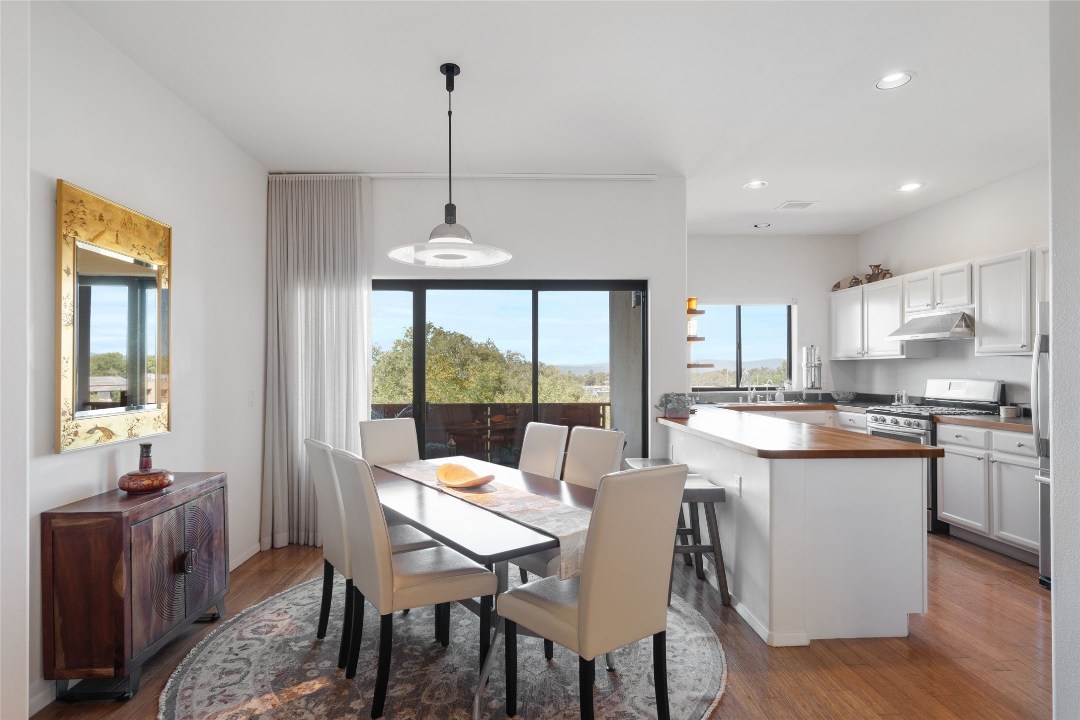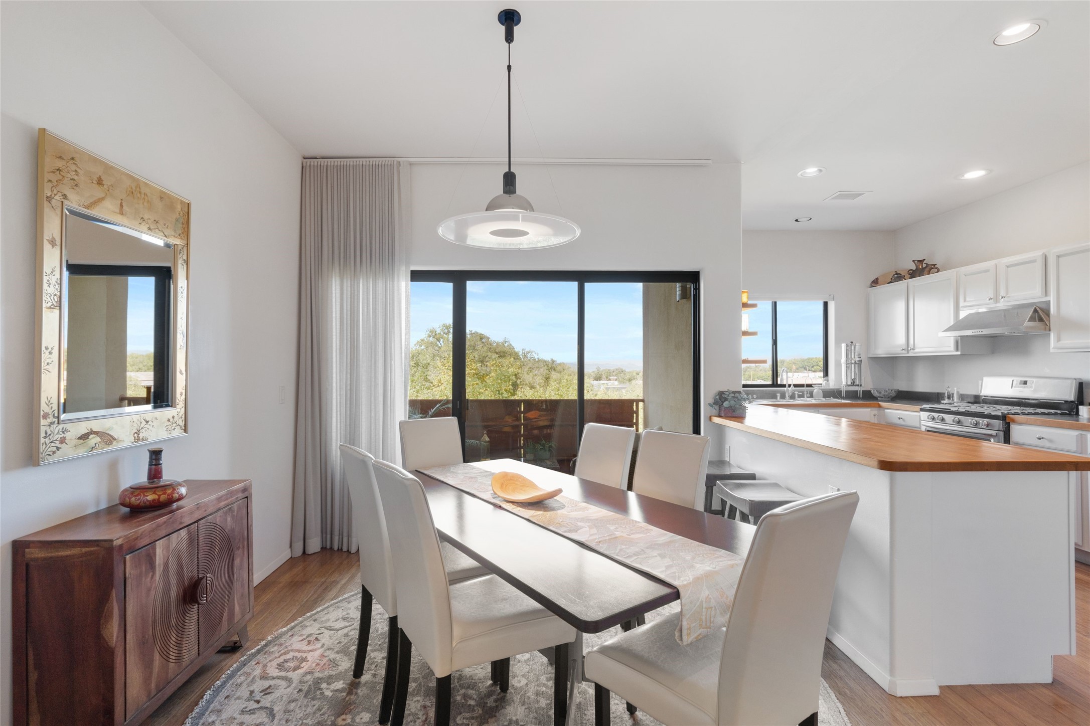 Classic urban oasis surrounded by mature trees, La Remuda Condominium is located on the edge of Midtown where you can walk to relaxed eateries featuring global cuisine and local flair. Not far from theRailyard, quick stops to Trader Joe's and Whole Foods. The central location is convenientfor a fast commute to Los Alamos or I-25. This bright and airy condo features an open floor plan with sliding glass doors at each end of the living/dining rooms with access to the 2 balconies. The kitchen is well designed, with exceptional storage, high quality stainless steel appliances, butcher block on one side of the counter and Italian tile on the other. Other features include: central air conditioning and heating installed in 2023, 9 foot ceilings, beautiful bamboo floors, custom drapes, custom dividedclosets, custom cabinets in living room and office, private storage: 5.5' x 17', Asko washer and dryer, whole house water filtration system installed in 2025, 2 under cover designated parking spots with direct entrance to the secure building, upper floor unit with no interior steps, new roof in 2024 and refreshed stucco in 2025. One of the two only units at La Remuda with 3 bedrooms. Seller will credit one year of special assessment dues with an acceptable offer. This condo is on the second floor and stairs are required to access it.