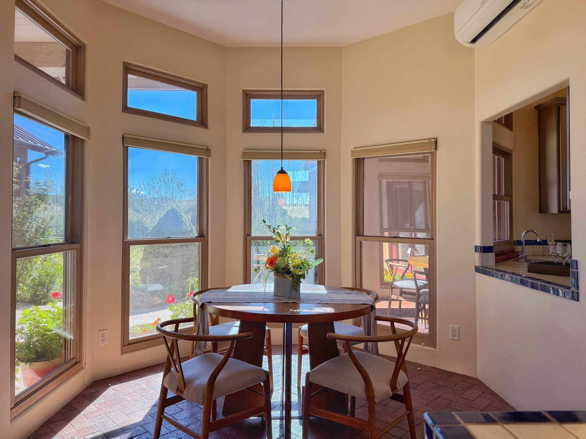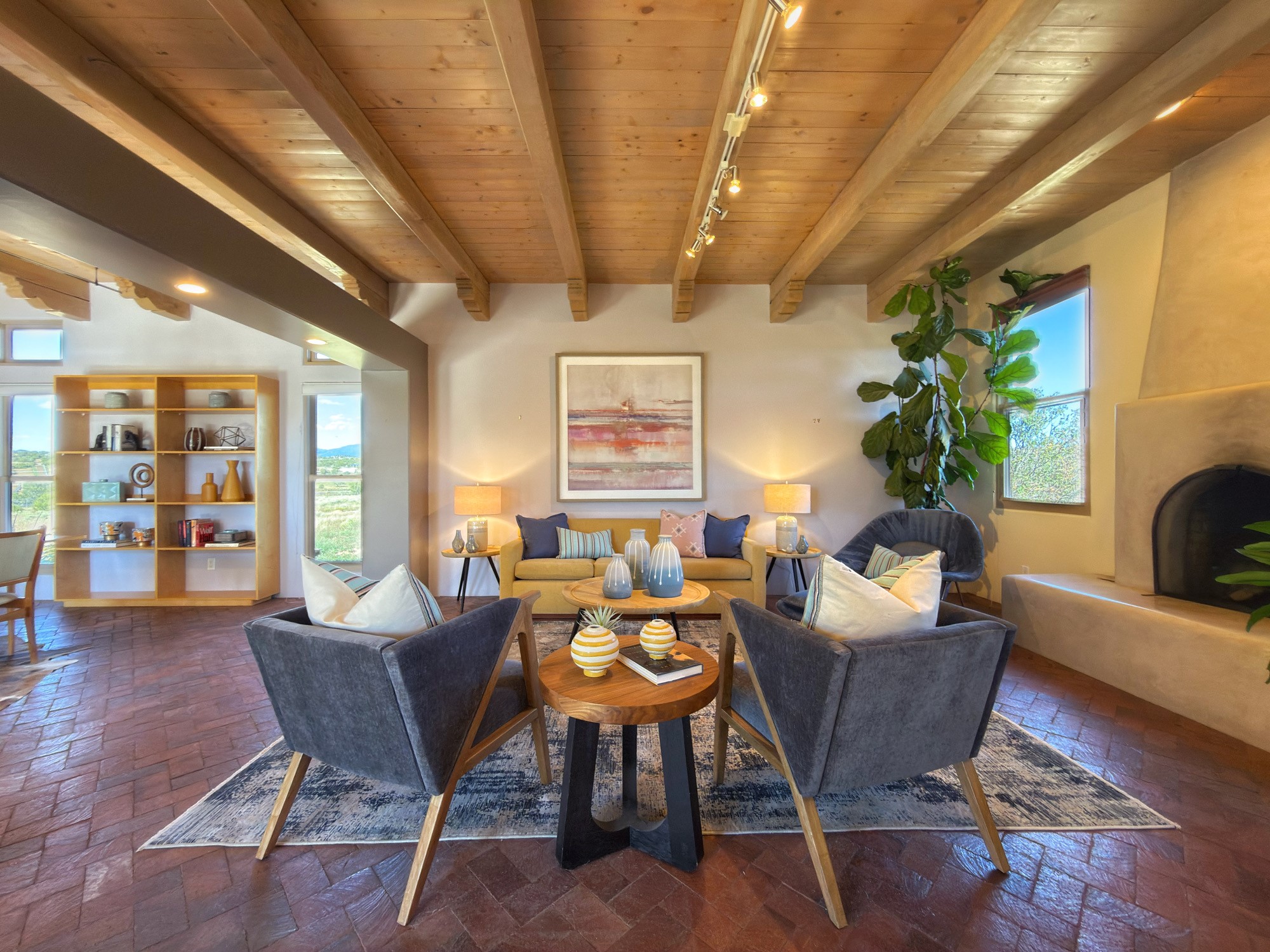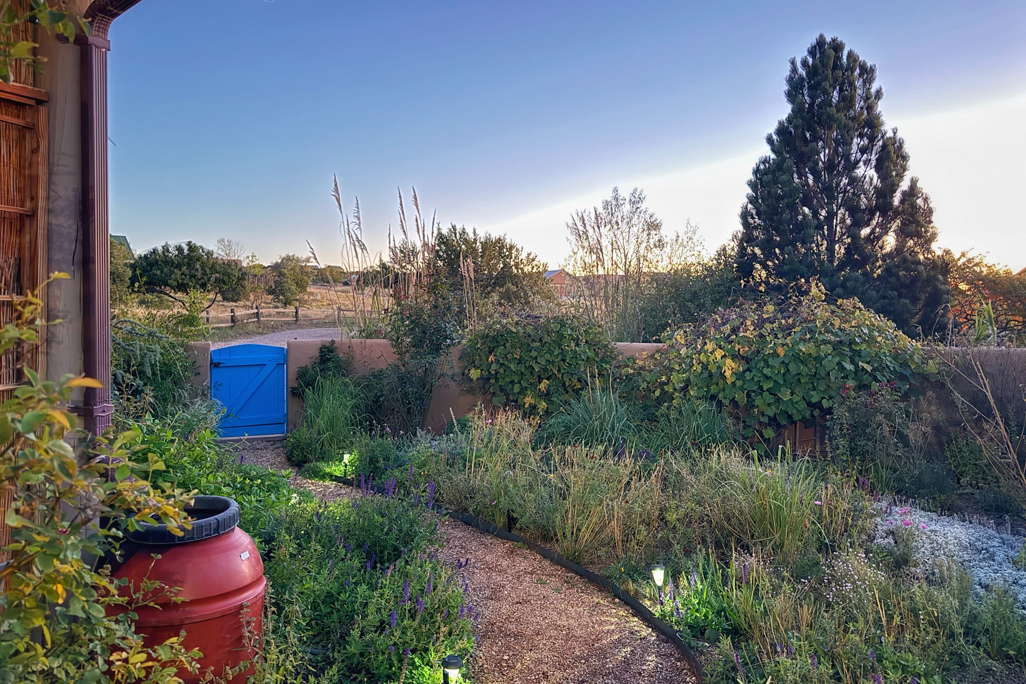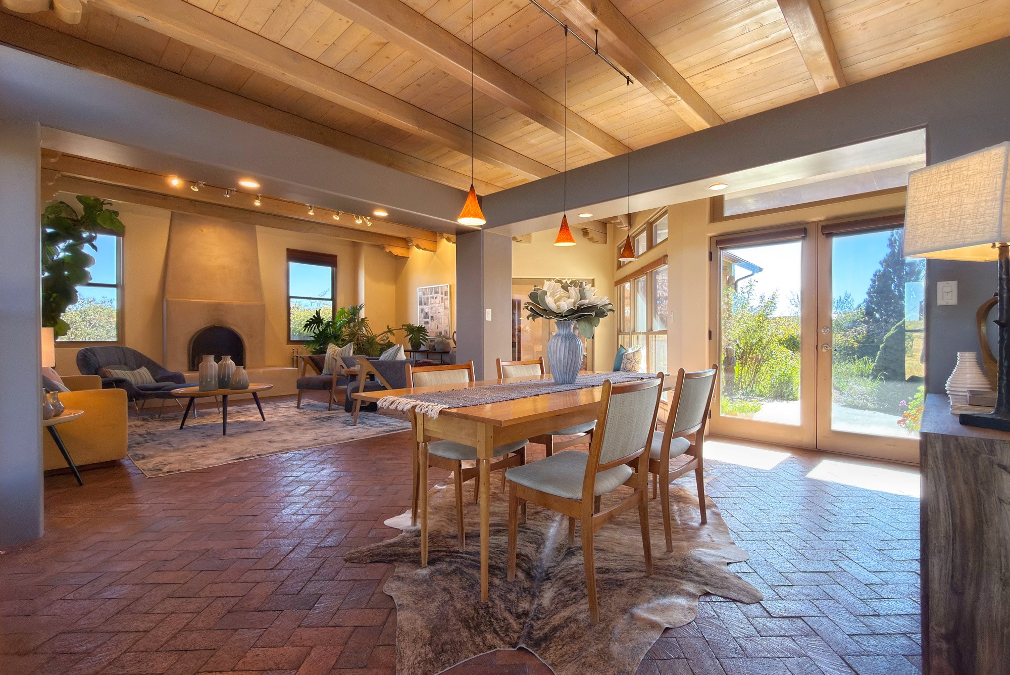 SELLER OFFERING $10,000 CREDIT AT CLOSING TO BUYER! This single-level home, built in 2005, offers the perfect blend of traditional Northern New Mexico architecture and modern comforts. Set on 1.44+/- acres with adjoining open space in the subdivision, the property welcomes you with lush, mature gardens and a beautiful entryway, framed by mountain views and proximity to equestrian facilities. Spanning approximately 2,272 sq. ft. the home features 3 bedrooms and 2 full baths. The spacious living room boasts high ceilings with wooden beams and corbels, a kiva fireplace, and brick floors that extend throughout. The kitchen includes stainless steel appliances, a walk-in pantry, custom cabinets, Mexican tile accents, and an eat-in breakfast nook. The primary suite is a private retreat with a generous walk-in closet and a large bathroom featuring double sinks, a jetted tub, and a separate shower. Two thoughtfully positioned guest bedrooms share a full bath with double sinks. Additional highlights include in-floor radiant heat, split units for supplemental heating and cooling and a two-car garage that offers a built-in workbench, custom cabinetry, and attic storage. Ideally located just minutes from Eldorado, this home is close to shopping, restaurants, gyms, banks, a post office, hardware stores, and pet services.