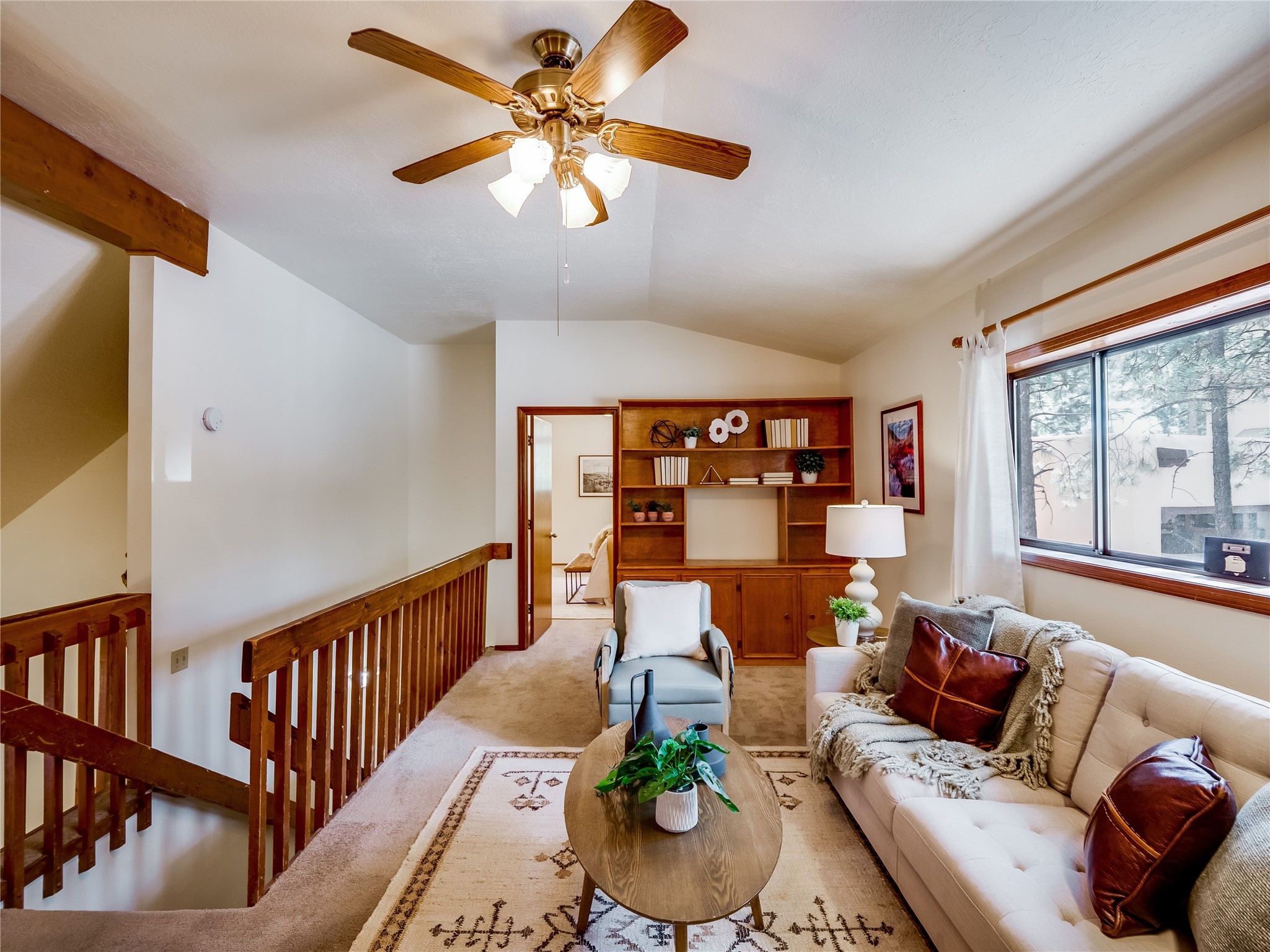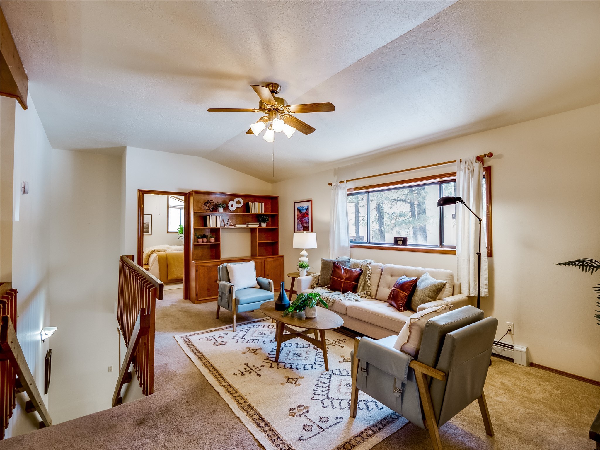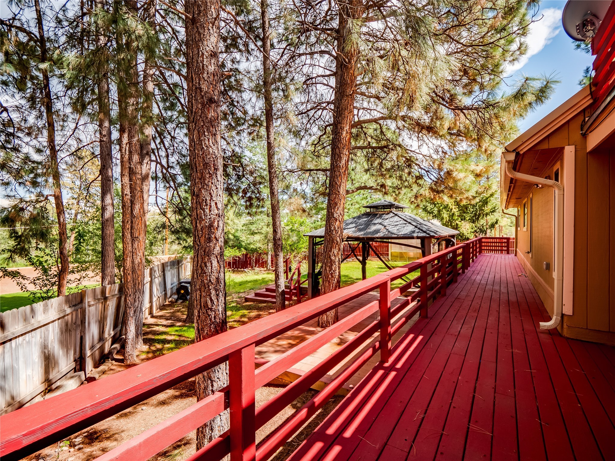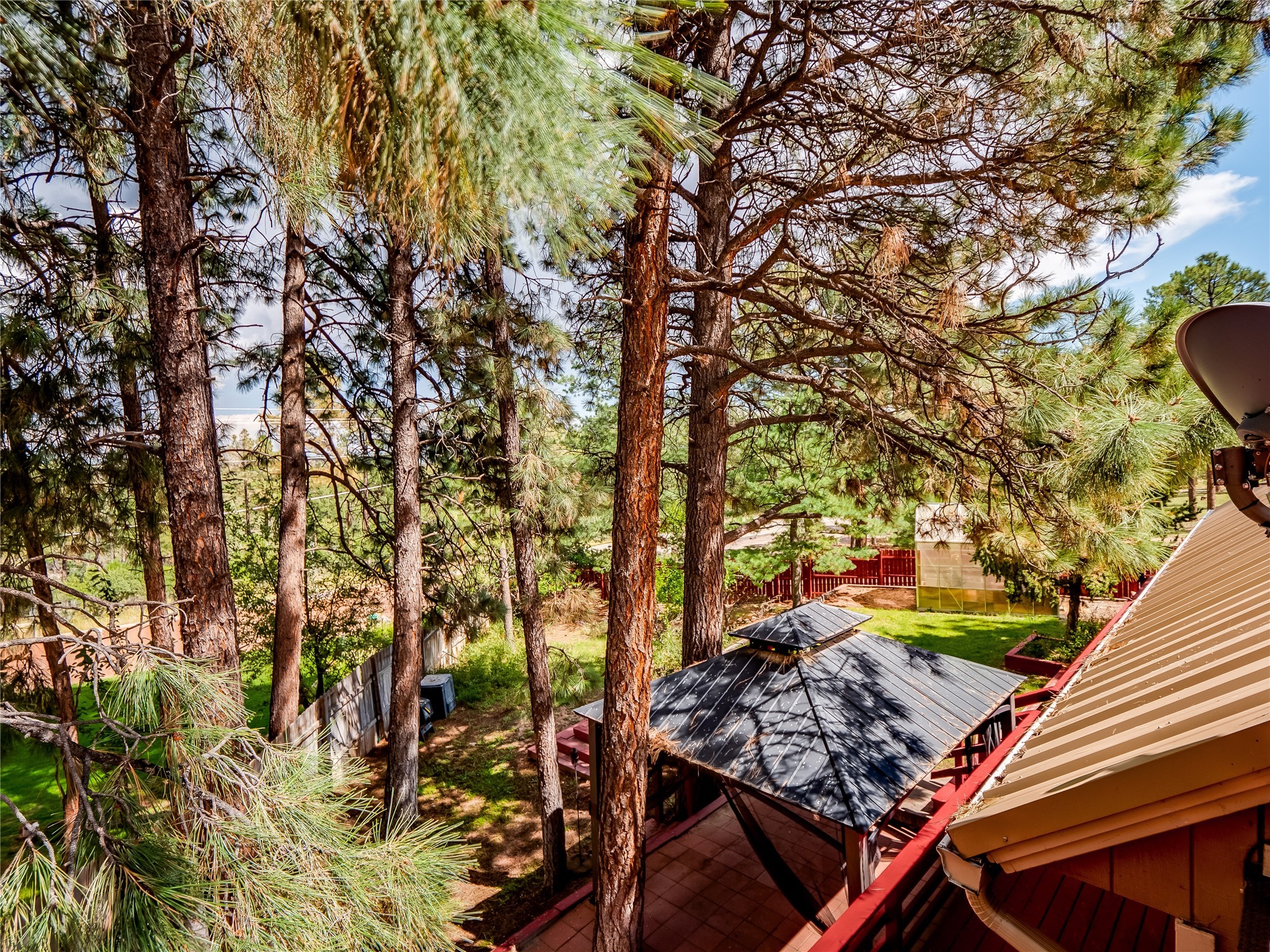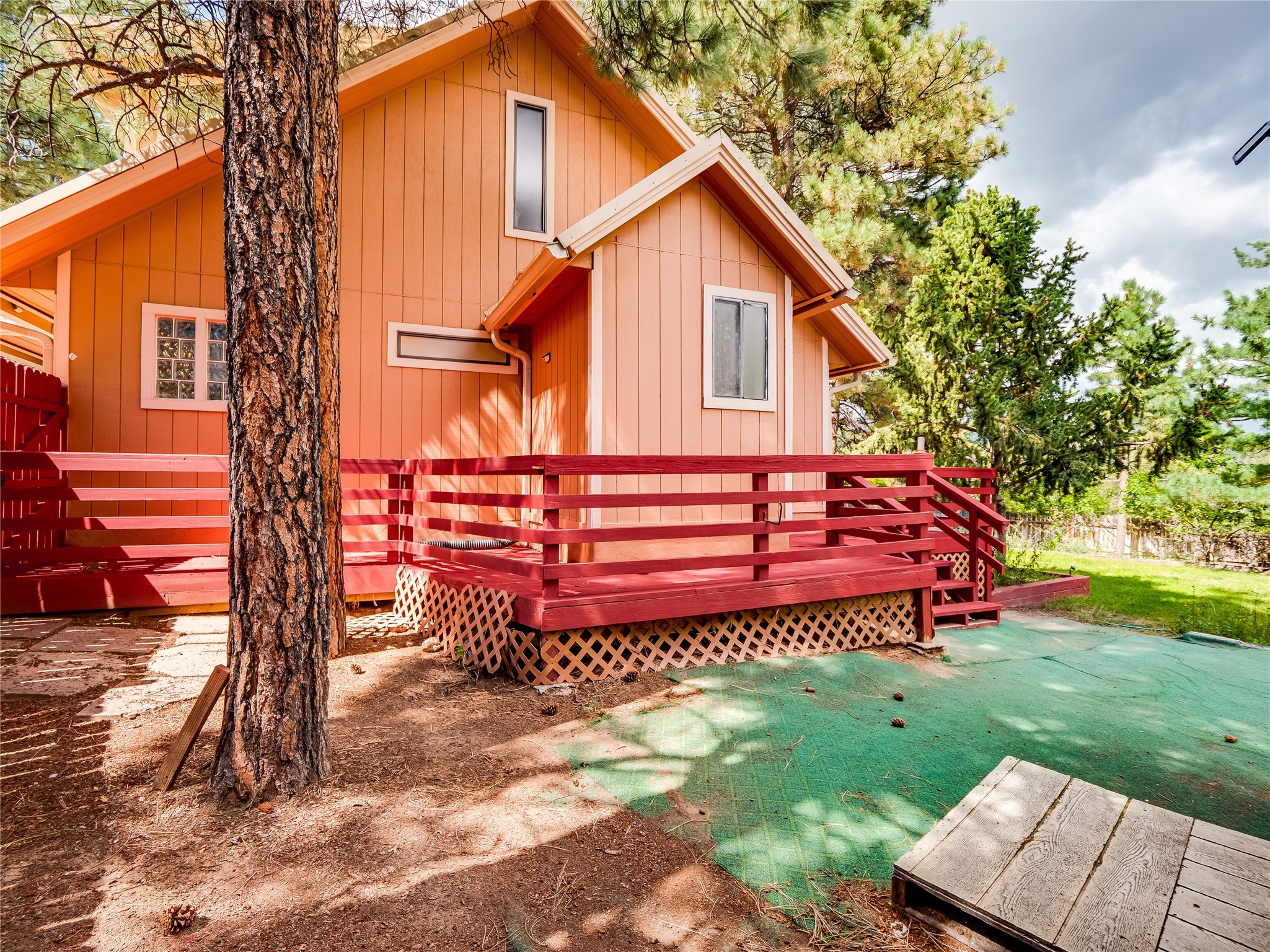 Welcome to this beautiful two-story home in the highly sought-after North Mesa neighborhood! Nestled on a wooded lot with a lush grass lawn, vibrant flower beds, and mature trees, the inviting curb appeal leads you to a charming sunroom-style front porch with stone flooring and direct access to the two-car garage. Step inside through one of two entryways, including sliding doors that open into the warm and welcoming living room. Here, vaulted ceilings create a spacious atmosphere while a stunning corner stone wood-burning fireplace serves as the focal point. Sliding doors extend the living space outdoors to a covered wood deck overlooking the expansive backyard--complete with fruit trees, mature landscaping, a grassy lawn, greenhouse, and storage shed, making it a true outdoor retreat. The dining and kitchen area features tile flooring, a tray ceiling with a skylight, and a thoughtful layout perfect for everyday living. The kitchen is equipped with warm wood cabinets accented by black hardware, light counters, a tile backsplash, and stainless steel appliances. Down the hall, the main level also offers a comfortable guest en-suite with a walk-in shower, an additional guest bedroom, a full guest bathroom with a single sink vanity, and a convenient laundry closet. Upstairs, plush carpet leads to a cozy loft-style family room with built-in cabinet bookcases, ideal for reading or gathering. A bright guest bedroom provides storage space and sliding doors that open to a private deck with breathtaking mountain views. The large primary en-suite is a peaceful retreat, featuring a spacious walk-in closet and extra storage. The bathroom is designed with a white single sink vanity with granite counters located within the bedroom, while a separate enclosed space houses the walk-in glass shower and toilet for added privacy. This fantastic home is in a prime location close to the golf course, trails, horse stables, and schools. Don't miss your chance to own this one-of-a-kind home!