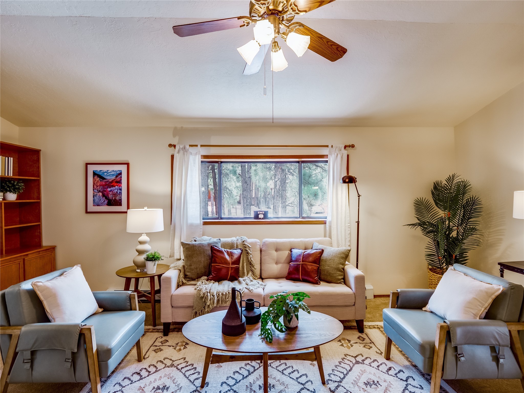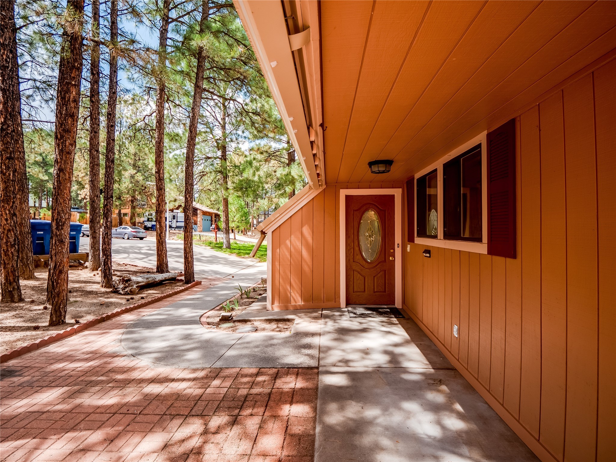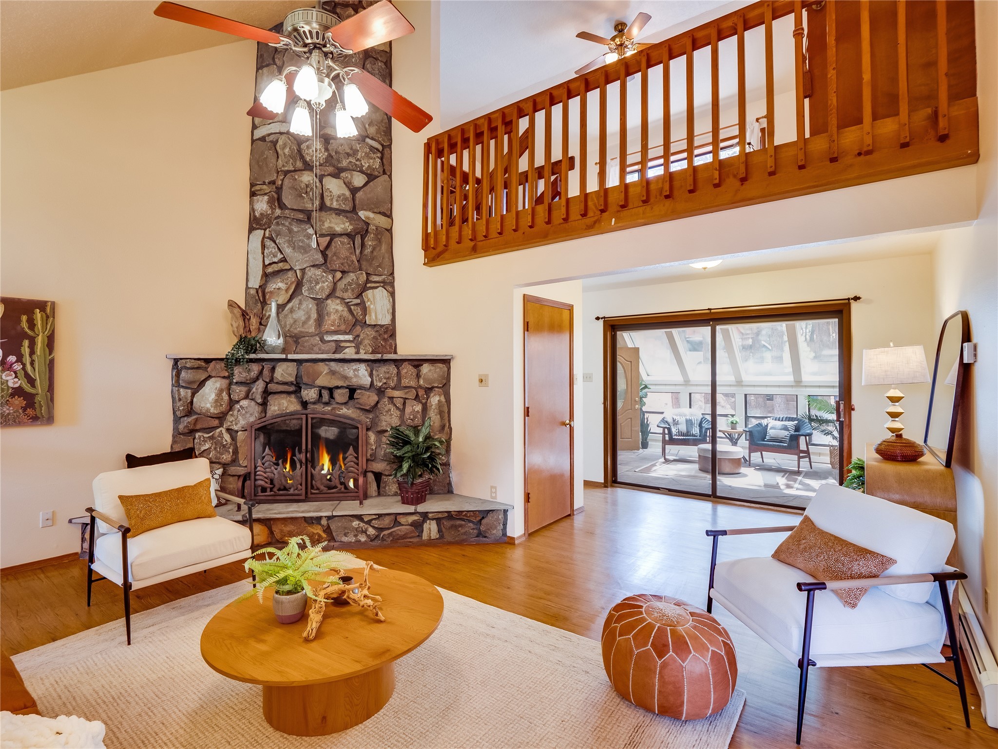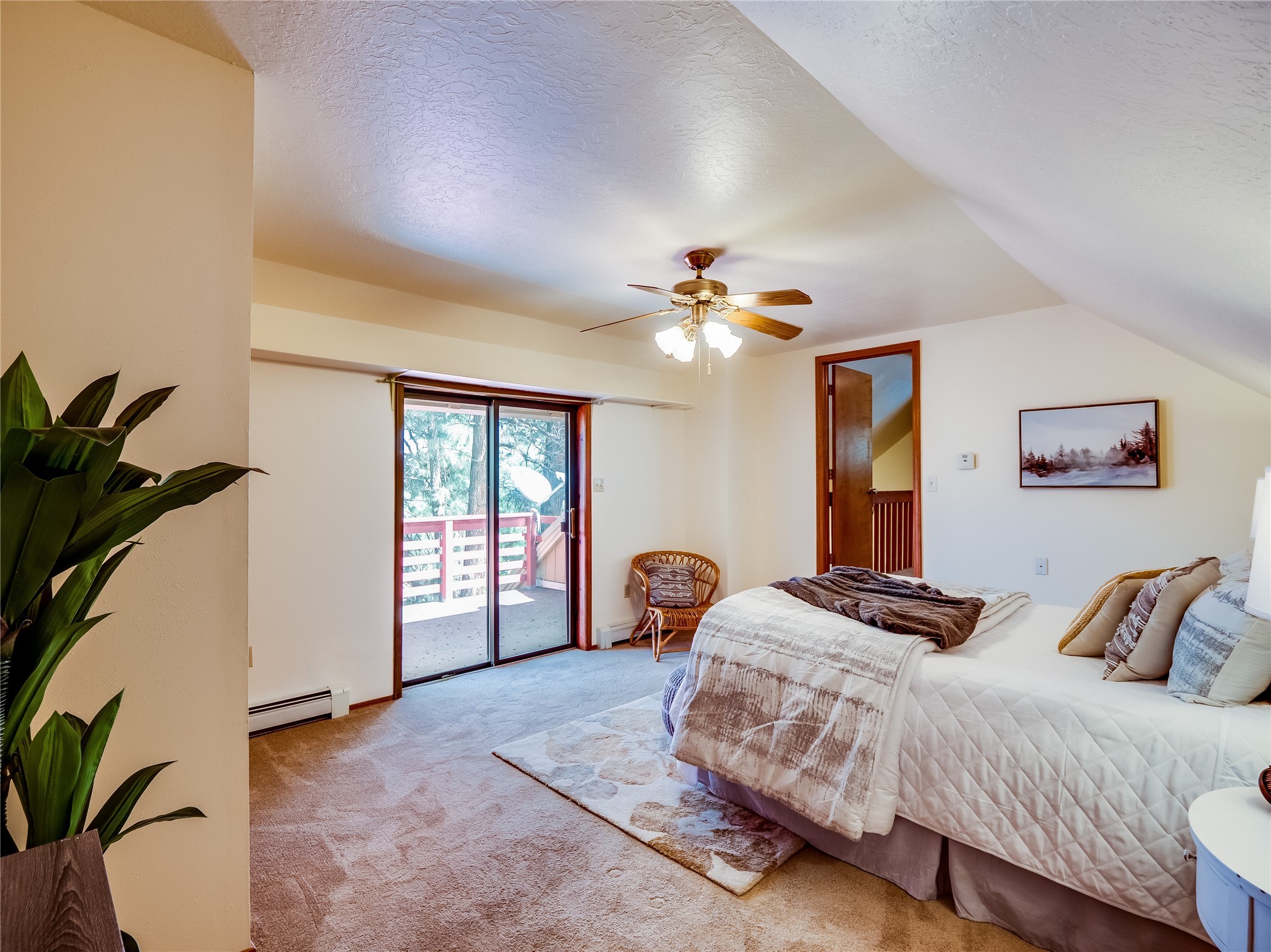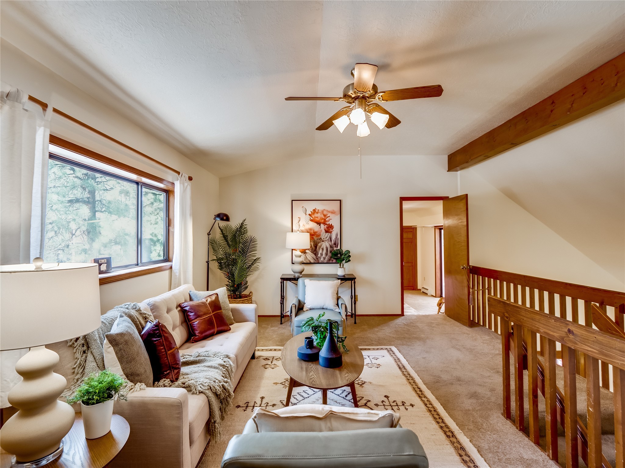 Welcome to this beautiful two-story home in the highly sought-after North Mesa neighborhood! Nestled on a wooded lot with a lush grass lawn, vibrant flower beds, and mature trees, the inviting curb appeal leads you to a charming sunroom-style front porch with stone flooring and direct access to the two-car garage. Step inside through one of two entryways, including sliding doors that open into the warm and welcoming living room. Here, vaulted ceilings create a spacious atmosphere while a stunning corner stone wood-burning fireplace serves as the focal point. Sliding doors extend the living space outdoors to a covered wood deck overlooking the expansive backyard--complete with fruit trees, mature landscaping, a grassy lawn, greenhouse, and storage shed, making it a true outdoor retreat. The dining and kitchen area features tile flooring, a tray ceiling with a skylight, and a thoughtful layout perfect for everyday living. The kitchen is equipped with warm wood cabinets accented by black hardware, light counters, a tile backsplash, and stainless steel appliances. Down the hall, the main level also offers a comfortable guest en-suite with a walk-in shower, an additional guest bedroom, a full guest bathroom with a single sink vanity, and a convenient laundry closet. Upstairs, plush carpet leads to a cozy loft-style family room with built-in cabinet bookcases, ideal for reading or gathering. A bright guest bedroom provides storage space and sliding doors that open to a private deck with breathtaking mountain views. The large primary en-suite is a peaceful retreat, featuring a spacious walk-in closet and extra storage. The bathroom is designed with a white single sink vanity with granite counters located within the bedroom, while a separate enclosed space houses the walk-in glass shower and toilet for added privacy. This fantastic home is in a prime location close to the golf course, trails, horse stables, and schools. Don't miss your chance to own this one-of-a-kind home!