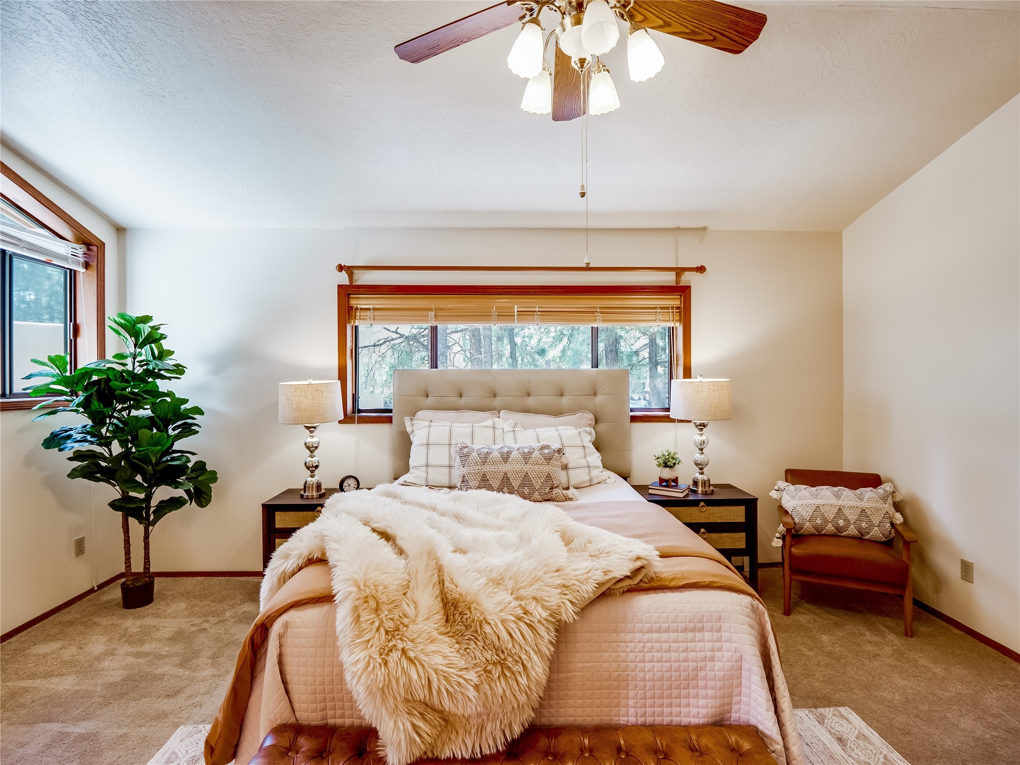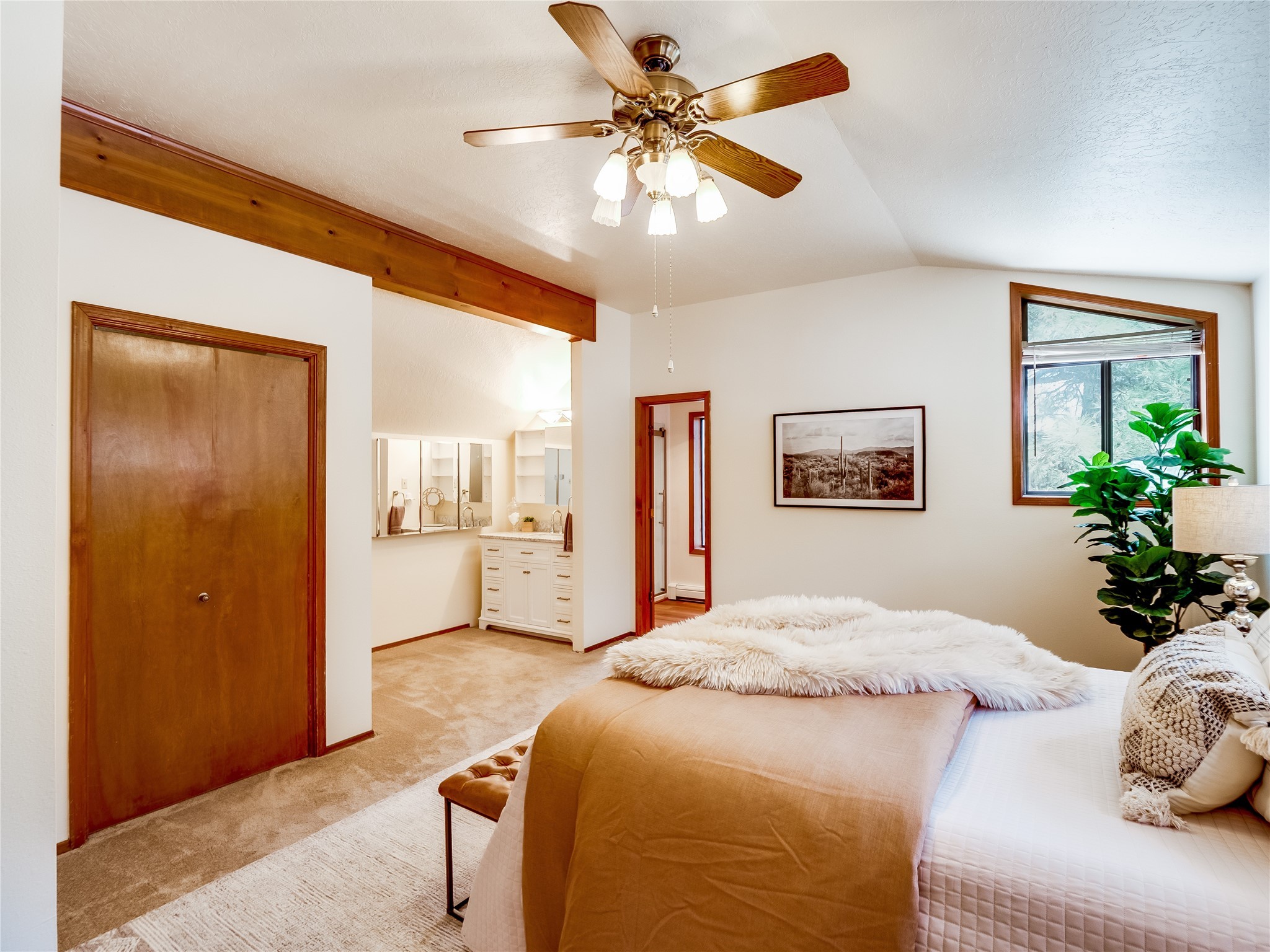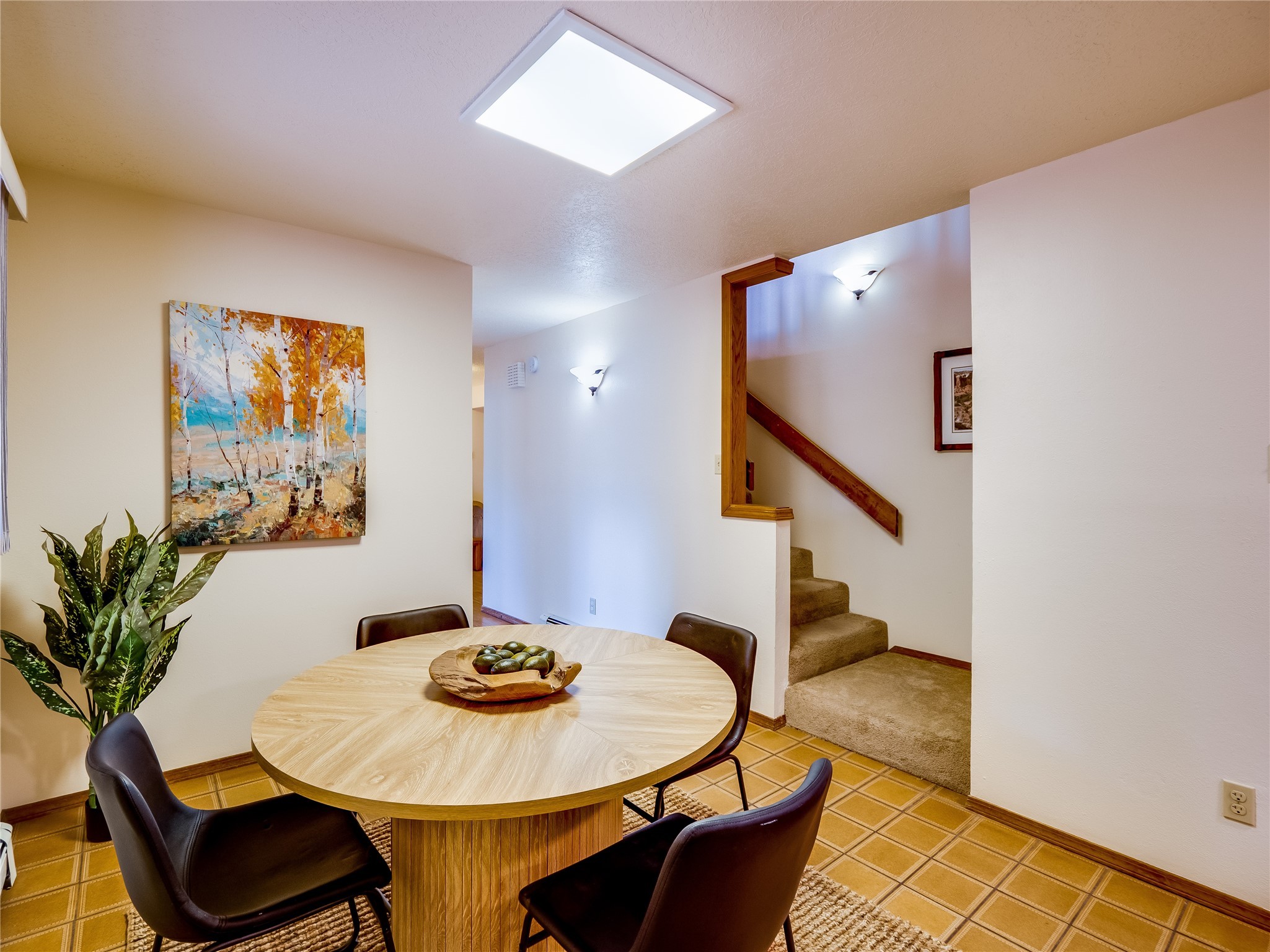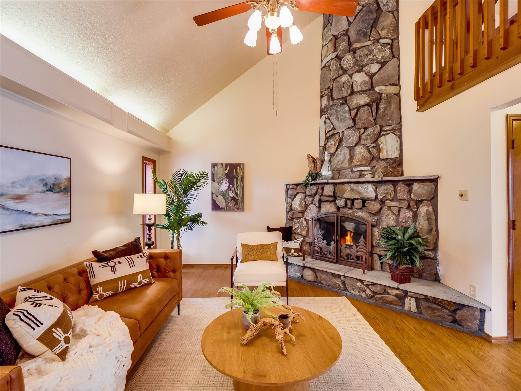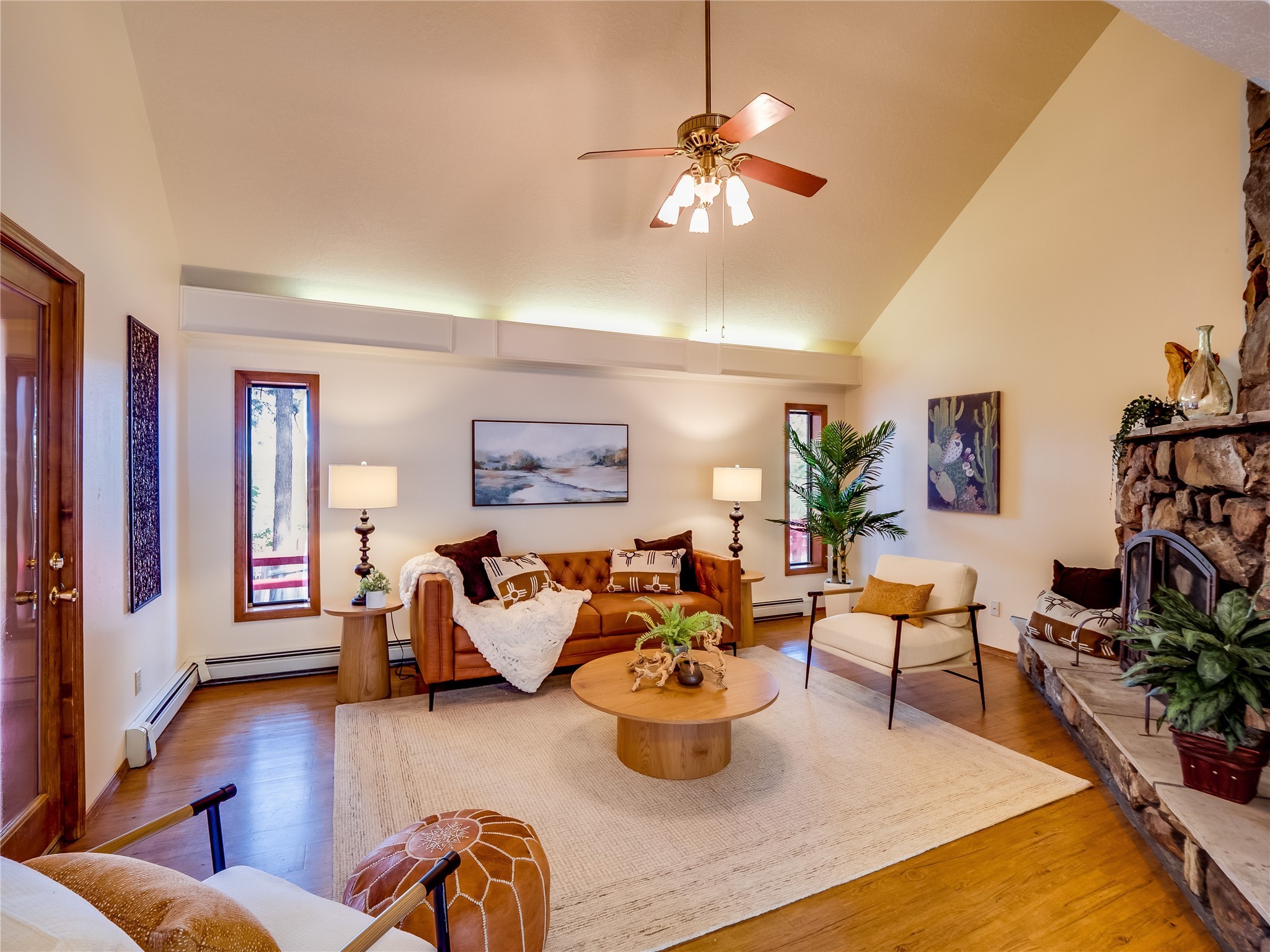 Welcome to this beautiful two-story home in the highly sought-after North Mesa neighborhood! Nestled on a wooded lot with a lush grass lawn, vibrant flower beds, and mature trees, the inviting curb appeal leads you to a charming sunroom-style front porch with stone flooring and direct access to the two-car garage. Step inside through one of two entryways, including sliding doors that open into the warm and welcoming living room. Here, vaulted ceilings create a spacious atmosphere while a stunning corner stone wood-burning fireplace serves as the focal point. Sliding doors extend the living space outdoors to a covered wood deck overlooking the expansive backyard--complete with fruit trees, mature landscaping, a grassy lawn, greenhouse, and storage shed, making it a true outdoor retreat. The dining and kitchen area features tile flooring, a tray ceiling with a skylight, and a thoughtful layout perfect for everyday living. The kitchen is equipped with warm wood cabinets accented by black hardware, light counters, a tile backsplash, and stainless steel appliances. Down the hall, the main level also offers a comfortable guest en-suite with a walk-in shower, an additional guest bedroom, a full guest bathroom with a single sink vanity, and a convenient laundry closet. Upstairs, plush carpet leads to a cozy loft-style family room with built-in cabinet bookcases, ideal for reading or gathering. A bright guest bedroom provides storage space and sliding doors that open to a private deck with breathtaking mountain views. The large primary en-suite is a peaceful retreat, featuring a spacious walk-in closet and extra storage. The bathroom is designed with a white single sink vanity with granite counters located within the bedroom, while a separate enclosed space houses the walk-in glass shower and toilet for added privacy. This fantastic home is in a prime location close to the golf course, trails, horse stables, and schools. Don't miss your chance to own this one-of-a-kind home!