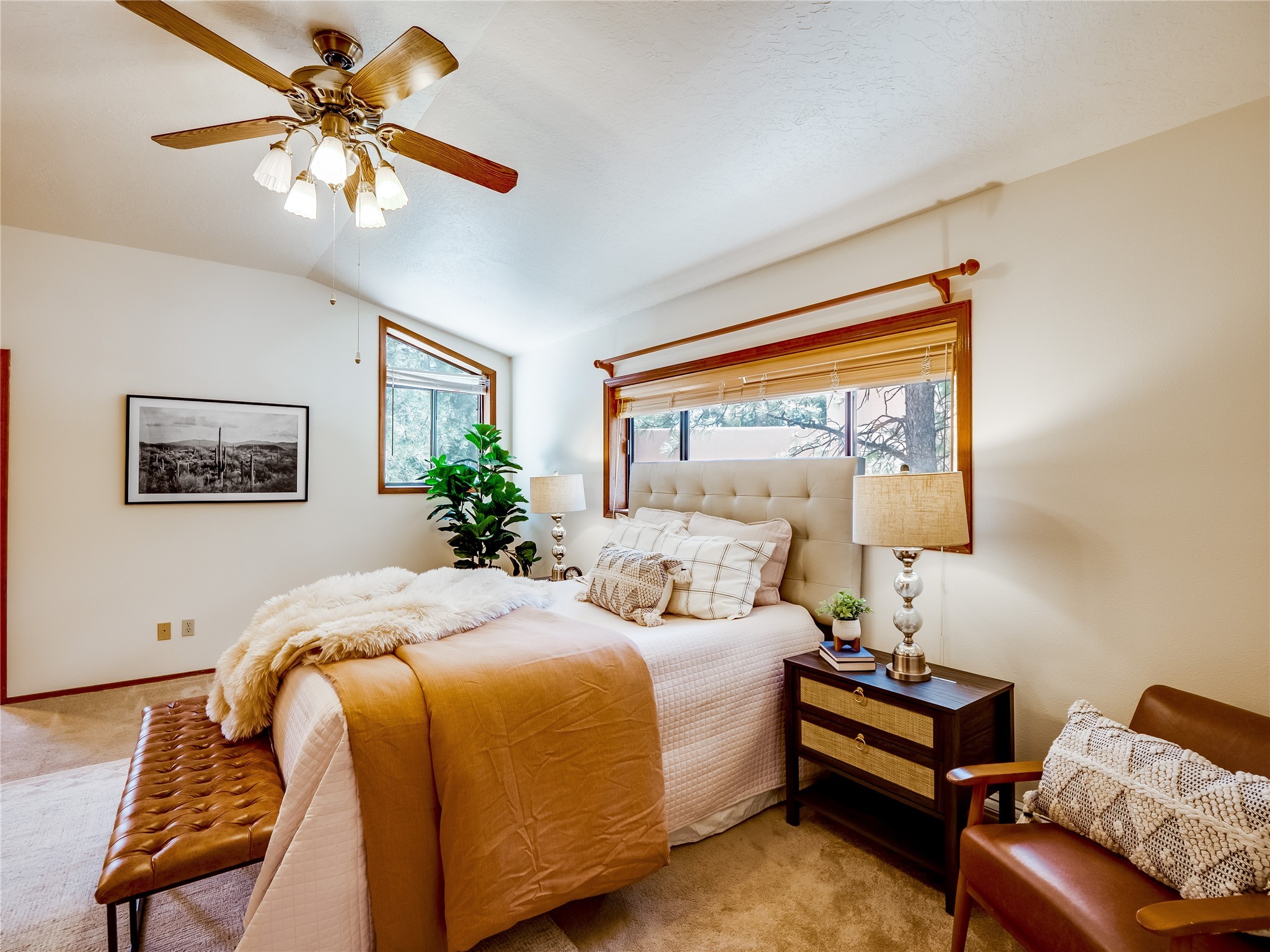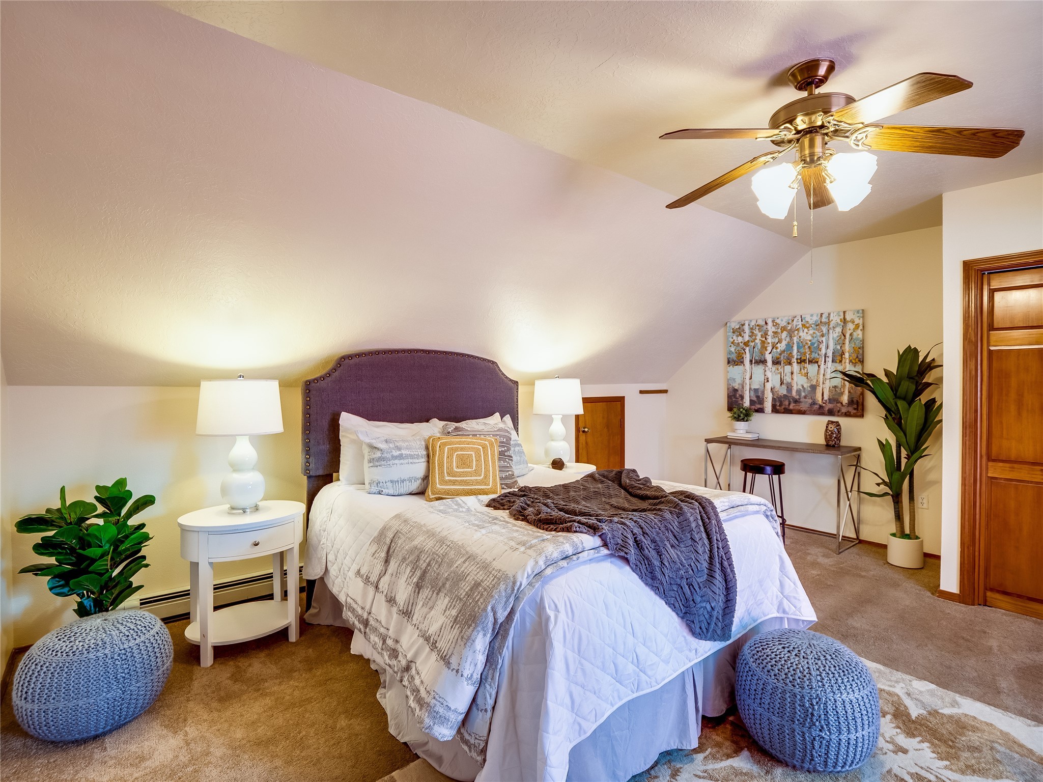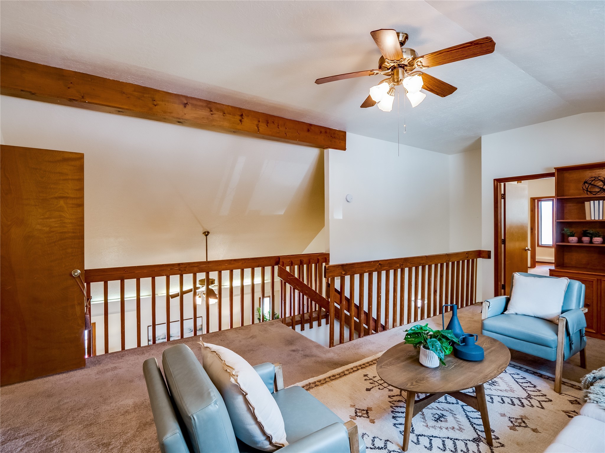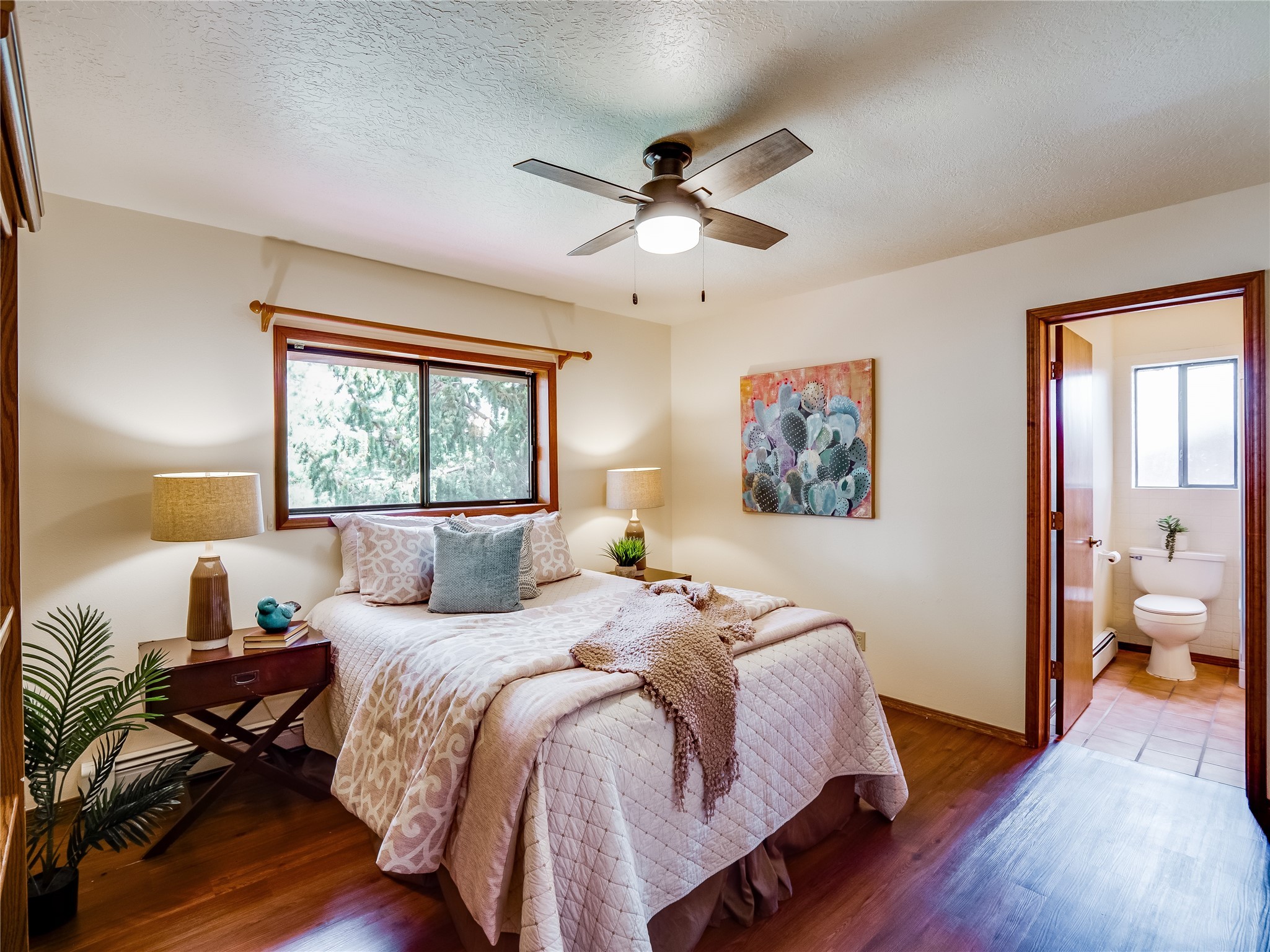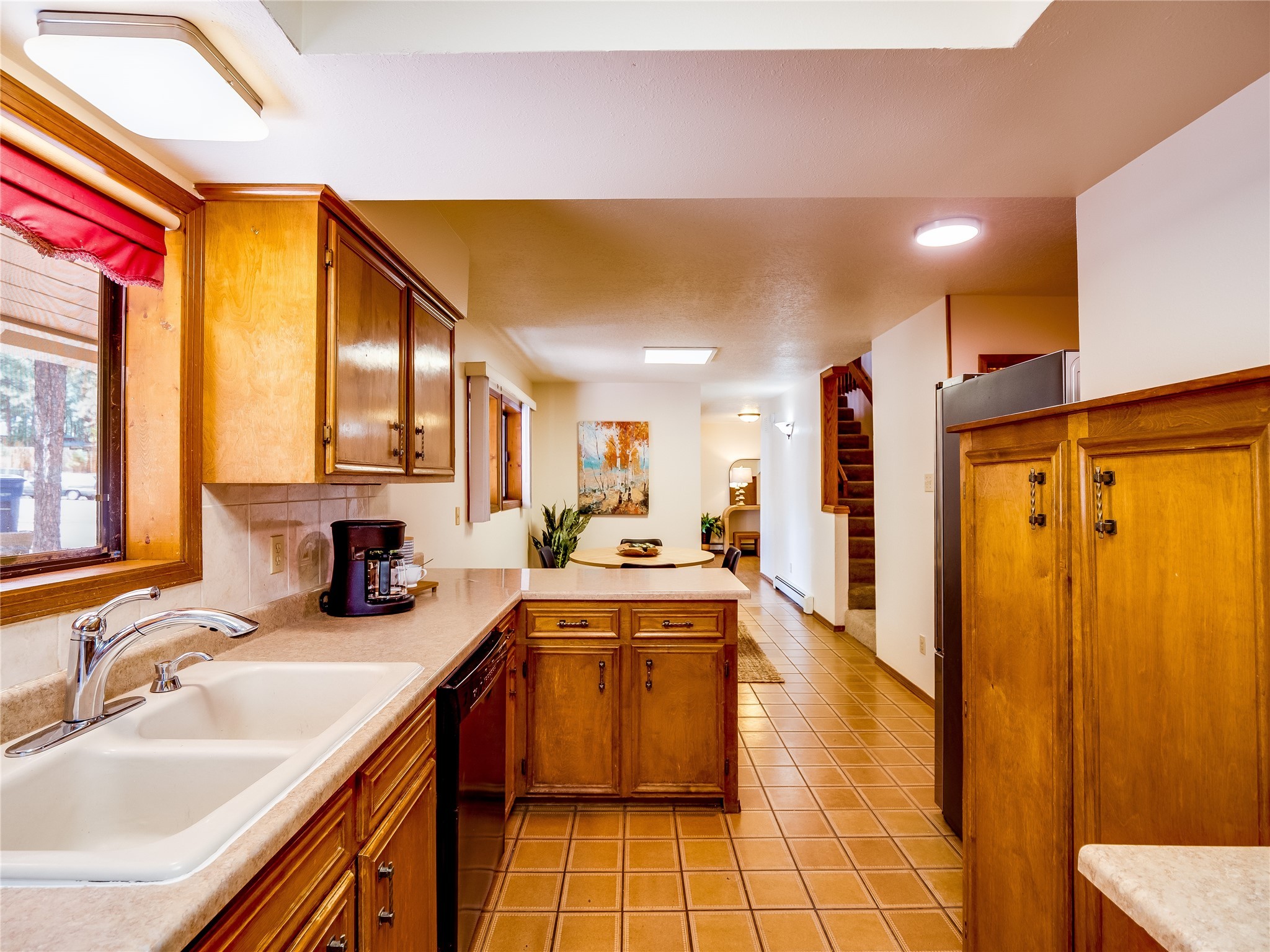 Welcome to this beautiful two-story home in the highly sought-after North Mesa neighborhood! Nestled on a wooded lot with a lush grass lawn, vibrant flower beds, and mature trees, the inviting curb appeal leads you to a charming sunroom-style front porch with stone flooring and direct access to the two-car garage. Step inside through one of two entryways, including sliding doors that open into the warm and welcoming living room. Here, vaulted ceilings create a spacious atmosphere while a stunning corner stone wood-burning fireplace serves as the focal point. Sliding doors extend the living space outdoors to a covered wood deck overlooking the expansive backyard--complete with fruit trees, mature landscaping, a grassy lawn, greenhouse, and storage shed, making it a true outdoor retreat. The dining and kitchen area features tile flooring, a tray ceiling with a skylight, and a thoughtful layout perfect for everyday living. The kitchen is equipped with warm wood cabinets accented by black hardware, light counters, a tile backsplash, and stainless steel appliances. Down the hall, the main level also offers a comfortable guest en-suite with a walk-in shower, an additional guest bedroom, a full guest bathroom with a single sink vanity, and a convenient laundry closet. Upstairs, plush carpet leads to a cozy loft-style family room with built-in cabinet bookcases, ideal for reading or gathering. A bright guest bedroom provides storage space and sliding doors that open to a private deck with breathtaking mountain views. The large primary en-suite is a peaceful retreat, featuring a spacious walk-in closet and extra storage. The bathroom is designed with a white single sink vanity with granite counters located within the bedroom, while a separate enclosed space houses the walk-in glass shower and toilet for added privacy. This fantastic home is in a prime location close to the golf course, trails, horse stables, and schools. Don't miss your chance to own this one-of-a-kind home!