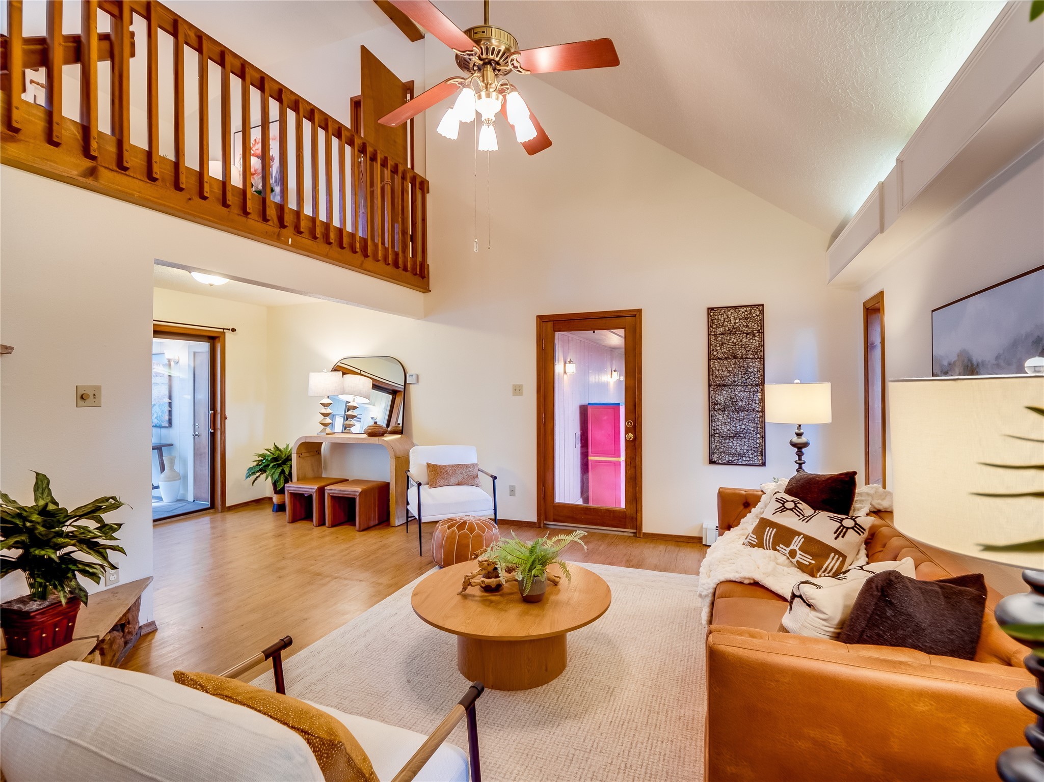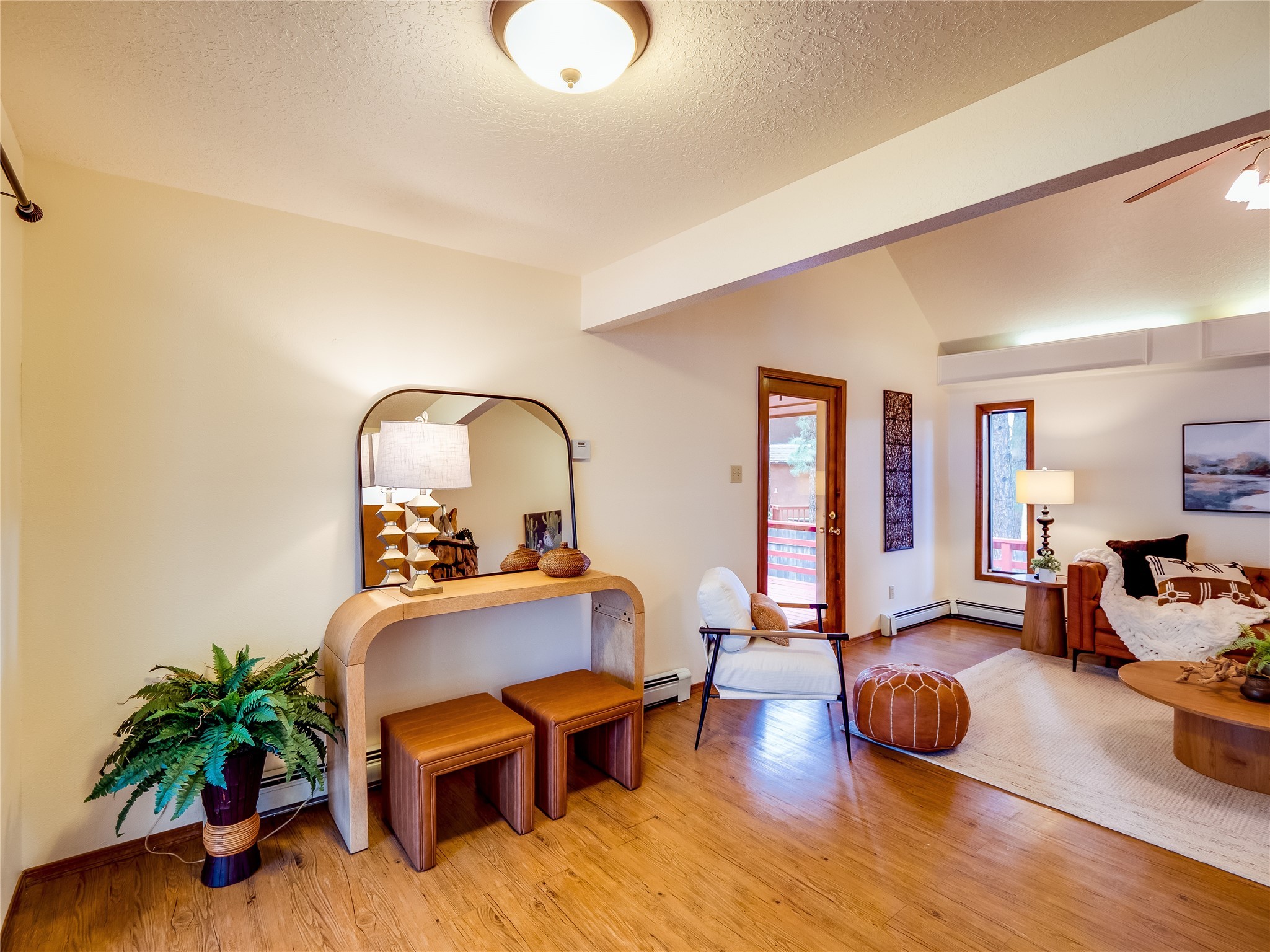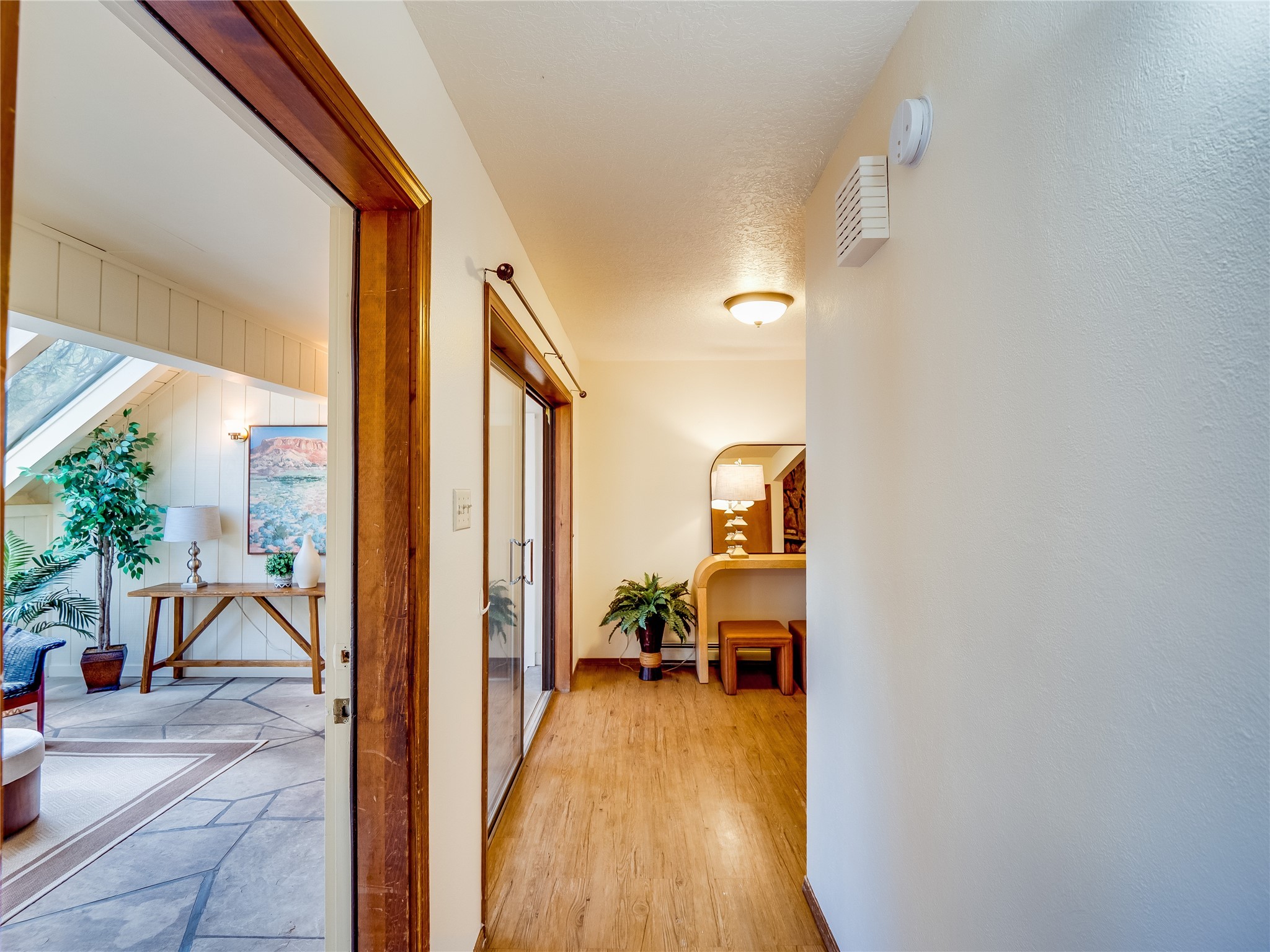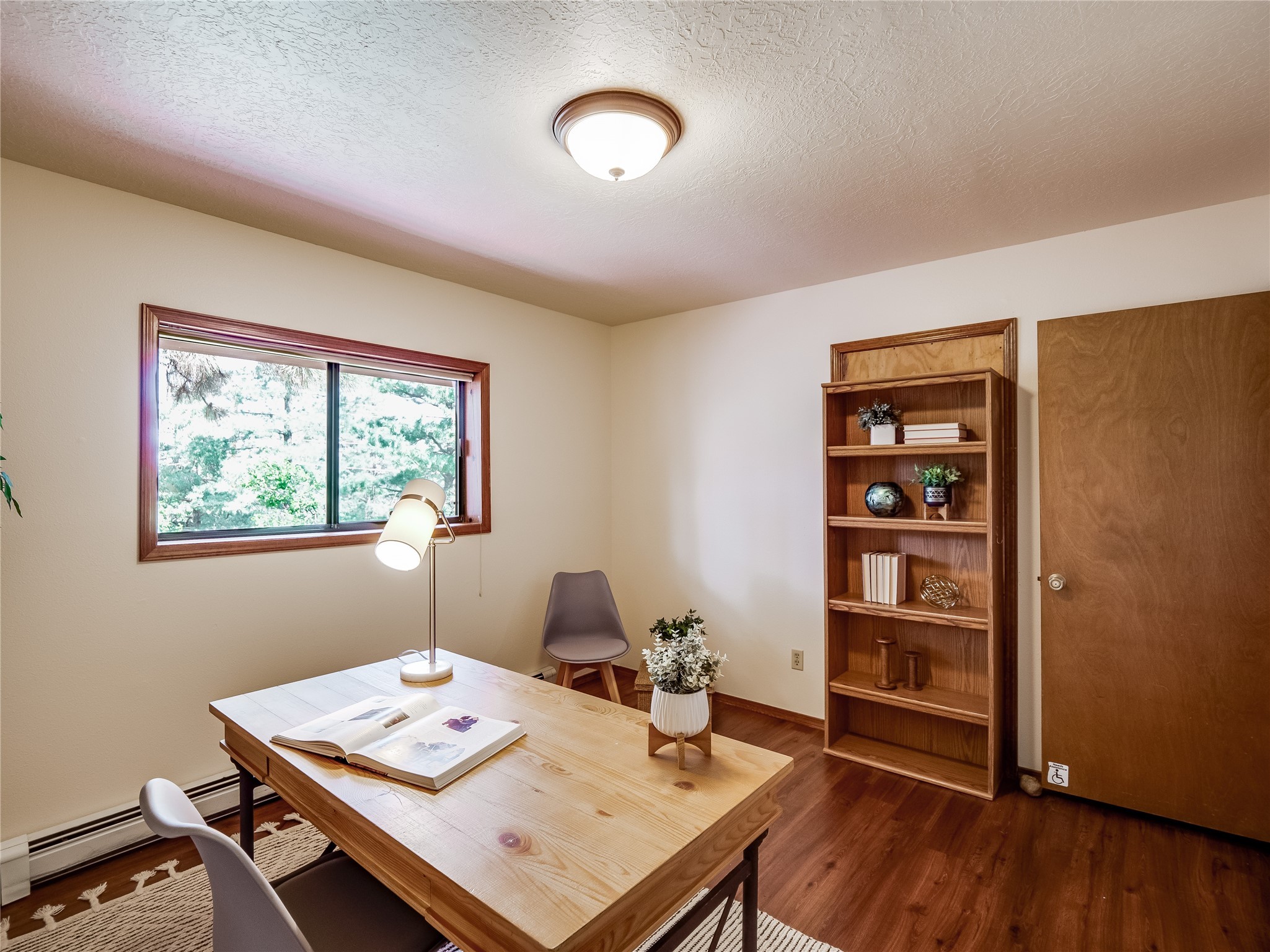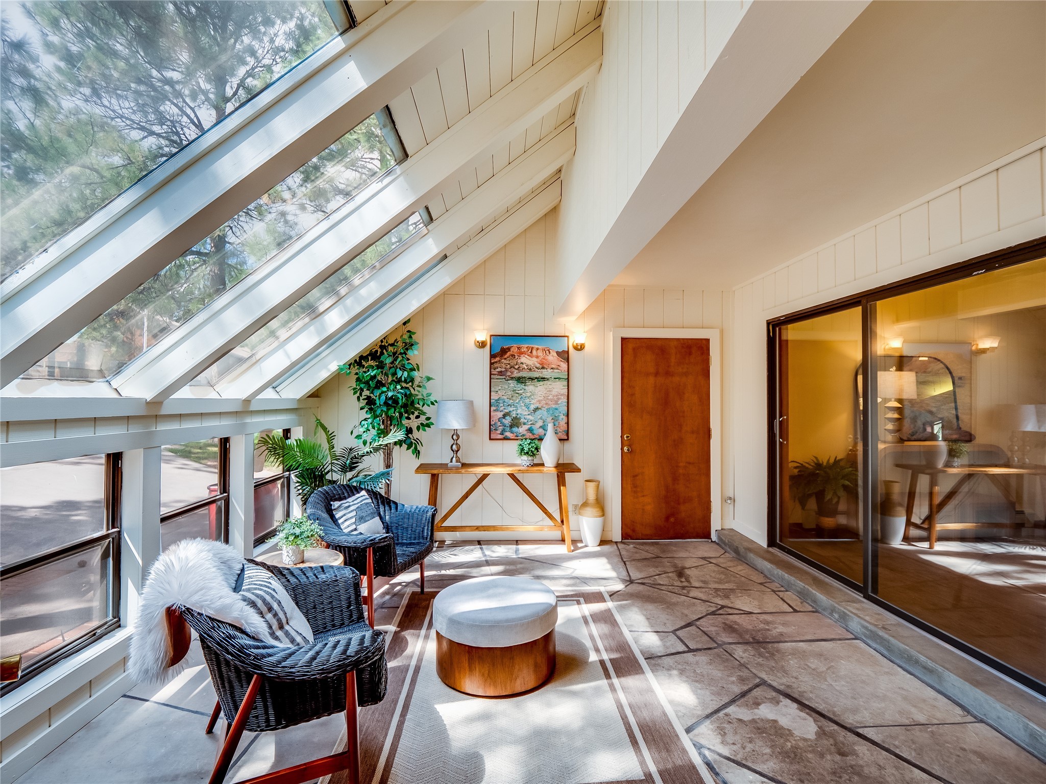 Welcome to this beautiful two-story home in the highly sought-after North Mesa neighborhood! Nestled on a wooded lot with a lush grass lawn, vibrant flower beds, and mature trees, the inviting curb appeal leads you to a charming sunroom-style front porch with stone flooring and direct access to the two-car garage. Step inside through one of two entryways, including sliding doors that open into the warm and welcoming living room. Here, vaulted ceilings create a spacious atmosphere while a stunning corner stone wood-burning fireplace serves as the focal point. Sliding doors extend the living space outdoors to a covered wood deck overlooking the expansive backyard--complete with fruit trees, mature landscaping, a grassy lawn, greenhouse, and storage shed, making it a true outdoor retreat. The dining and kitchen area features tile flooring, a tray ceiling with a skylight, and a thoughtful layout perfect for everyday living. The kitchen is equipped with warm wood cabinets accented by black hardware, light counters, a tile backsplash, and stainless steel appliances. Down the hall, the main level also offers a comfortable guest en-suite with a walk-in shower, an additional guest bedroom, a full guest bathroom with a single sink vanity, and a convenient laundry closet. Upstairs, plush carpet leads to a cozy loft-style family room with built-in cabinet bookcases, ideal for reading or gathering. A bright guest bedroom provides storage space and sliding doors that open to a private deck with breathtaking mountain views. The large primary en-suite is a peaceful retreat, featuring a spacious walk-in closet and extra storage. The bathroom is designed with a white single sink vanity with granite counters located within the bedroom, while a separate enclosed space houses the walk-in glass shower and toilet for added privacy. This fantastic home is in a prime location close to the golf course, trails, horse stables, and schools. Don't miss your chance to own this one-of-a-kind home!