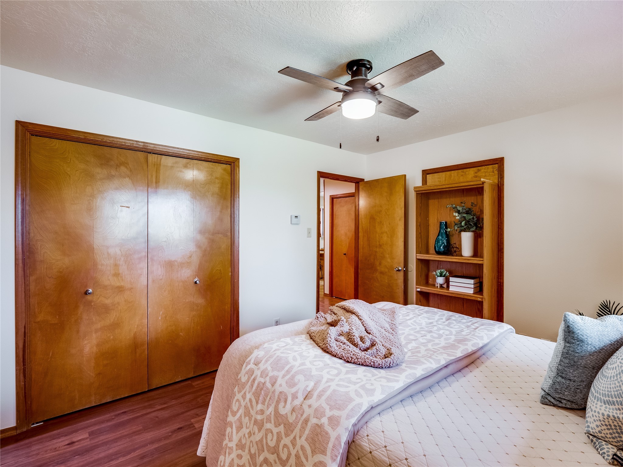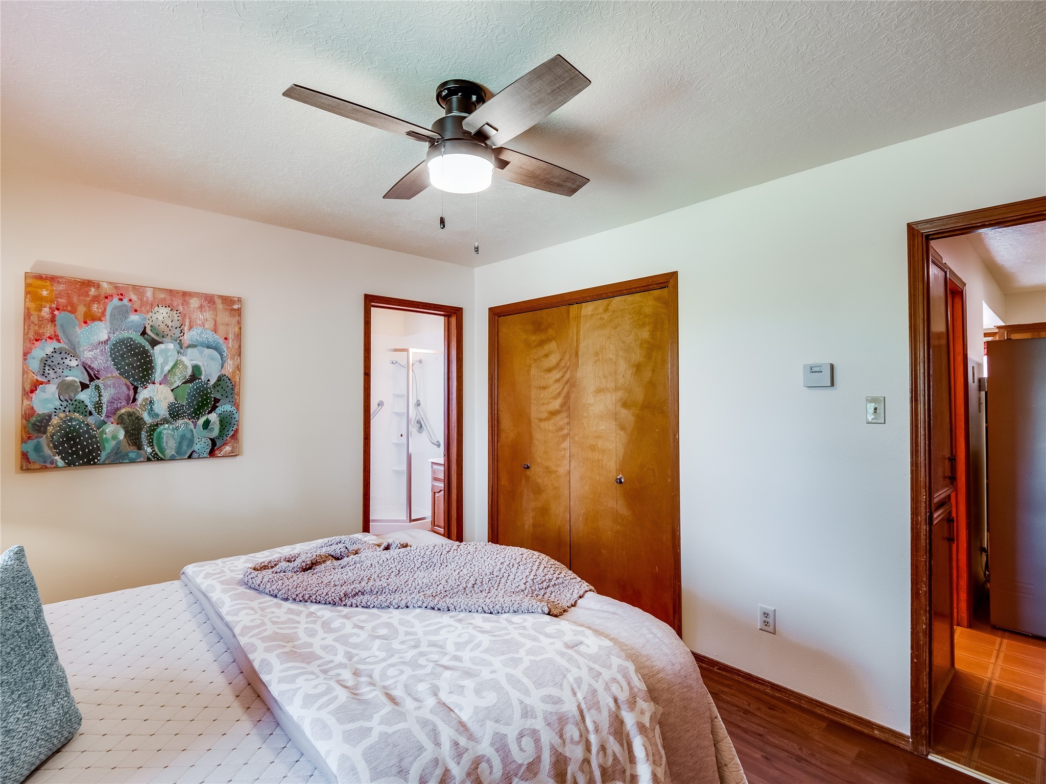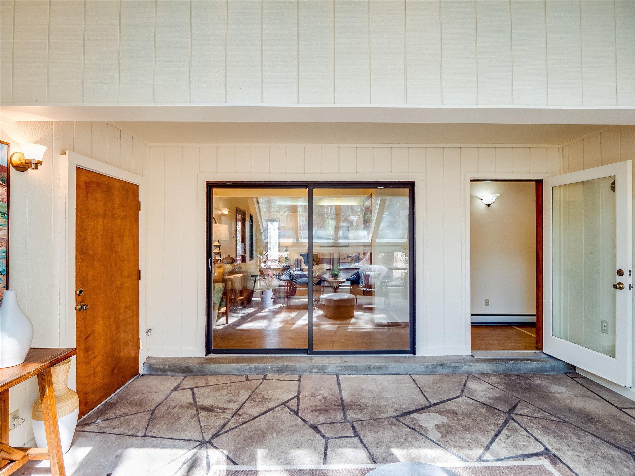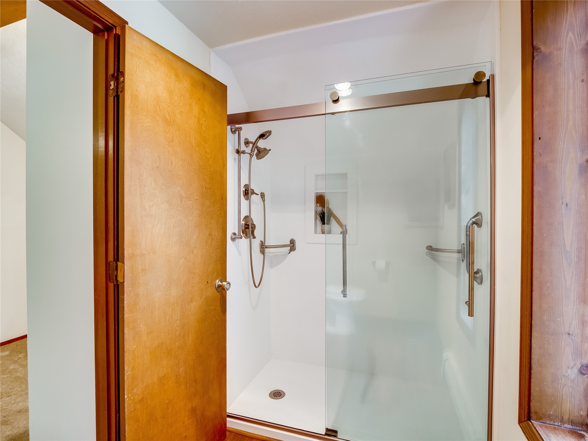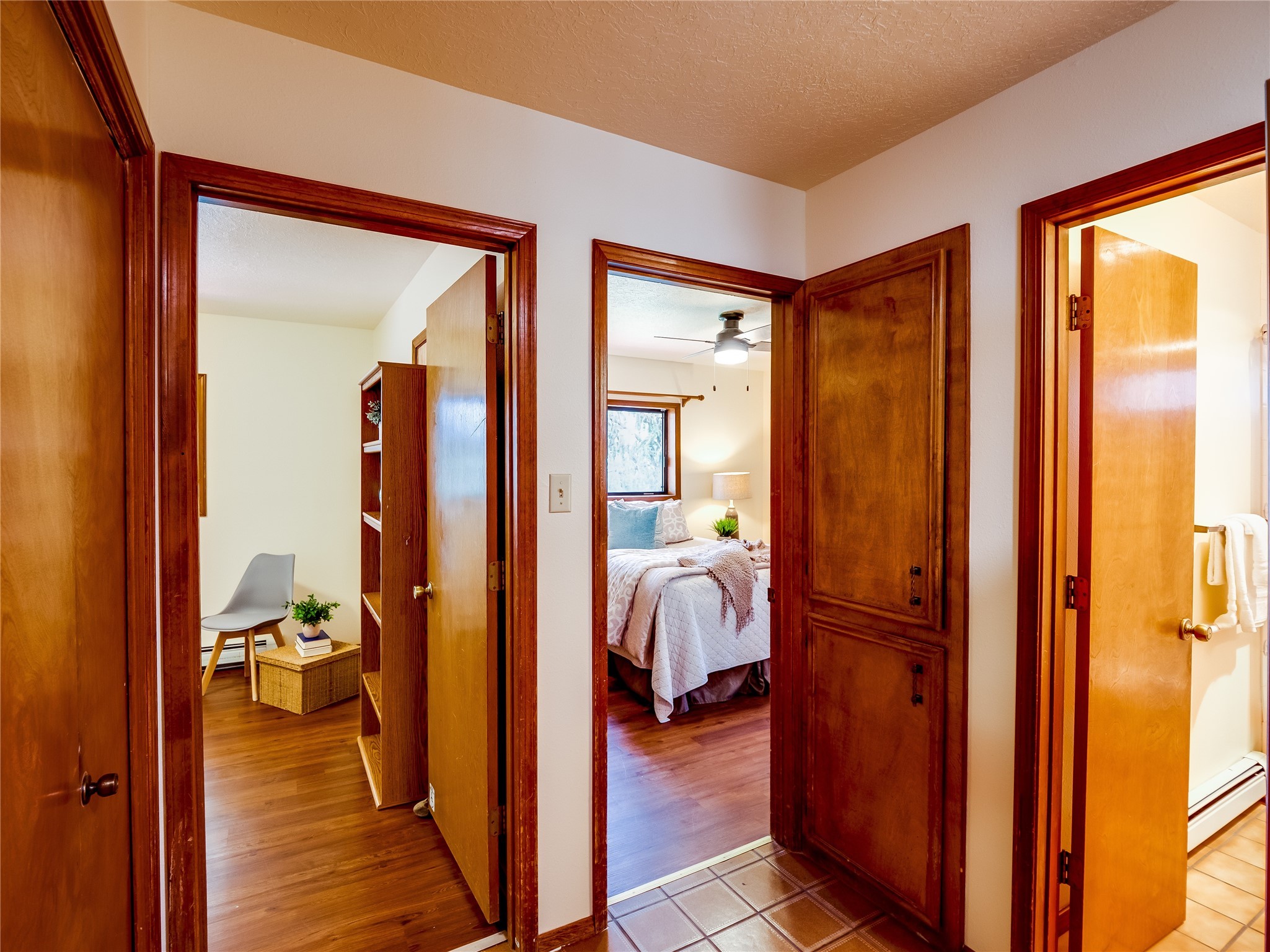 Welcome to this beautiful two-story home in the highly sought-after North Mesa neighborhood! Nestled on a wooded lot with a lush grass lawn, vibrant flower beds, and mature trees, the inviting curb appeal leads you to a charming sunroom-style front porch with stone flooring and direct access to the two-car garage. Step inside through one of two entryways, including sliding doors that open into the warm and welcoming living room. Here, vaulted ceilings create a spacious atmosphere while a stunning corner stone wood-burning fireplace serves as the focal point. Sliding doors extend the living space outdoors to a covered wood deck overlooking the expansive backyard--complete with fruit trees, mature landscaping, a grassy lawn, greenhouse, and storage shed, making it a true outdoor retreat. The dining and kitchen area features tile flooring, a tray ceiling with a skylight, and a thoughtful layout perfect for everyday living. The kitchen is equipped with warm wood cabinets accented by black hardware, light counters, a tile backsplash, and stainless steel appliances. Down the hall, the main level also offers a comfortable guest en-suite with a walk-in shower, an additional guest bedroom, a full guest bathroom with a single sink vanity, and a convenient laundry closet. Upstairs, plush carpet leads to a cozy loft-style family room with built-in cabinet bookcases, ideal for reading or gathering. A bright guest bedroom provides storage space and sliding doors that open to a private deck with breathtaking mountain views. The large primary en-suite is a peaceful retreat, featuring a spacious walk-in closet and extra storage. The bathroom is designed with a white single sink vanity with granite counters located within the bedroom, while a separate enclosed space houses the walk-in glass shower and toilet for added privacy. This fantastic home is in a prime location close to the golf course, trails, horse stables, and schools. Don't miss your chance to own this one-of-a-kind home!