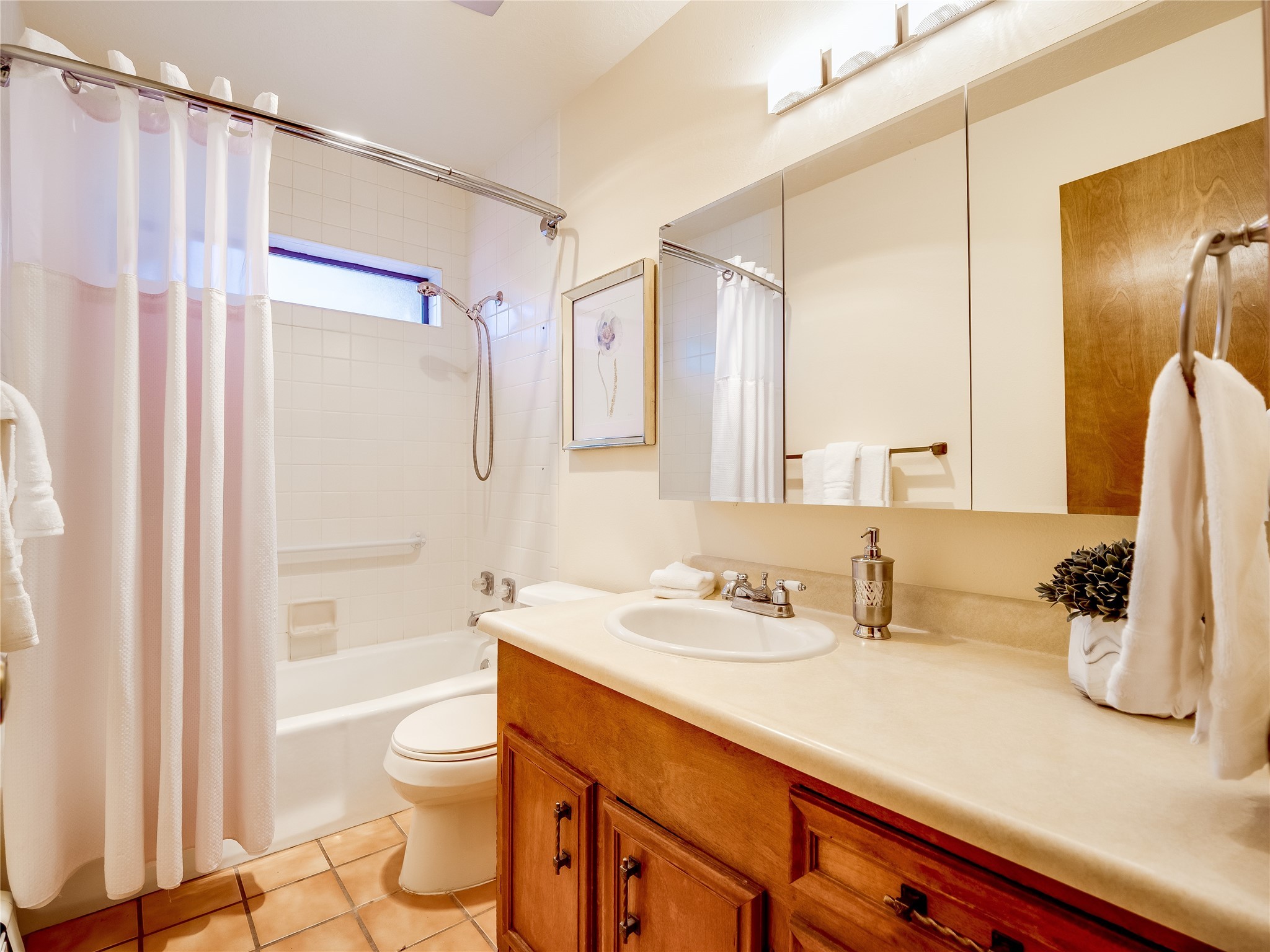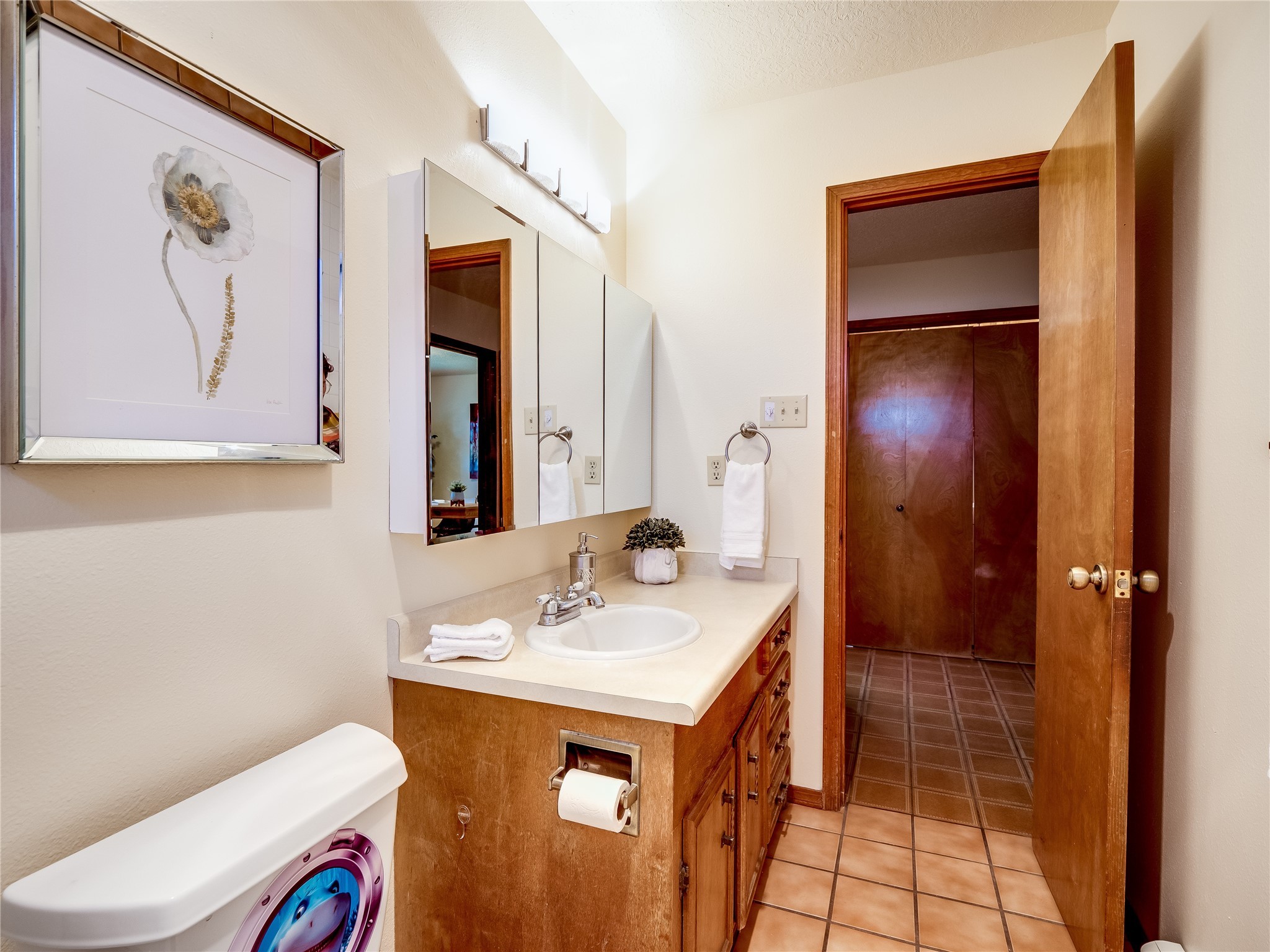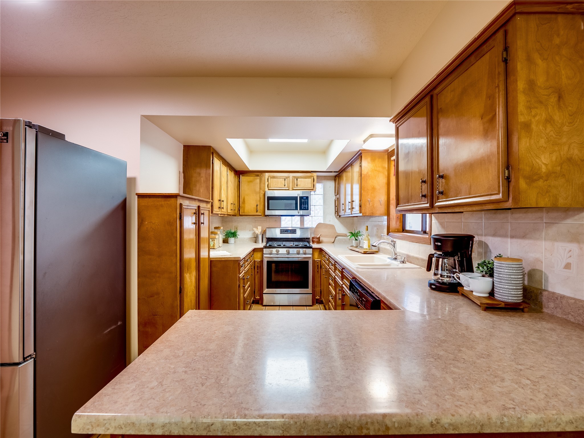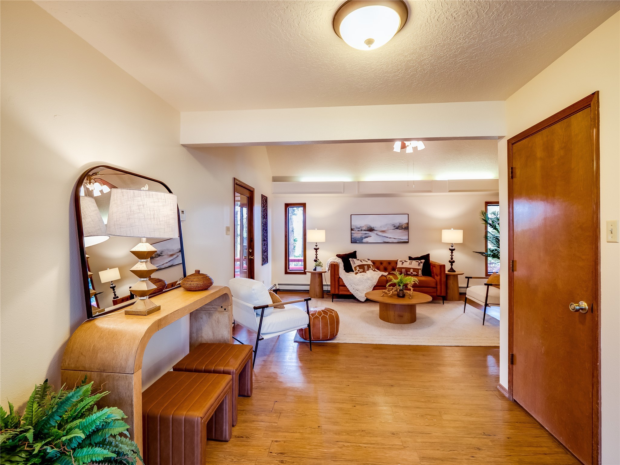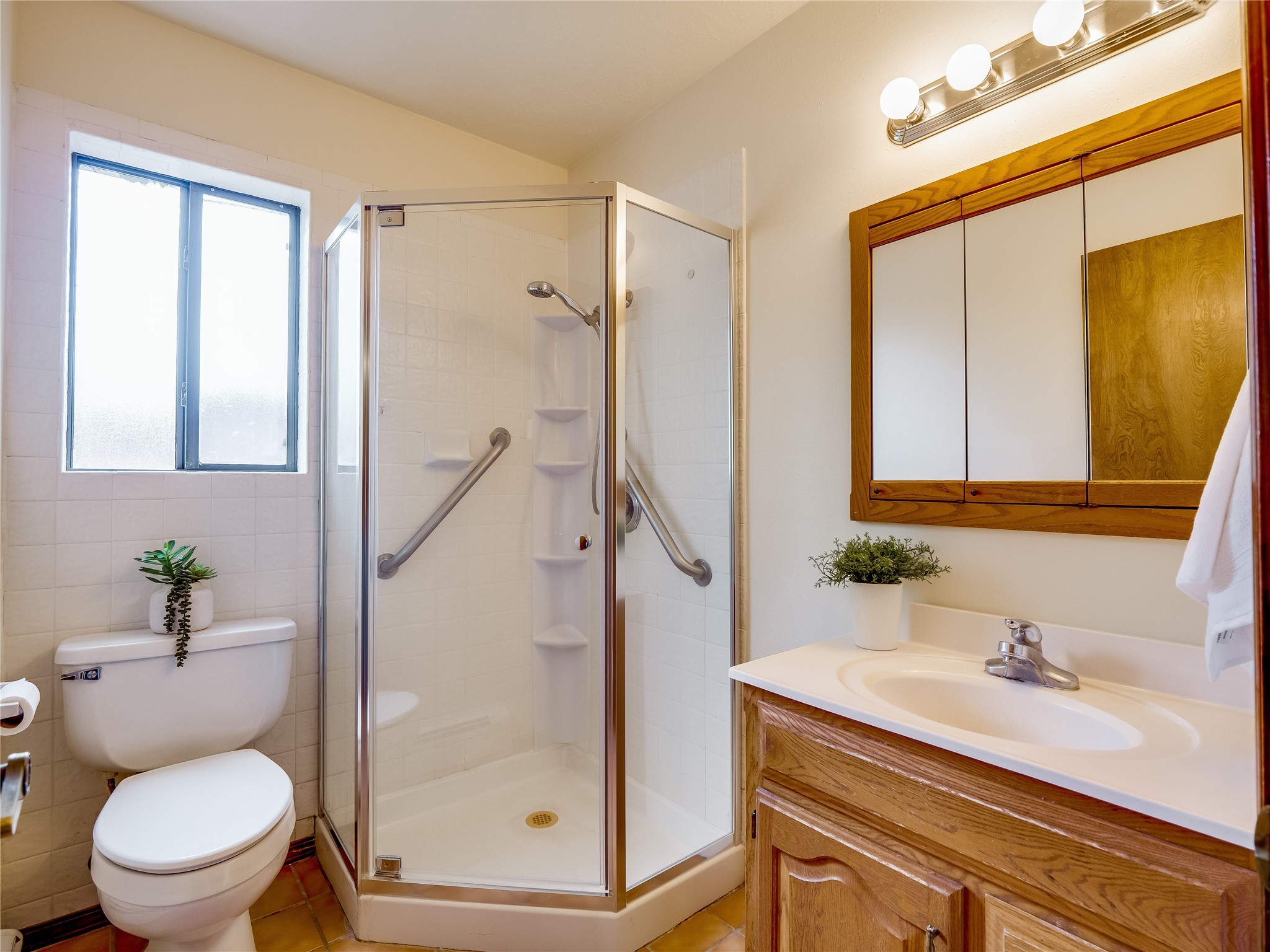 Welcome to this beautiful two-story home in the highly sought-after North Mesa neighborhood! Nestled on a wooded lot with a lush grass lawn, vibrant flower beds, and mature trees, the inviting curb appeal leads you to a charming sunroom-style front porch with stone flooring and direct access to the two-car garage. Step inside through one of two entryways, including sliding doors that open into the warm and welcoming living room. Here, vaulted ceilings create a spacious atmosphere while a stunning corner stone wood-burning fireplace serves as the focal point. Sliding doors extend the living space outdoors to a covered wood deck overlooking the expansive backyard--complete with fruit trees, mature landscaping, a grassy lawn, greenhouse, and storage shed, making it a true outdoor retreat. The dining and kitchen area features tile flooring, a tray ceiling with a skylight, and a thoughtful layout perfect for everyday living. The kitchen is equipped with warm wood cabinets accented by black hardware, light counters, a tile backsplash, and stainless steel appliances. Down the hall, the main level also offers a comfortable guest en-suite with a walk-in shower, an additional guest bedroom, a full guest bathroom with a single sink vanity, and a convenient laundry closet. Upstairs, plush carpet leads to a cozy loft-style family room with built-in cabinet bookcases, ideal for reading or gathering. A bright guest bedroom provides storage space and sliding doors that open to a private deck with breathtaking mountain views. The large primary en-suite is a peaceful retreat, featuring a spacious walk-in closet and extra storage. The bathroom is designed with a white single sink vanity with granite counters located within the bedroom, while a separate enclosed space houses the walk-in glass shower and toilet for added privacy. This fantastic home is in a prime location close to the golf course, trails, horse stables, and schools. Don't miss your chance to own this one-of-a-kind home!