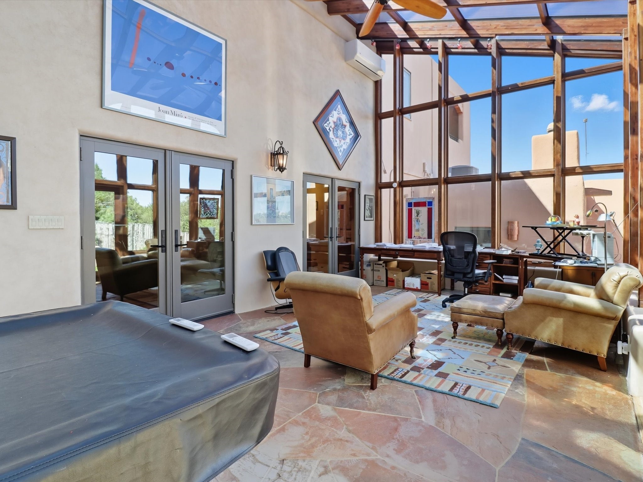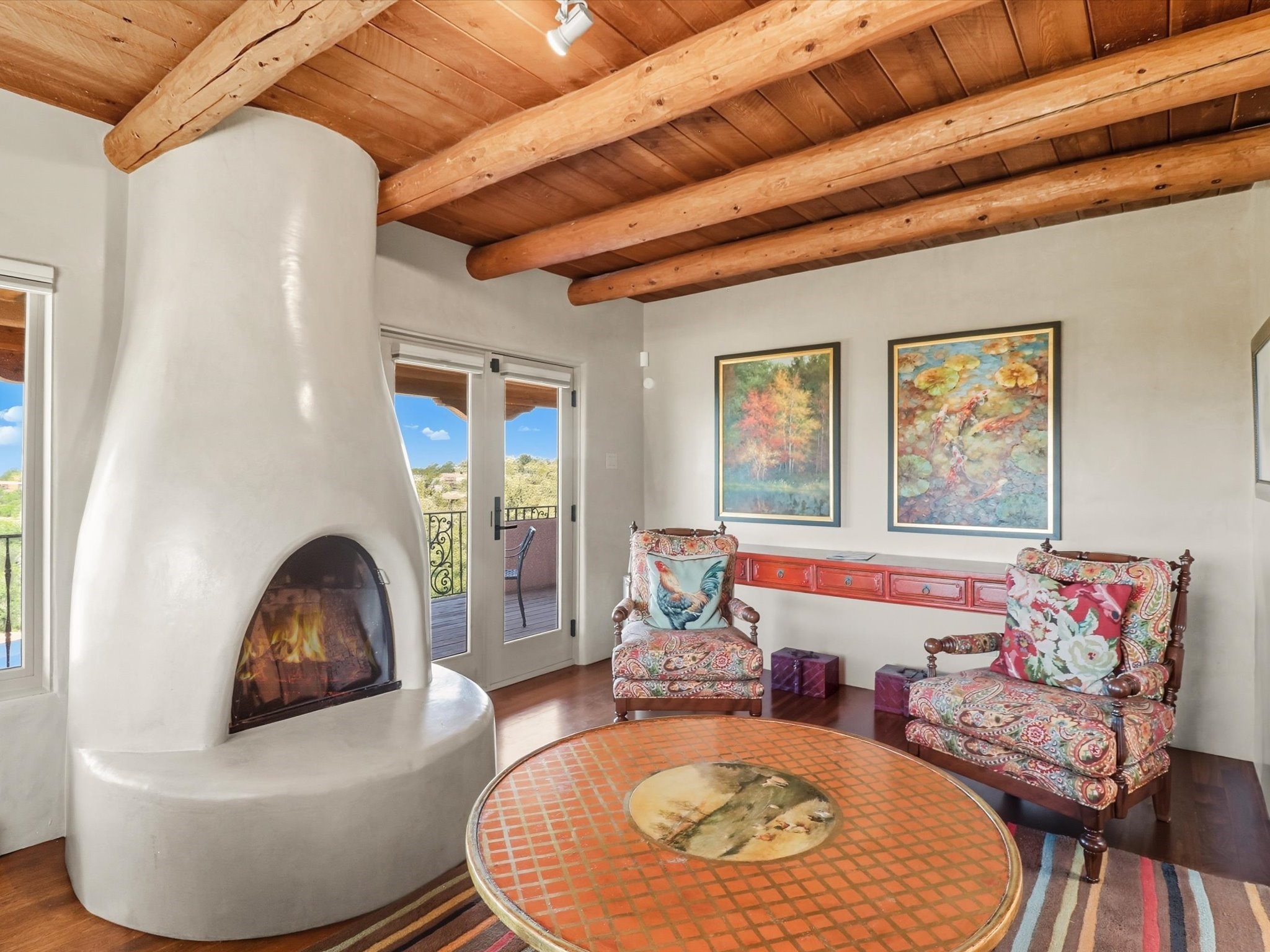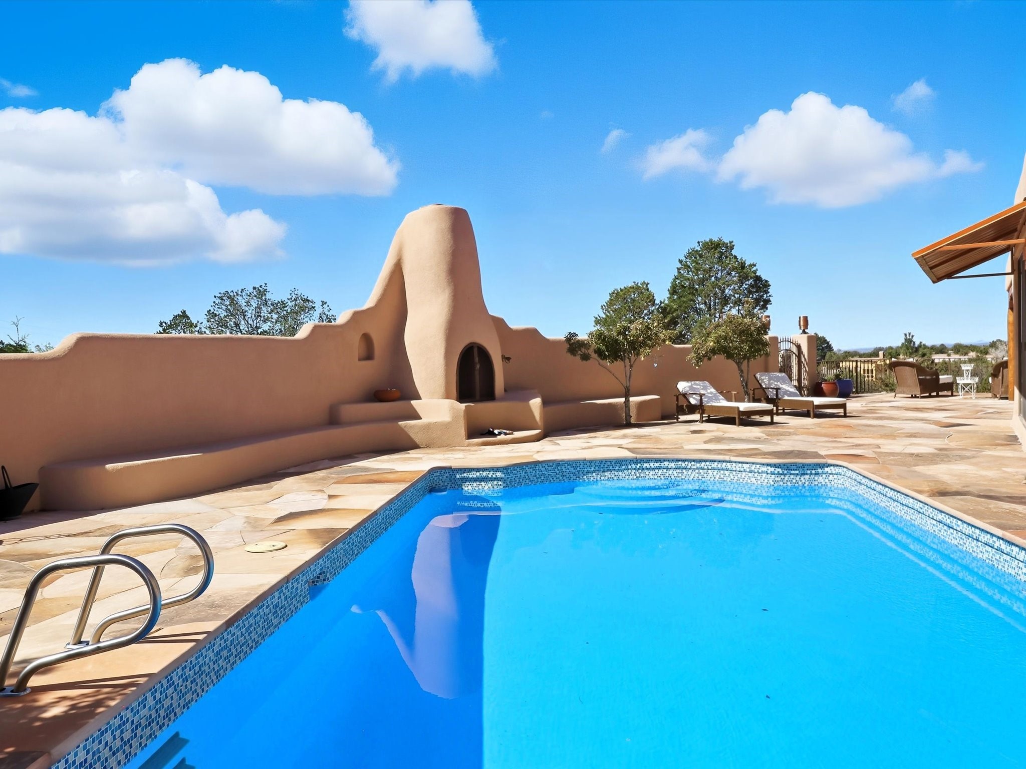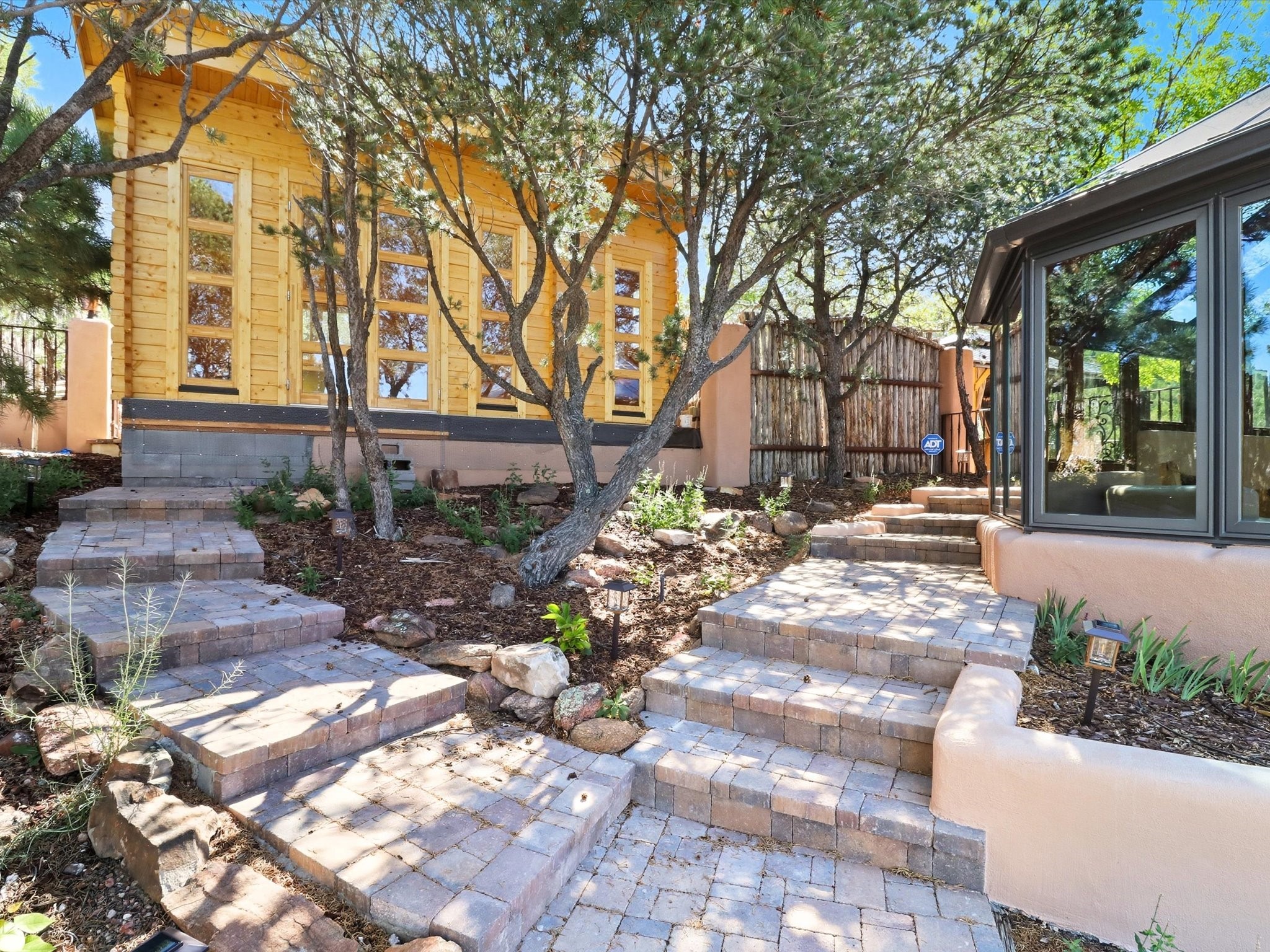 WANTED: A New Owner With a Taste for the Extraordinary! Be prepared to be inspired--inspired to live effortlessly in a mountain escape where Old World charm meets modern-day refinement. This elevated estate isn't just a home, it's a sanctuary, a hideaway, a place where sunsets stretch for miles and every corner whispers character. Step through newly designed gardens with stone walkways and an elegant driveway that sets the stage for what's within. Inside, custom wood accents, artisan ironwork, walnut floors, and hand-troweled plaster walls warm the soul. Two living areas -- plus a sunlit, heated, and cooled solarium with a sauna off to the side -- offer spaces to gather and relax. The primary suite is its own retreat, with custom entry doors, a sitting area anchored by a kiva fireplace, and direct access to a private deck where sunsets put on their nightly show. The owners have thoughtfully elevated this property with recent upgrades: a transformed garden landscape, extensive stonework, Anderson windows and doors, and major enhancements to the arroyo. Outdoors, the amenities read like a resort--solar panels, a pool with two hot tubs and a waterslide, plus all-new heating systems to keep each pool zone comfortable year-round. And there's more: an amazing shed ready for conversion to living space, plus the possibility of adding a casita at the top of the lot--perfect for guests or creative ventures. This isn't just a property. It's a rare opportunity to claim your own mountain retreat, one where history, craftsmanship, and modern comfort converge.REWARD: Unmatched views, inspired living, and the chance to call this mountain haven your own.