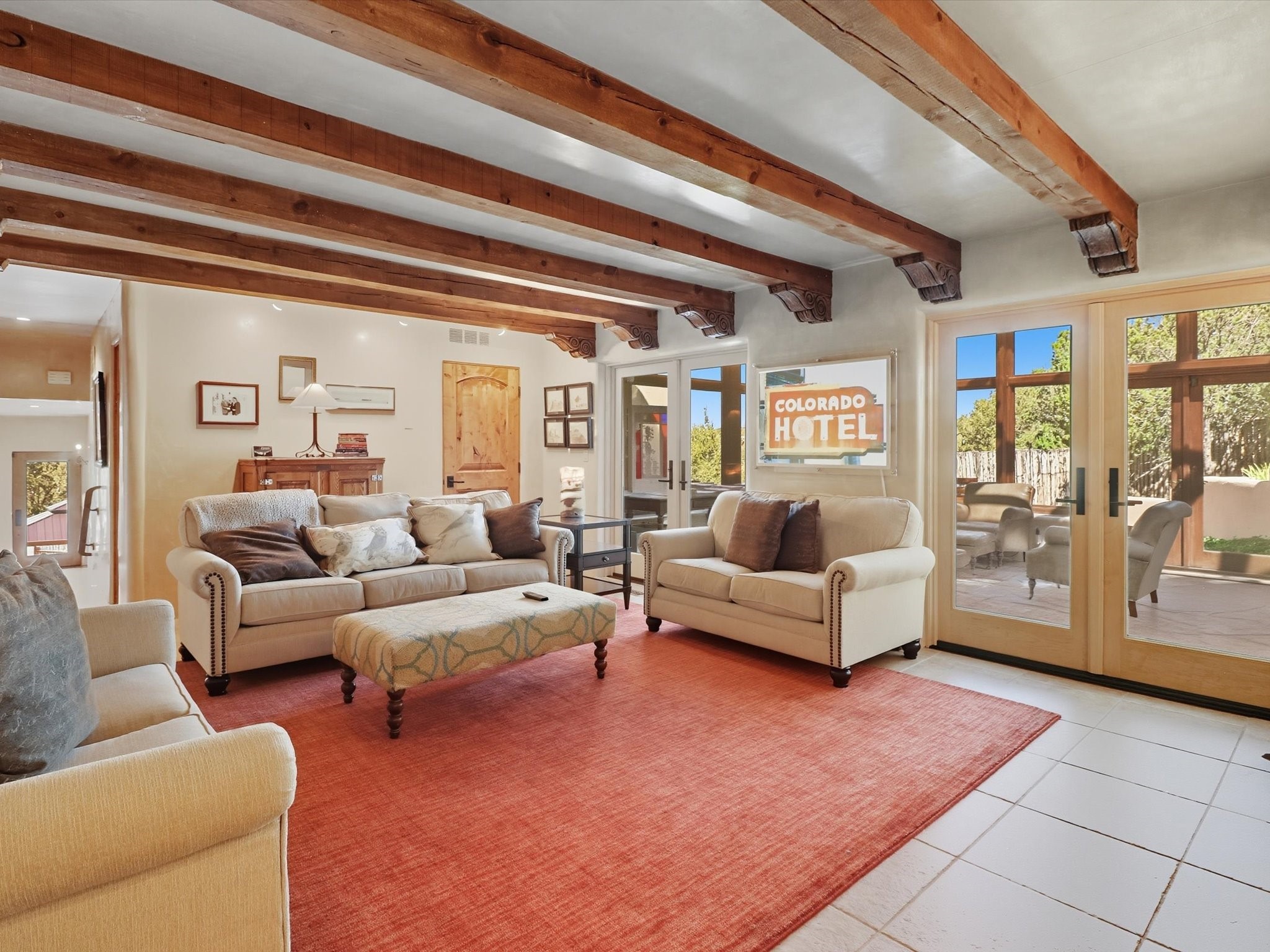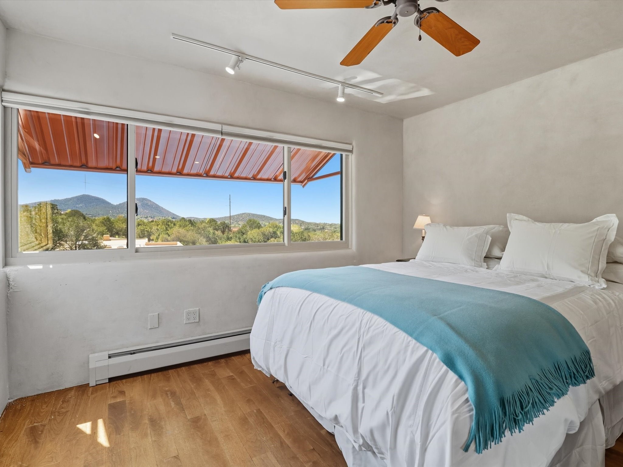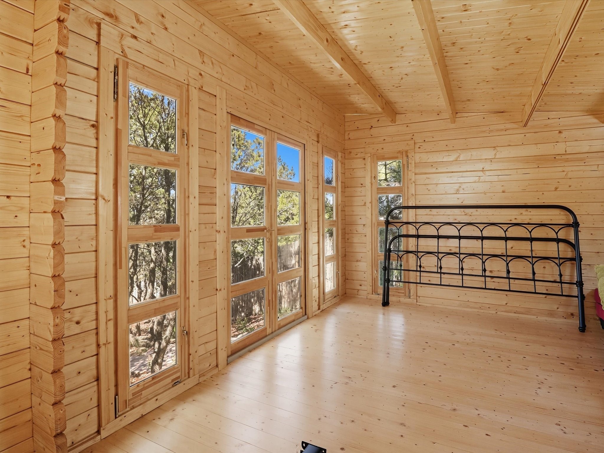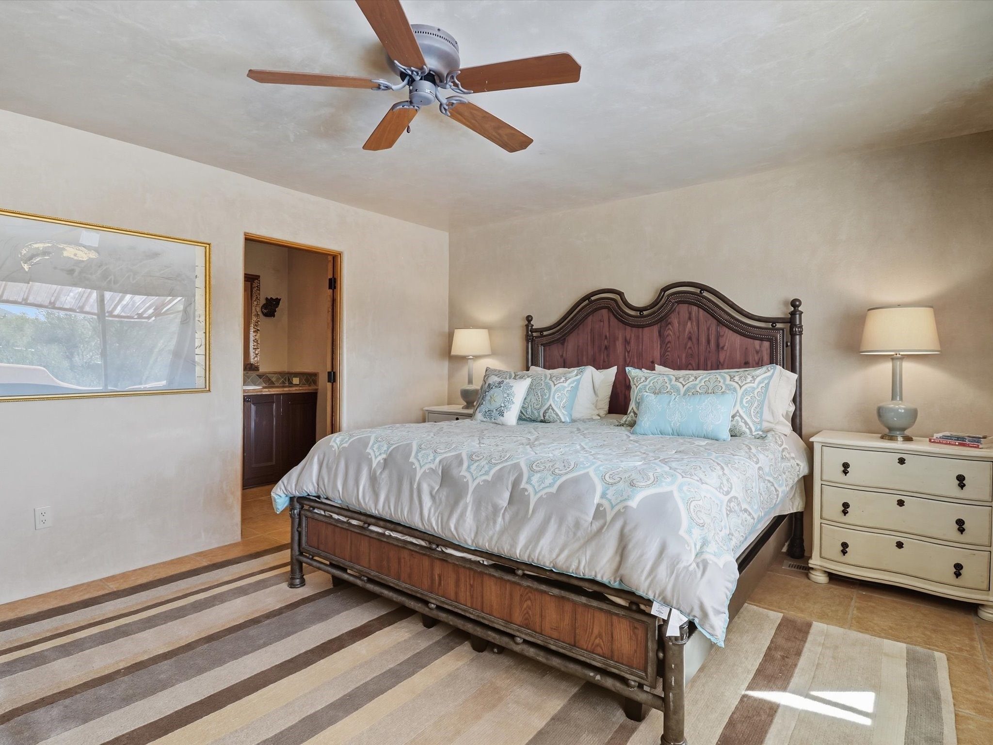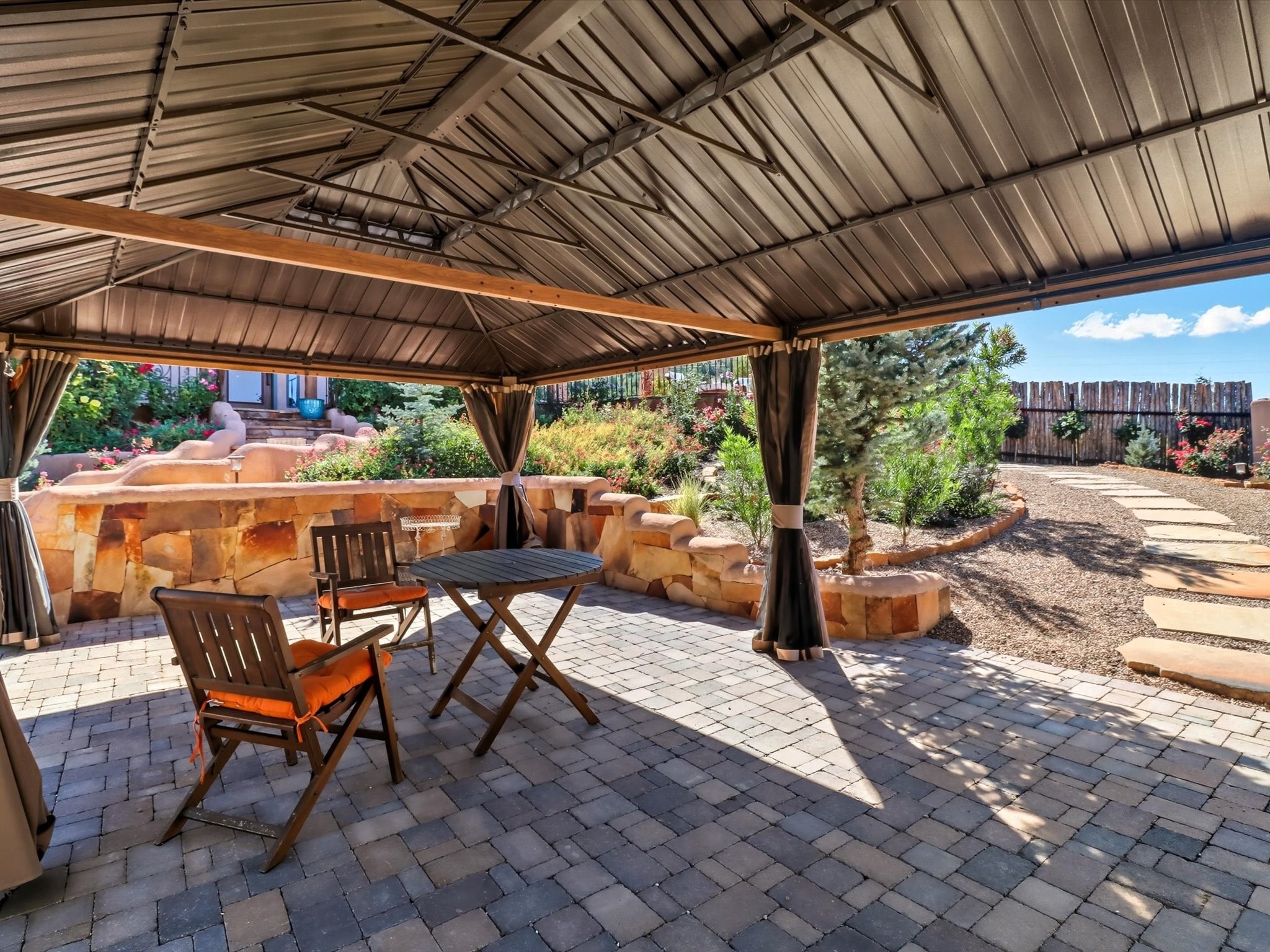 WANTED: A New Owner With a Taste for the Extraordinary! Be prepared to be inspired--inspired to live effortlessly in a mountain escape where Old World charm meets modern-day refinement. This elevated estate isn't just a home, it's a sanctuary, a hideaway, a place where sunsets stretch for miles and every corner whispers character. Step through newly designed gardens with stone walkways and an elegant driveway that sets the stage for what's within. Inside, custom wood accents, artisan ironwork, walnut floors, and hand-troweled plaster walls warm the soul. Two living areas -- plus a sunlit, heated, and cooled solarium with a sauna off to the side -- offer spaces to gather and relax. The primary suite is its own retreat, with custom entry doors, a sitting area anchored by a kiva fireplace, and direct access to a private deck where sunsets put on their nightly show. The owners have thoughtfully elevated this property with recent upgrades: a transformed garden landscape, extensive stonework, Anderson windows and doors, and major enhancements to the arroyo. Outdoors, the amenities read like a resort--solar panels, a pool with two hot tubs and a waterslide, plus all-new heating systems to keep each pool zone comfortable year-round. And there's more: an amazing shed ready for conversion to living space, plus the possibility of adding a casita at the top of the lot--perfect for guests or creative ventures. This isn't just a property. It's a rare opportunity to claim your own mountain retreat, one where history, craftsmanship, and modern comfort converge.REWARD: Unmatched views, inspired living, and the chance to call this mountain haven your own.