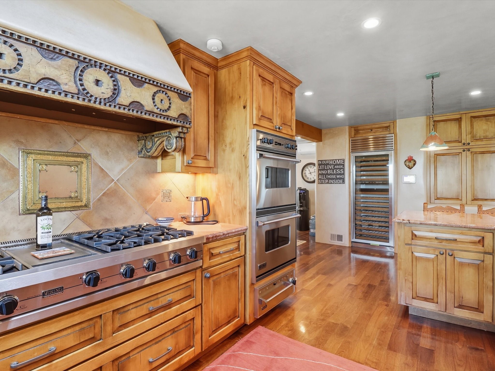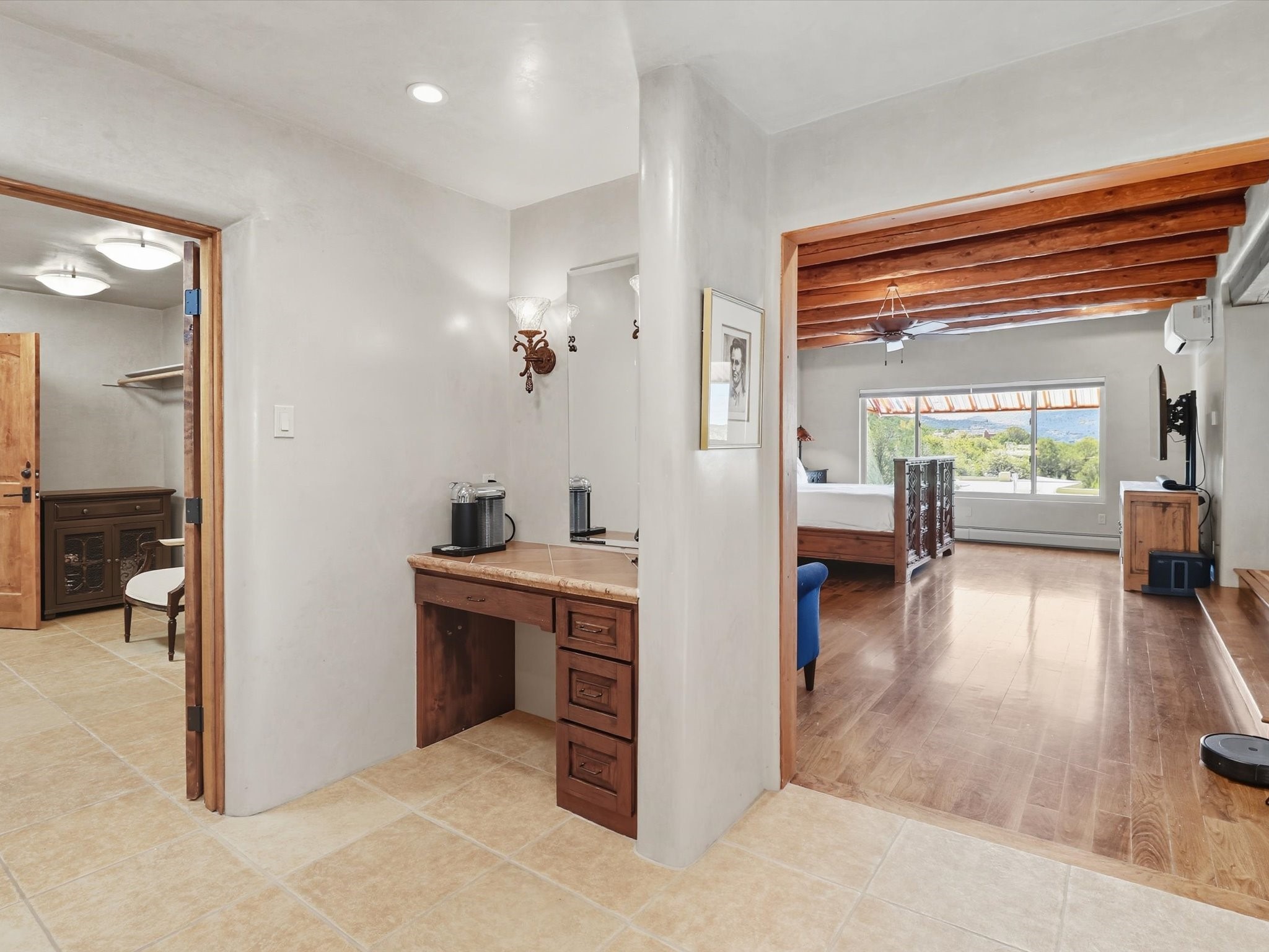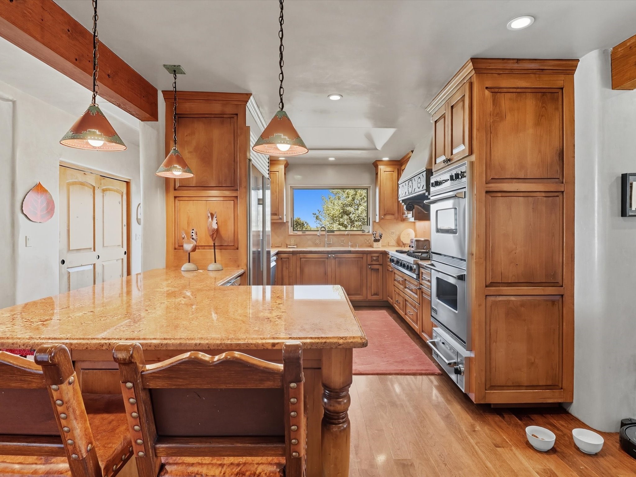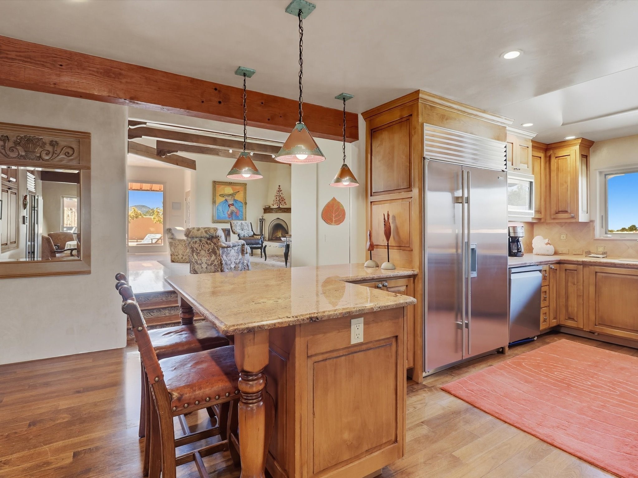 WANTED: A New Owner With a Taste for the Extraordinary! Be prepared to be inspired--inspired to live effortlessly in a mountain escape where Old World charm meets modern-day refinement. This elevated estate isn't just a home, it's a sanctuary, a hideaway, a place where sunsets stretch for miles and every corner whispers character. Step through newly designed gardens with stone walkways and an elegant driveway that sets the stage for what's within. Inside, custom wood accents, artisan ironwork, walnut floors, and hand-troweled plaster walls warm the soul. Two living areas -- plus a sunlit, heated, and cooled solarium with a sauna off to the side -- offer spaces to gather and relax. The primary suite is its own retreat, with custom entry doors, a sitting area anchored by a kiva fireplace, and direct access to a private deck where sunsets put on their nightly show. The owners have thoughtfully elevated this property with recent upgrades: a transformed garden landscape, extensive stonework, Anderson windows and doors, and major enhancements to the arroyo. Outdoors, the amenities read like a resort--solar panels, a pool with two hot tubs and a waterslide, plus all-new heating systems to keep each pool zone comfortable year-round. And there's more: an amazing shed ready for conversion to living space, plus the possibility of adding a casita at the top of the lot--perfect for guests or creative ventures. This isn't just a property. It's a rare opportunity to claim your own mountain retreat, one where history, craftsmanship, and modern comfort converge.REWARD: Unmatched views, inspired living, and the chance to call this mountain haven your own.