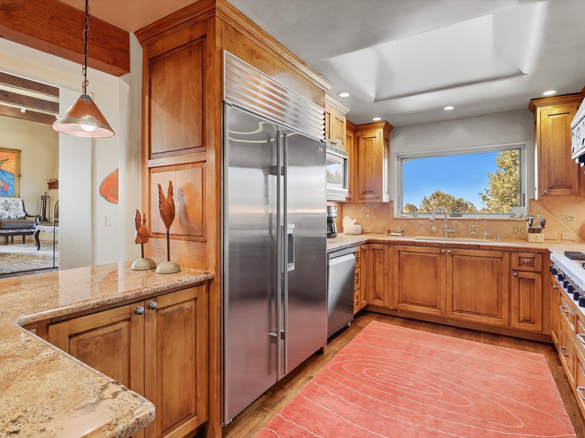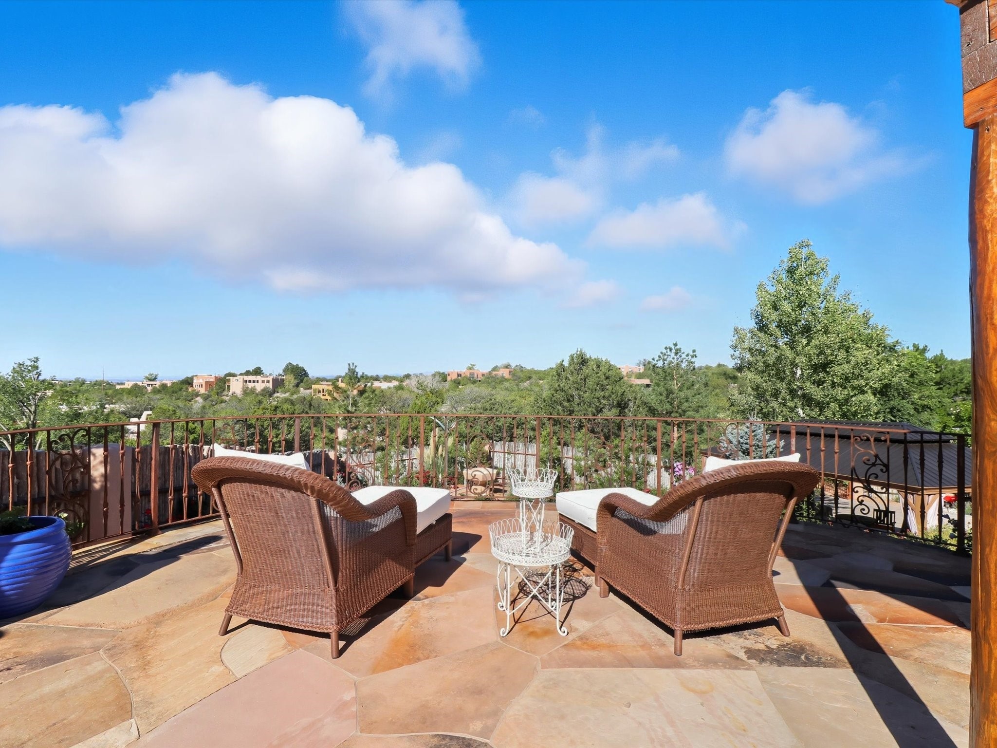 The Northeast of Santa Fe, within city limits, combines the pleasures of quiet living with the conveniences of location. On every tree-lined street are examples of newer, award-winning architecture and well-established, older adobes. In addition to the famous Plaza, this area includes all the land reaching up to the Jemez and the Sandias. Newer developments appear on your left and right as you