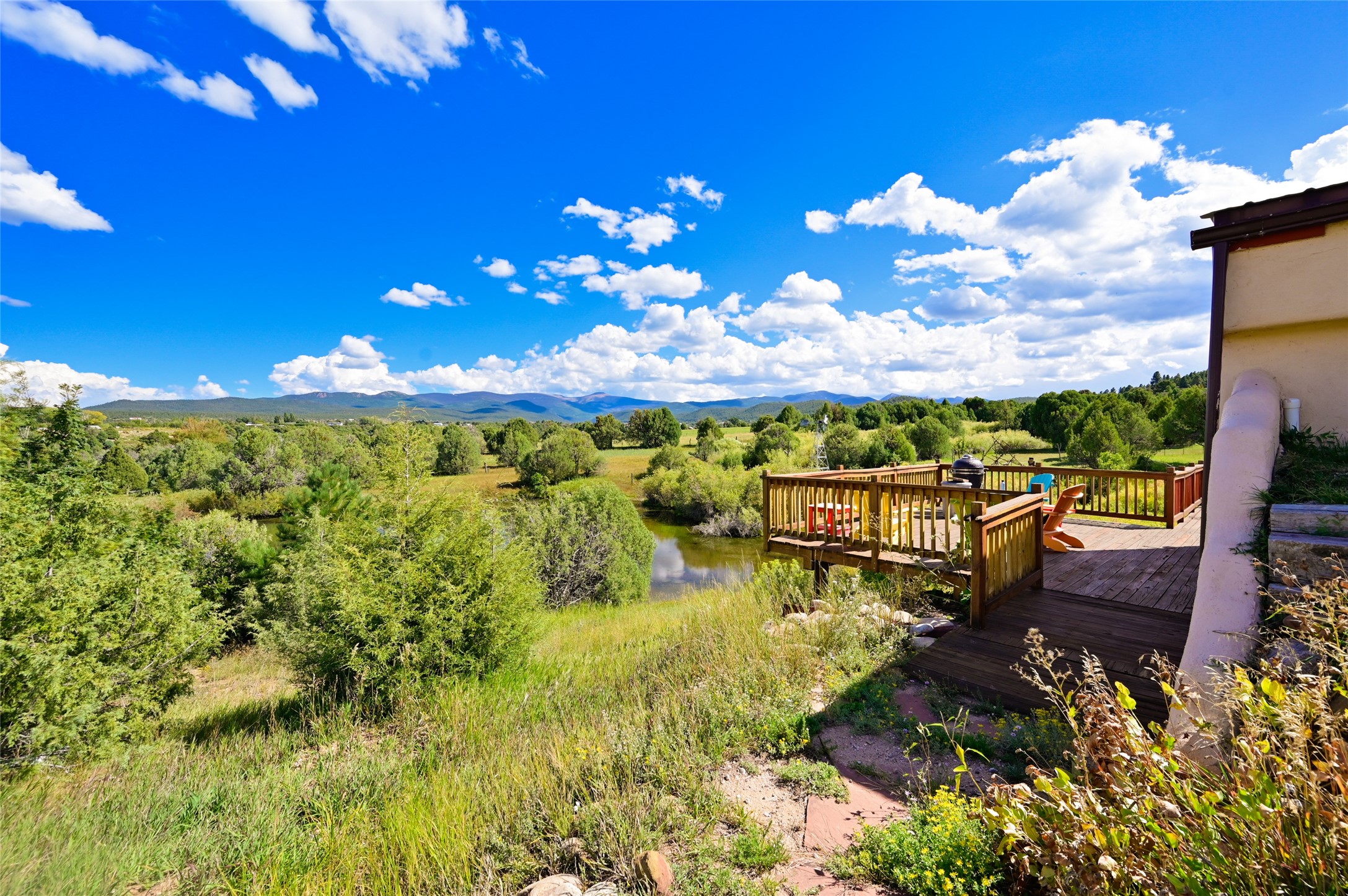 A truly rare 34-acre mountain retreat awaits, nestled in the Sangre de Cristo Mountains with stunning views of Jicarita Peak and Truchas Peaks. This exceptional, self-sufficient, and sustainably developed property is perfect for a small family business, equestrian estate, or serene retreat center.The total living space of 4,100 sq ft includes a charming 1,600 sq ft earth-bermed 2-bedroom home featuring custom stone floors, vigas, radiant in-floor heat in the kitchen and master suite, and an updated kitchen with a Wolf Stove and granite countertops. The home is designed for energy efficiency, maximizing solar gain, and has a wrap-around deck with captivating pond and mountain views.The property also boasts a 2,225 sq ft office/mixed-use building (zoned for cottage industry, previously a successful institute), a 275 sq ft studio/guest house with a half-bath, and a 30' insulated yurt with off-grid solar, ideal for meditation or a classroom--offering immense flexibility and separate spaces for living, working, and gathering.Outside, find unparalleled amenities dedicated to Earth Stewardship and conservation: 10 irrigated acres with water rights for farming or grazing. Rustic 3-stall horse barn and tack room, horse fencing throughout property. 33' geodesic Growing Dome for year-round production. A comprehensive water catchment system utilizing heavy-duty roof guttering on all buildings and multiple cisterns. A quarter-acre pond with a Trex deck, fed by wetlands and springs, and aerated by a windmill. A vast network of maintained trails on forested acres (thinned and managed), offering direct access to the Carson National Forest.Additional features include an owned grid-tied solar array, a root cellar, a 40' cargo container, and extensive landscaping with drip irrigation. This property is a rare gem, beautifully developed, and ready for its next steward.