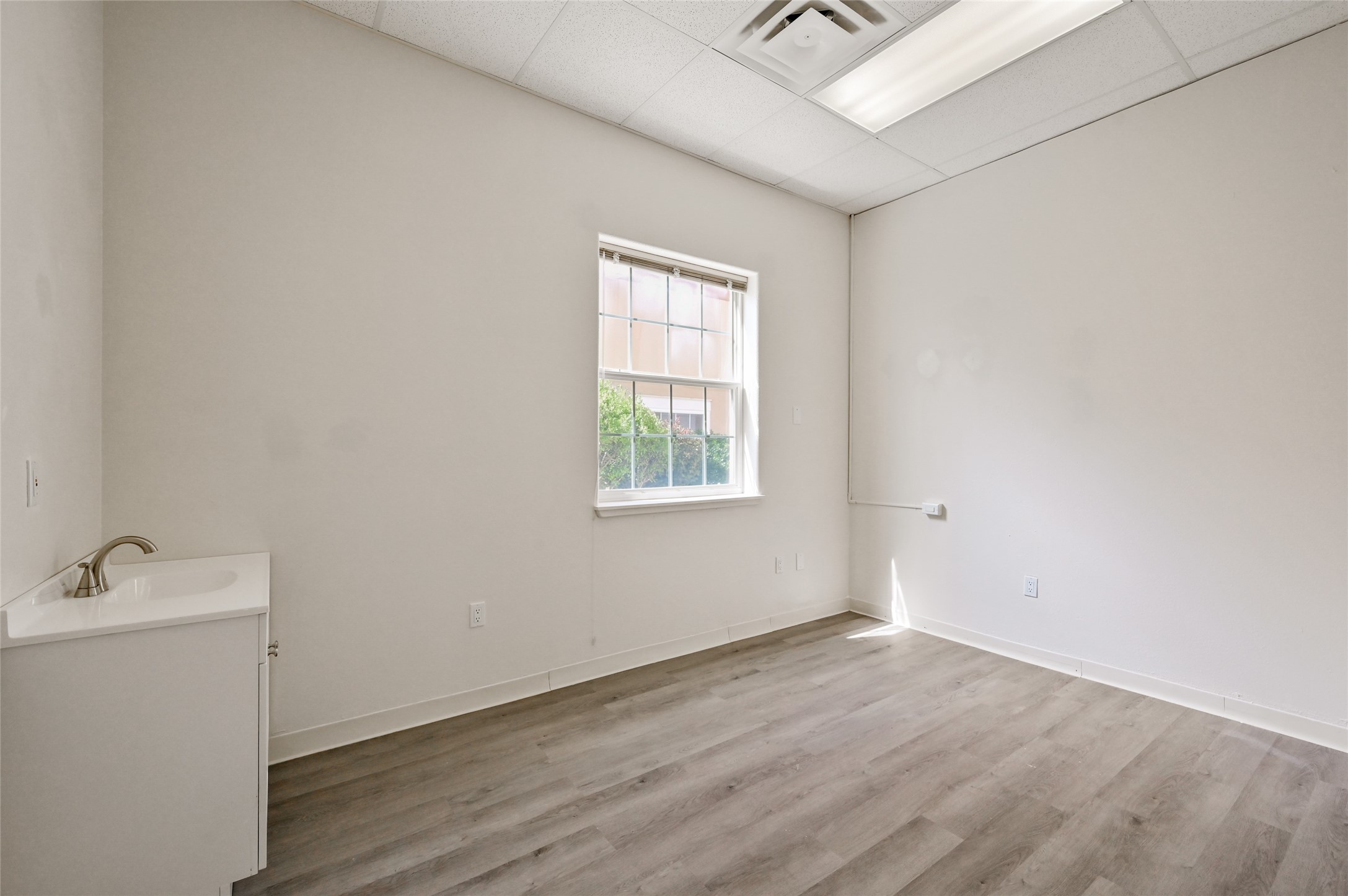 Newly renovated office space available for lease, featuring a welcoming reception area and nine private offices or exam rooms, several equipped with sinks. The suite includes a kitchenette/break area, in-suite restrooms, and a separate side entrance. With abundant natural light throughout, this professionally managed property has been freshly repainted and fitted with new vinyl flooring. Located in the highly desirable St. Michael's and S St. Francis corridor, it's an ideal space for your business.