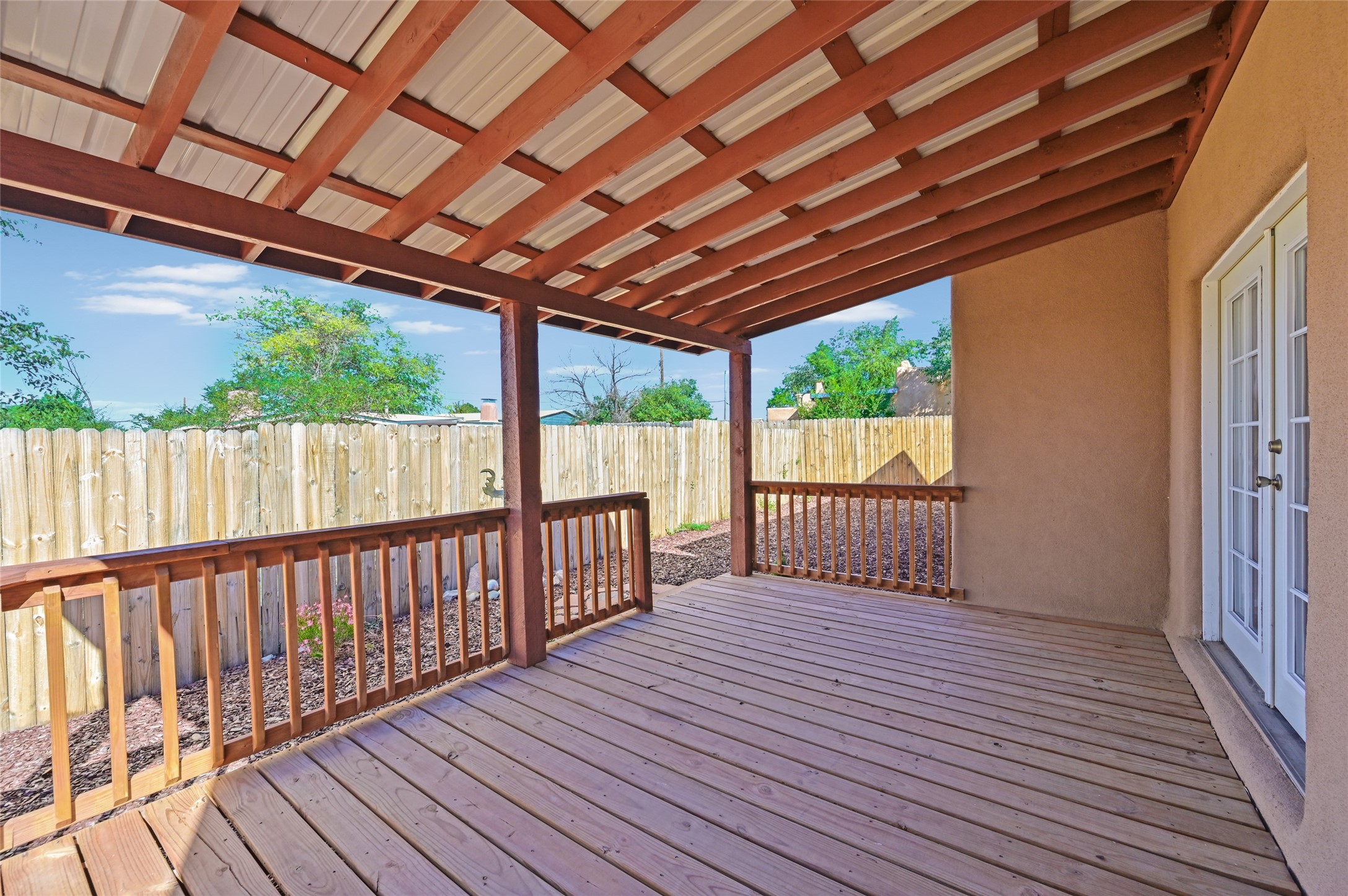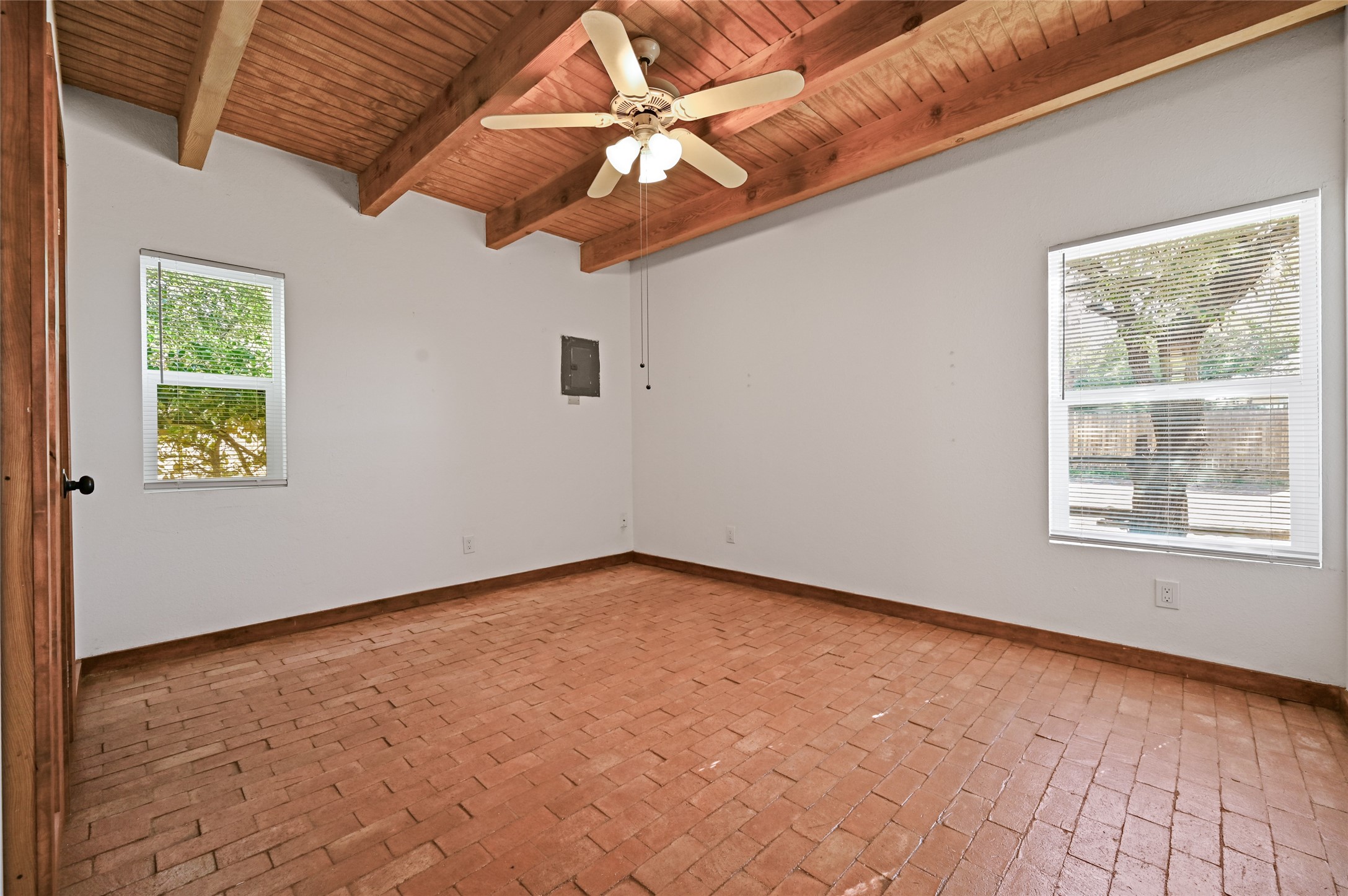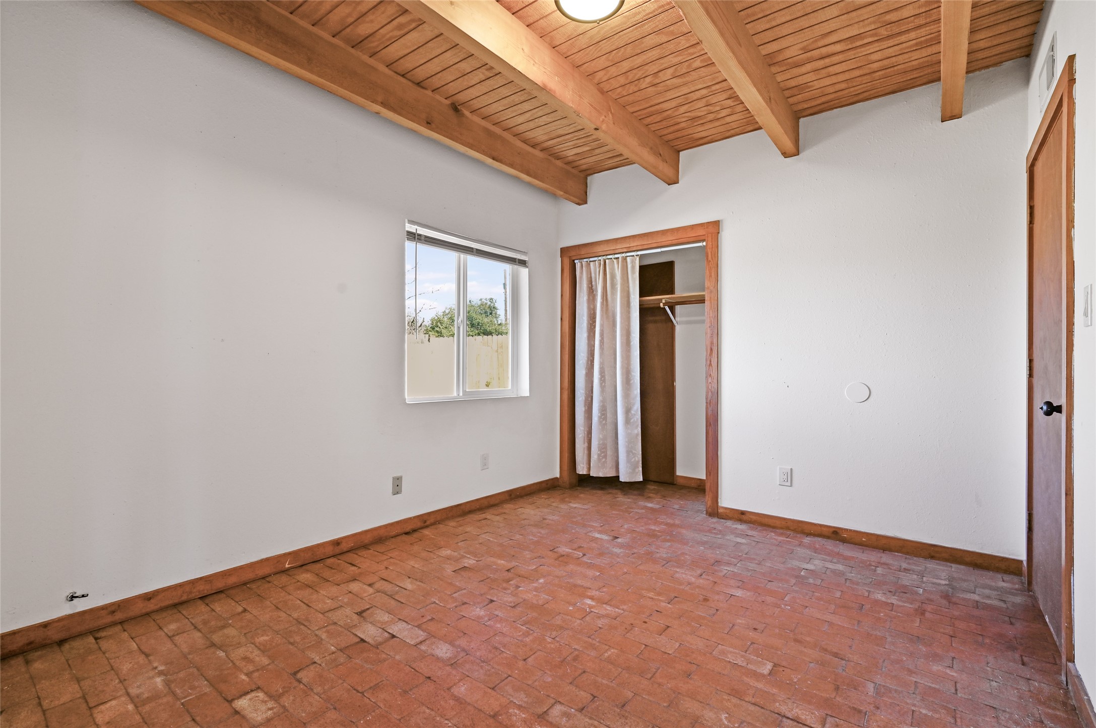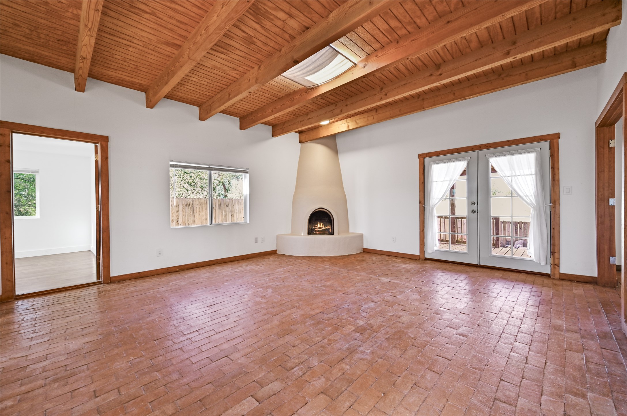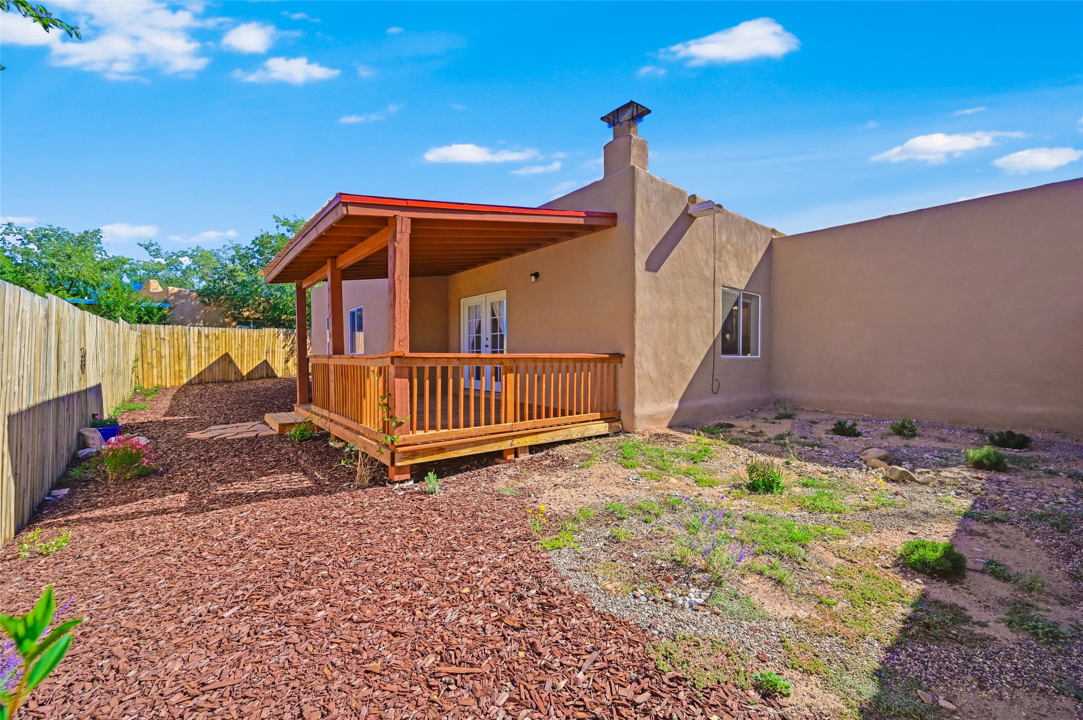 One of Santa Fe's hidden gems, the 12-unit Charles Siringo Ranch Condominiums live like single family homes in the center of town on land once part of the original Charles Siringo Ranch. This home offers 1,511sqft of heated living space with a 3BD-2BA + bonus room configuration. The bonus room offers wonderful versatility and would make for a great office, fourth bedroom, studio, or den! Santa Fe-style finishes include a wood burning kiva fireplace, brick floors throughout, and high beam ceilings. The kitchen has been recently updated with granite countertops, stainless steel appliances and beautiful solid wood cabinetry. Thoughtful updates extend into both bathrooms with updated vanities, lighting, and other fixtures. Outside, the backyard is a low-maintenance, peaceful retreat with a large shaded wood deck, storage shed, and is completely enclosed. Conveniently located near grocery stores, restaurants, parks and other amenities, this gem off- the-beaten-path is not one to skip!