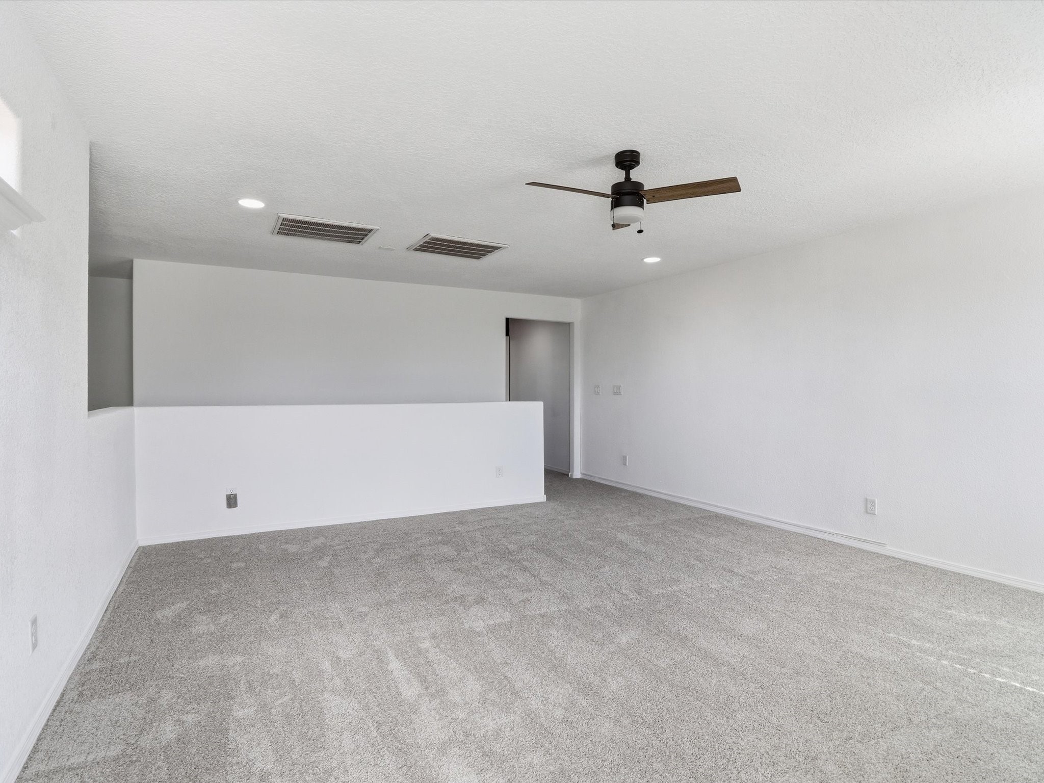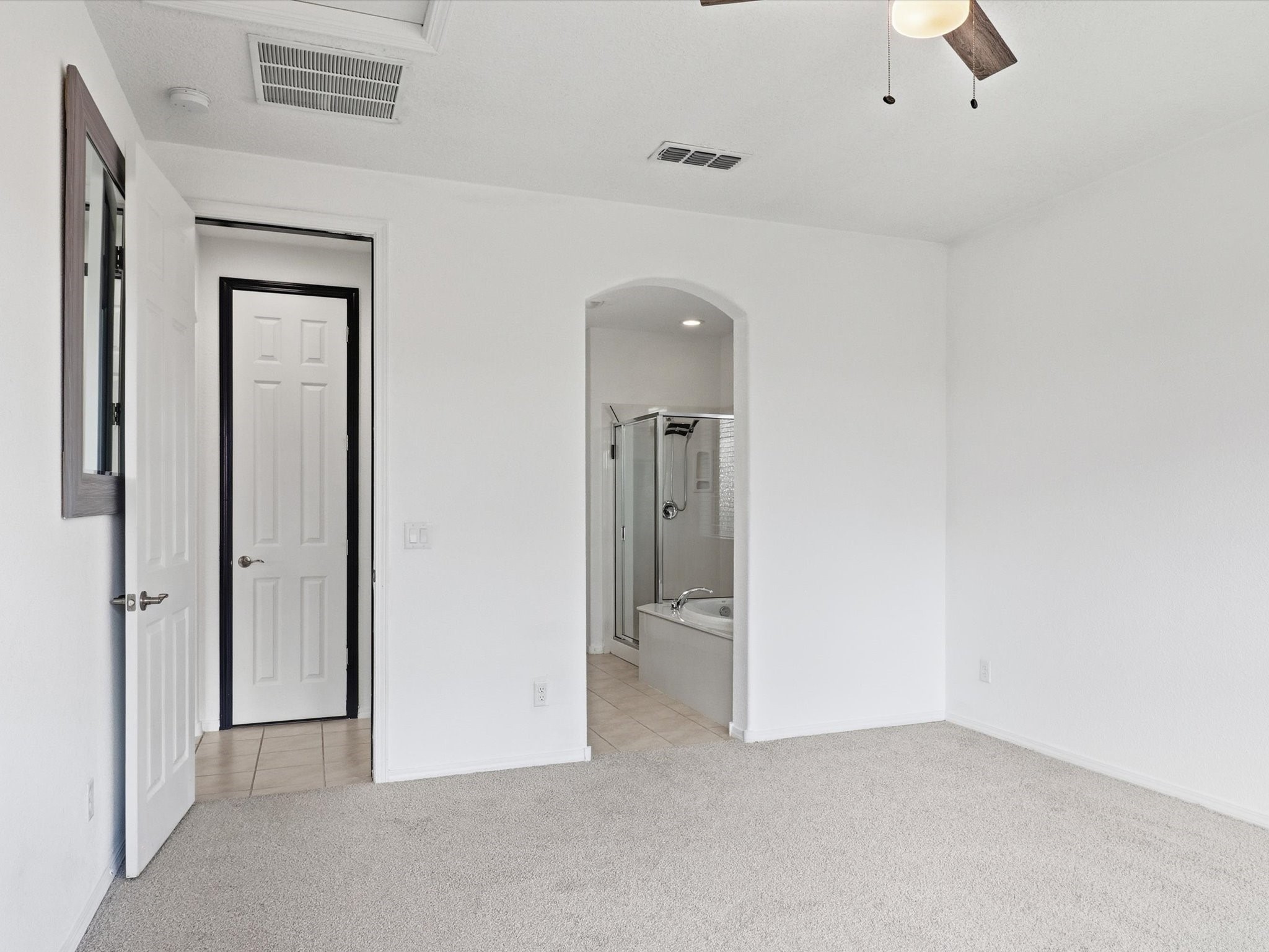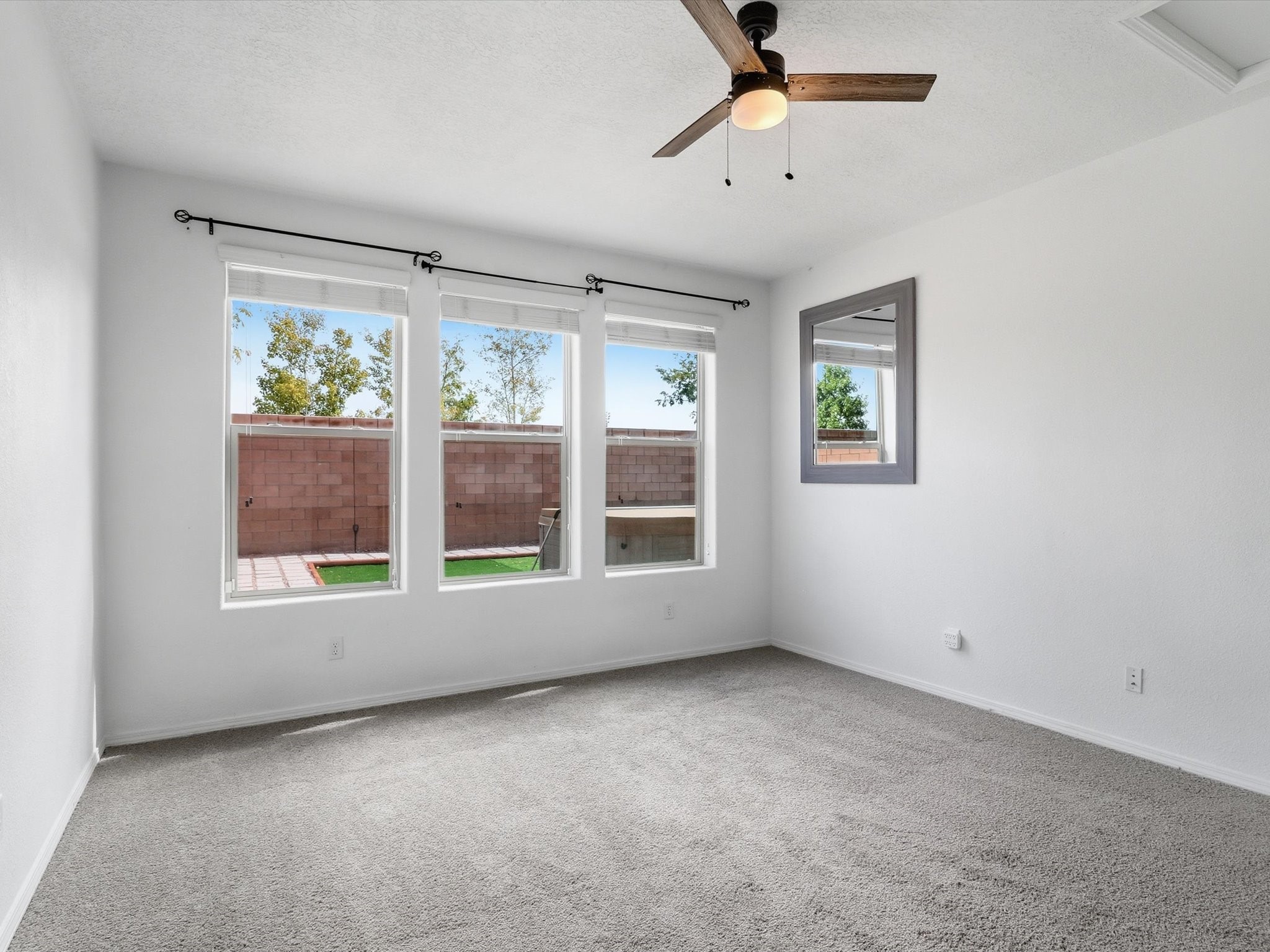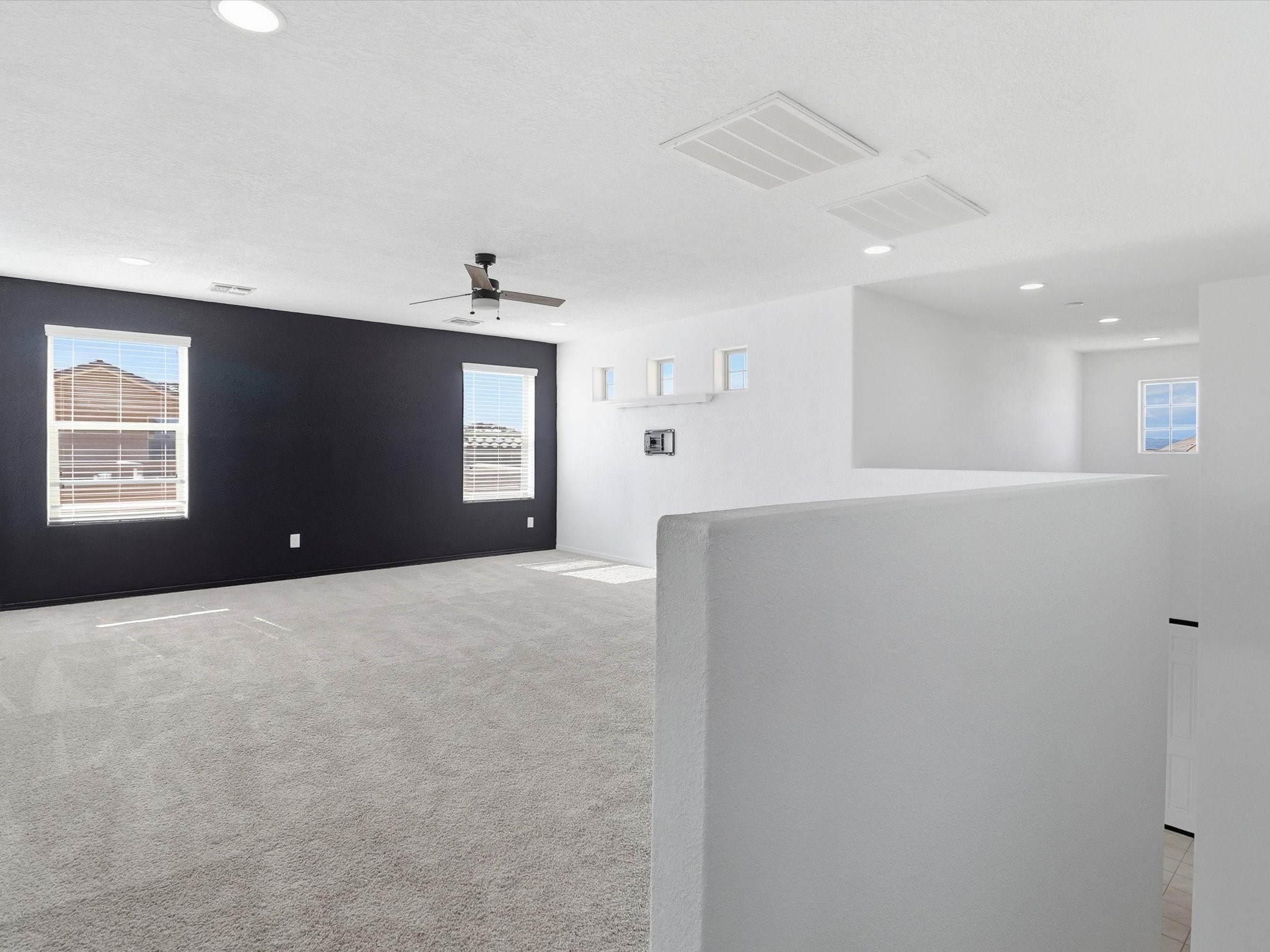 Welcome to your dream home in one of Las Soleras' most desirable neighborhoods -- this well-maintained home offers elegance, functionality, and peace of mind with warranties and new features throughout.This home has a brand-new carpet, ceiling fans in every room, and upgraded 8-foot doors, adding a touch of sophistication and spaciousness throughout. The Kitchen is with granite countertops, new backsplash, new faucet, and a brand-new refrigerator, while the bathrooms feature quartz vanities, new faucets, and upgraded shower heads.Every detail has been thoughtfully refreshed -- from the new washer and dryer to the WiFi-enabled garage door opener and new weatherproof rubber entryway perfect for winter durability. Enjoy peace of mind with the remainder of the Pulte structural warranty, AC/heater and water heater warranties, and a 6-month refurbishment warranty on the hot tub.The zeroscaped backyard is designed for low-maintenance living, complete with a 50-amp outdoor service, ideal for gatherings or future enhancements. The extended garage provides space for a workshop, and CenturyLink wiring ensures high-speed connectivity. Pet lovers will appreciate the dog door conveniently leading into the garage, while guests will love the ample parking space directly across the home and the upstairs loft with a full bath -- a perfect retreat for visitors or entertainment.Located on a perimeter lot close to mailboxes and neighborhood conveniences, this home embodies modern Santa Fe living with unmatched practicality and style.Move-in ready, fully upgraded, and built to last -- this Las Soleras gem is a rare find you don't want to miss.