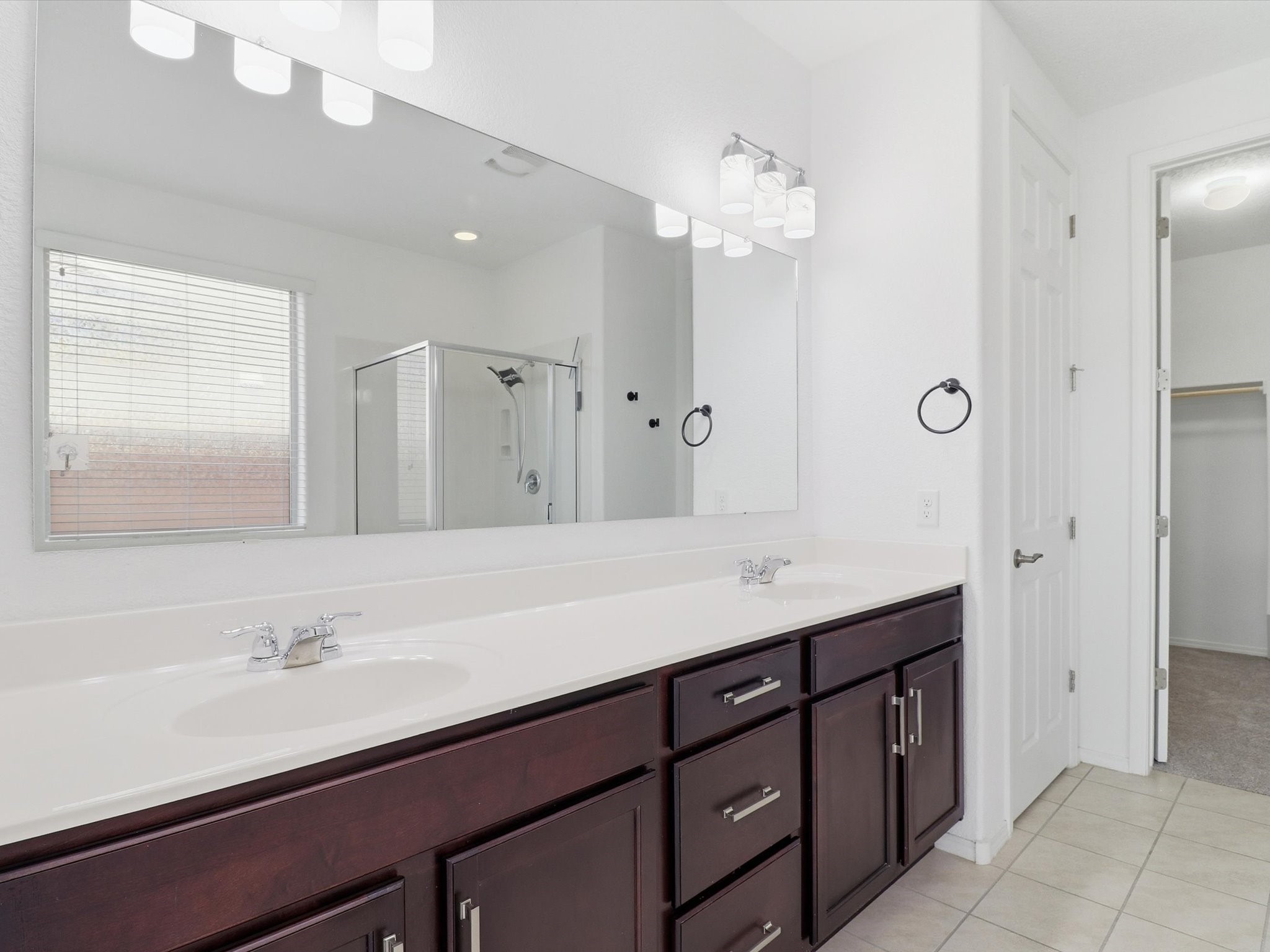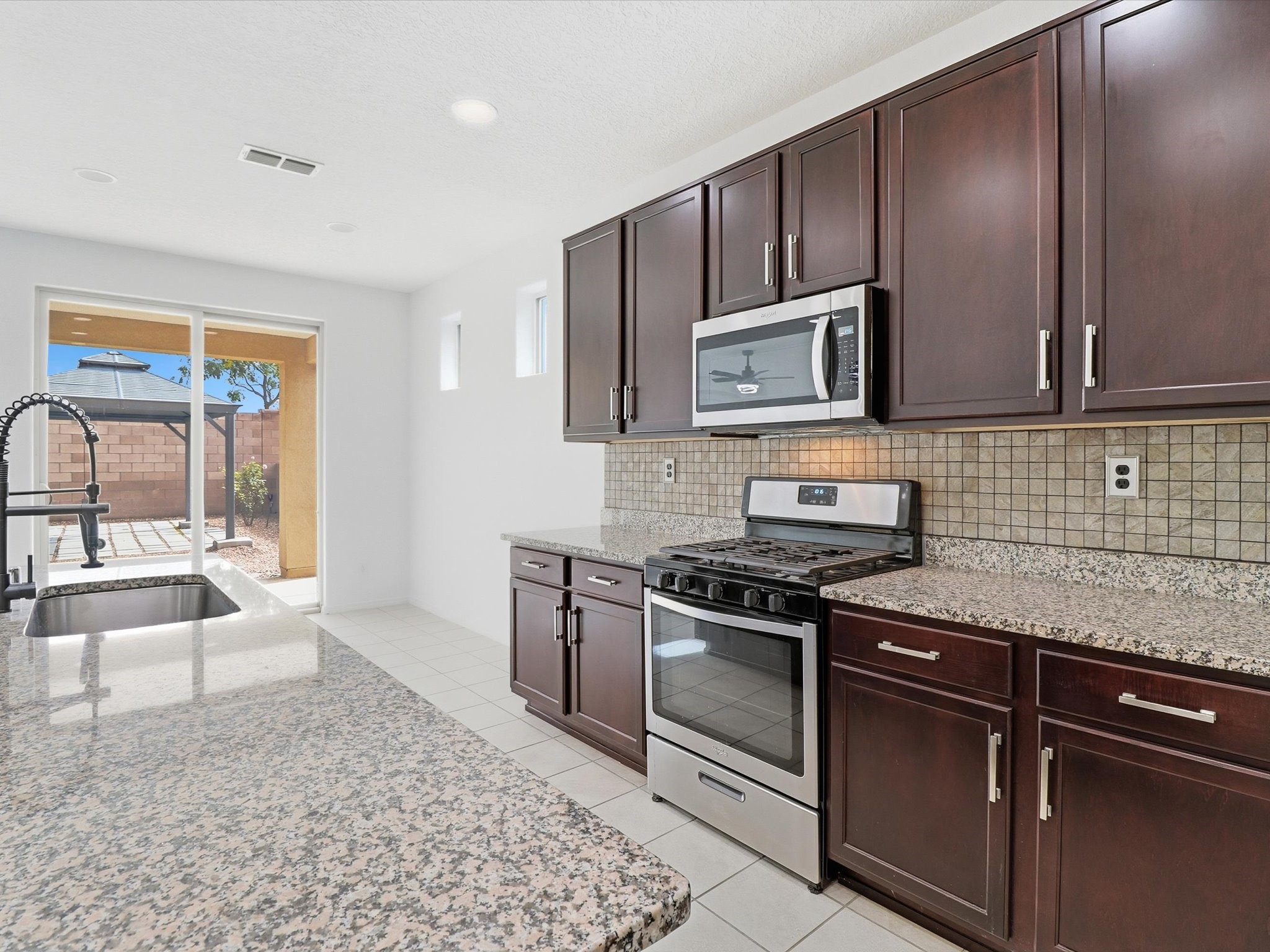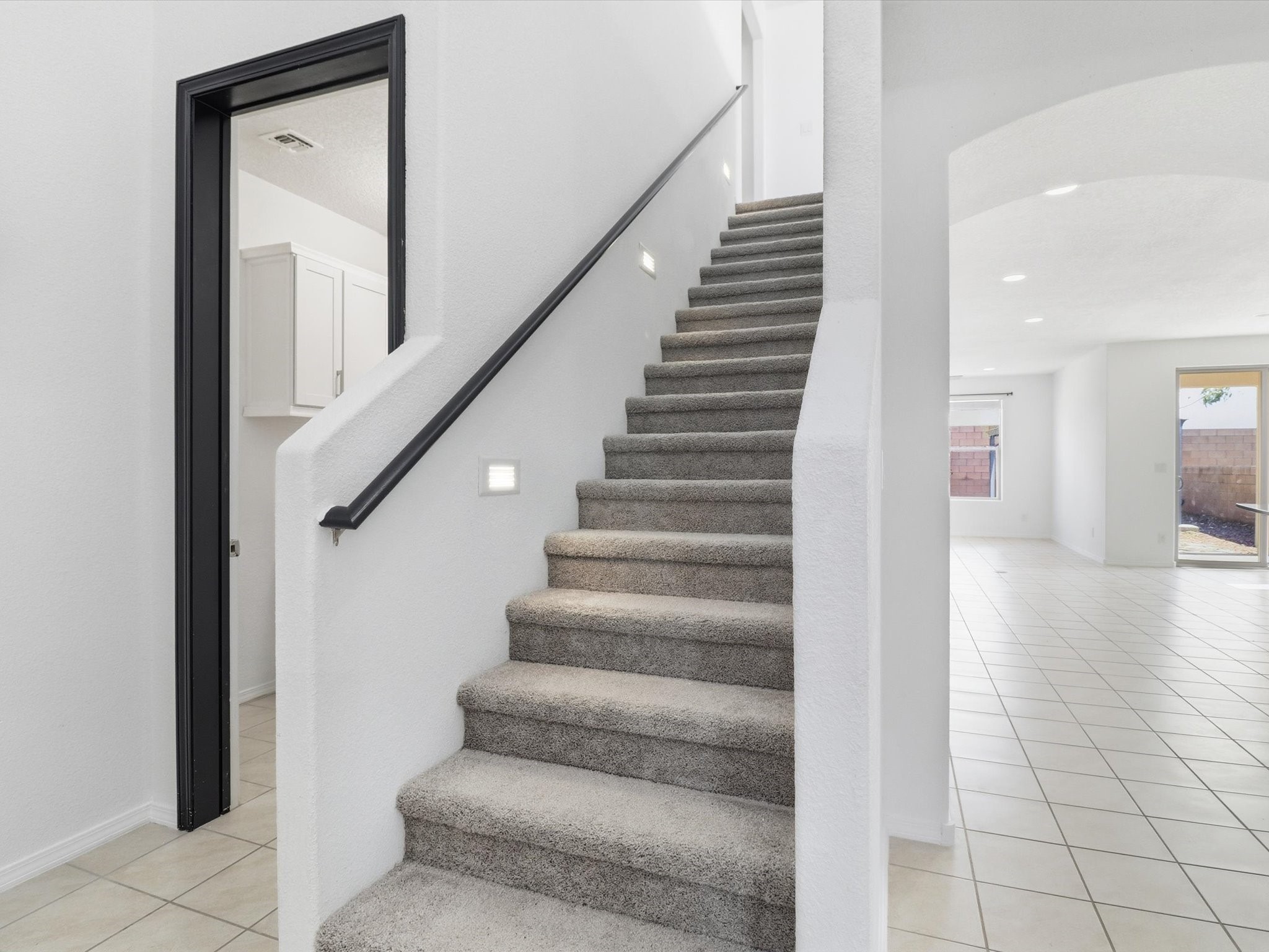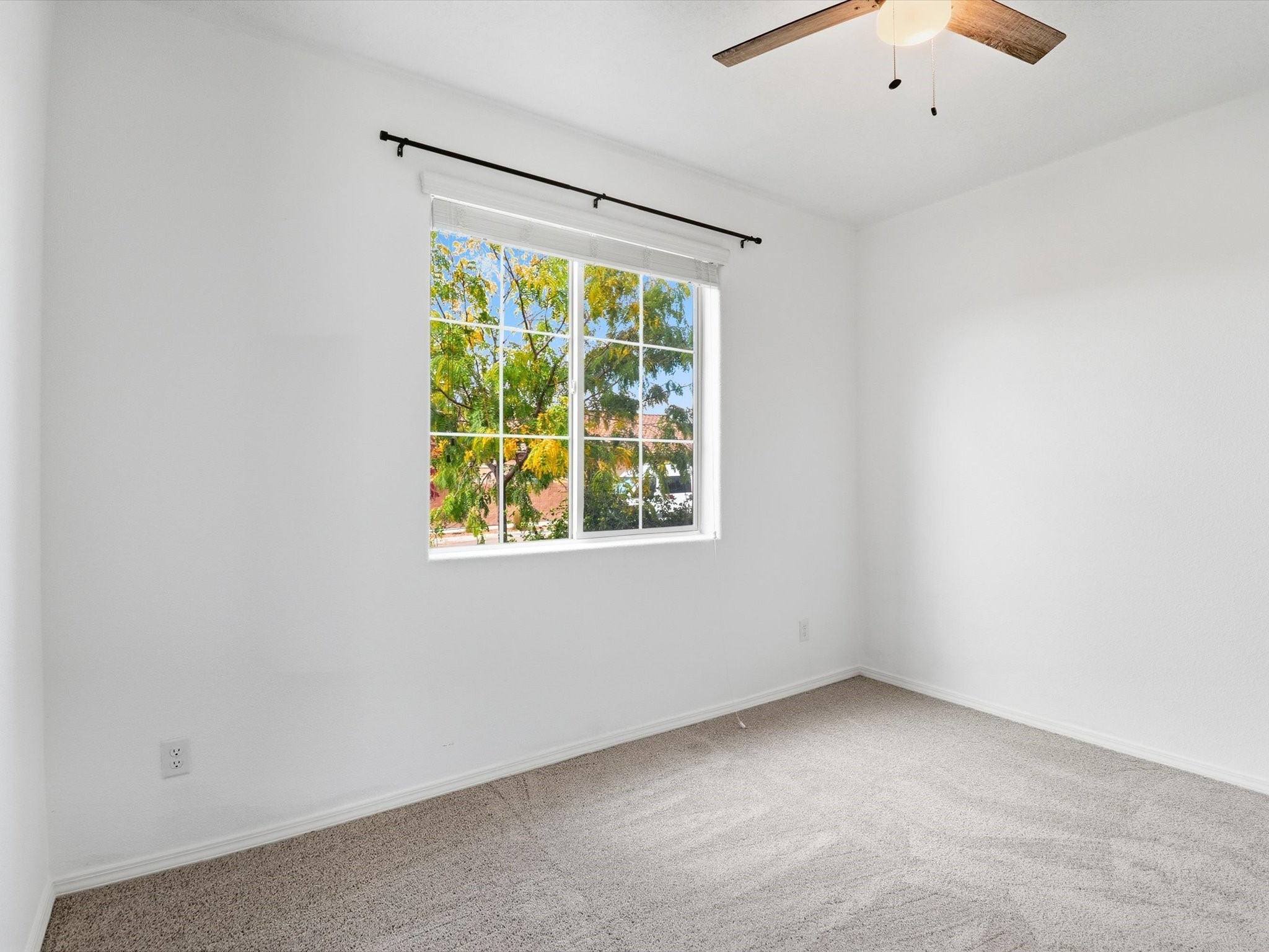 Welcome to your dream home in one of Las Soleras' most desirable neighborhoods -- this well-maintained home offers elegance, functionality, and peace of mind with warranties and new features throughout.This home has a brand-new carpet, ceiling fans in every room, and upgraded 8-foot doors, adding a touch of sophistication and spaciousness throughout. The Kitchen is with granite countertops, new backsplash, new faucet, and a brand-new refrigerator, while the bathrooms feature quartz vanities, new faucets, and upgraded shower heads.Every detail has been thoughtfully refreshed -- from the new washer and dryer to the WiFi-enabled garage door opener and new weatherproof rubber entryway perfect for winter durability. Enjoy peace of mind with the remainder of the Pulte structural warranty, AC/heater and water heater warranties, and a 6-month refurbishment warranty on the hot tub.The zeroscaped backyard is designed for low-maintenance living, complete with a 50-amp outdoor service, ideal for gatherings or future enhancements. The extended garage provides space for a workshop, and CenturyLink wiring ensures high-speed connectivity. Pet lovers will appreciate the dog door conveniently leading into the garage, while guests will love the ample parking space directly across the home and the upstairs loft with a full bath -- a perfect retreat for visitors or entertainment.Located on a perimeter lot close to mailboxes and neighborhood conveniences, this home embodies modern Santa Fe living with unmatched practicality and style.Move-in ready, fully upgraded, and built to last -- this Las Soleras gem is a rare find you don't want to miss.