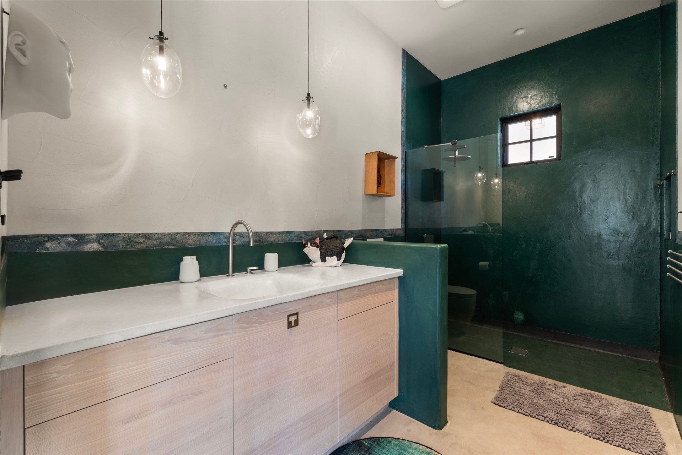 Desirable East Corrales 4-bedroom 3-bath residence on 2 acres with breathtaking Sandia Mountain views. Built in 2023, this home offers a blend of contemporary design and thoughtfully curated finishes with high ceilings, hickory wood and polished concrete floors perfect for artists and art collectors alike. Single level; no interior steps. As you enter, you are greeted by a spacious foyer that flows into an expansive living area with a fireplace and slider doors that bring the outdoors inside and create an expanded space for hosting gatherings or enjoying peaceful evenings under the stars. The gourmet kitchen is appointed with an oversized island, high-end appliances and a generous butler pantry, with wine fridge. Additional practical features include a laundry room with dog wash area, and separate mudroom. Retreat to the private primary suite, with stunning mountain views, a whimsical en-suite bath and expansive walk-in closet. Across the central courtyard, is a second primary bedroom with en-suite and walk-in closet. The third bedroom or bunkhouse offers a charming space for family and friends. The fourth bedroom provides versatile light-filled spot for a studio or office. Drive-through 3-car garage and picturesque backyard watermill, which could be adapted for power generation. Surrounded by mature Colorado ponderosa pines, this tranquil setting is a blank canvas, ready for your imagination to take flight--build your dream garden, luxurious outdoor living space, or bring your horses, as they are welcome here! Located just minutes from historic Corrales Main Street and with easy access to the Corrales Bosque Preserve's miles of trails.