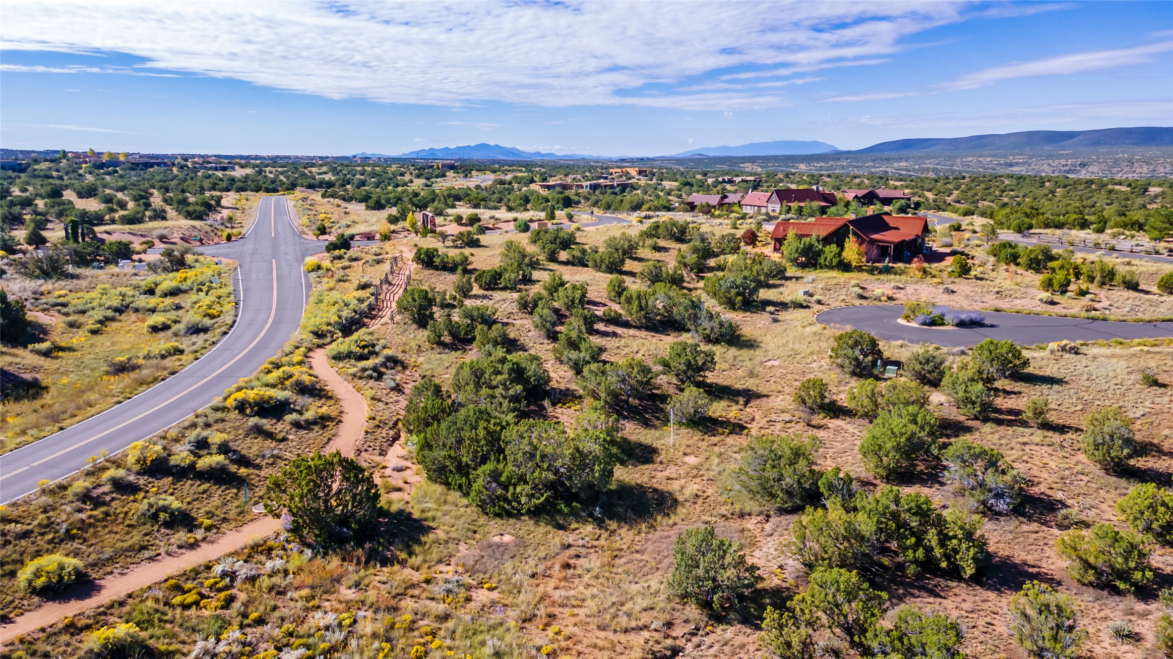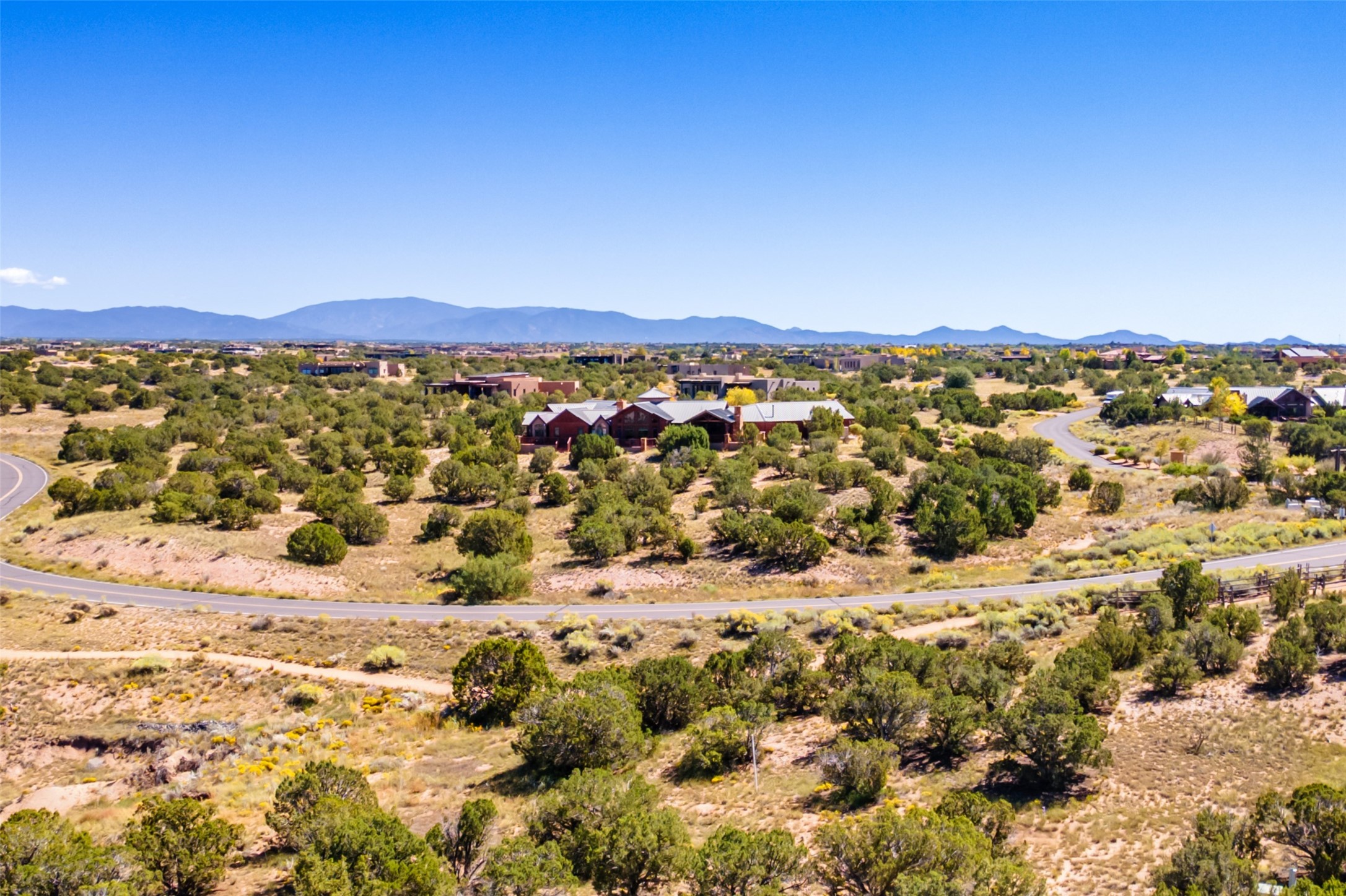 In the tree-studded rolling hills northwest of town are Las Campanas and a host of other developments and neighborhoods of larger, private lots and newer homes, most with city services and utilities. The land here sits between the city and the arroyos that carry rainwater to the Rio Grande, just a few miles west, creating a landscape almost like ocean waves rolling into shore. The community of