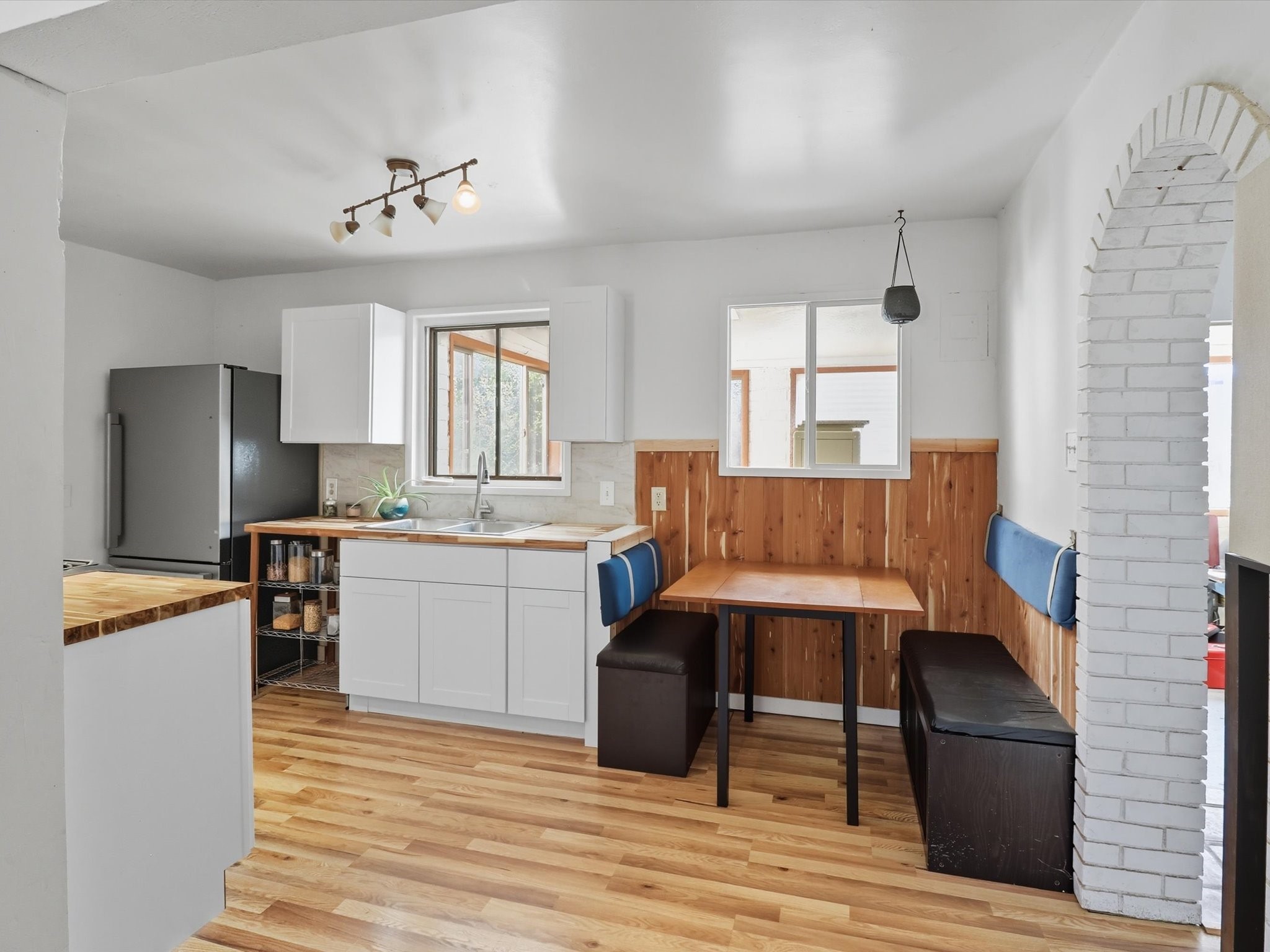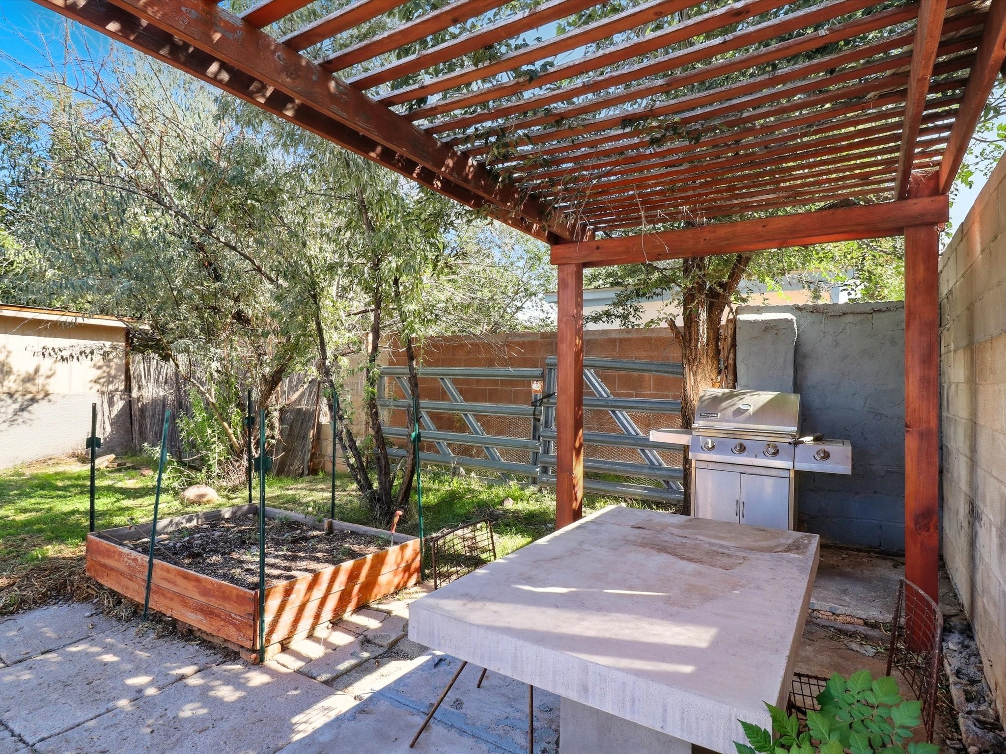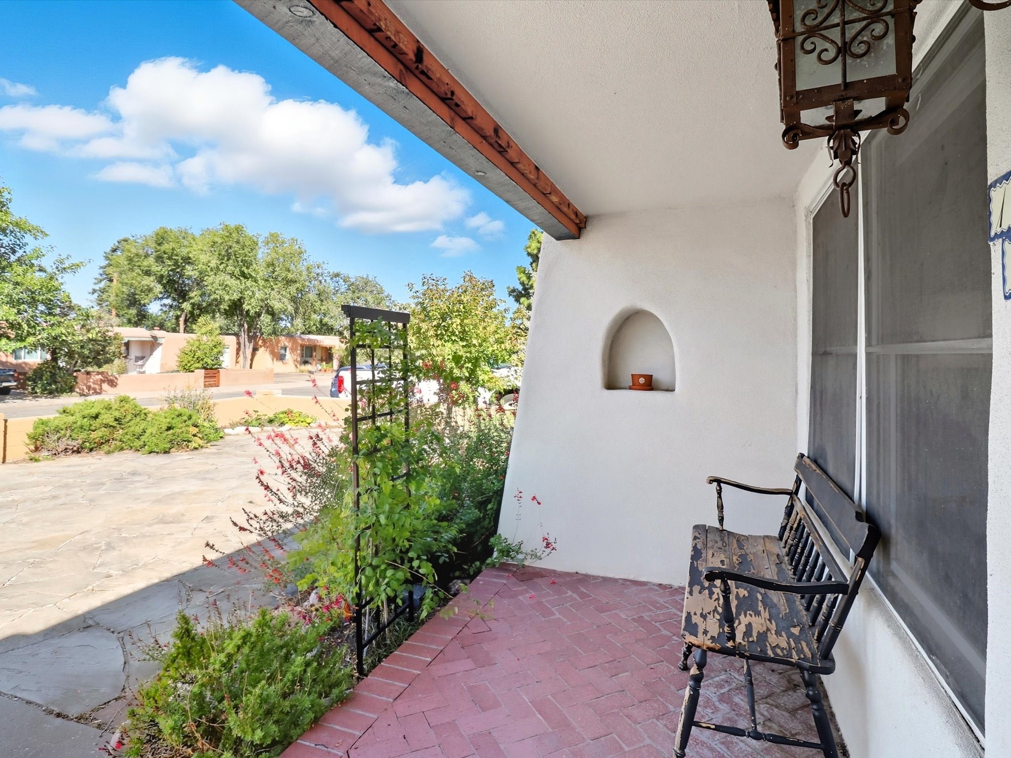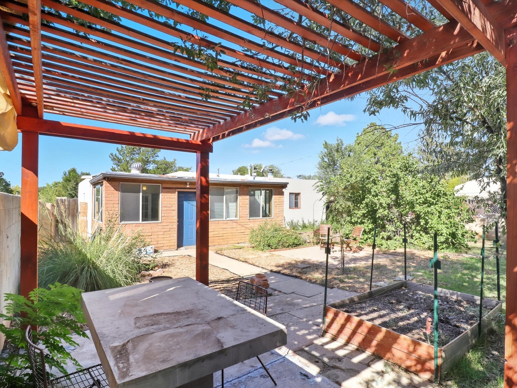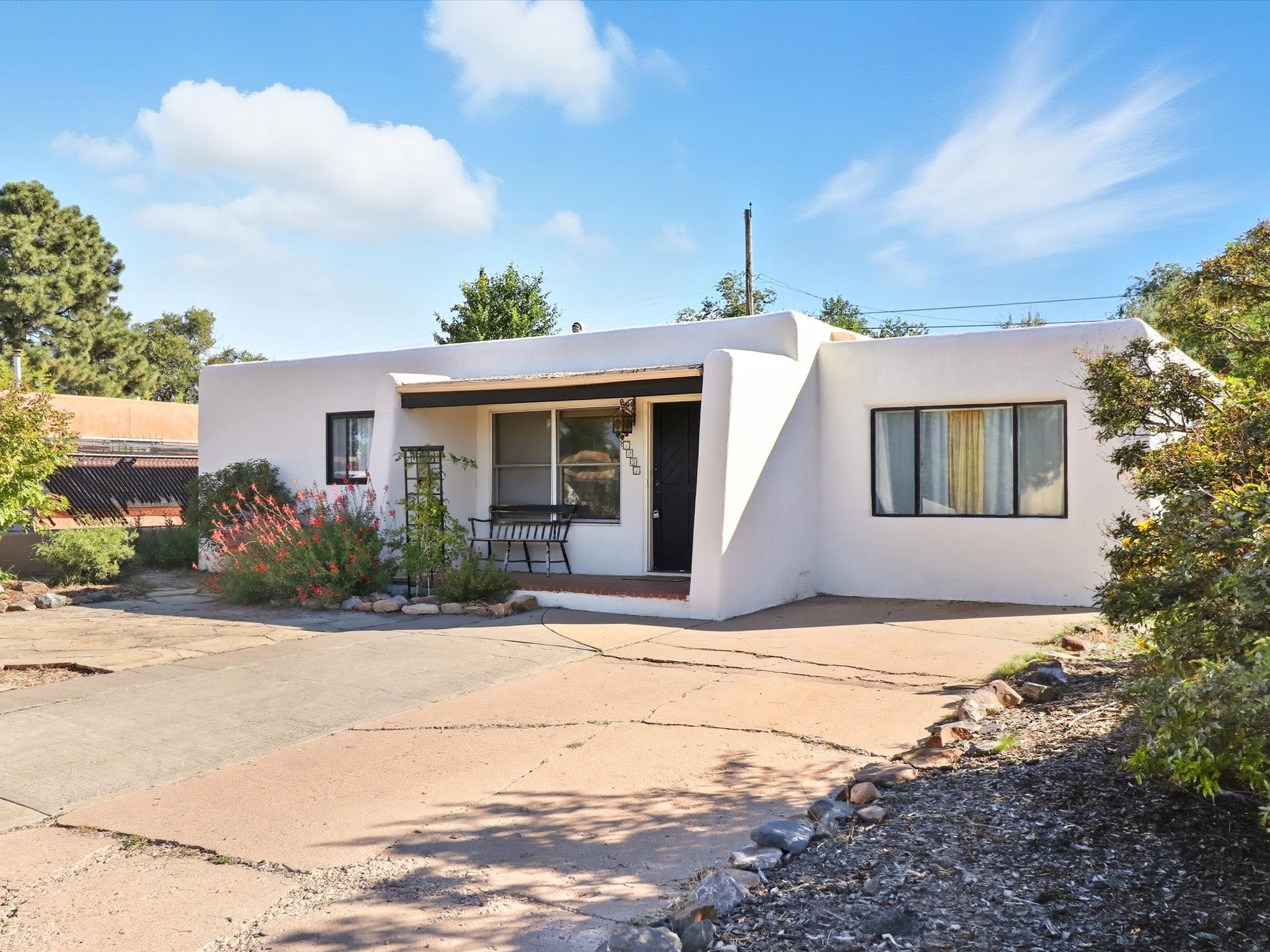 Located in the desirable Casa Alegre neighborhood, this cozy single-level 2-bedroom, 1-bathroom home seamlessly blends classic Santa Fe style with modern updates, including a recent electrical upgrade and timeless wood floors throughout. An inviting and spacious sunroom offers a light-filled retreat, while the converted one-car garage provides flexible bonus space, perfect for a home office, studio, or extra storage. Step outside to a private backyard featuring a beautiful gazebo, ideal for outdoor entertaining and relaxation, complemented by a low-maintenance flagstone front yard that adds to its undeniable curb appeal.