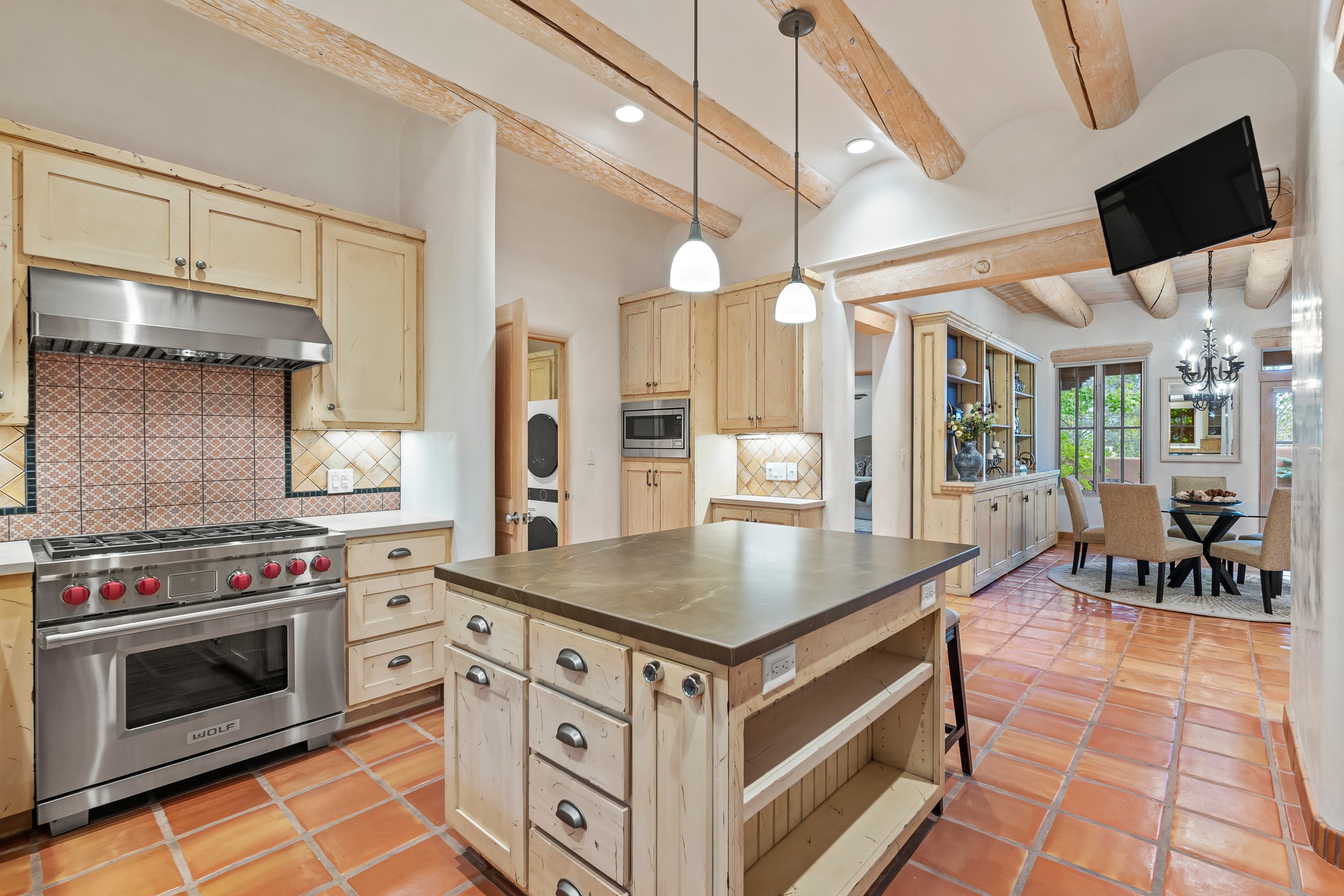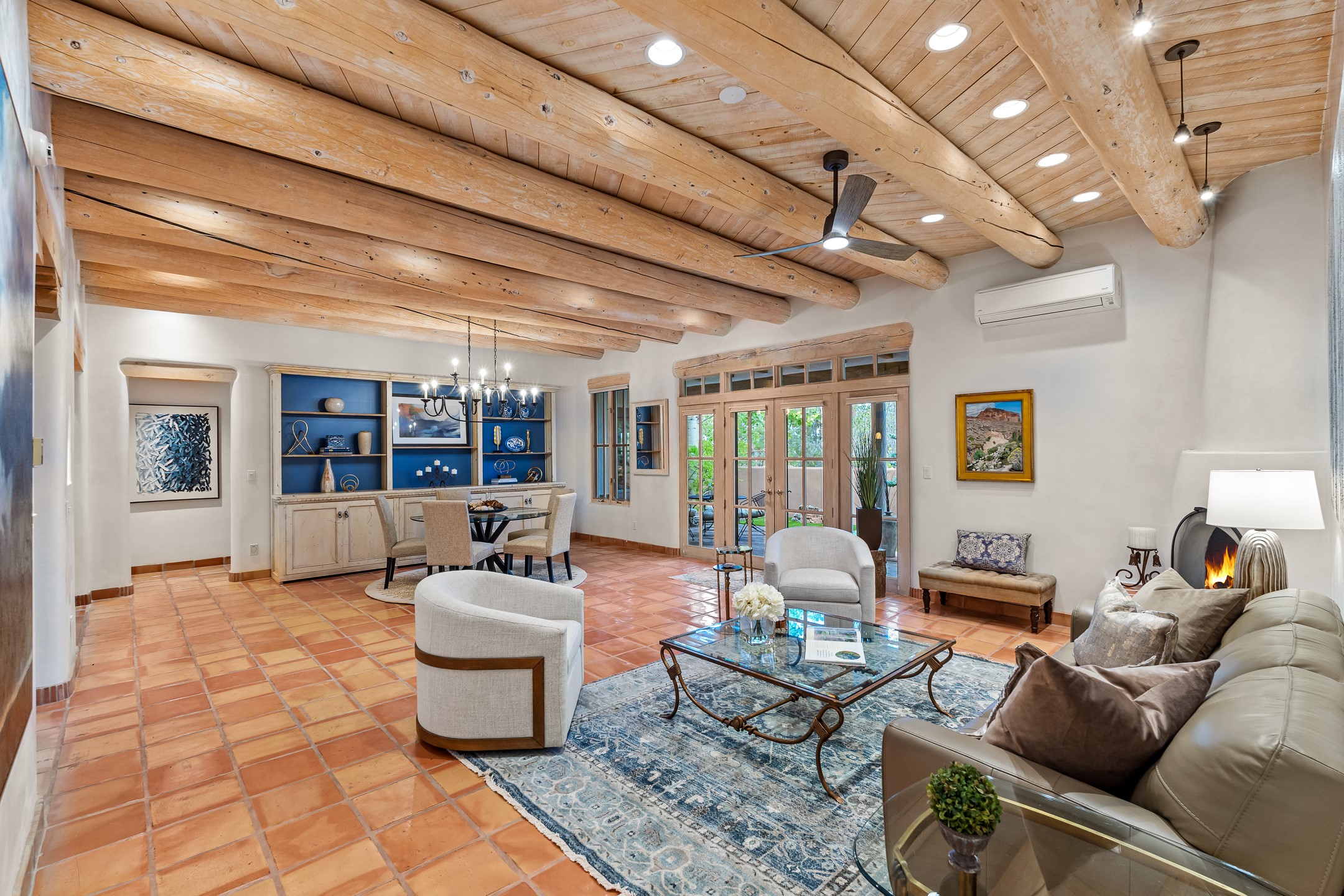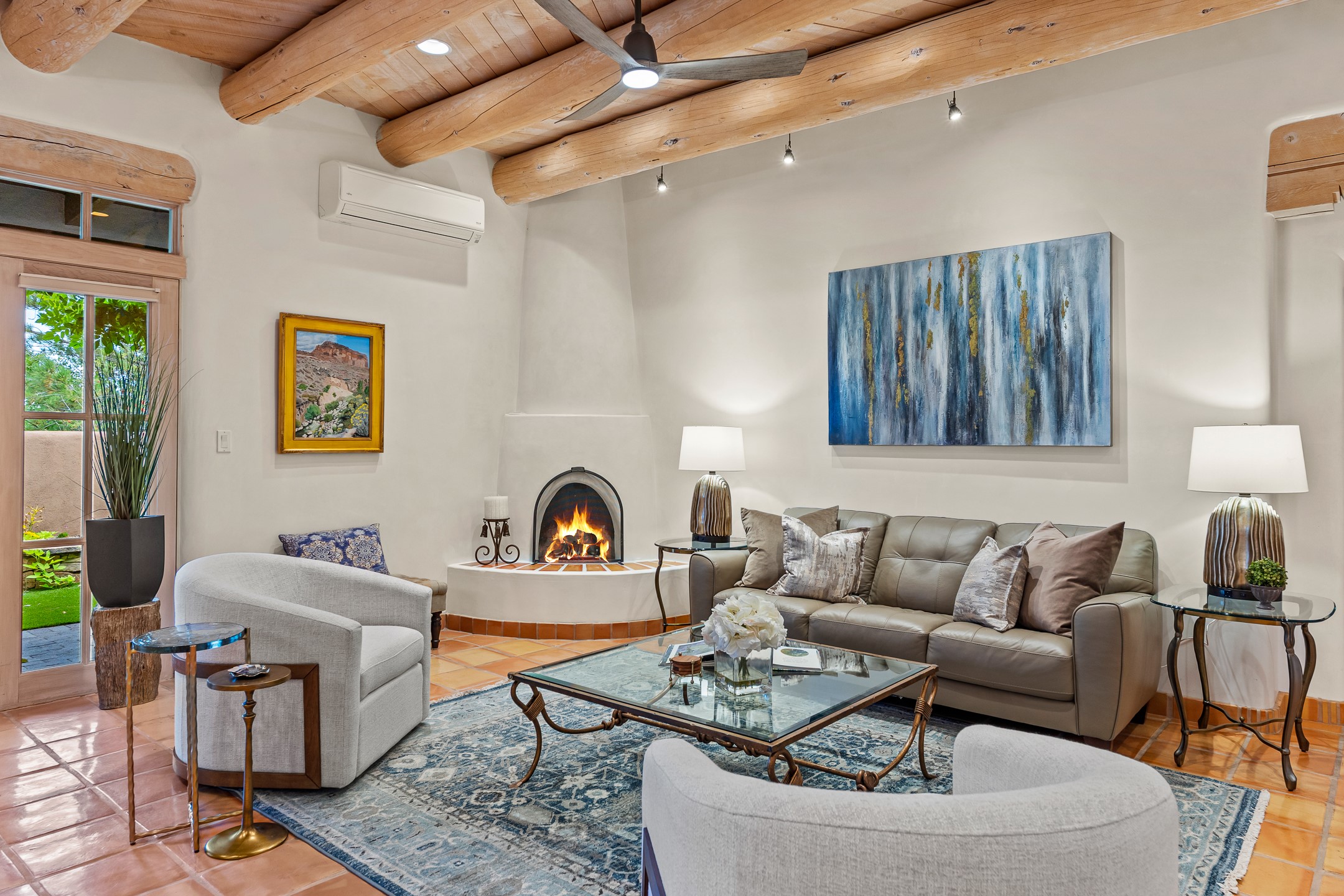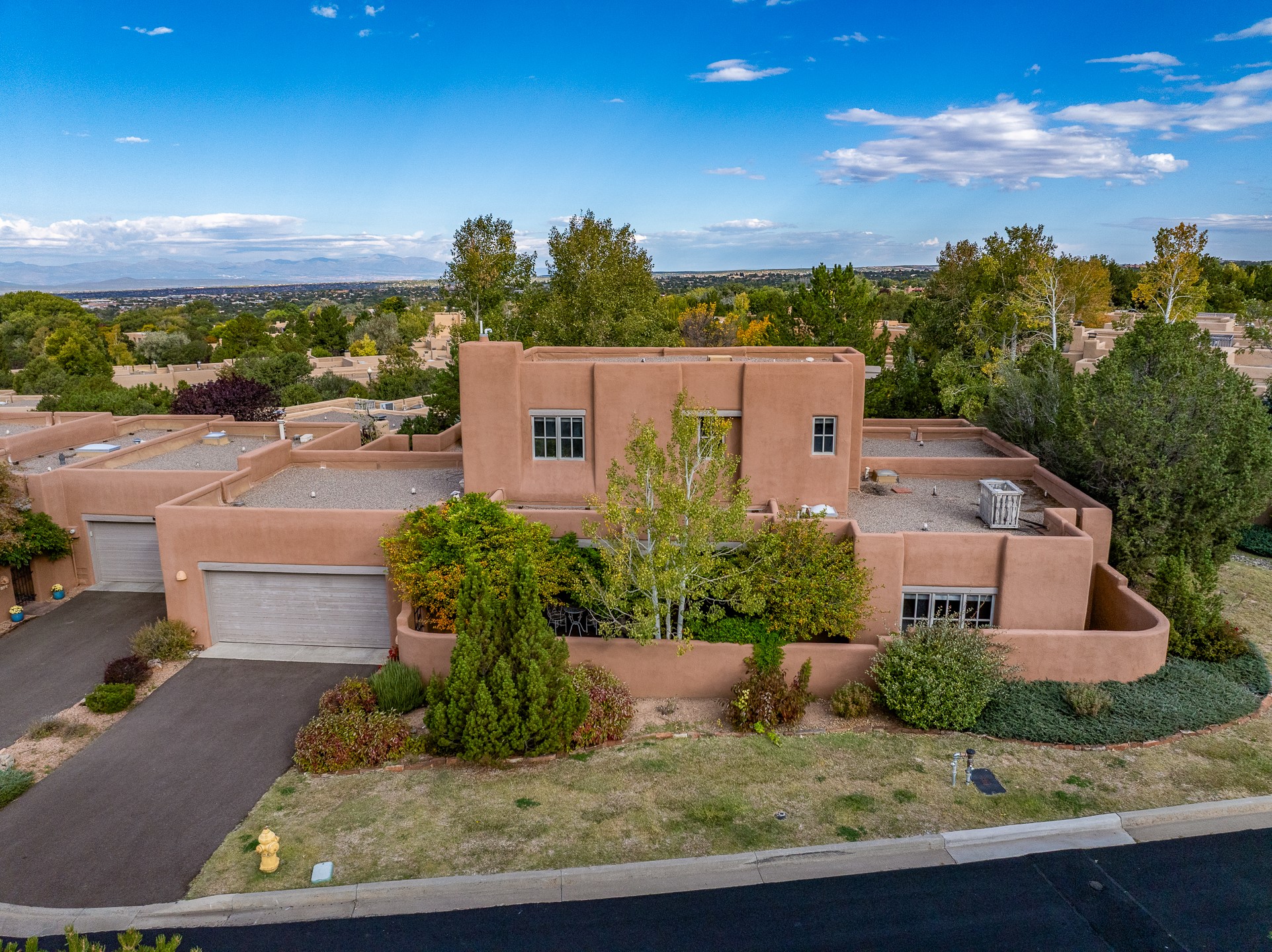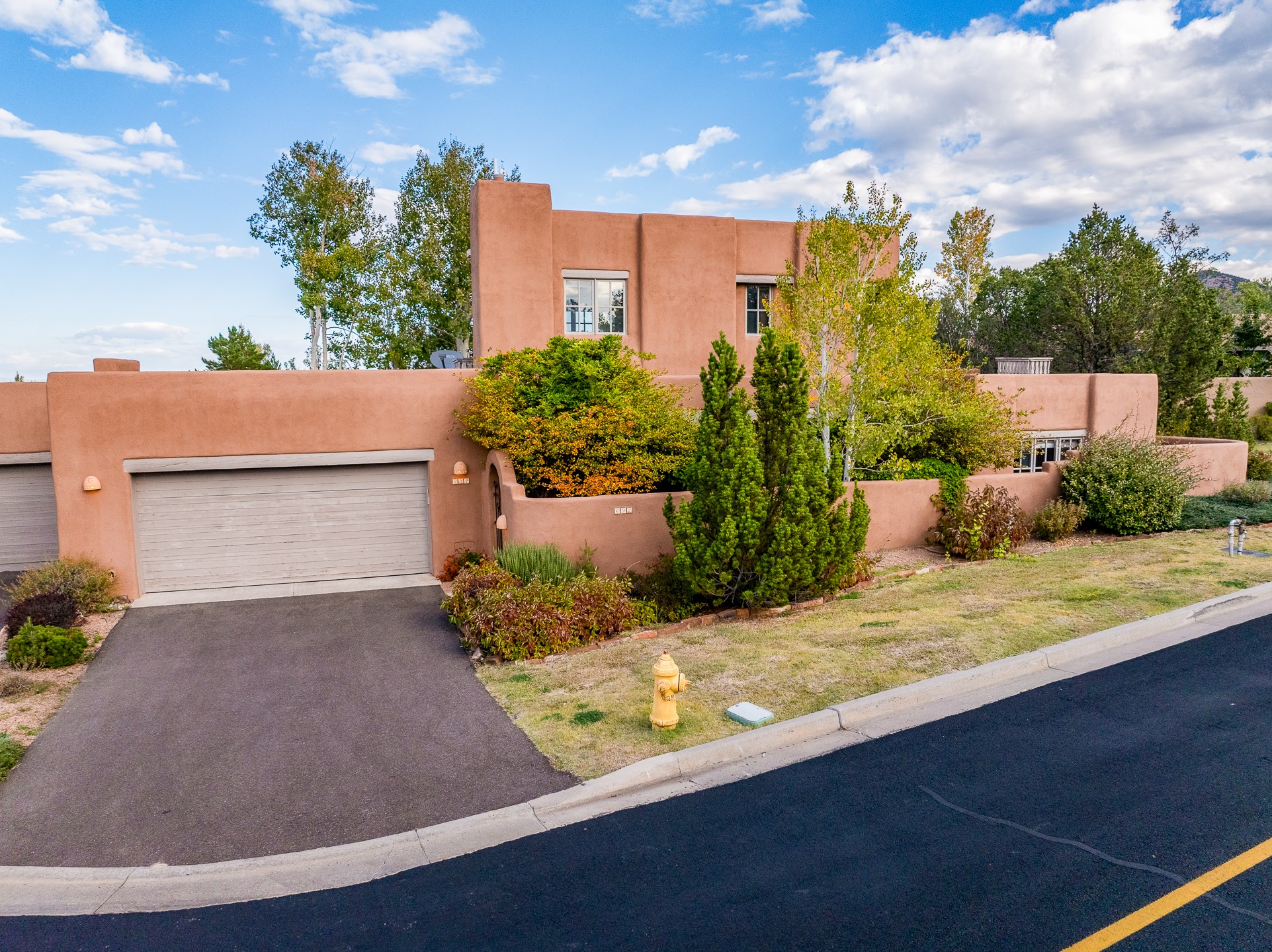 This beautifully updated Pion floor plan condo located in Pion Ridge at Quail Run offers exceptional comfort, design, and access to resort-style amenities. The home features two full primary suites on the main level, plus a third bedroom or office, with a fourth bedroom upstairs--perfect for guests or a second workspace. Nearly all daily living can be enjoyed on the main floor. The renovated kitchen showcases custom cabinetry, a new center island, Neolith countertops, and premium Sub-Zero and Wolf appliances. Bathrooms have been tastefully updated, including a luxurious primary bath with a rain shower and hand-held sprays. Both primary closets include custom built-ins and generous storage. Additional highlights include diamond plaster walls, enhanced art lighting, ductless A/C, and refreshed landscaping. Residents enjoy exclusive access to Quail Run's resort-style amenities, including a clubhouse with dining, fitness center, golf course, tennis courts, swimming pool, and 24-hour security. The HOA covers exterior maintenance, roof, and more, offering peace of mind and effortless living. Situated on a quiet cul-de-sac, this move-in-ready home embodies the best of Santa Fe comfort and style. Imagine the Possibilities and schedule the showing today!