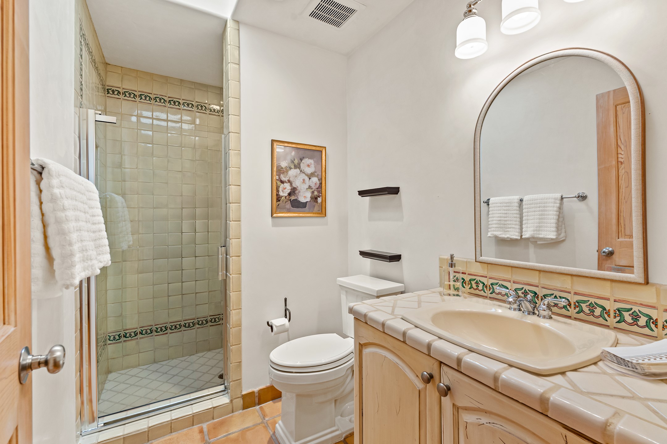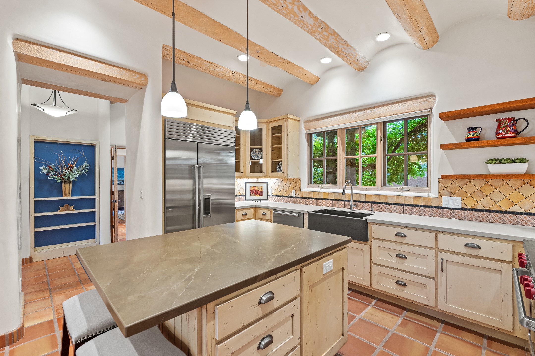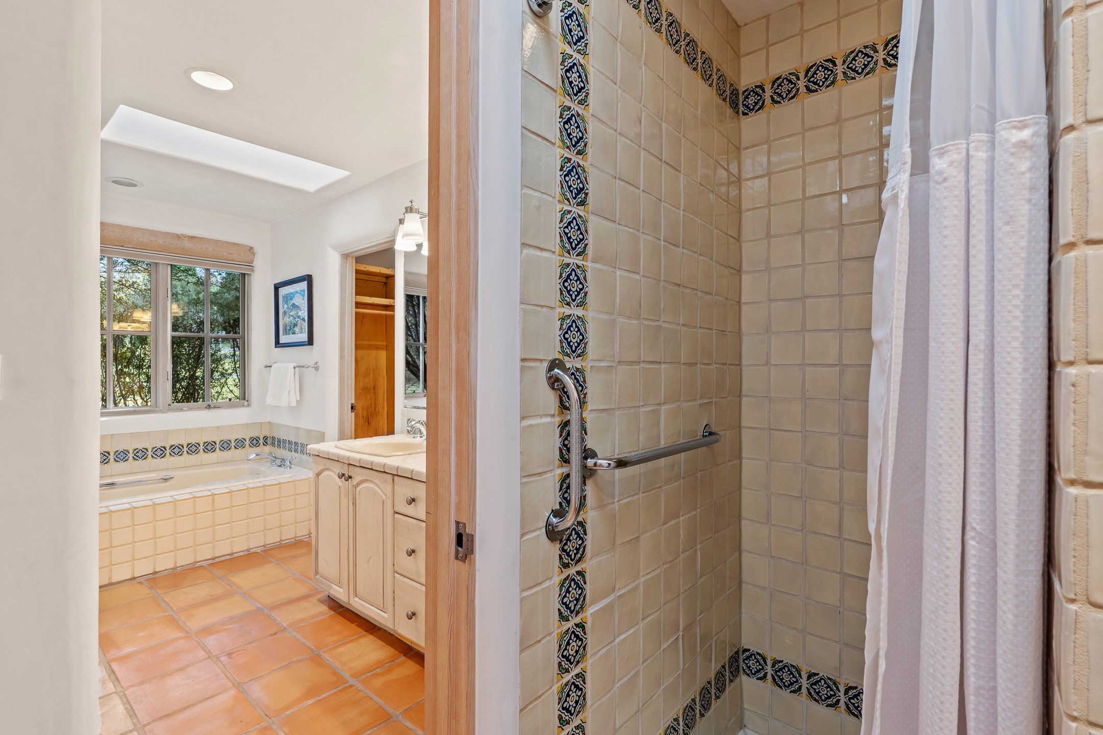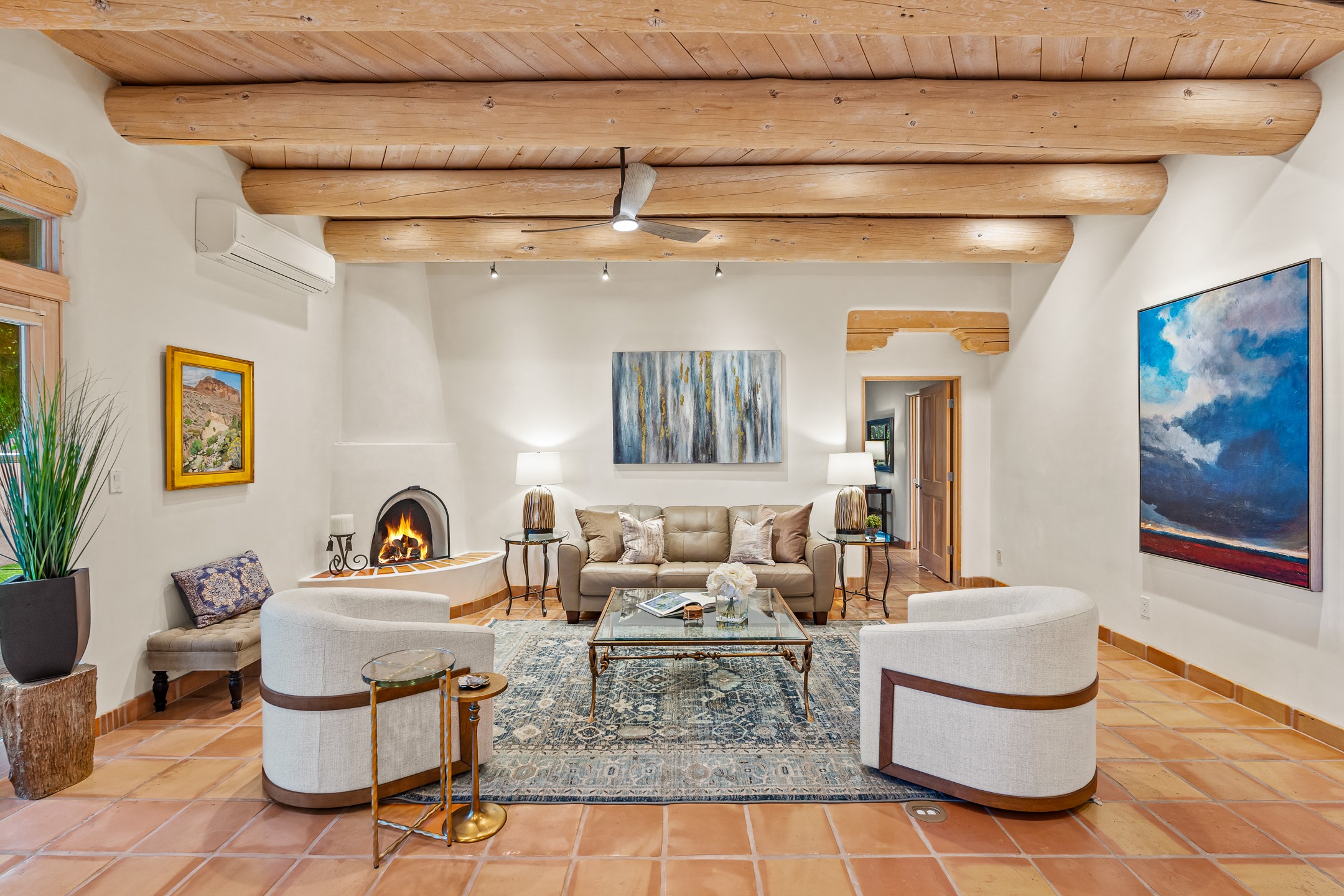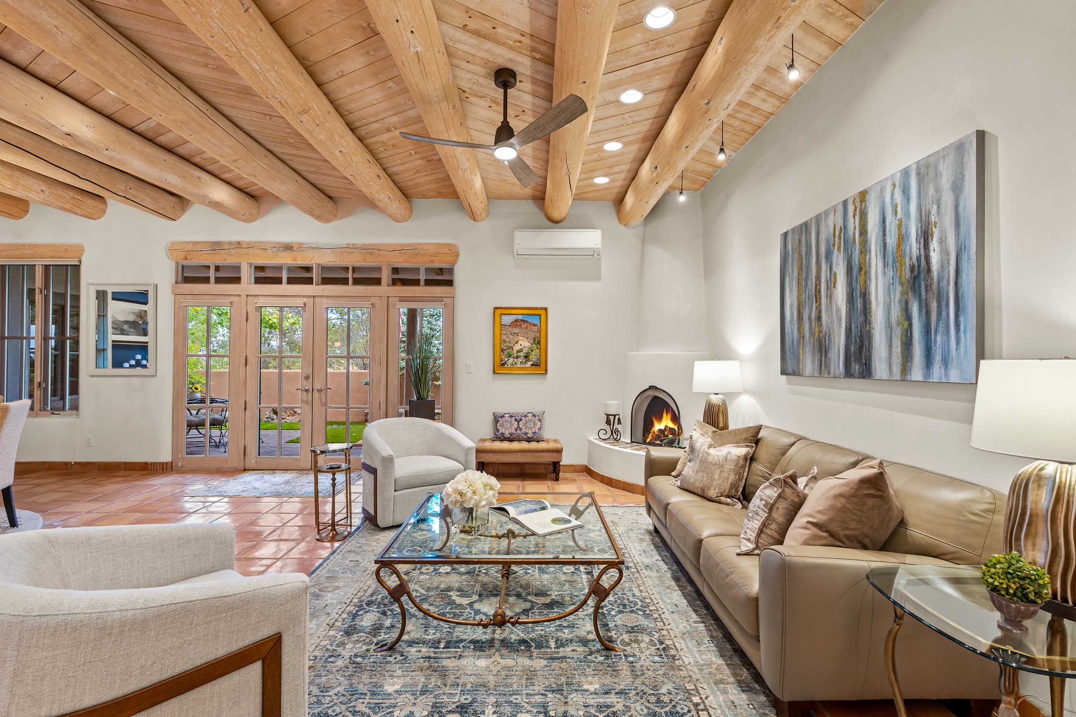 This beautifully updated Pion floor plan condo located in Pion Ridge at Quail Run offers exceptional comfort, design, and access to resort-style amenities. The home features two full primary suites on the main level, plus a third bedroom or office, with a fourth bedroom upstairs--perfect for guests or a second workspace. Nearly all daily living can be enjoyed on the main floor. The renovated kitchen showcases custom cabinetry, a new center island, Neolith countertops, and premium Sub-Zero and Wolf appliances. Bathrooms have been tastefully updated, including a luxurious primary bath with a rain shower and hand-held sprays. Both primary closets include custom built-ins and generous storage. Additional highlights include diamond plaster walls, enhanced art lighting, ductless A/C, and refreshed landscaping. Residents enjoy exclusive access to Quail Run's resort-style amenities, including a clubhouse with dining, fitness center, golf course, tennis courts, swimming pool, and 24-hour security. The HOA covers exterior maintenance, roof, and more, offering peace of mind and effortless living. Situated on a quiet cul-de-sac, this move-in-ready home embodies the best of Santa Fe comfort and style. Imagine the Possibilities and schedule the showing today!