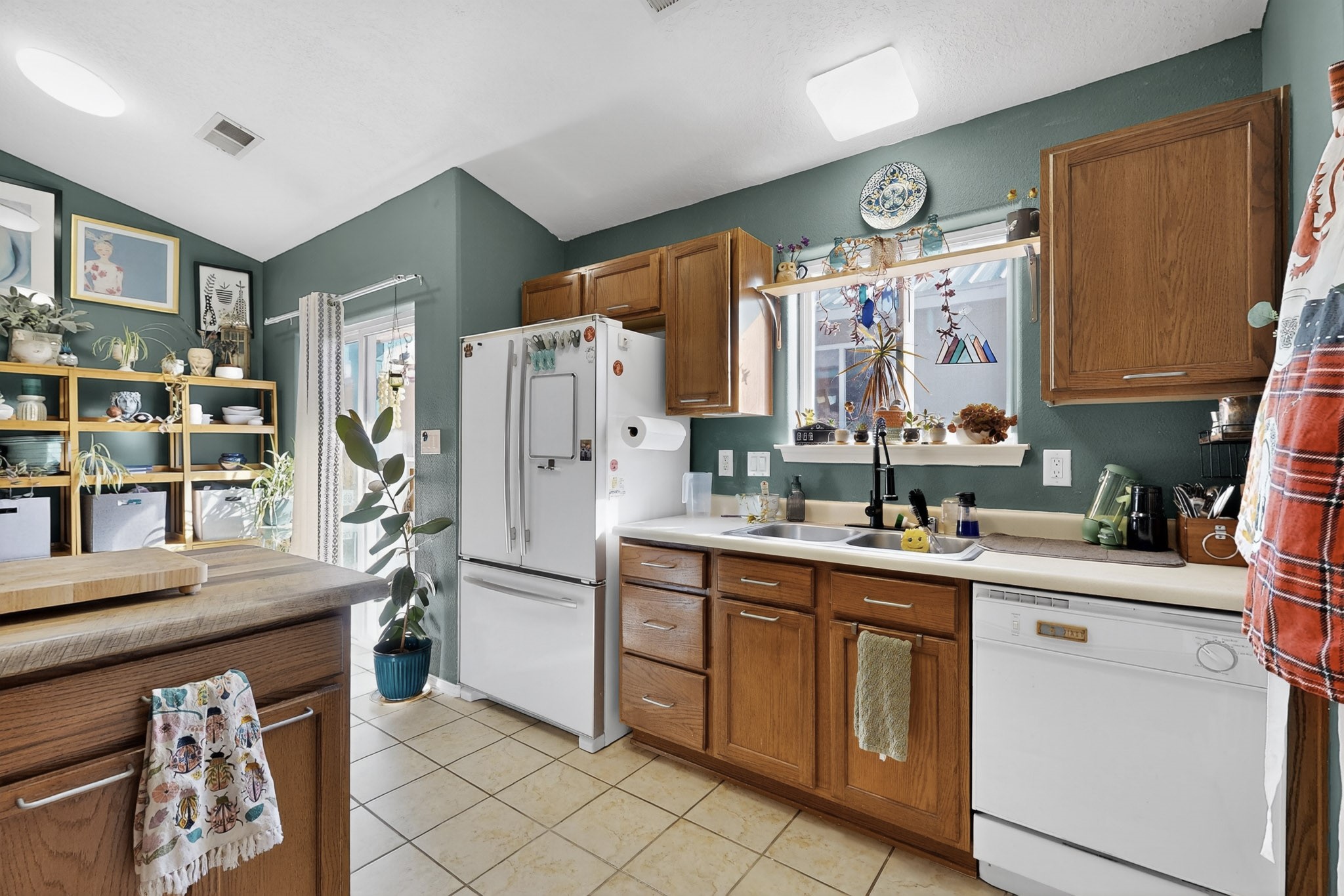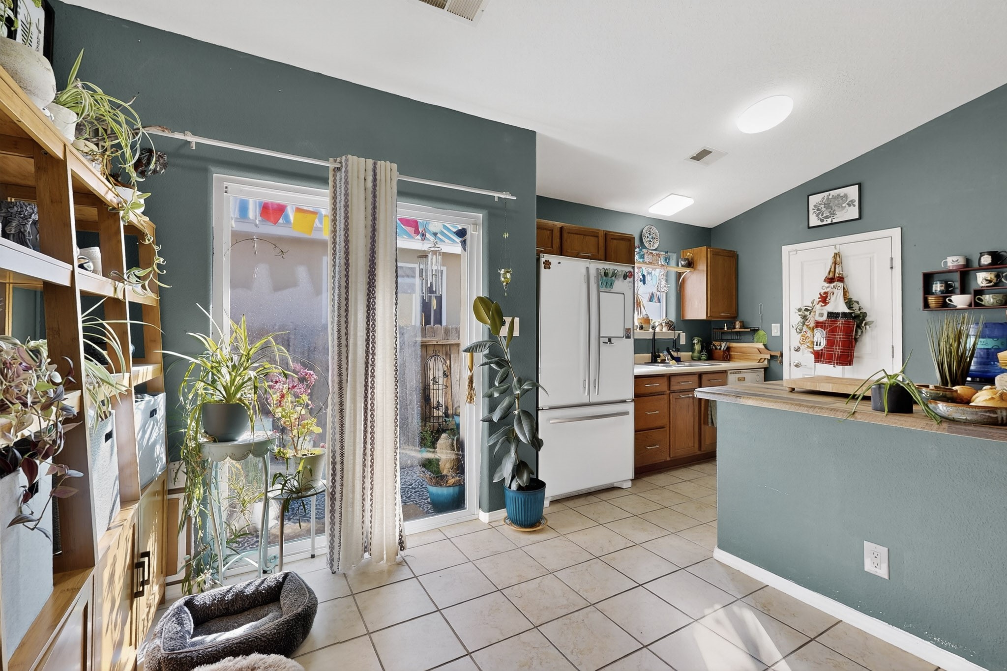 Come see this fantastic 3 bedroom, 2 bathroom gen! It's move-in ready and close to everything!This well-maintained, approximately 1,200 square foot, single-level home offers 3 bedrooms and 2 full bathrooms, and an open floorplan that features vaulted ceilings, natural light, and a beautiful gas kiva fireplace! With an enclosed front porch and patio doors that extend from the bright kitchen to the fully fenced, cozy and private back yard, perfect for outdoor living and entertaining! The private main bedroom is located at the rear of the home and includes a spacious ensuite bathroom with double vanities and generous closet space.Additional features include an attached 2-car garage, central A/C, tile floors, a dedicated laundry room, and a durable pro-panel roof. Conveniently situated near shopping, restaurants, and entertainment, this property also offers quick access to commuting routes in all directions! Come and see all this beautiful home has to offer! Schedule your private tour today!