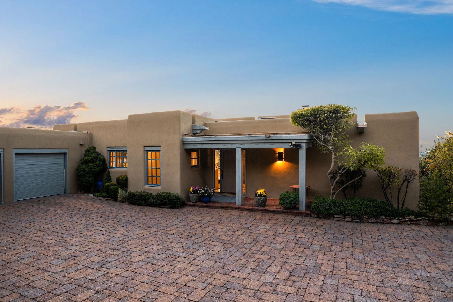 Nestled in a private gated neighborhood just five minutes from Canyon Road, this stunning 3-bedroom, 3-bath residence captures the essence of Santa Fe living with breathtaking views and refined details throughout.Arrive via a paver-lined driveway leading to a spacious two-car garage and be welcomed into a home built for both comfort and sophistication. Inside, French limestone imported from Forte dei Marmi flows seamlessly throughout, complemented by exquisite diamond finished plaster walls that add depth, texture, and timeless elegance. The expansive floor plan opens to over 800 square feet of covered portals, perfect for entertaining or savoring quiet evenings while soaking in the dramatic vistas.The gourmet kitchen is appointed with high-end finishes and appliances, designed to satisfy both everyday living and special occasions. Each bedroom offers privacy and comfort, complemented by spa-like baths.With its combination of architectural elegance, premium materials, and proximity to Santa Fe's vibrant art and dining scene, this home offers a rare opportunity to enjoy luxury and convenience in one of the city's most sought-after locations.
