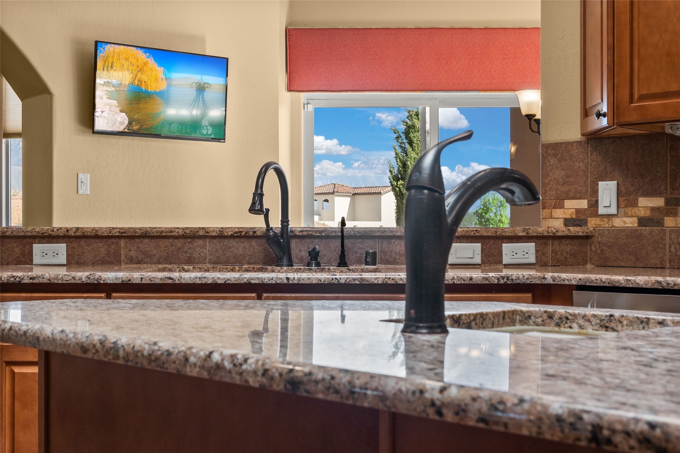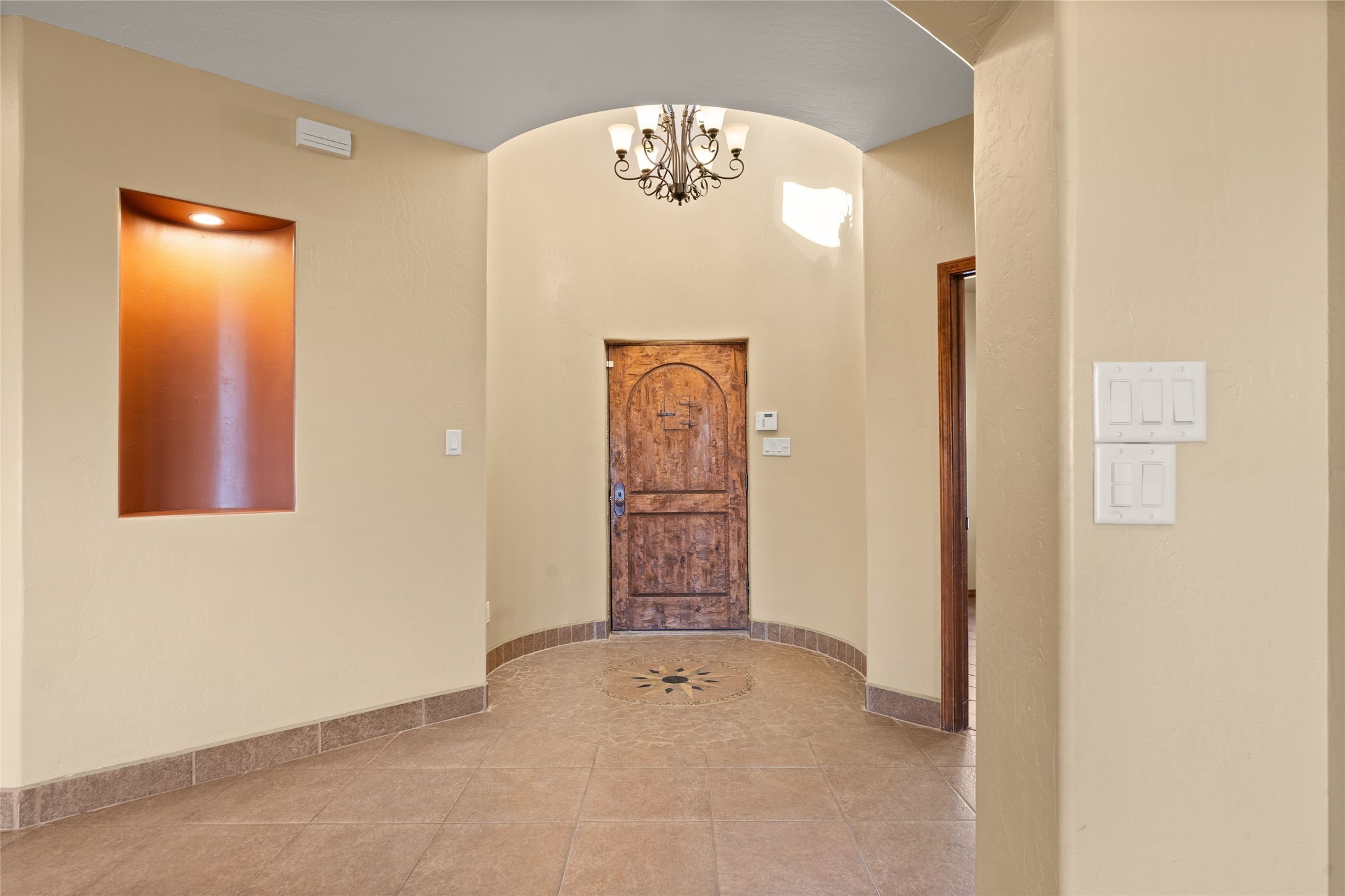 Seller owned solar and a private well! Enjoy the space without the high costs. Nestled on a lush and generous .52-acre lot in Rio Rancho, this property delivers expansive indoor-outdoor living, and countless features including a separate living area/casita. The home includes an oversized 3-car garage (1,488 SF) with extended depth, a dedicated hobby/game room, a 10x15 woodworking space, and a separate storage shed -- perfect for every project or pastime. The main house is designed with community and comfort in mind. The chef's kitchen boasts a gas cooktop, double convection ovens, dual sinks, a walk-in pantry, and flows effortlessly into the dining and living areas -- perfect for entertaining.A stacked stone custom gas log fireplace with banco seating adds cozy ambiance. The primary suite features southern views and private access to the extended covered back patio, a snail shower, garden tub, dual sinks, and a walk-in closet. Three additional bedrooms and two bathrooms provide ample room for children, guests, or office space.18-panel owned solar system installed in 2016. A central vacuum system adds further convenience. A standout feature is the spacious attached 800 SF casita, offering a full kitchen, living room, walk-in closet, and ensuite bathroom with linen storage. All on one level with no carpet, this private space is ideal for in-laws, guests, or even potential rental income.Outdoors, create unforgettable memories in the pergola-covered patio wrapped in grapevines, with a custom wood-burning fireplace and banco seating -- ideal for BBQs, al fresco dinners, and relaxing evenings. The property's mature vineyard includes Cabernet Sauvignon, Chardonnay, and more. Owners and past owners have previously had local farmers care for the grapes in exchange for the fruit at harvest time making this lush landscaping easy to enjoy.Edible landscaping surrounds you with fruit trees and raised garden beds for vegetables and herbs. New roof (2019).