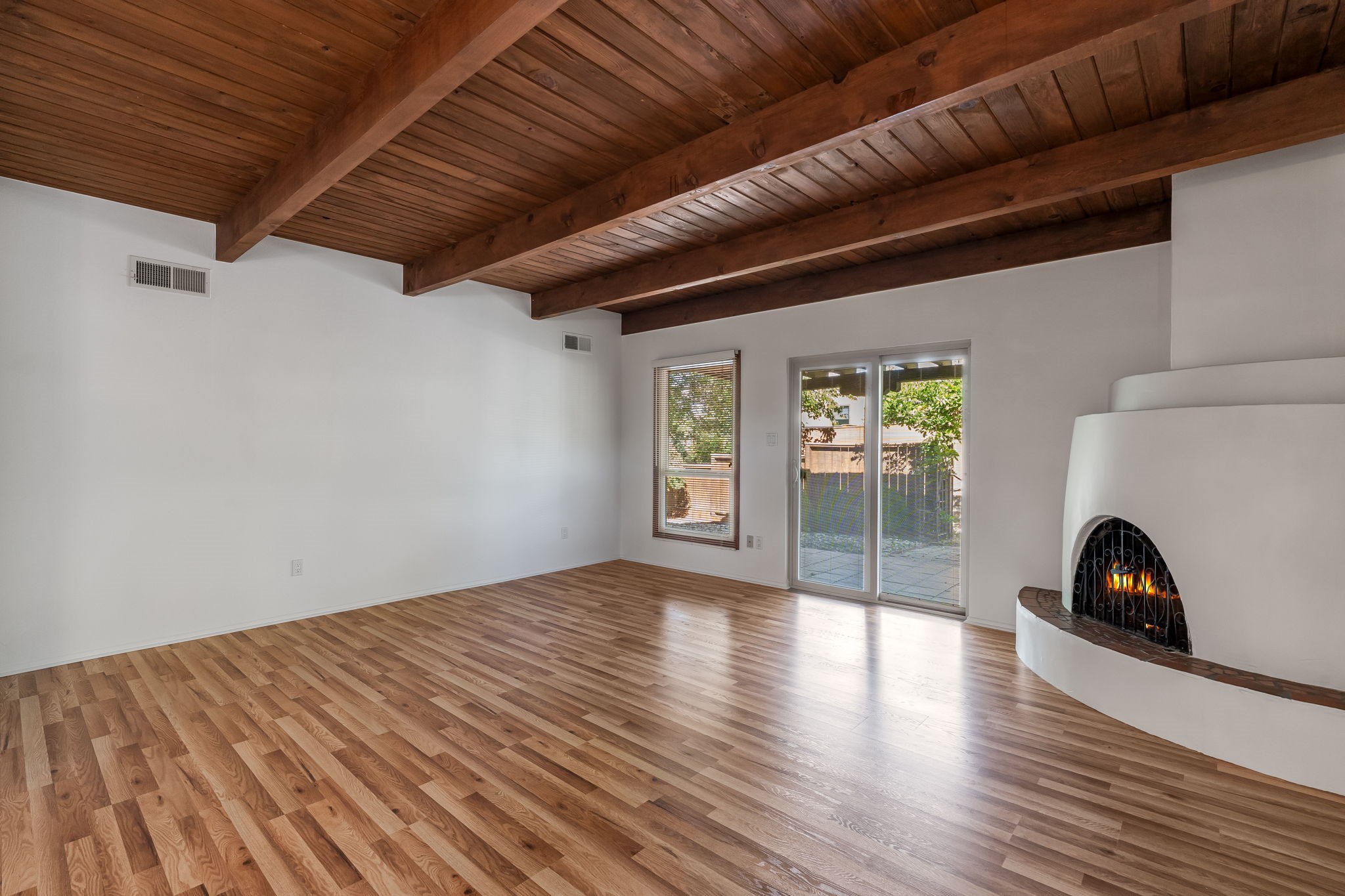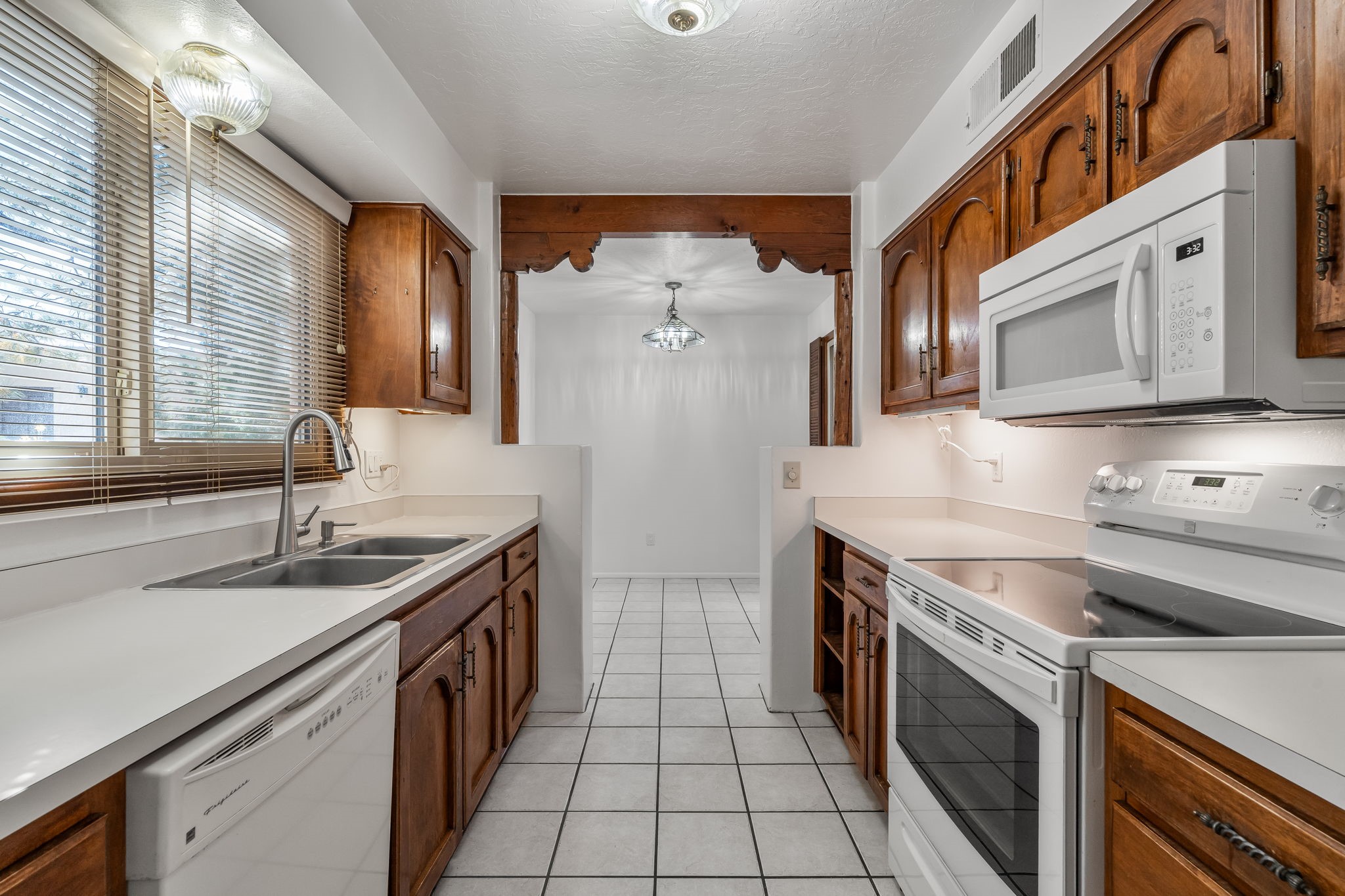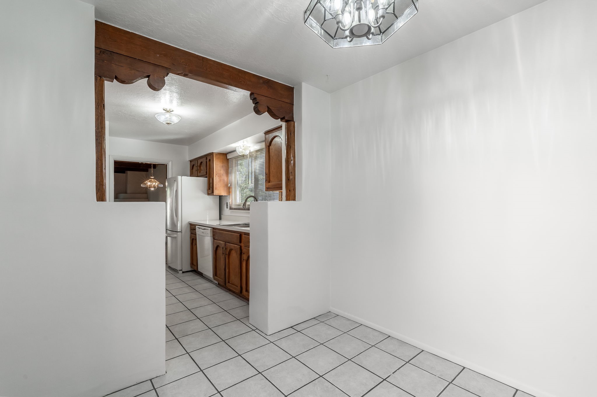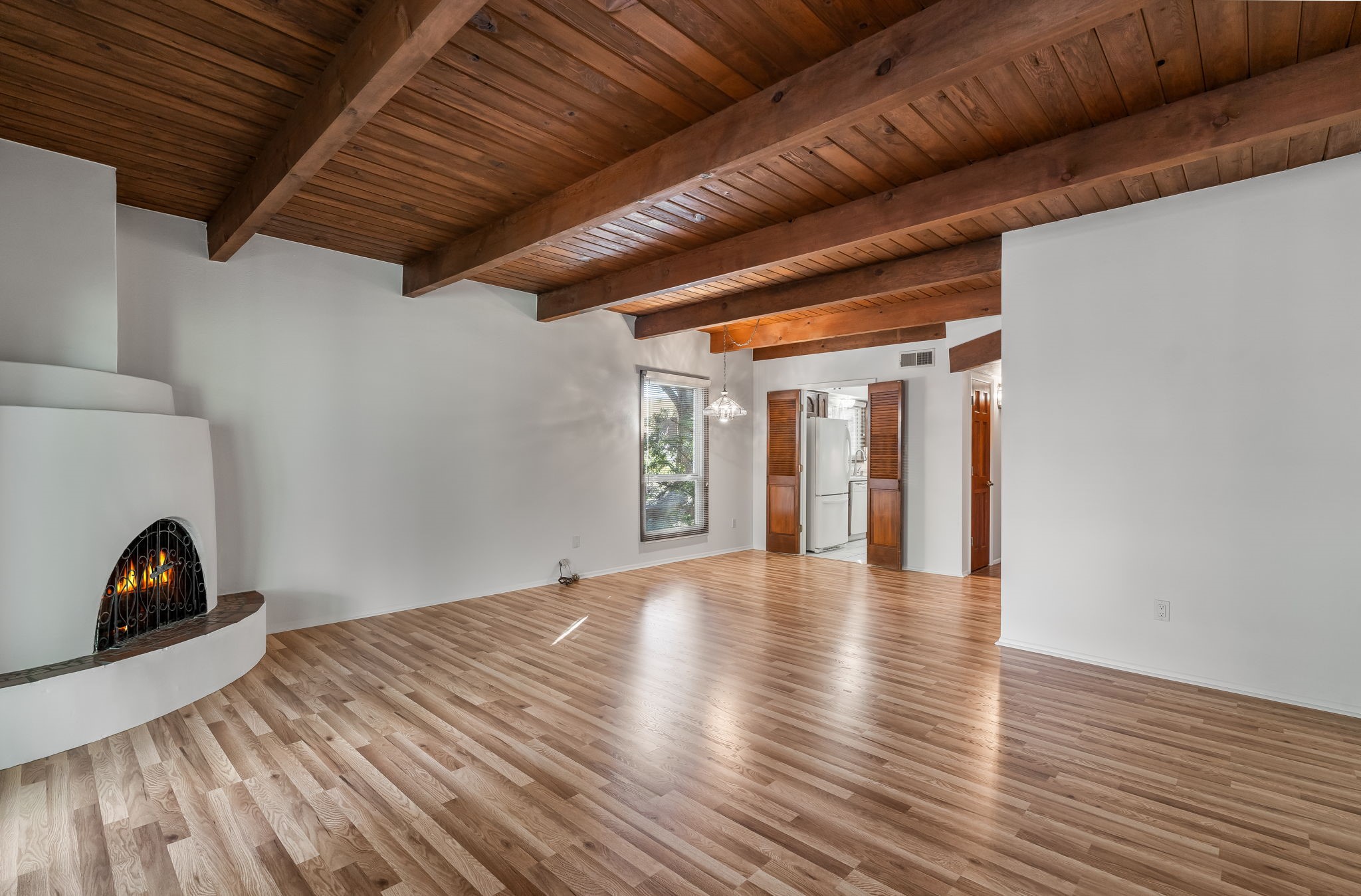 Welcome home to this beautifully refreshed single-story townhouse offering 2 bedrooms, an office, and timeless Santa Fe charm. Step through the inviting blue gate into a brick courtyard, where a sense of warmth and tranquility sets the tone for what's inside.Freshly painted throughout and featuring new laminate flooring, this home is move-in ready and thoughtfully designed for both comfort and style. Just off the entry hall, you'll find a versatile office--perfect for working from home or creative pursuits.The living room is a true highlight, showcasing a beamed ceiling, corner Kiva fireplace, and sliding doors that open to a spacious covered portal overlooking the backyard. A charming little gate leads directly to a neighborhood walking path, ideal for morning strolls or evening walks.The galley kitchen features tile floors, newer appliances, and a cozy breakfast area filled with natural light. The second bedroom includes a walk-in closet, while the generous primary suite offers a large picture window, walk-in closet, and a private bath.Outside, a detached two-car garage provides convenience and extra storage.Located in Park Plazas, one of Santa Fe's most beloved communities, residents enjoy miles of walking trails, tennis courts, an off-leash dog park, and a community garden--all just minutes from shopping, restaurants, and the Santa Fe Plaza.This home beautifully combines authentic Santa Fe character with modern updates and an unbeatable location. Come see why Park Plazas living is so special!