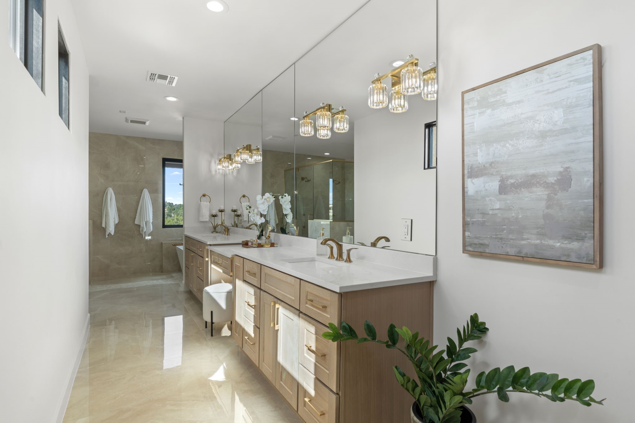 Nestled in the prestigious Las Campanas community of Santa Fe, this newly built custom single story estate blends modern elegance with timeless Southwestern charm. Perched to overlook the lush fairways of the world-class golf course and endless views of the Sangre De Cristo Mountains , the home offers an unmatched lifestyle of sophistication and serenity. As one of the few residences approved for a private pool, it also features a soothing hot tub for year-round enjoyment. Expansive outdoor living spaces are paired with built-in speakers both inside and out, creating the perfect setting for entertaining or relaxing. Inside, enjoy breathtaking views through oversized Pella windows spanning more than 10 feet wide. The chef's kitchen is outfitted with high-end appliances, a spacious island, and refined finishes. The master suite and main living areas are enhanced with radiant in-floor heating for comfort in every season, while each bathroom has been individually designed with custom touches, including built-in mood lighting in the showers. Practicality meets luxury with a fully outfitted laundry room, mudroom entry from the garage, and an oversized epoxy-coated garage ideal for vehicles and recreational toys. Additional details such as Venetian plaster walls and thoughtful design elements throughout make this home truly one of a kind. Built by Candelaria Homes, you 'll know you made the right choice. Golf course views are of the 12th and 13th holes. Don't miss this rare opportunity in Santa Fe's most sought-after enclave offers a retreat of elegance, comfort, and distinction.
