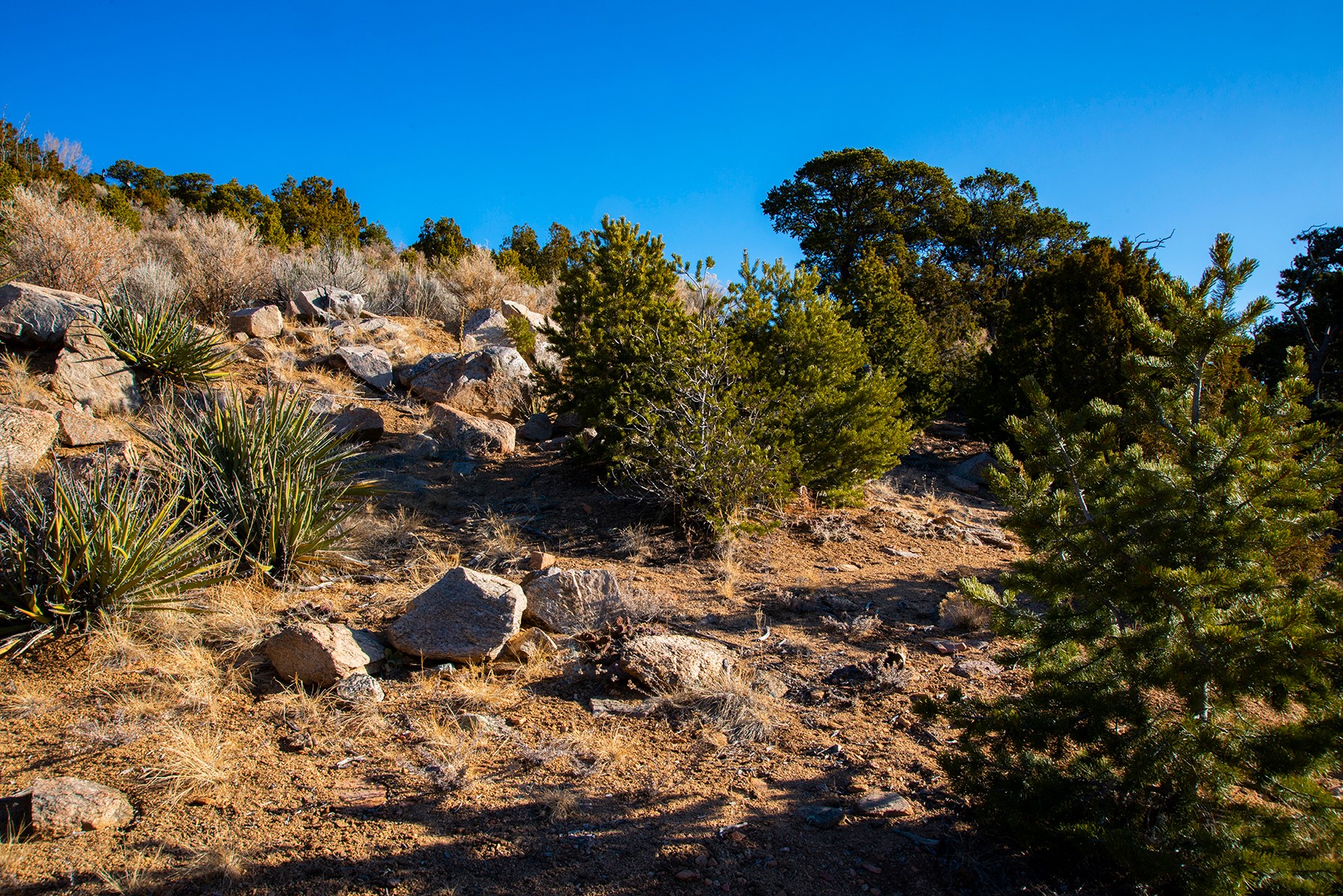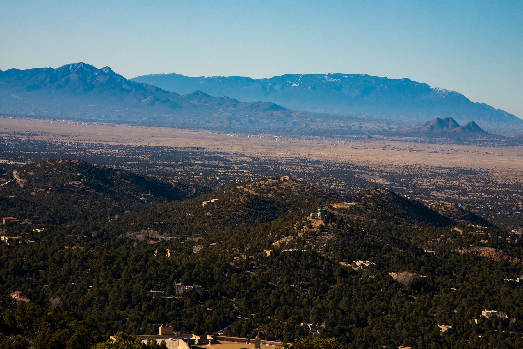 Panoramic views for miles from this elevated property high on the slopes of the Sangre De Cristo mountains. 5 acres on the highest lot on Coyote Mountain Road, with some dirt work done, shared well in place, and electrical transformer. 15 minutes from the Plaza, this can be the site for your top of the world sanctuary. Adjacent 5 acre parcel is for sale (MLS 202340314) for those wanting to combine the properties for more privacy and space. Beyond a locked gate, please make an appointment to see.