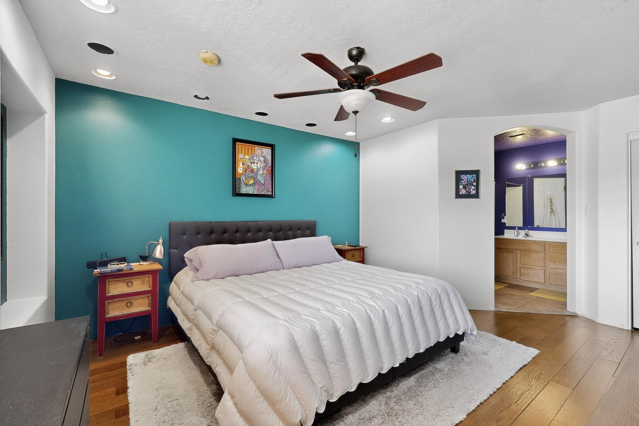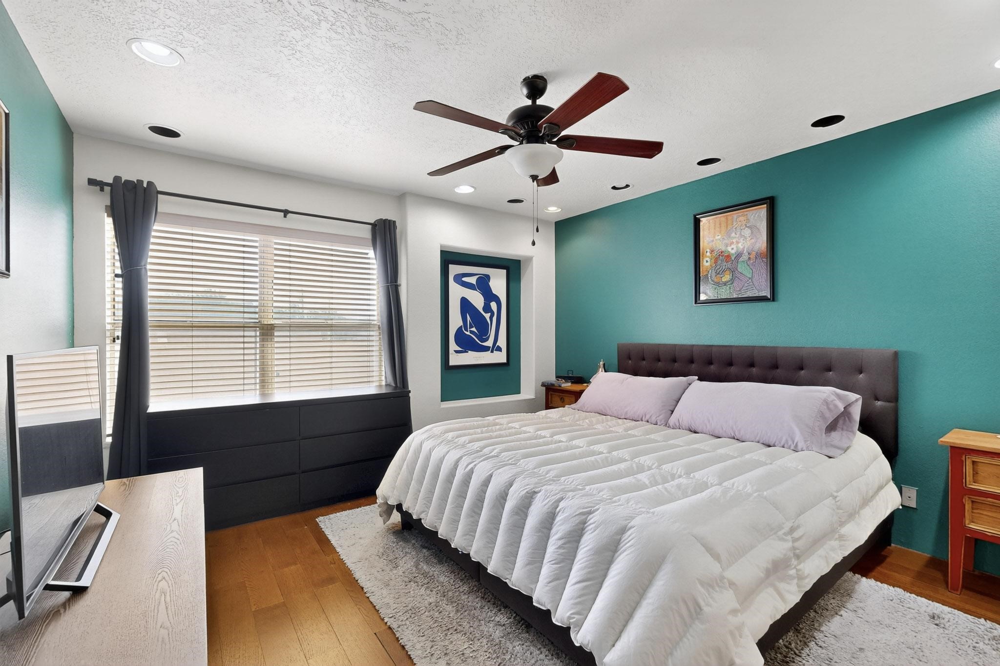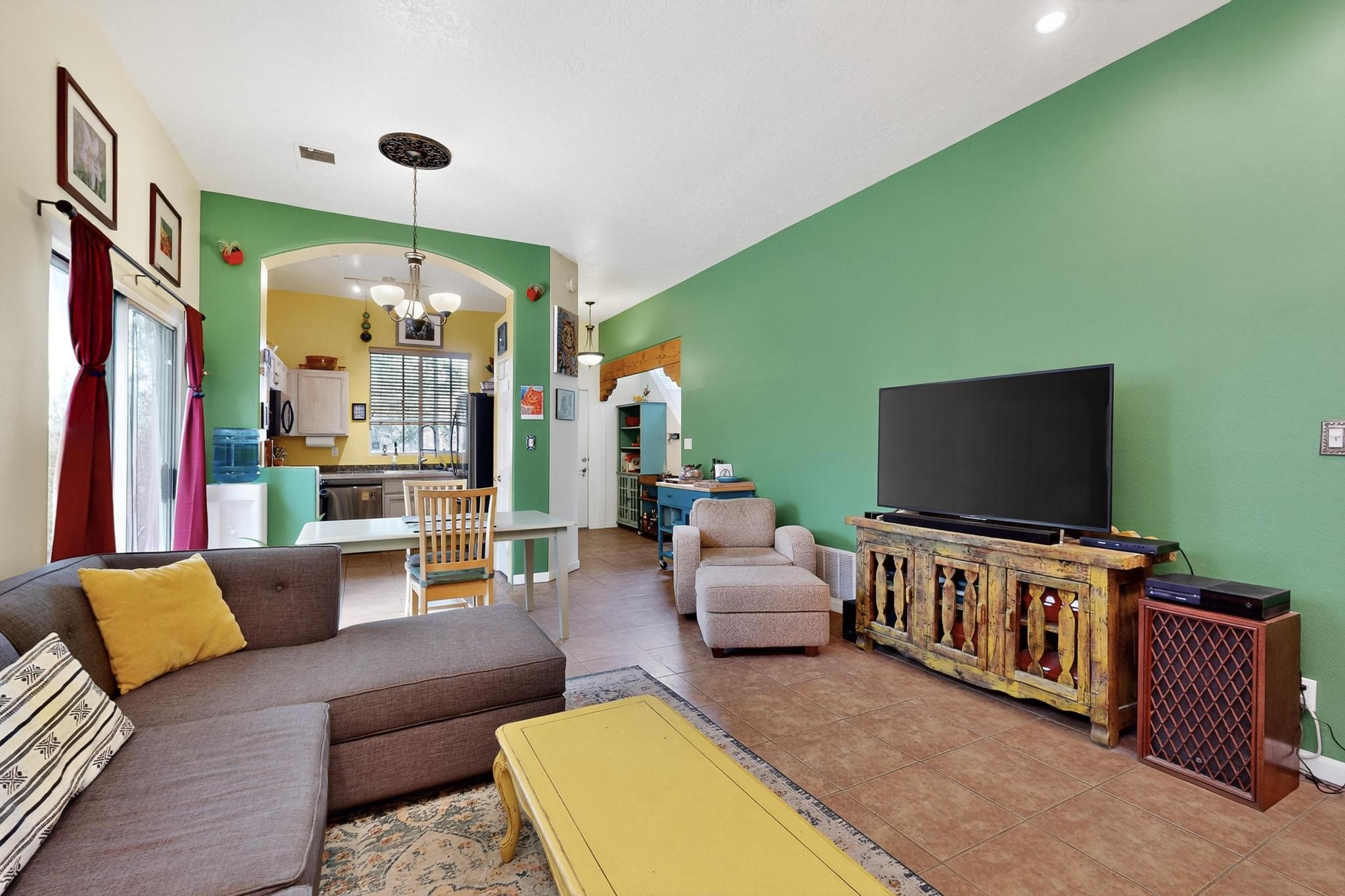 Welcome home to this warm and inviting 4-bedroom, 3-bathroom property located in one of Santa Fe's most convenient and family-oriented neighborhoods. Just minutes from top-rated schools, parks, and Southside amenities, this home offers the perfect blend of comfort and location. Enjoy a freshly updated interior with new kitchen appliances, new central heating and A/C, and professional paint throughout. The thoughtful 2-story floor plan provides room for everyone, including a spacious primary suite and three additional bedrooms, perfect for guests, family, or and a home office. Enjoy bright and colorful living areas with tall 10 foot ceilings, and nestle up by the cozy gas-powered kiva fireplace. The private fenced yard is ideal for kids, pets, and outdoor gatherings, and the 2-car heated and cooled garage can double as a year-round home gym or workshop. Move-in ready and close to everything your family needs!