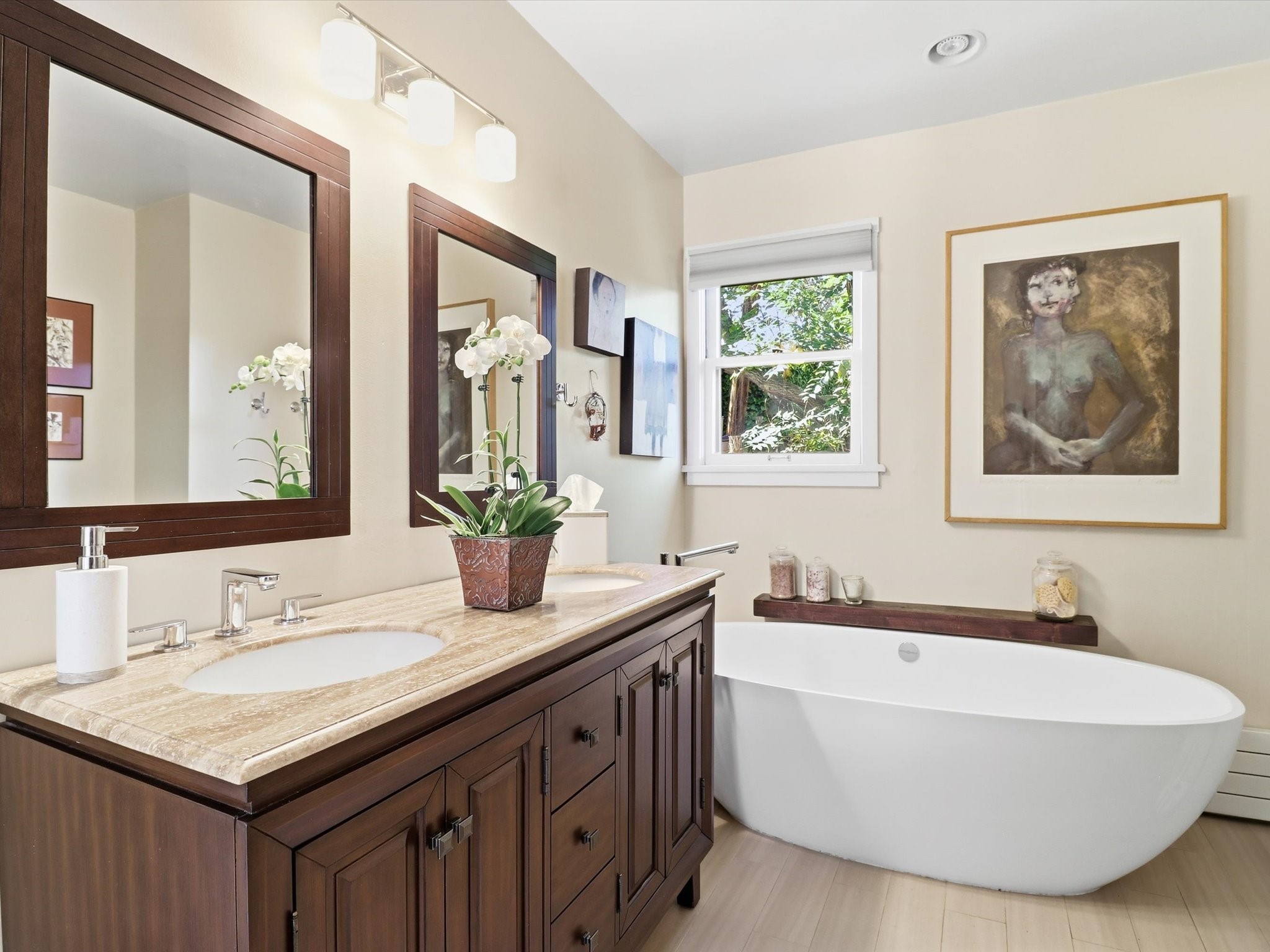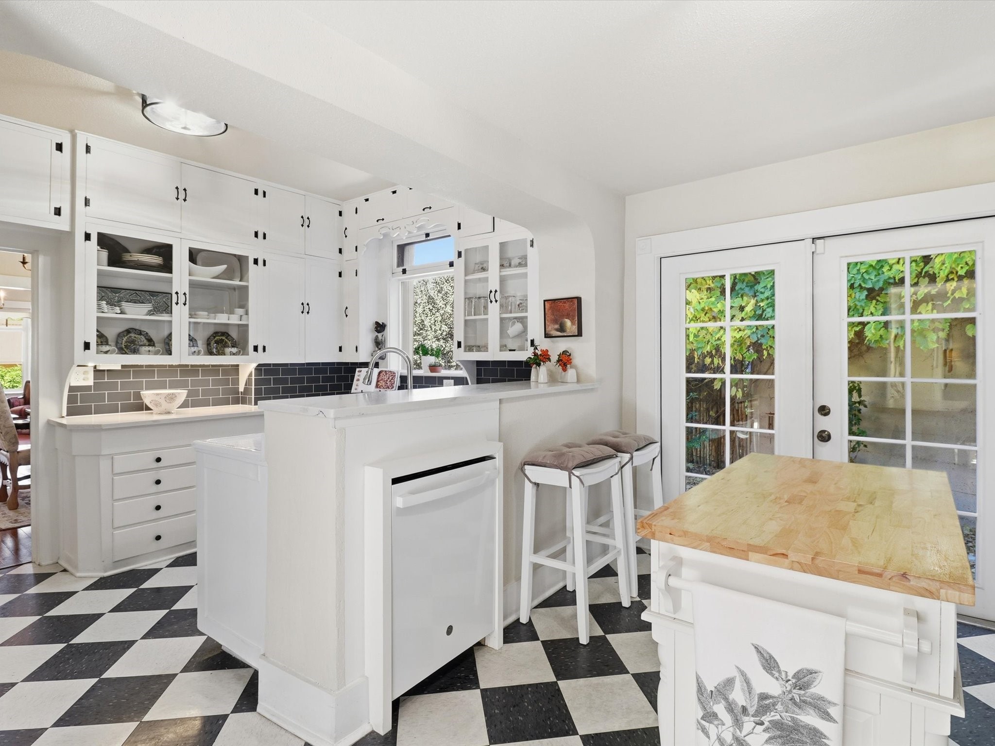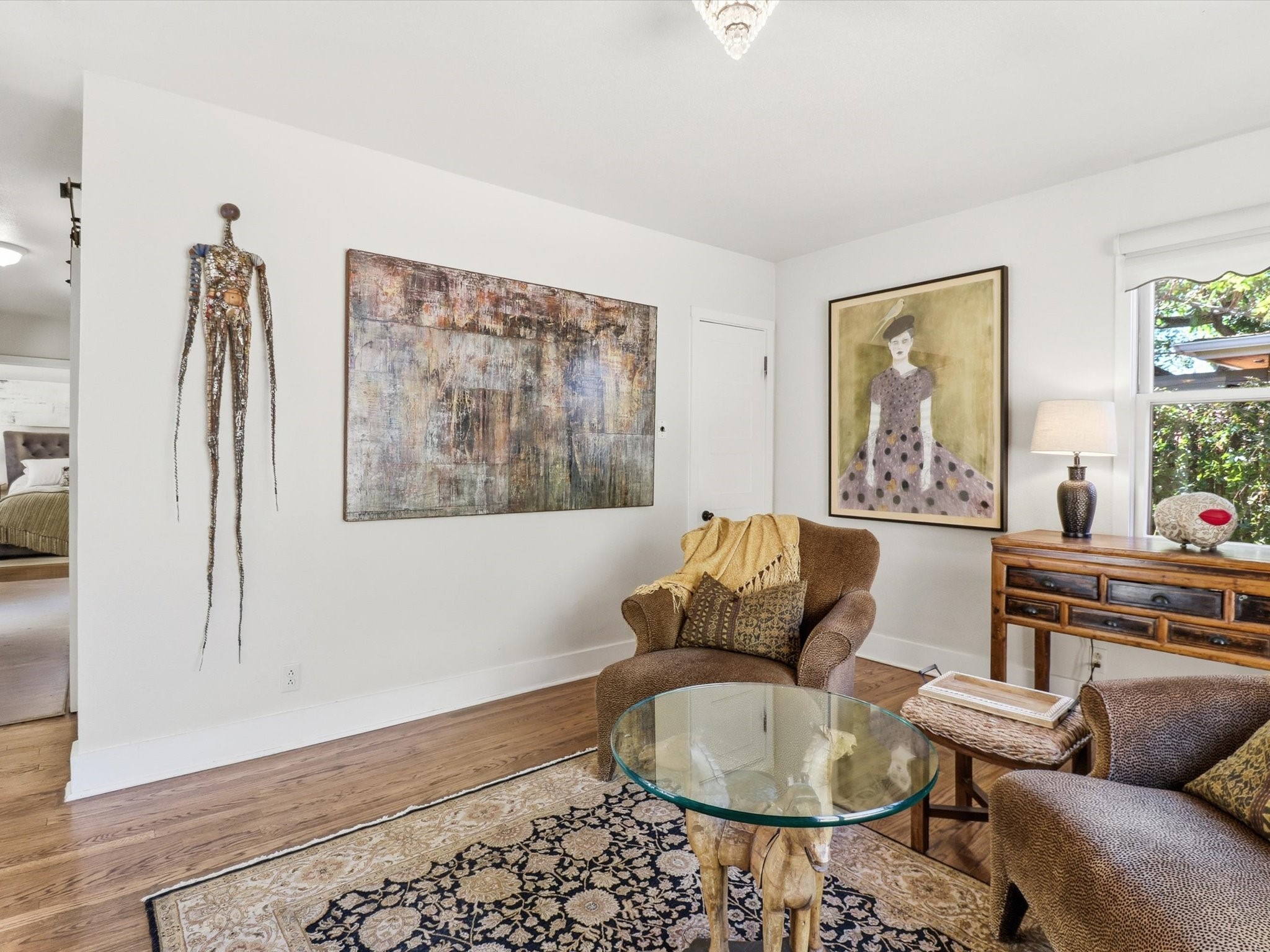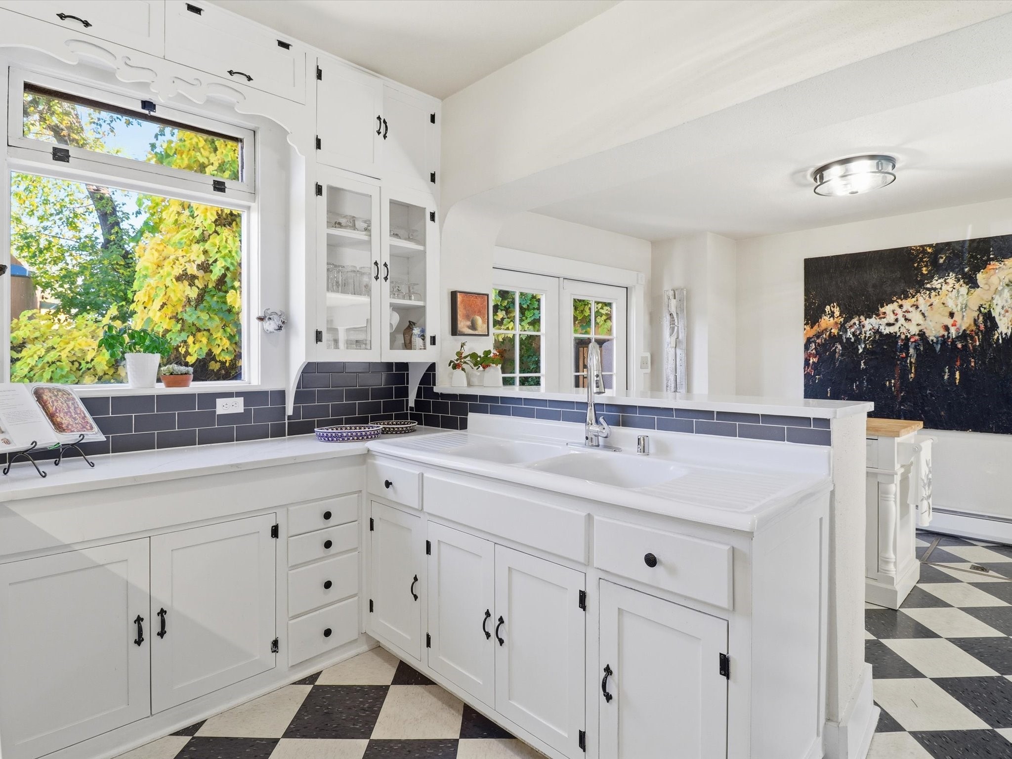 One of Santa Fe's most desirable locations. This historically 'contributing' home on East Agua Fria is a light-filled jewel, perfectly situated to enjoy all the vibrancy of Santa Fe's Railyard District and Santa Fe's Downtown. Imagine being just blocks away from world-class art galleries, dining, shopping, movie theaters, and music. The Santa Fe Farmers Market, a beloved community hub, is just a few blocks to the south. This charming 1900 Craftsman Bungalow home offers four bedrooms, 2 baths, many thoughtful upgrades, double adobe construction with exterior stone base pillars, creating a timeless, inviting and quiet home. A gracious interior - original stenciled fir floors, bay windows, gorgeous antique lighting fixtures, a crisp black and white kitchen. Additionally, this property offers an attractive flexibility with two distinct areas, each featuring separate entrances and sitting areas providing excellent options for guests or potential rental income. The home boasts a charming, deep Craftsman-style porch, perfect for relaxing and enjoying the neighborhood. The current owners have meticulously cultivated romantic garden areas over many years, showcasing roses, wisteria, daylilies, and climbing vines, maintained by an automatic drip system. The large rear patio serves as an urban sanctuary, ideal for entertaining or simply unwinding. Further enhancing convenience and livability are the unusually generous gated off-street parking in the front, a single-story design and a 200-square-foot storage area in the rear. Come see and be captivated! Neither Listing Brokers nor Seller warrants the square footage of the home or lot. If the size of the home or lot is of material consideration to the Buyer, then the Buyer should have them measured. Tax Levy is from the Assessor website. All fires depicted are photo-shopped. Buyer to verify the functionality of the fireplace.
