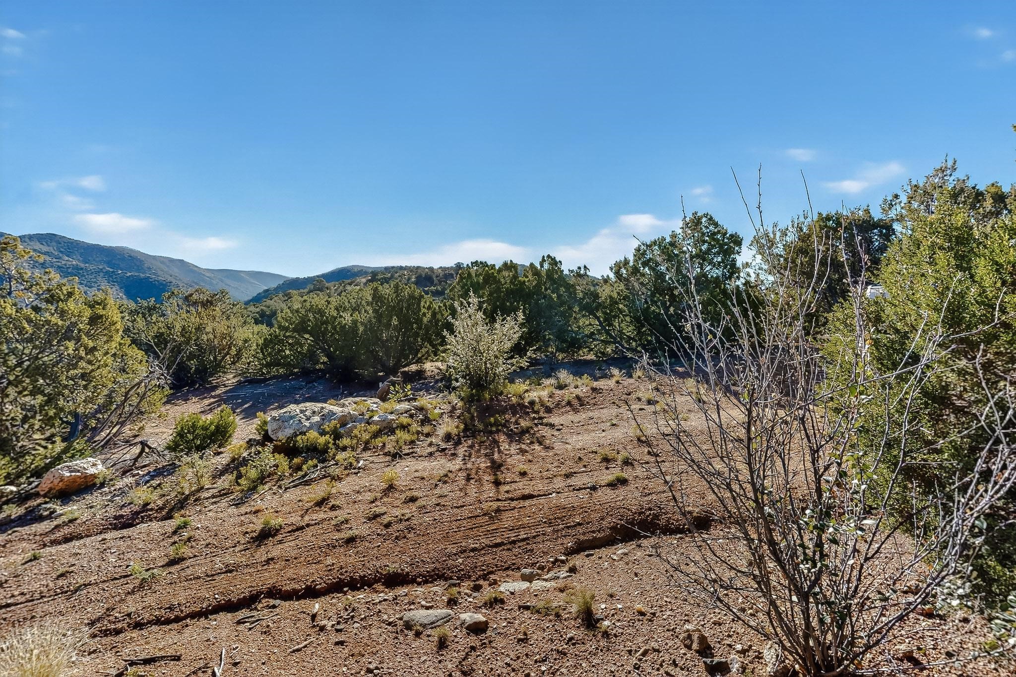 This 4+ acre lot perched high in the Sangre De Cristo foothills provides wonderful mountain and western views in all directions and is only ~ 12 1/2 paved miles to the Santa Fe Plaza. With many improvements including a private well that produced 30 gallons per minute when drilled along with usable power, a propane tank, and septic system the only thing missing is your imagination and plans. There is also a large metal container that will convey for secure storage to help while develops this rare property. The Rio En Medio trailhead is only a short walk from this property which leads to waterfalls inside the Santa Fe National Forest. A must see for the explorer in you!