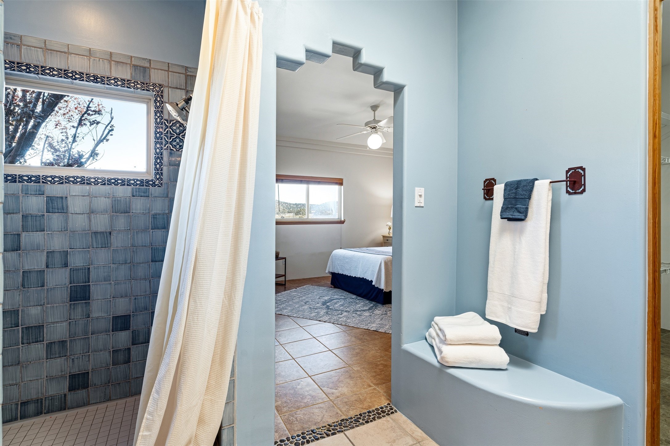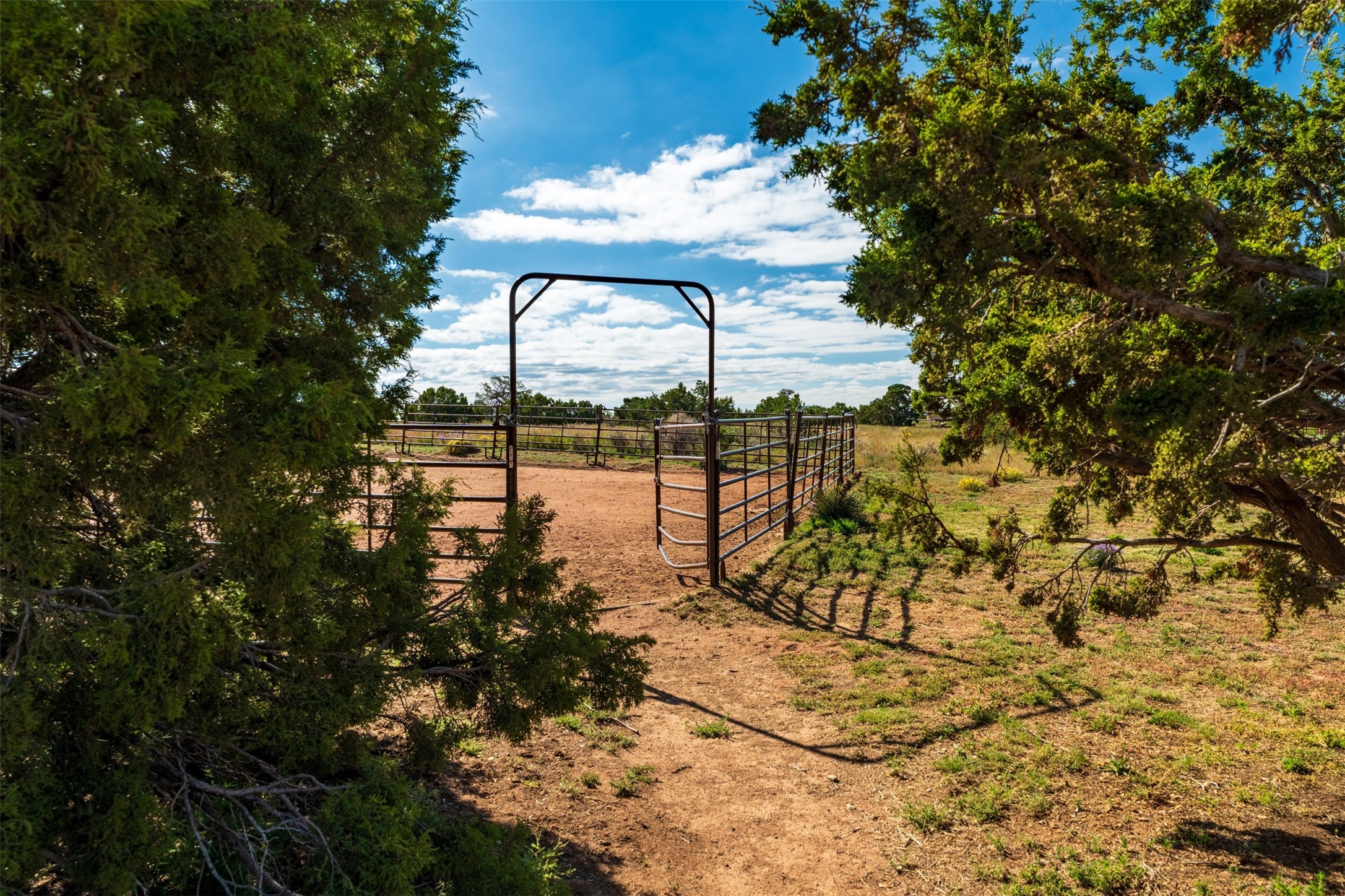 A rare horse property. This Santa Fe-style country home offers an exceptional location directly across from Eldorado, providing convenient access to local community amenities. The property benefits from Eldorado water and natural gas, and its proximity to the highway ensures easy access to town.The home features a split floor plan and an open-concept living, dining, and kitchen area, perfect for comfortable living and entertaining, all while offering beautiful southerly mountain views.The oversized garage is a real plus with plenty of storage and shelving. Walk thru laundry room. Enclosed, heated sunroom. For equestrian enthusiasts, this property is truly turn-key featuring a 2,400 sq ft, center-aisle, block and metal barn with four stalls, each equipped with attached piped paddocks, crusher fine footing, and automatic heated waterers. The barn also includes a dedicated tack room, a hot water wash rack, hay storage, and a feed room complete with a sink and toilet. Additional amenities include a piped rail sand arena and four turnouts with run-in sheds. Beyond the equestrian facilities, the property also has a detached, 432 sq ft, unheated workshop/studio with a carport and extra storage. No HOA.
