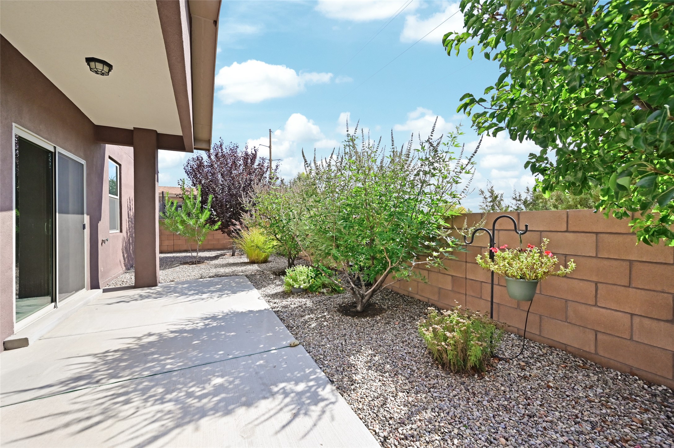Built in 2020, this beautifully maintained single-level home blends modern design with everyday comfort. Offering 3 bedrooms, 2 bathrooms, and an open-concept layout, it's ideal for both relaxation and entertaining.The spacious kitchen features granite countertops, stainless steel appliances, and a generous pantry, opening seamlessly to the dining and living areas. A cozy gas fireplace and abundant natural light enhance the living room, while sliding glass doors lead to a private, fenced backyard with a soothing fountain and covered patio.The primary suite provides a peaceful retreat with a walk-in closet, dual sinks, and a walk-in shower. Two additional bedrooms and a full bath offer flexibility for guests, family, or a home office. Thoughtful touches include tile and carpet flooring, refrigerated air, forced-air heating, a tankless hot water system, and a two-car garage with custom epoxy-finished flooring.Located on Santa Fe's southwest side, this move-in-ready home is minutes from shopping, dining, schools, and Highway 599, with a neighborhood park just a short stroll away.