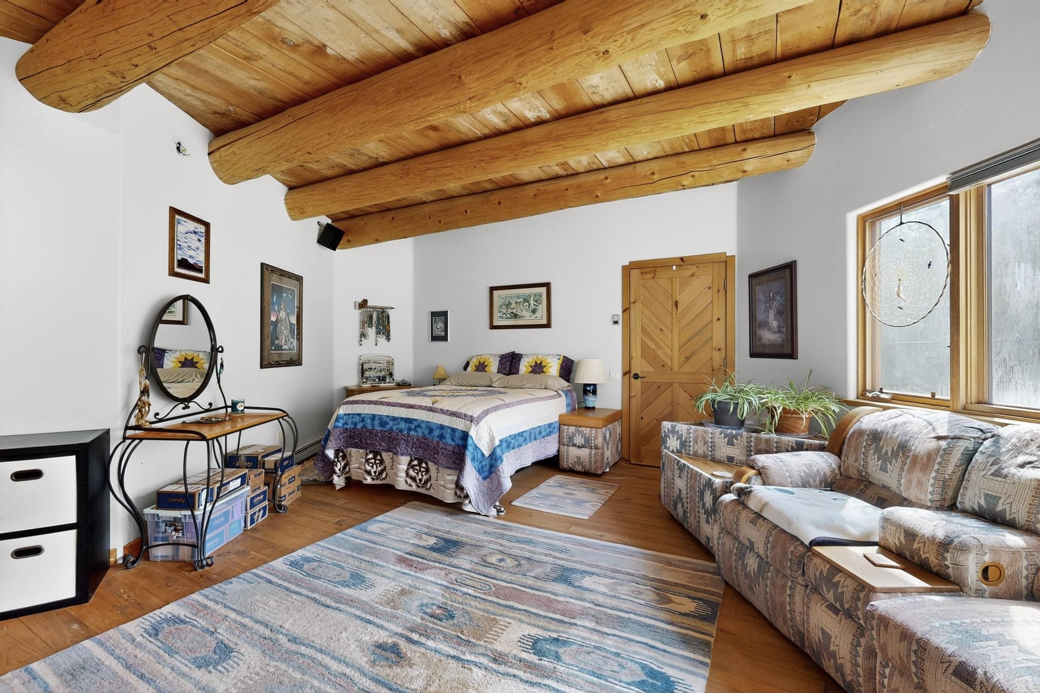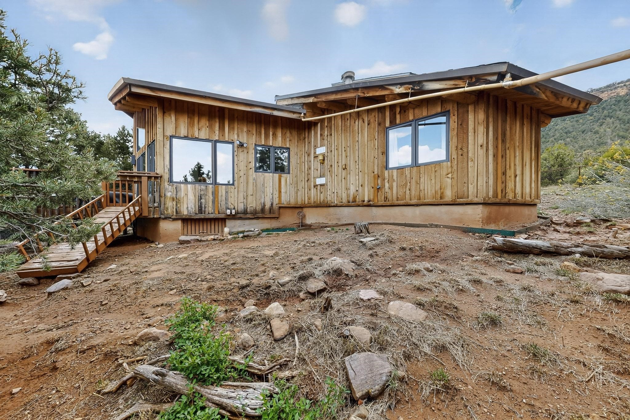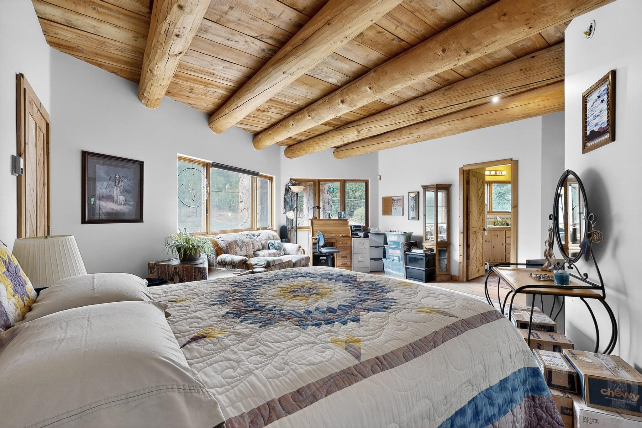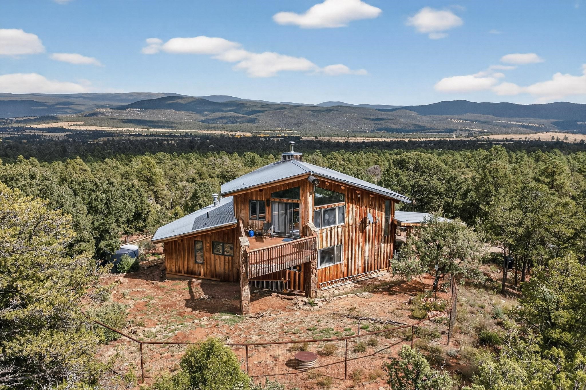 Escape to the beauty of Rowe, New Mexico, with this charming 2-bedroom, 2-bathroom home set on 10 breathtaking acres. Surrounded by stunning mountain views, this property offers the perfect blend of tranquility, space, and Southwestern charm. Inside, you'll find bright, comfortable living spaces designed to take full advantage of the natural light and scenery. The open floor plan creates a warm and inviting atmosphere, ideal for relaxing or entertaining. Step outside to enjoy sweeping views of the surrounding mountains and wide-open skies. Perfect for morning coffee, evening sunsets, or peaceful stargazing. Whether you're looking for a private retreat, a full-time residence, or a place to enjoy the outdoors, this Rowe property delivers endless potential and unmatched serenity on 10 gorgeous acres. Elaborate rain water catchment system with a 6000 gallon capacity, filtered and plumbed to every part of the house. Know your pet is secure as there is a portion of the property securely fenced.